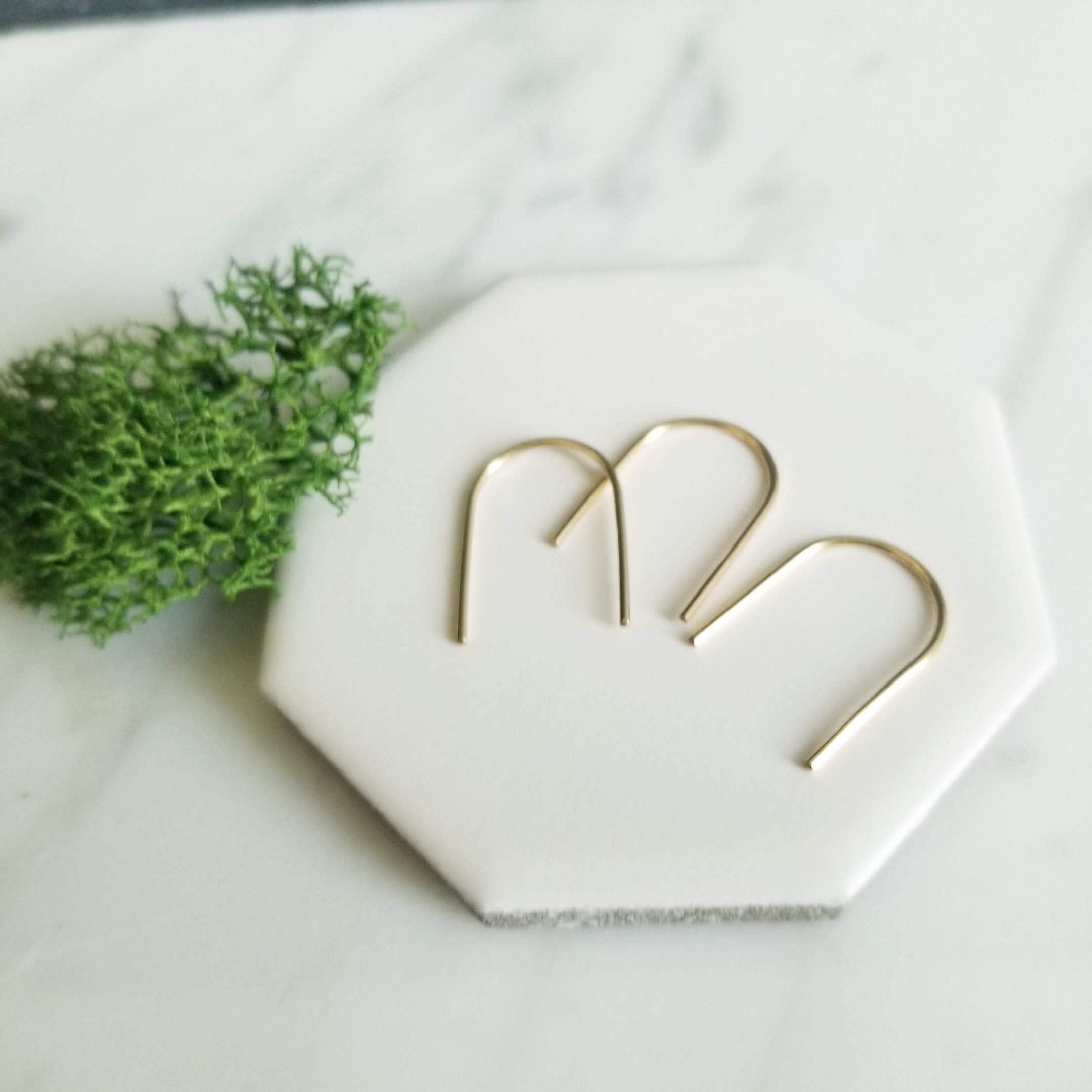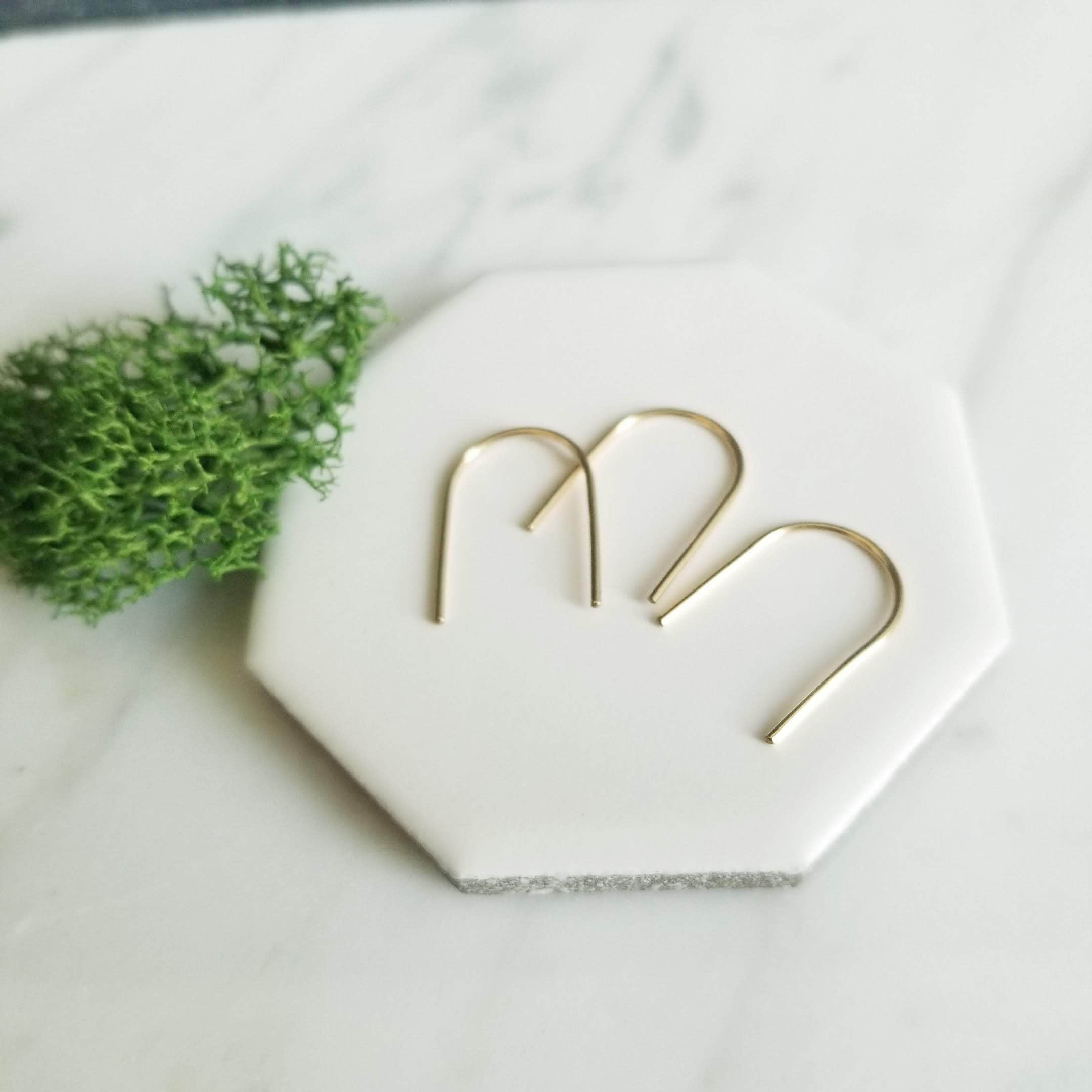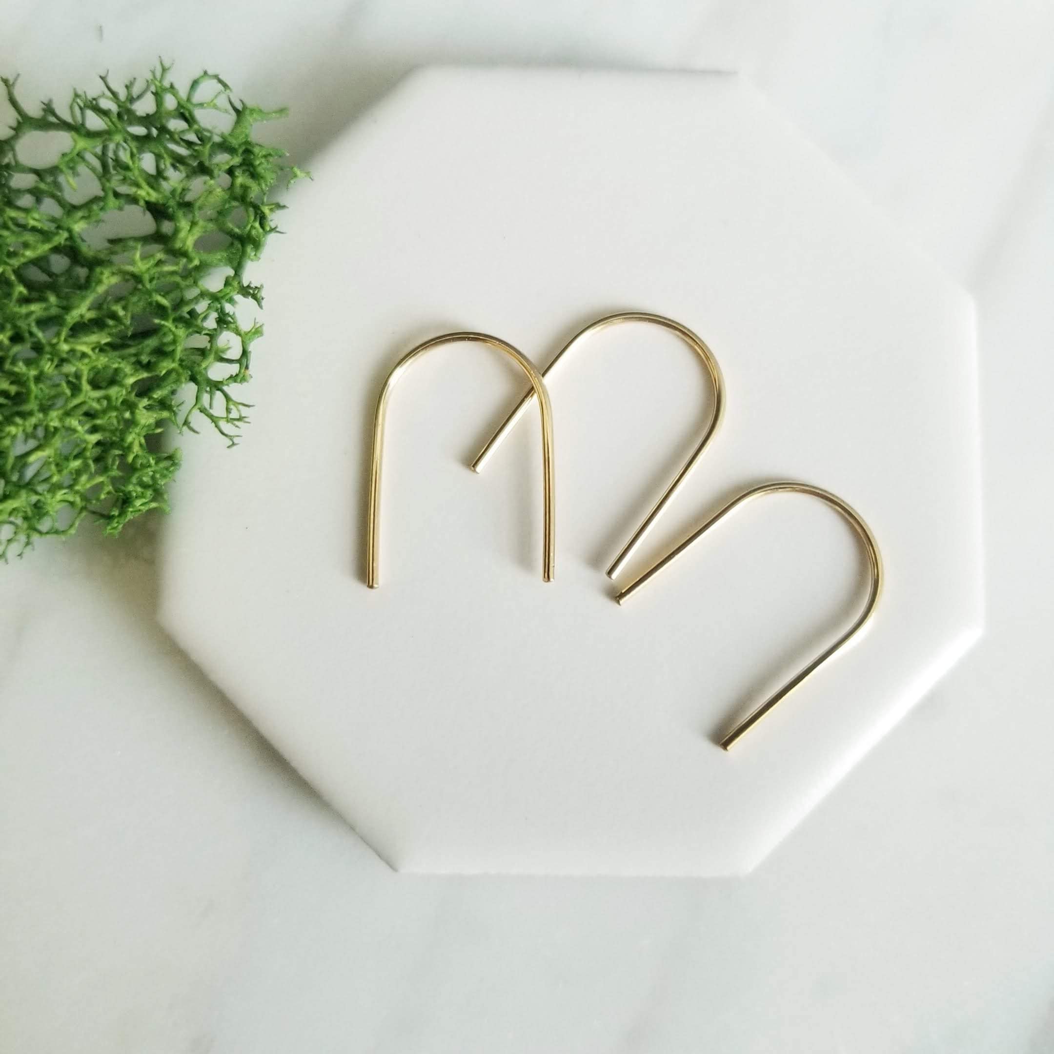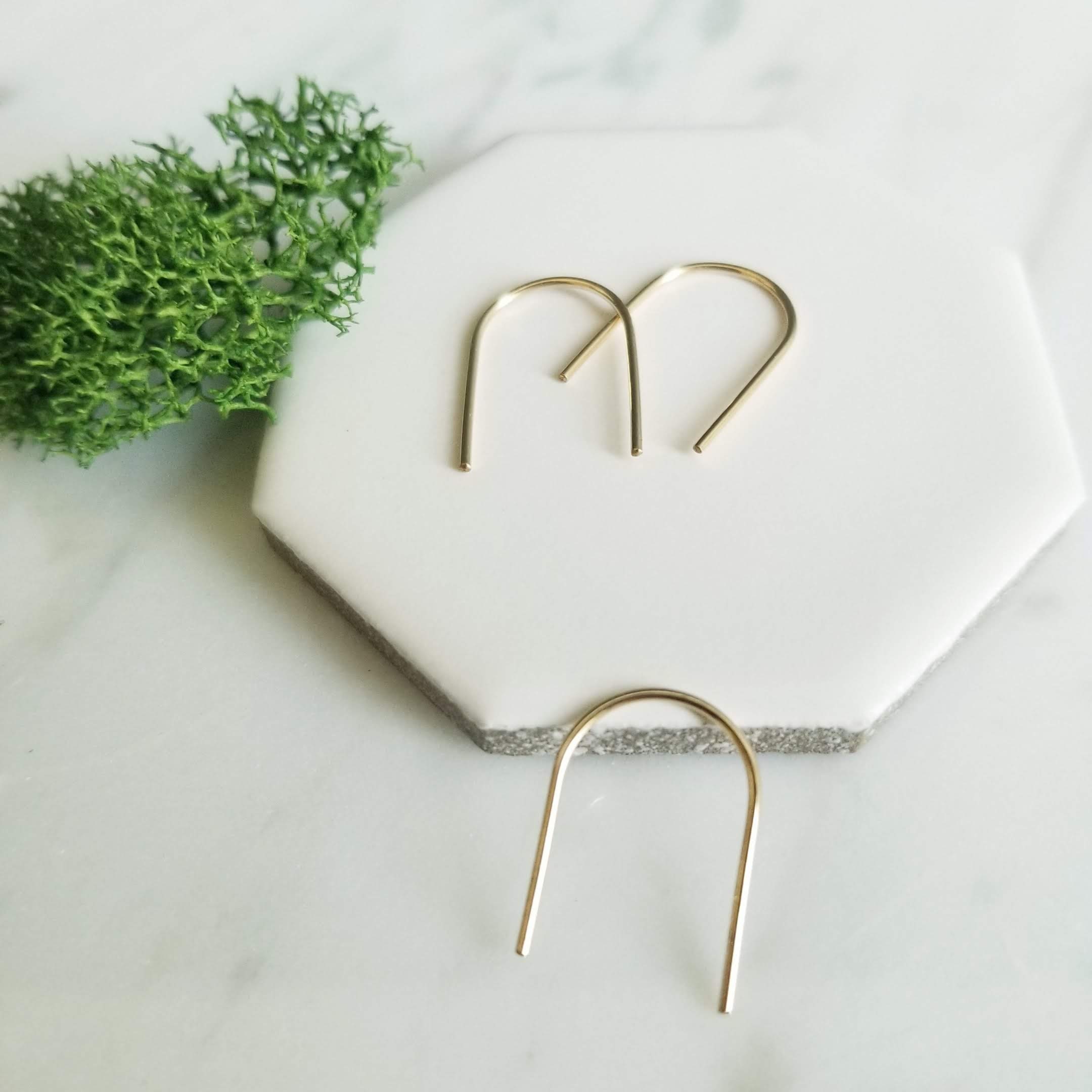 Curved into a gentle U shaped arc, minimalist open hoops.