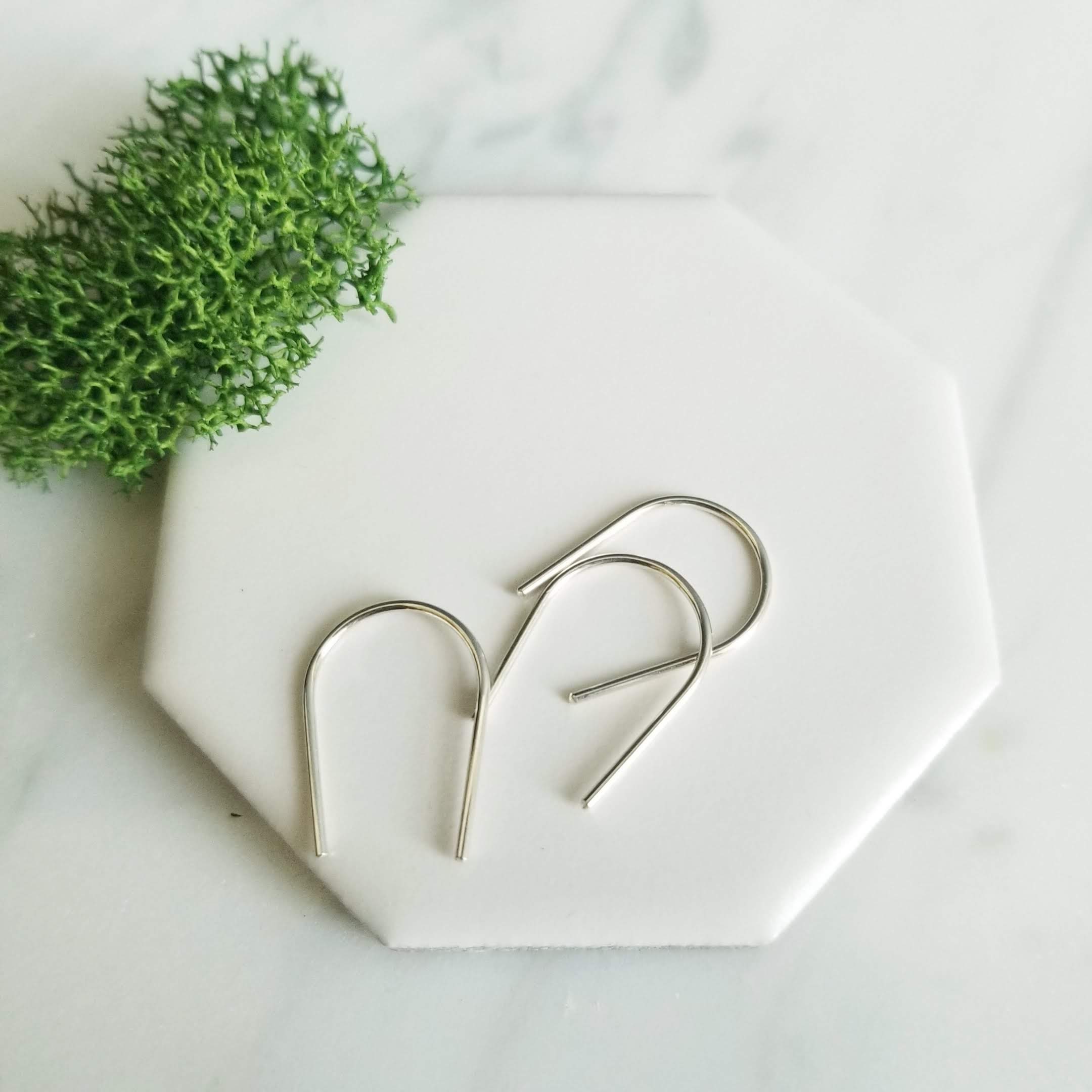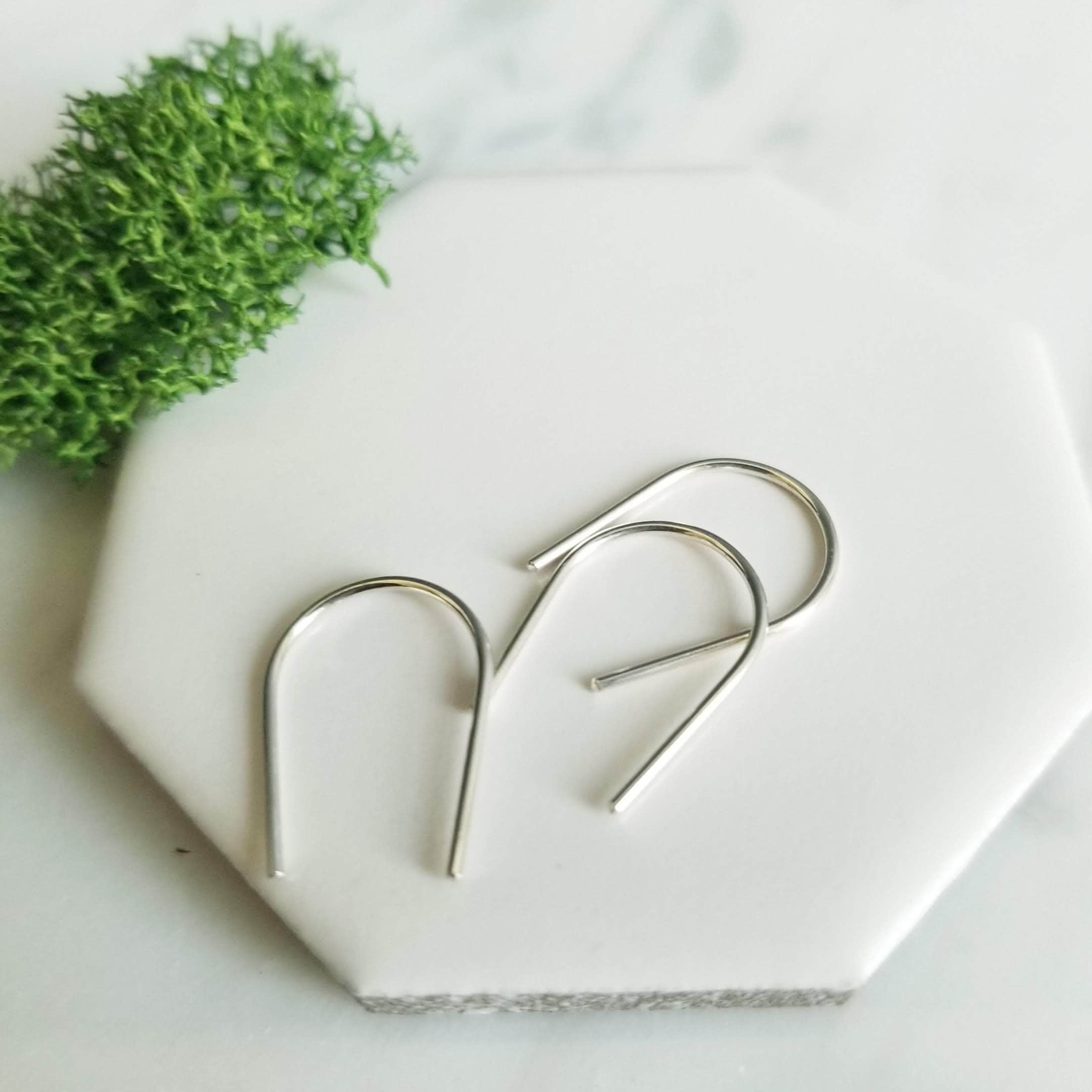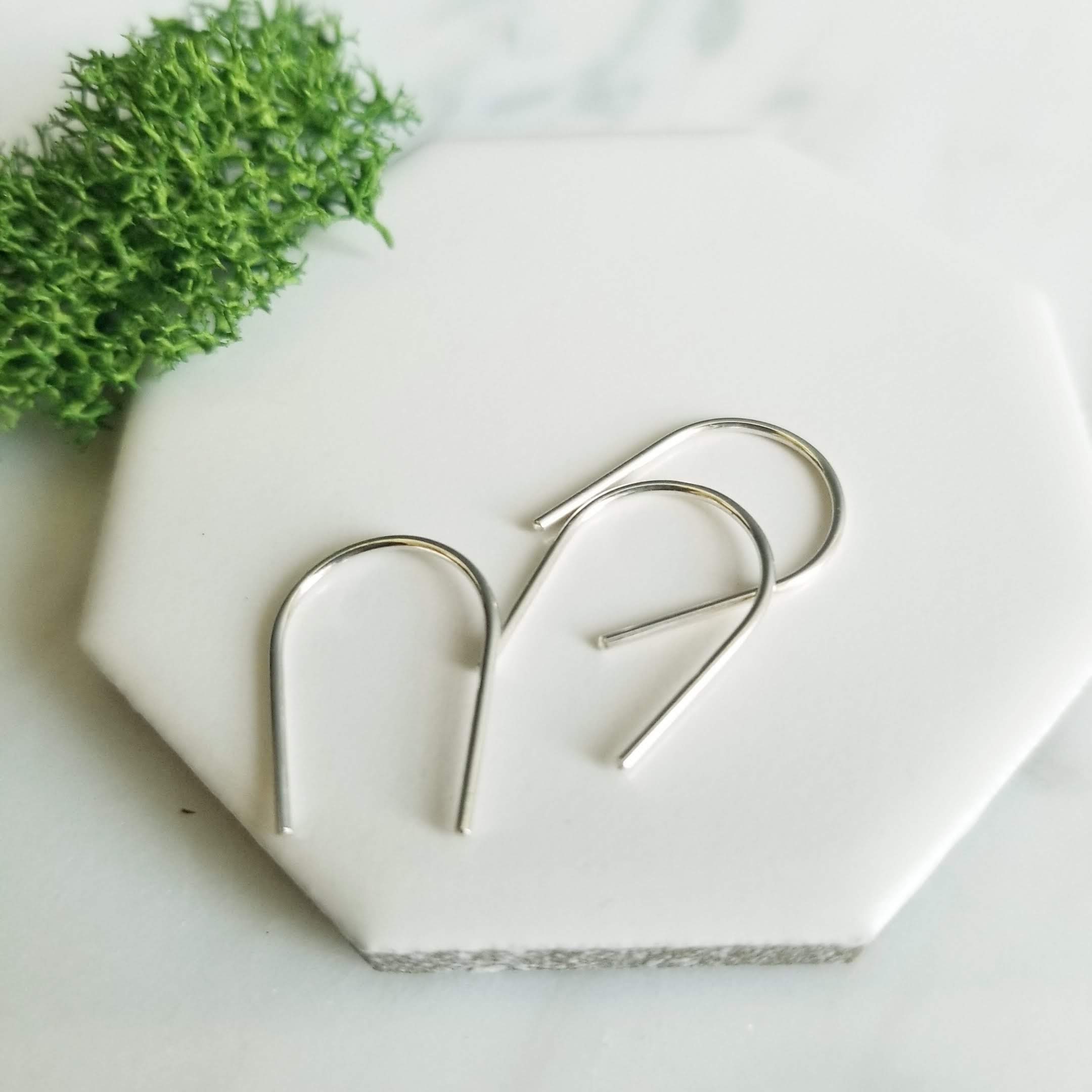 Curved into a gentle U shaped arc, minimalist open hoops.