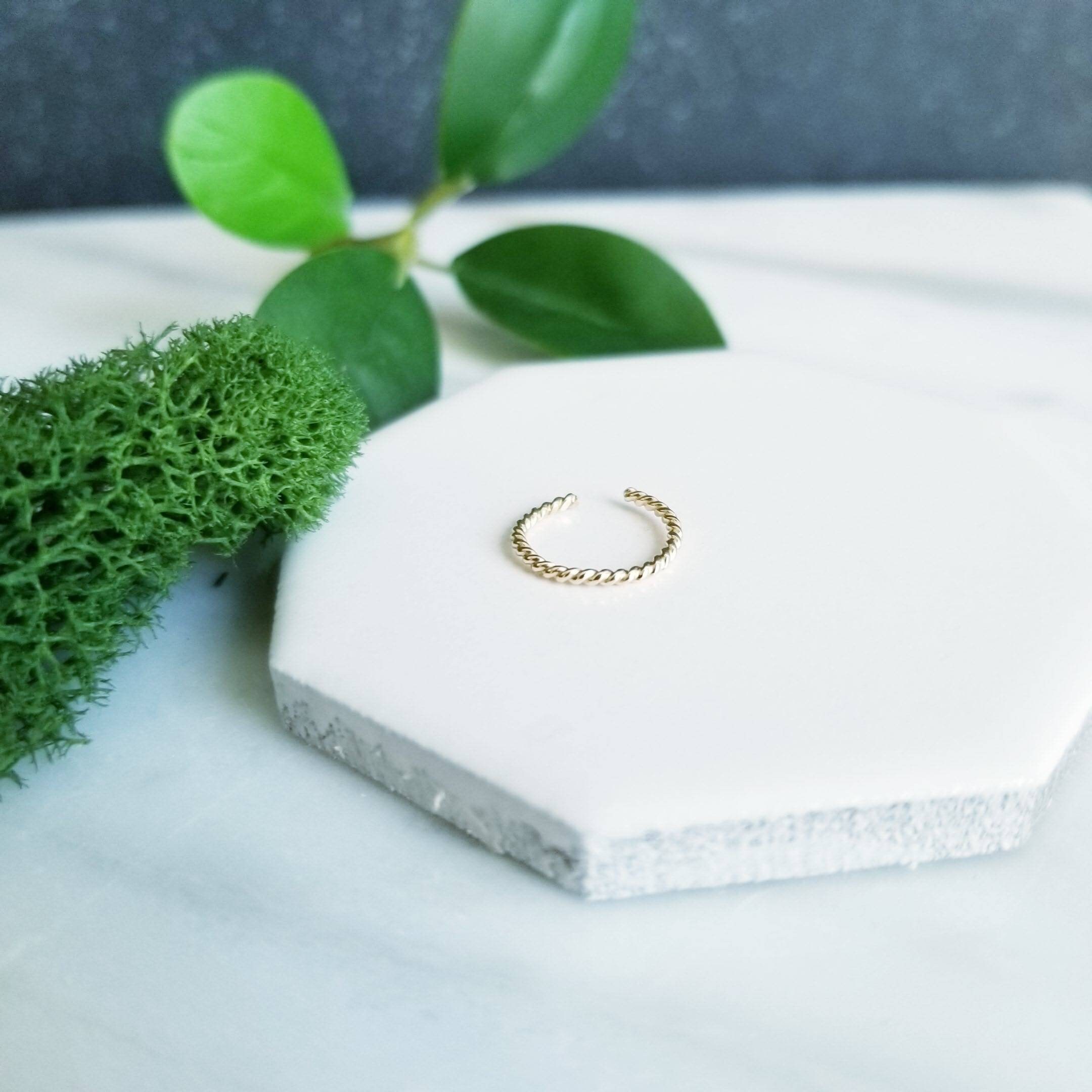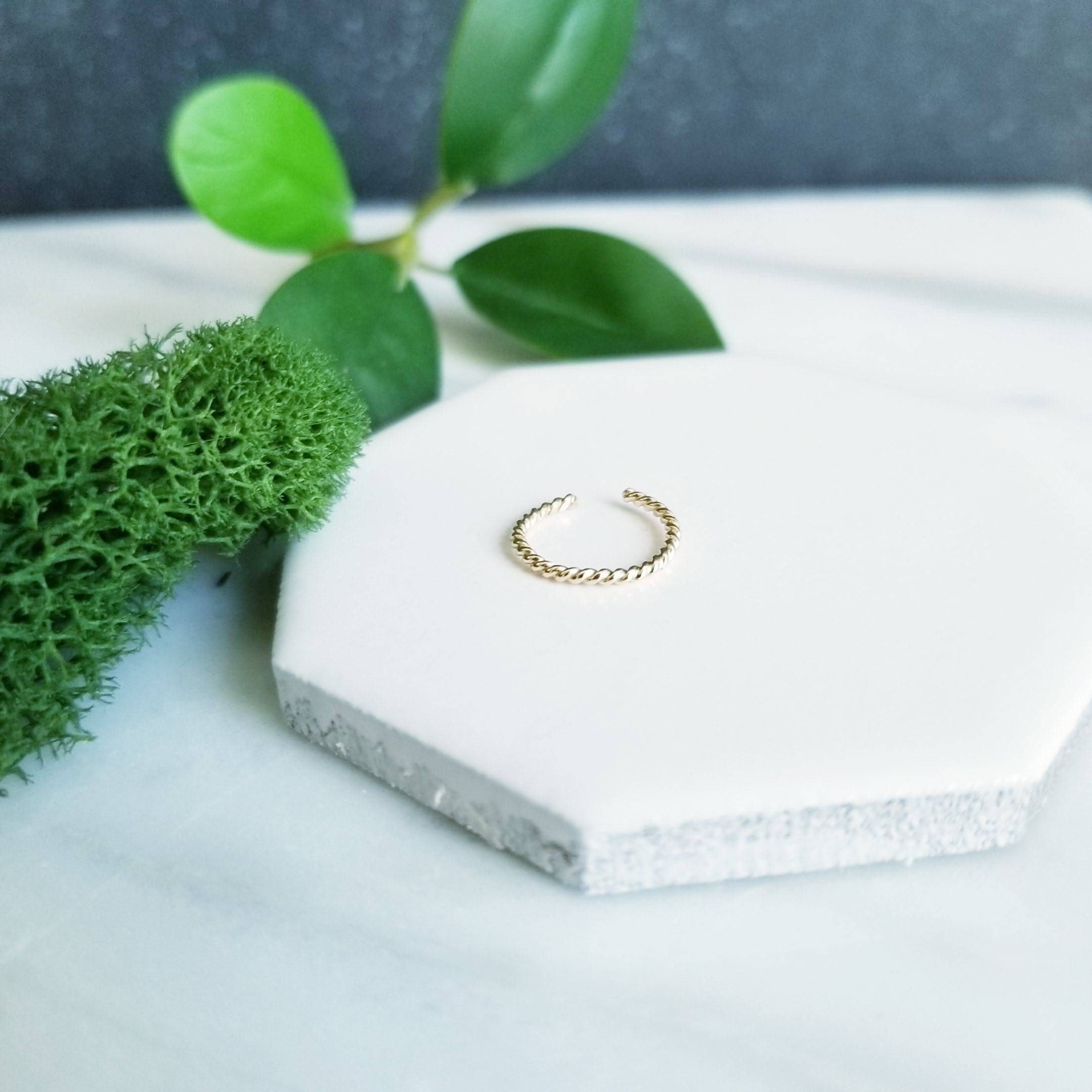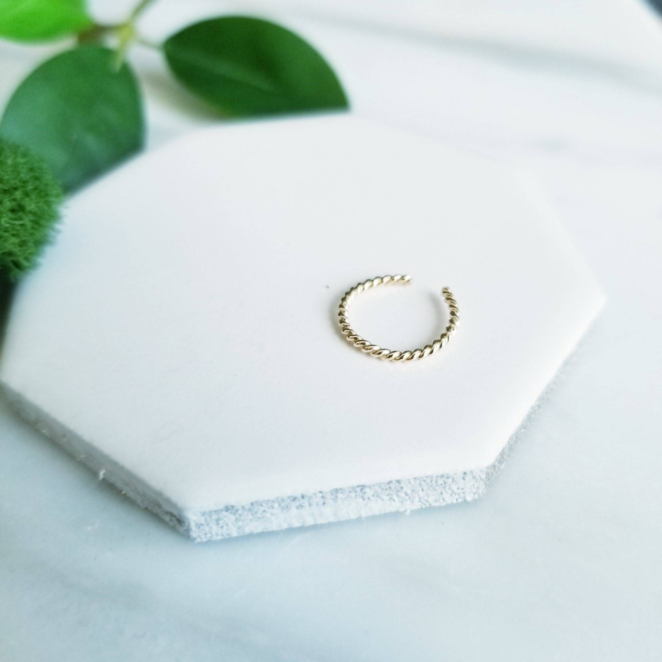 Light & Comfortable, 1mm thick 14K Yellow Gold Fill twisted wire, formed into a small hoop, simply slide onto your upper ear at the top.