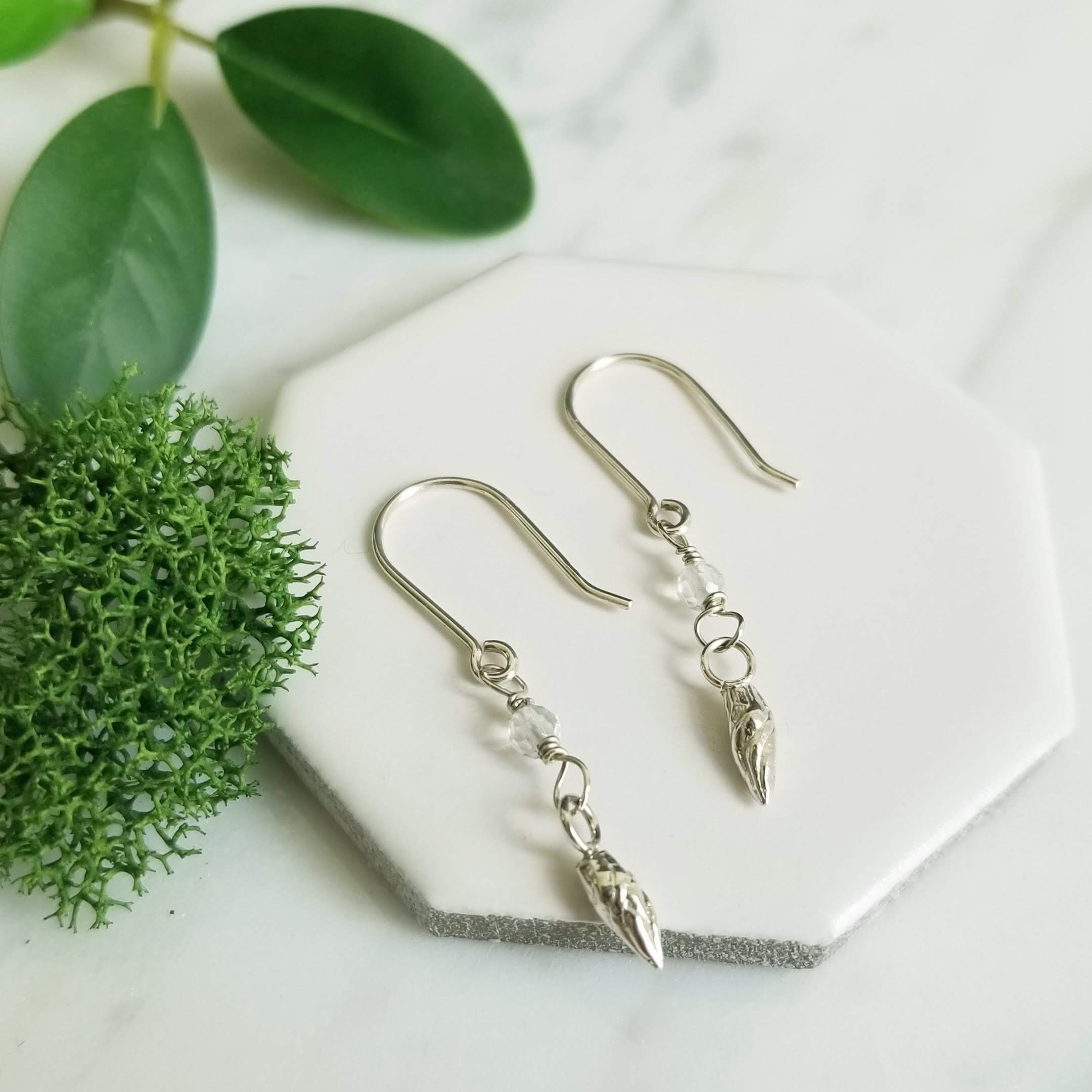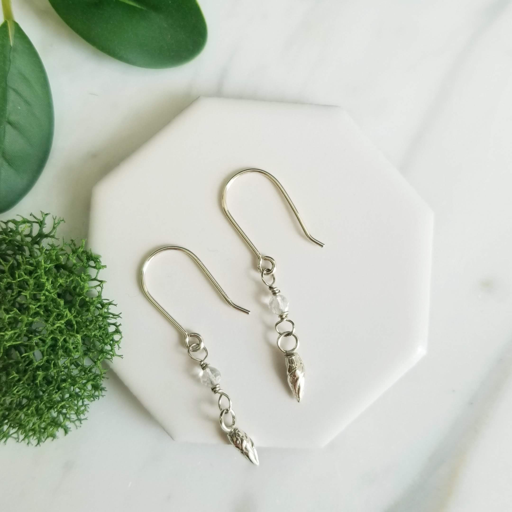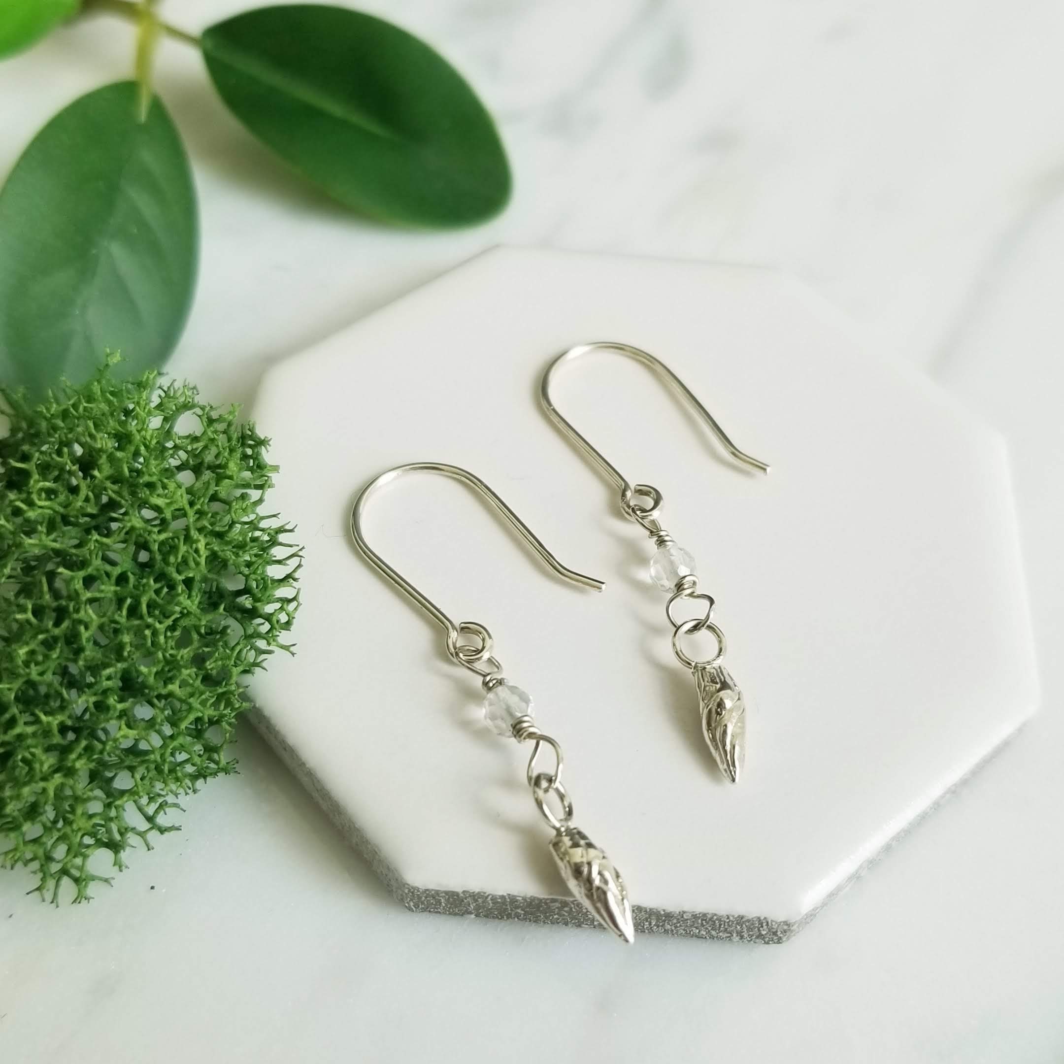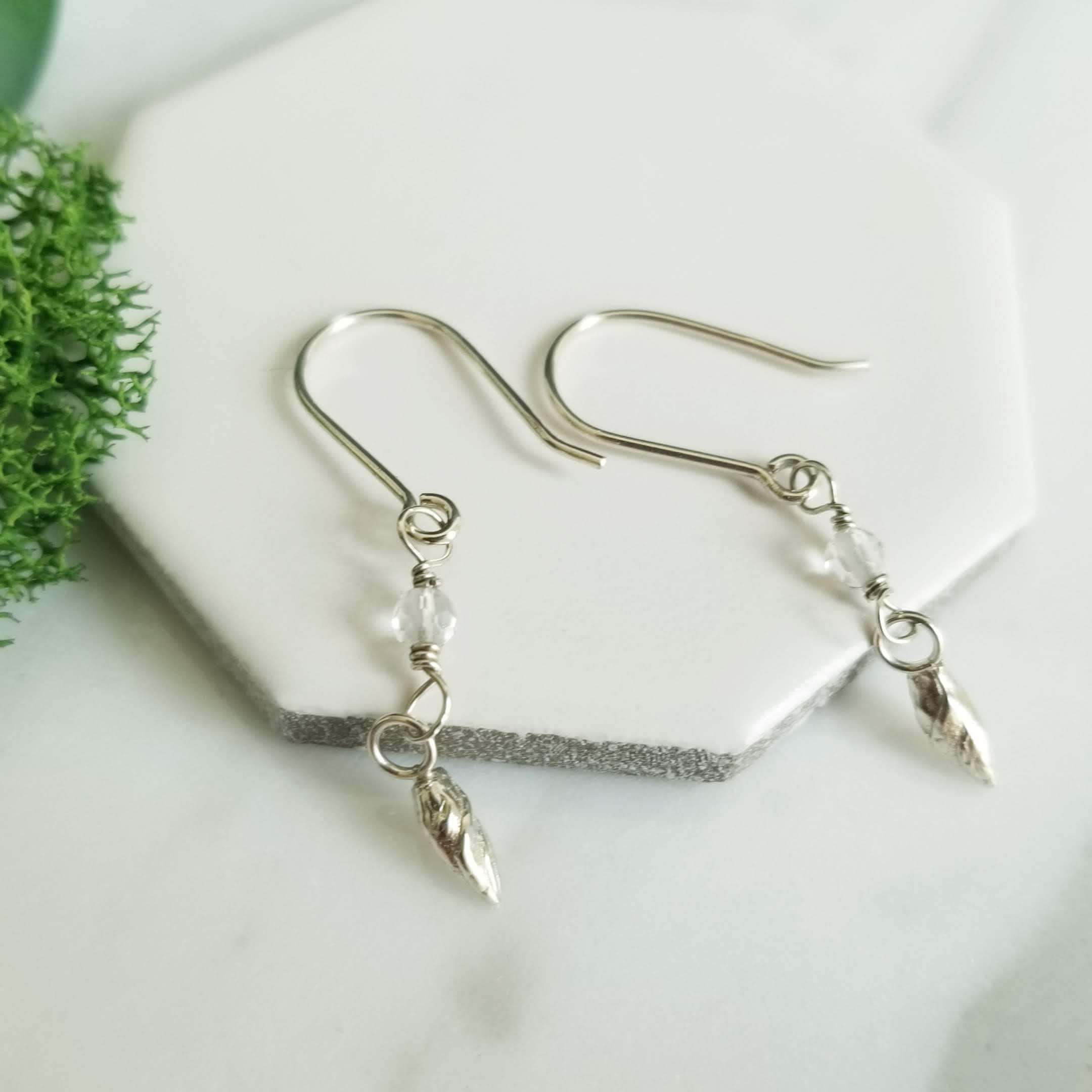 Ready to unfurl, tiny little hand-cast sterling silver leaf buds are suspended from sterling silver earwires.