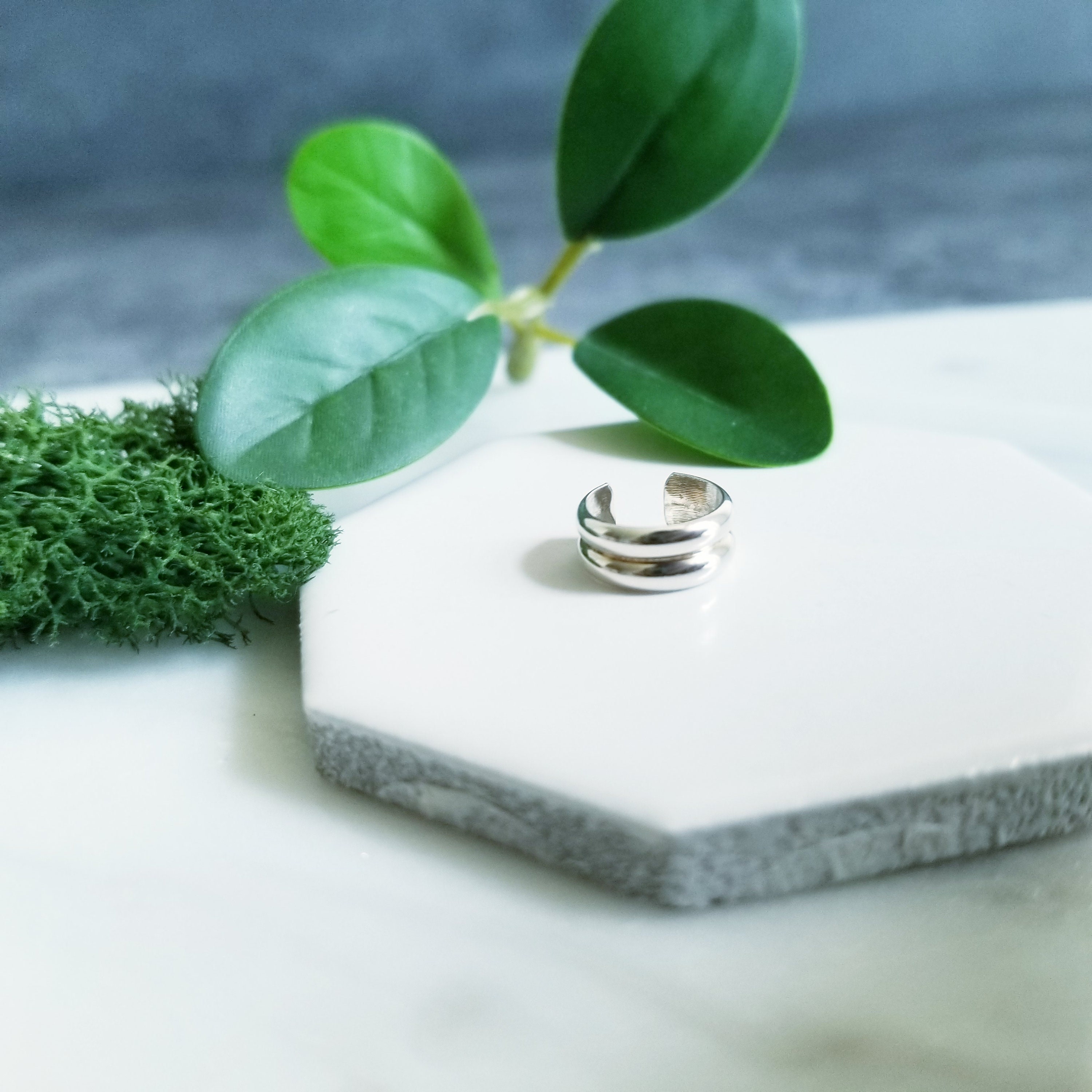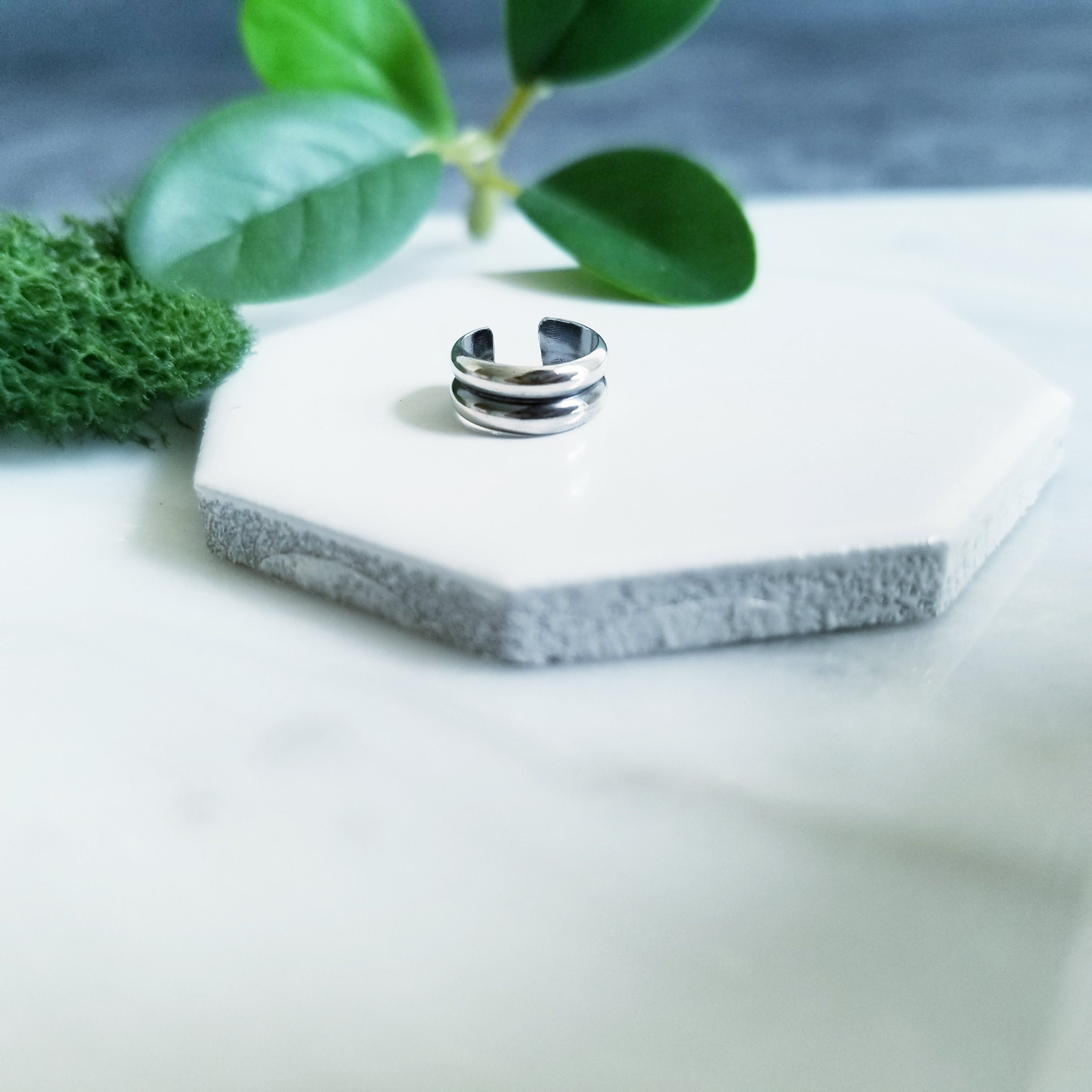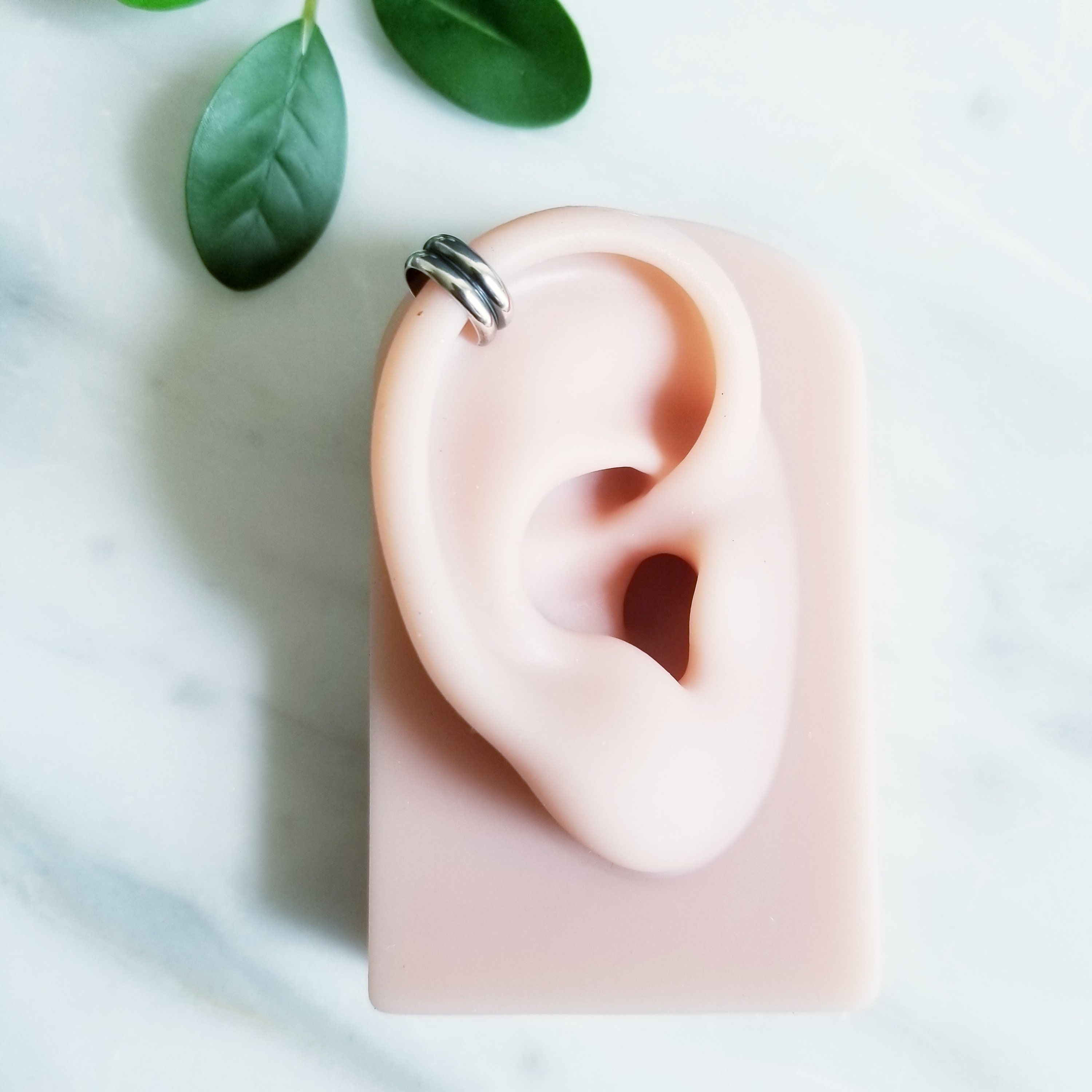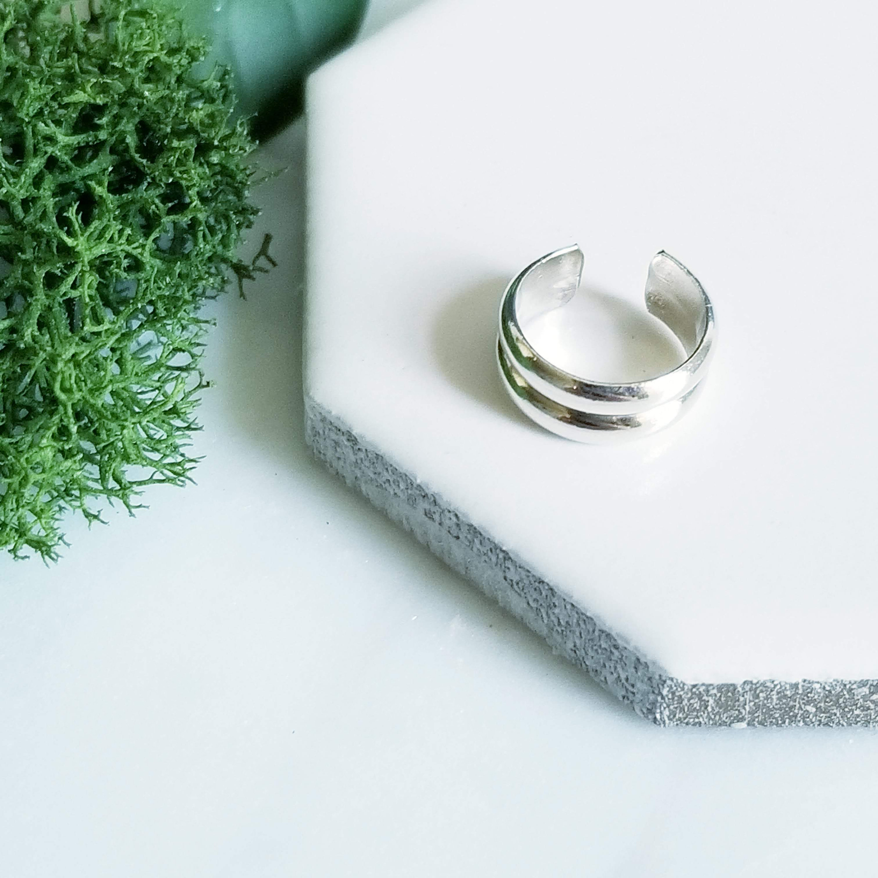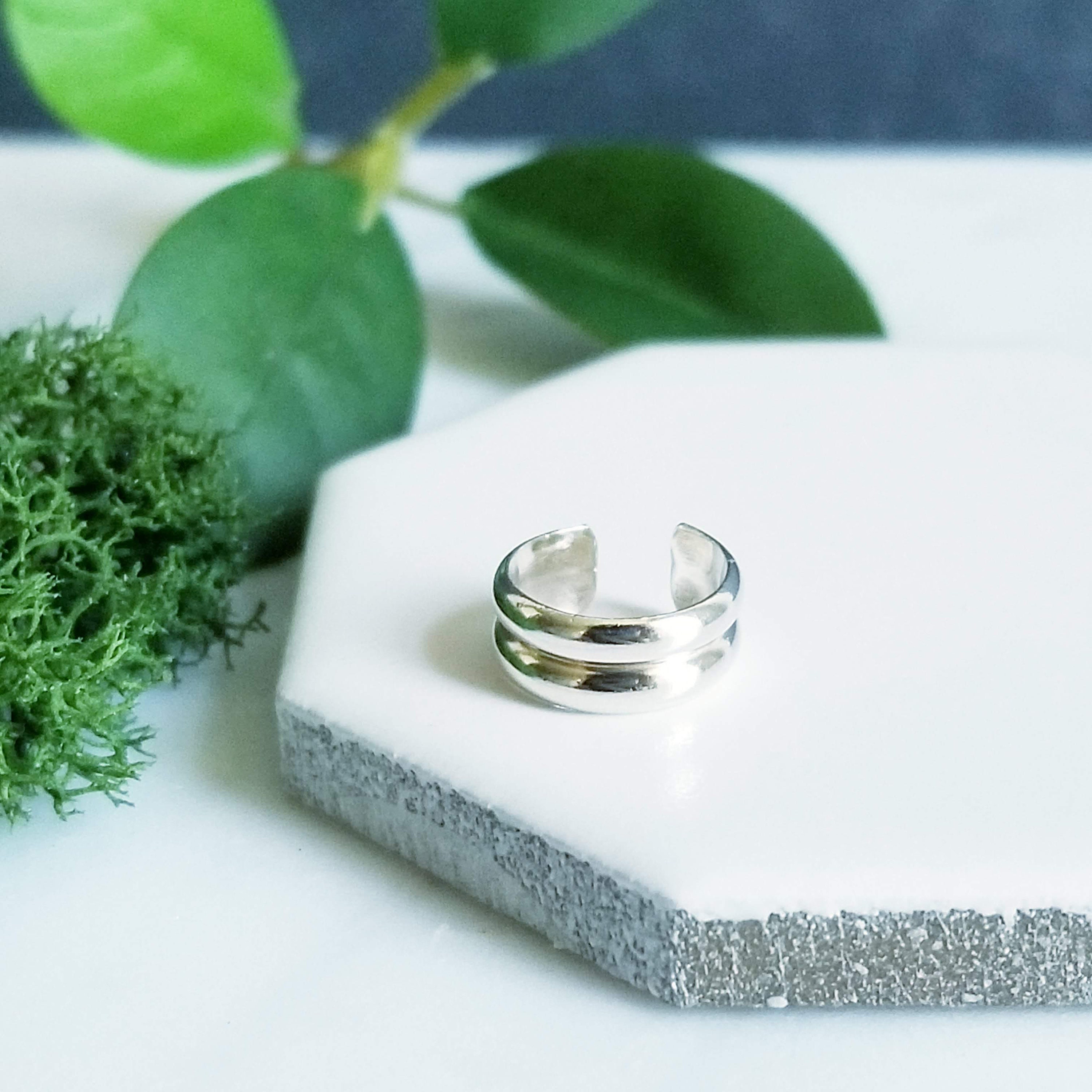 Light & Comfortable , Double half round sterling silver wire is formed into a small hoop, simply slide onto your upper ear at the top.