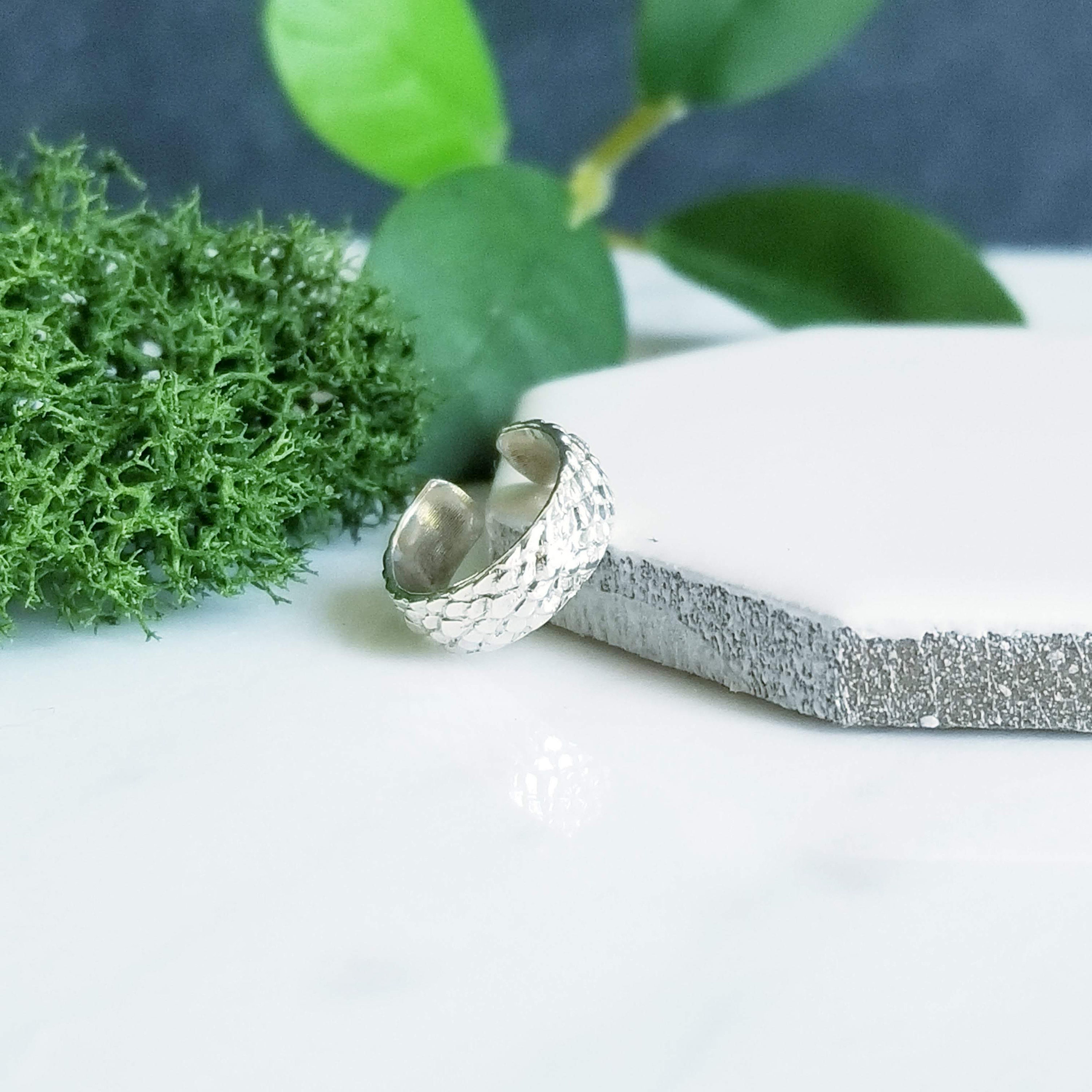 Snake skin textured wide sterling silver wire, available in 8mm or 10mm diameter, the 8mm is what I recommend if you wear your cuffs at the top of the ear, 10 mm works best across the middle.