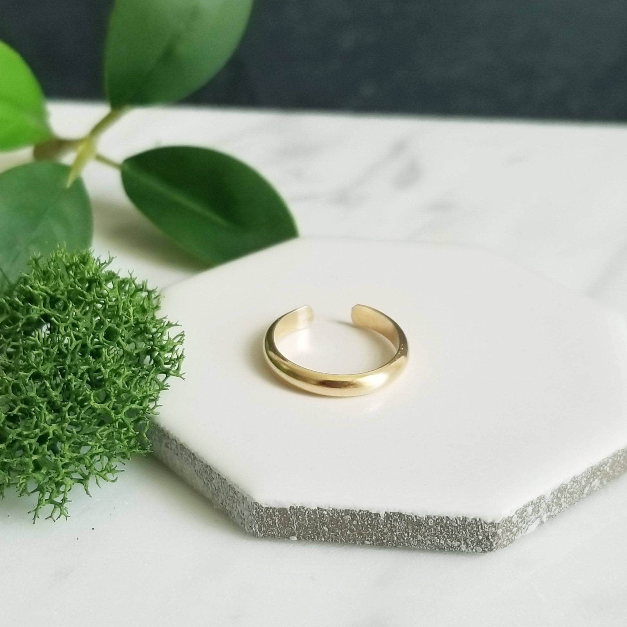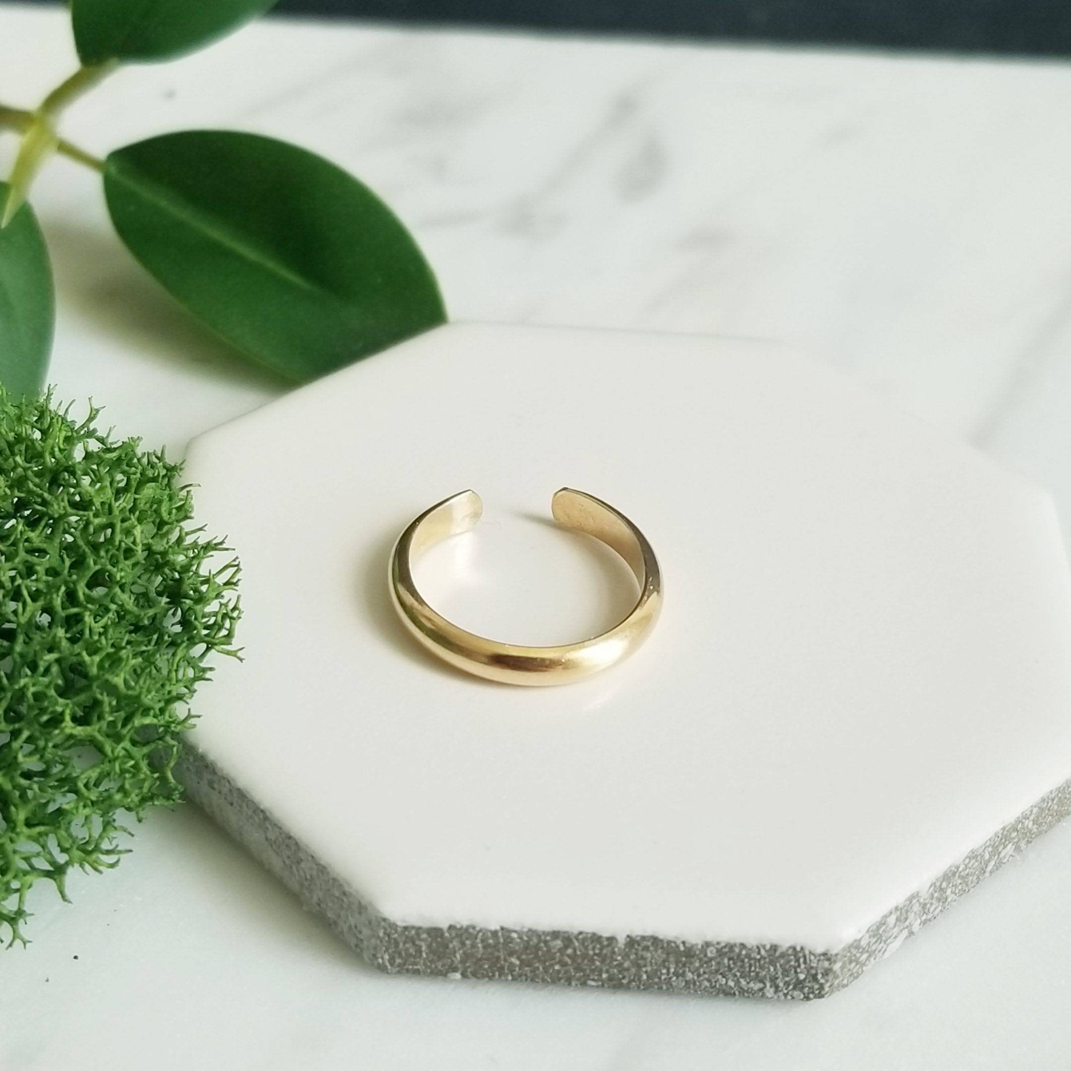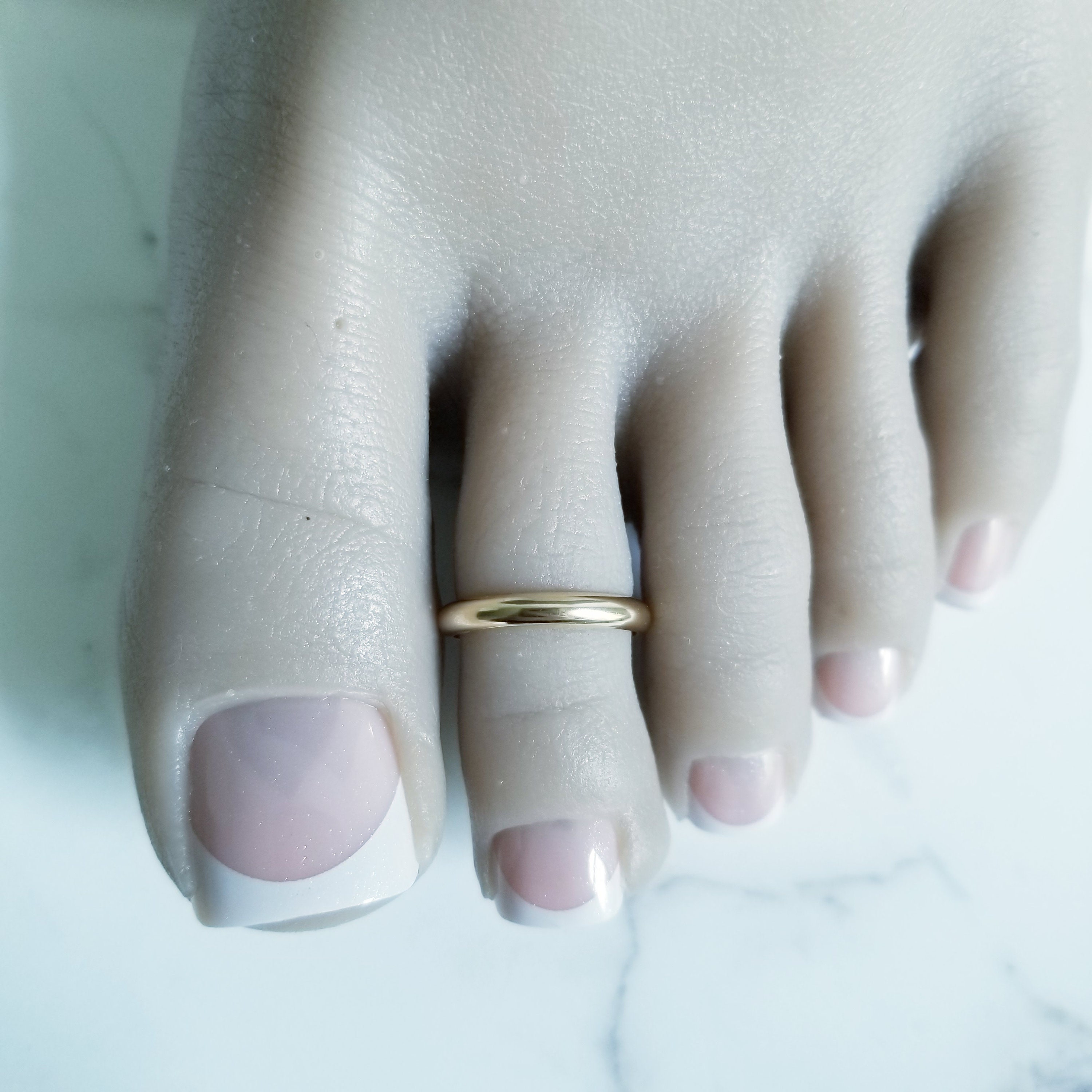 A wider version of the skinny satin smooth golden toe ring, 14K Gold Fill wire in a 2.5mm half round wire, round on the outside, straght and smooth on the inside.