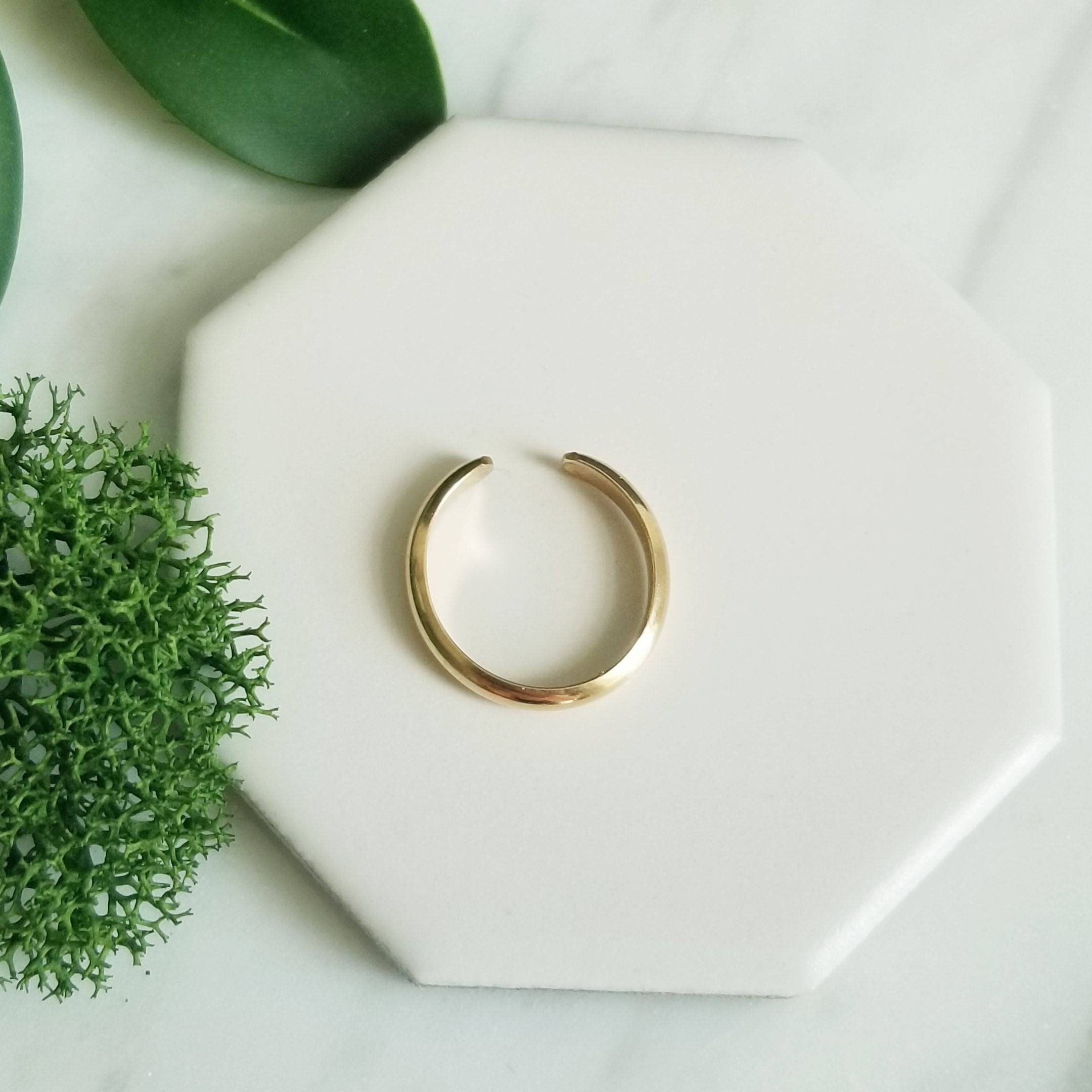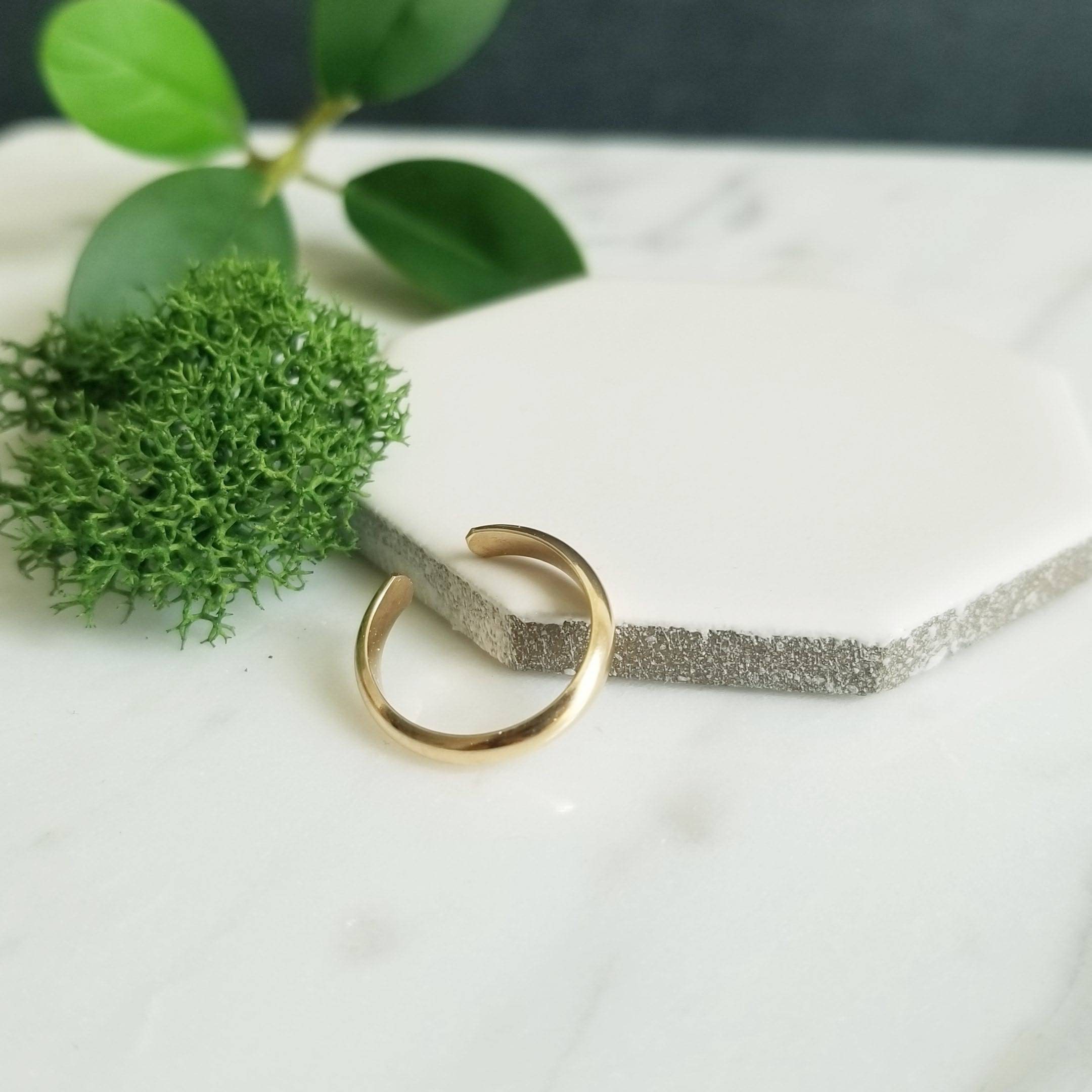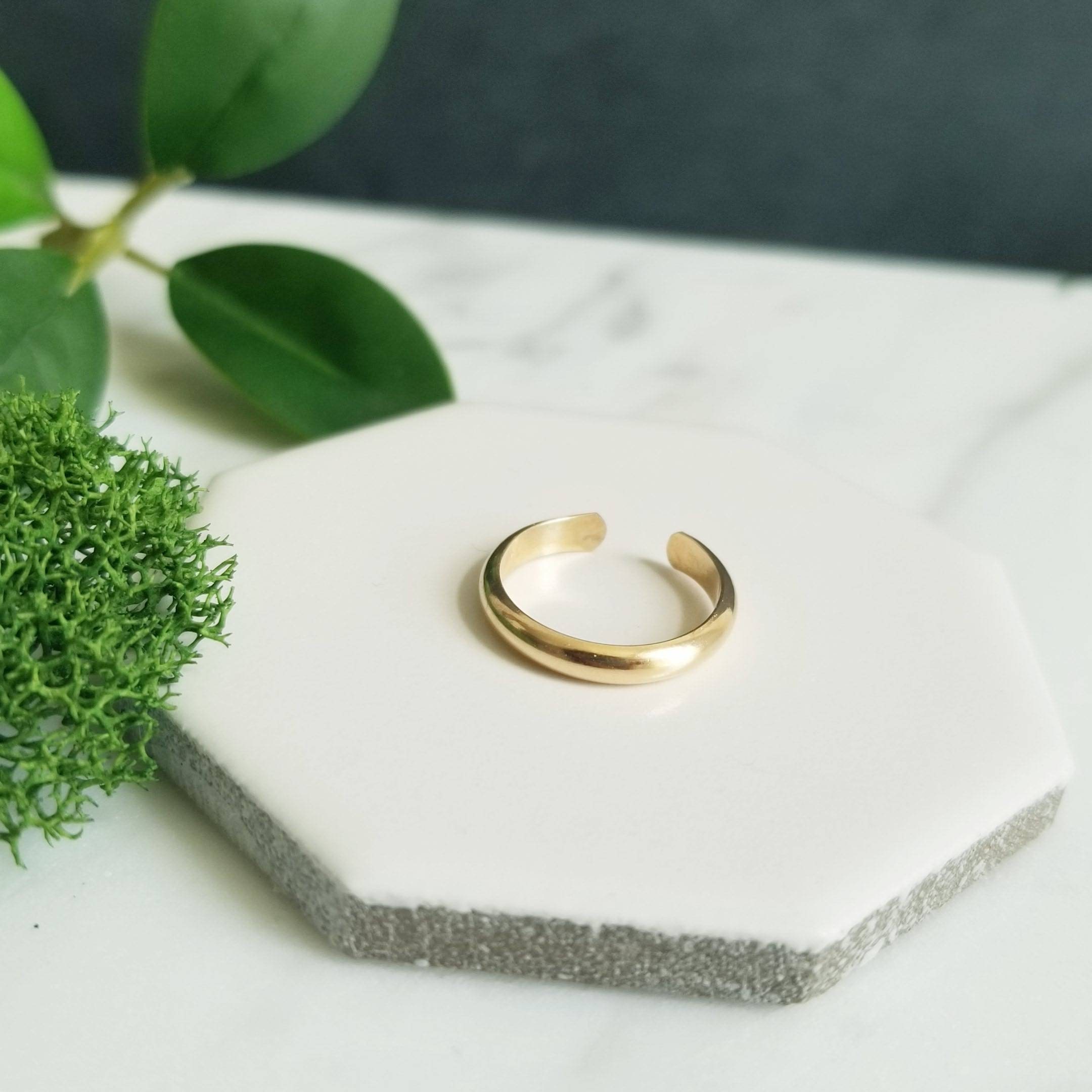 A wider version of the skinny satin smooth golden toe ring, 14K Gold Fill wire in a 2.5mm half round wire, round on the outside, straght and smooth on the inside.