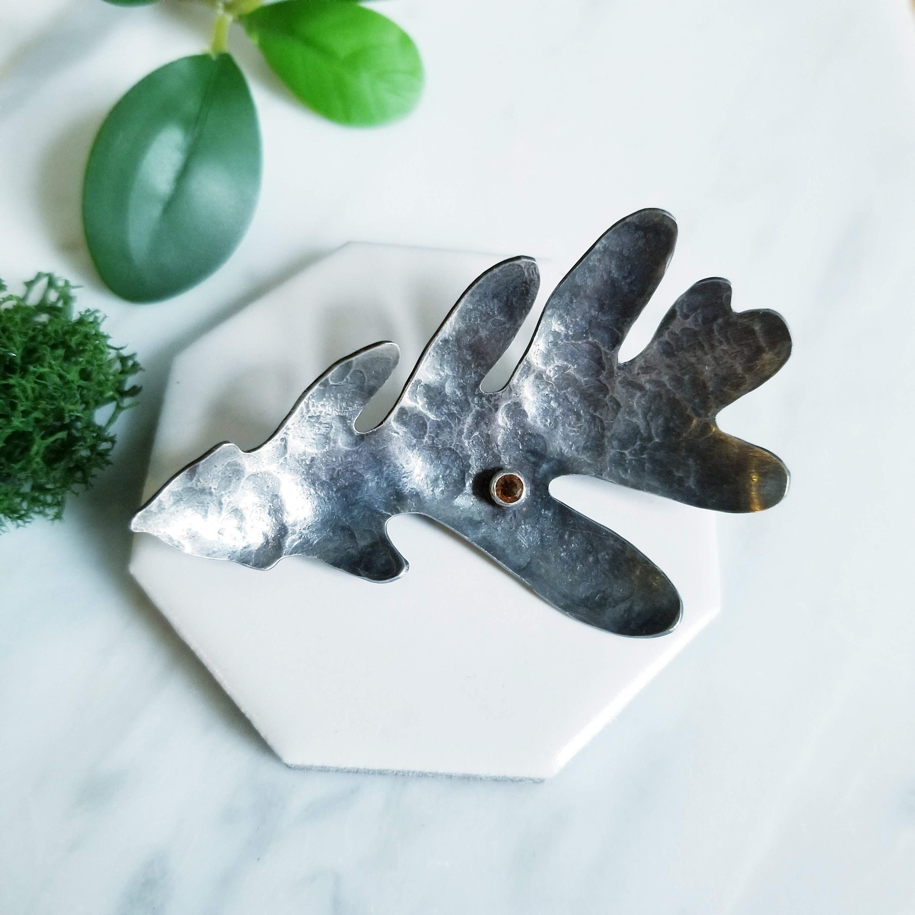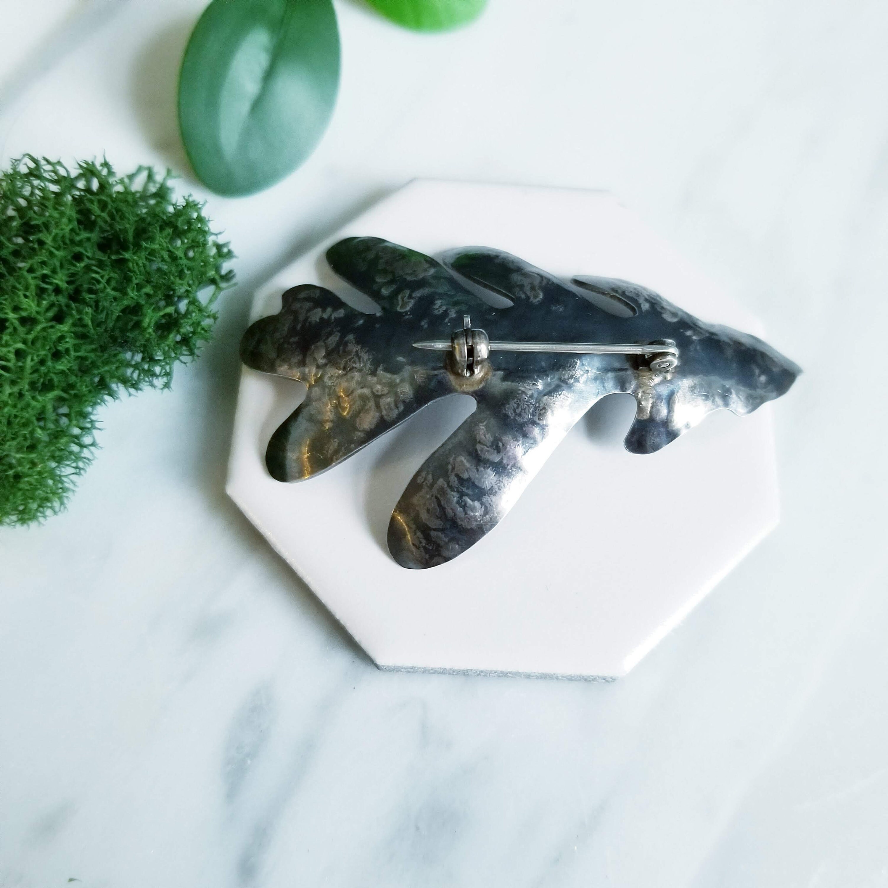 The brooch has been given a patina then brushed to highlight the hammer marks.