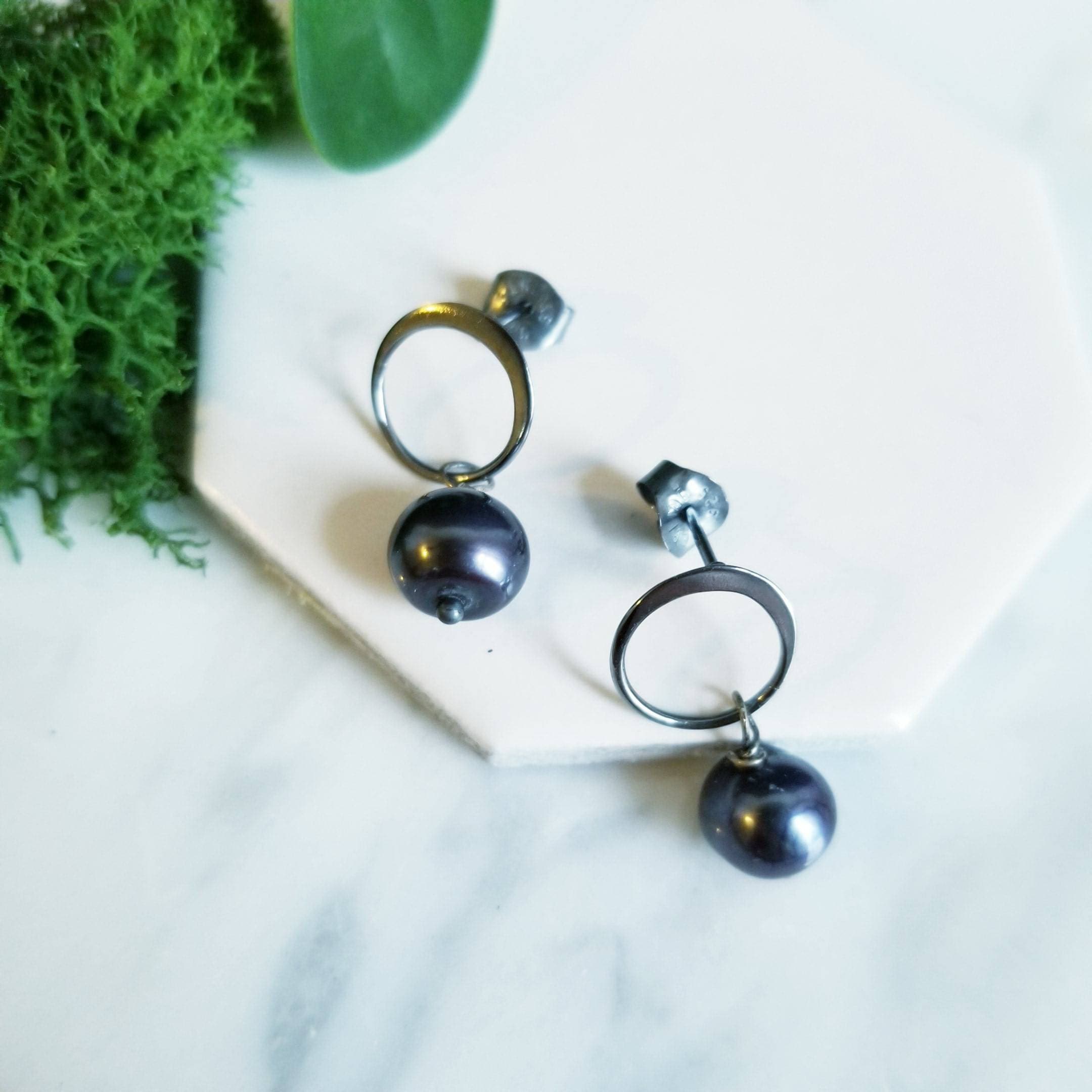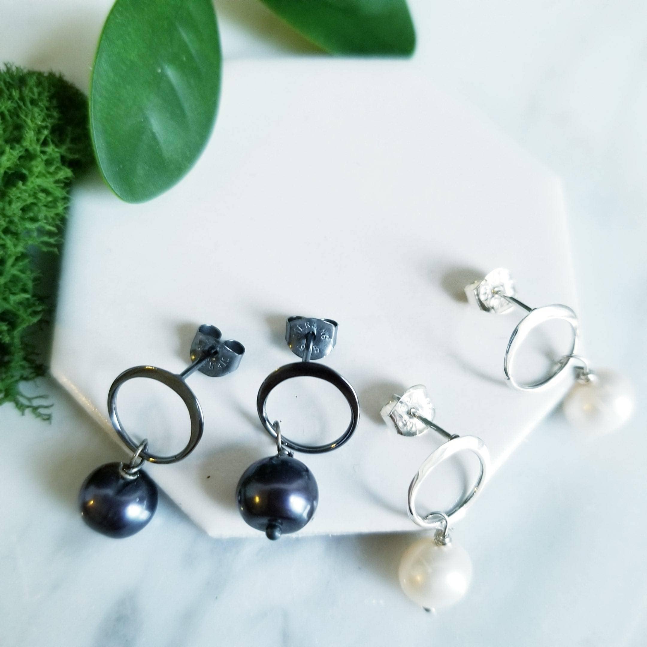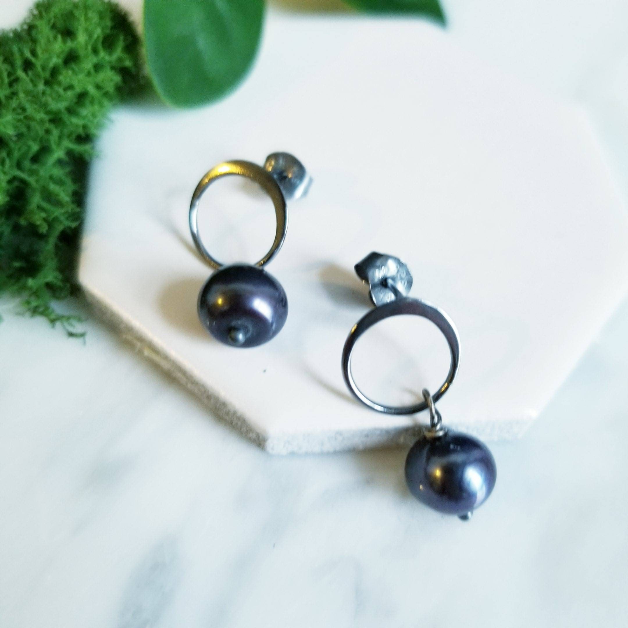Choose from oxidized sterling with an iridescent pearl or a polished sterling with a white pearl.