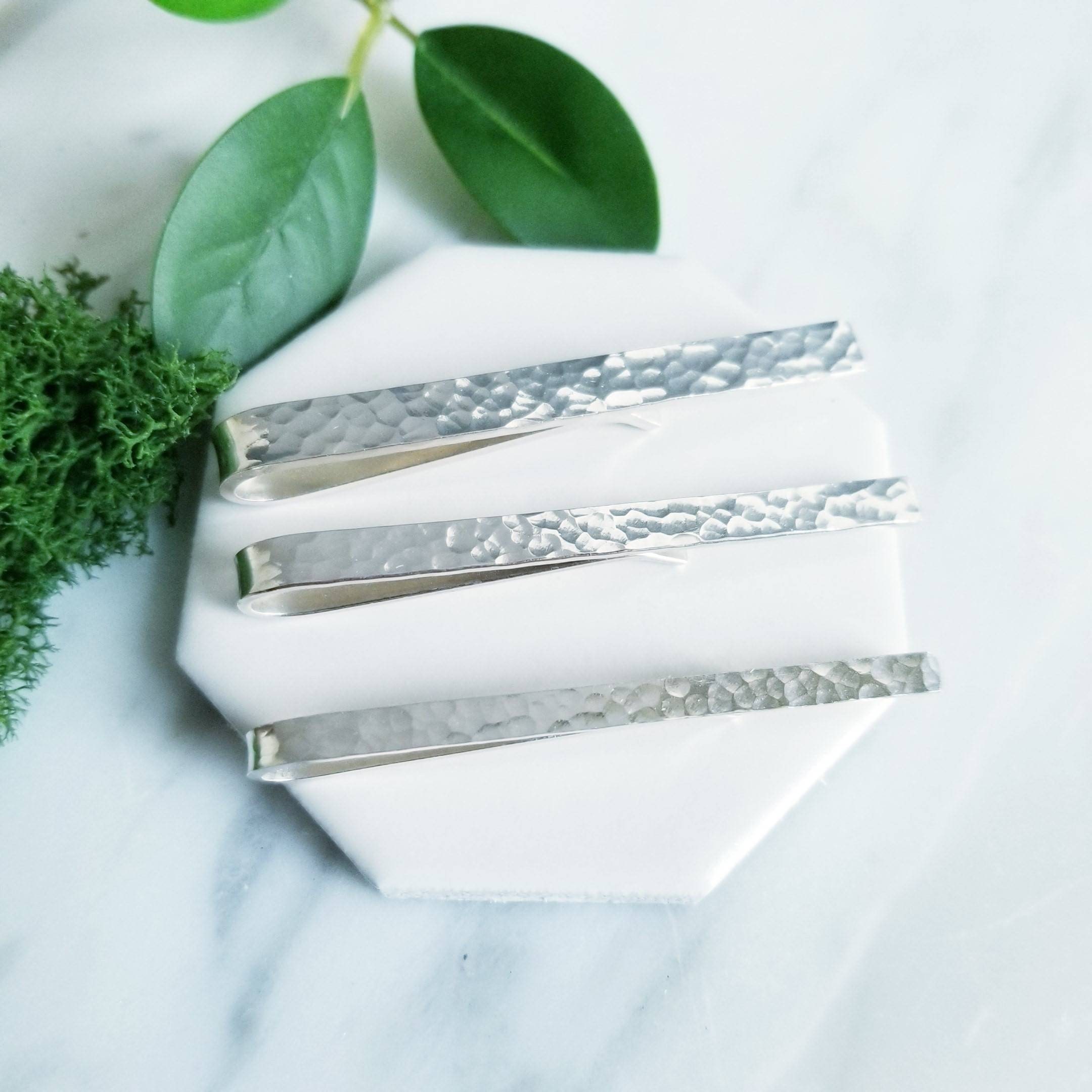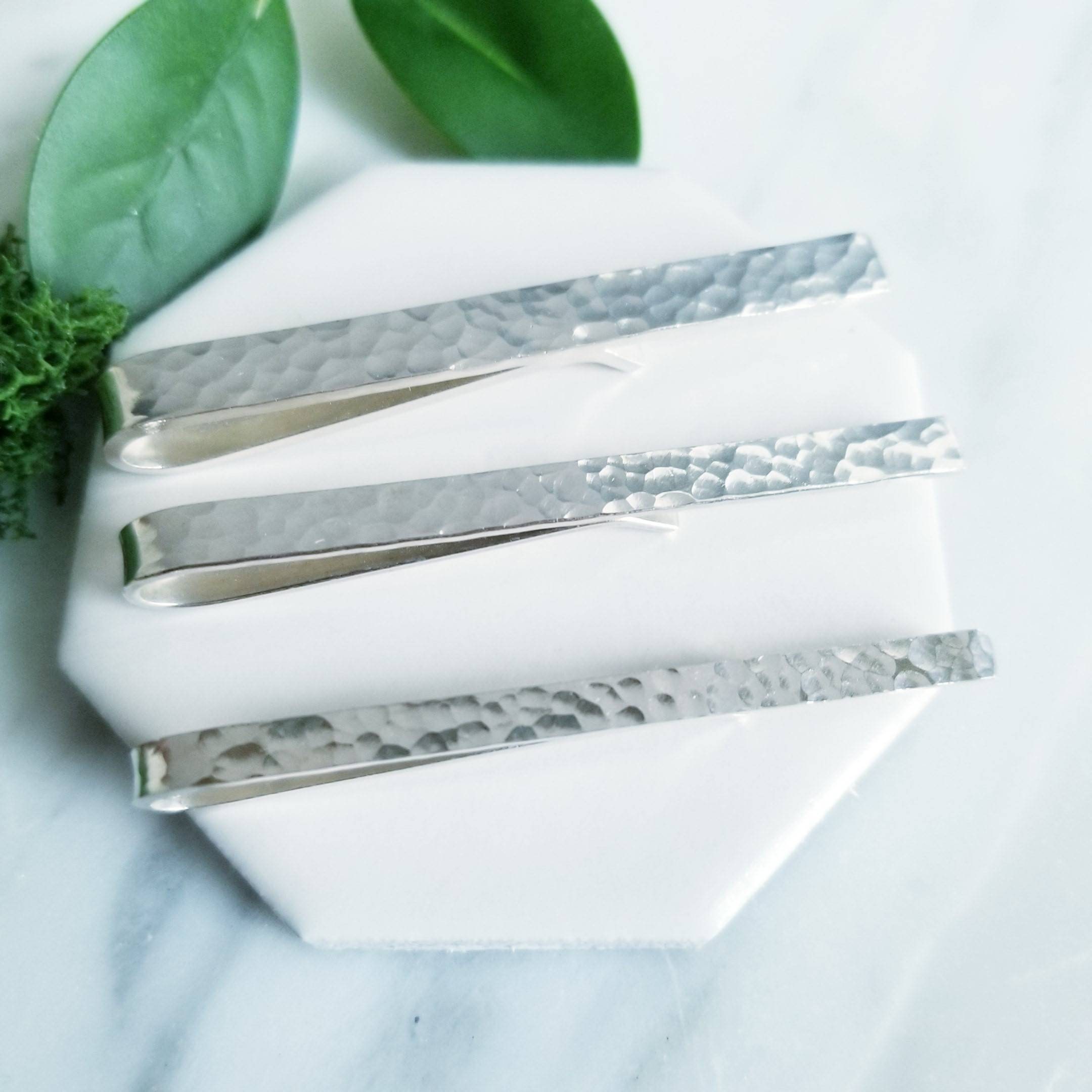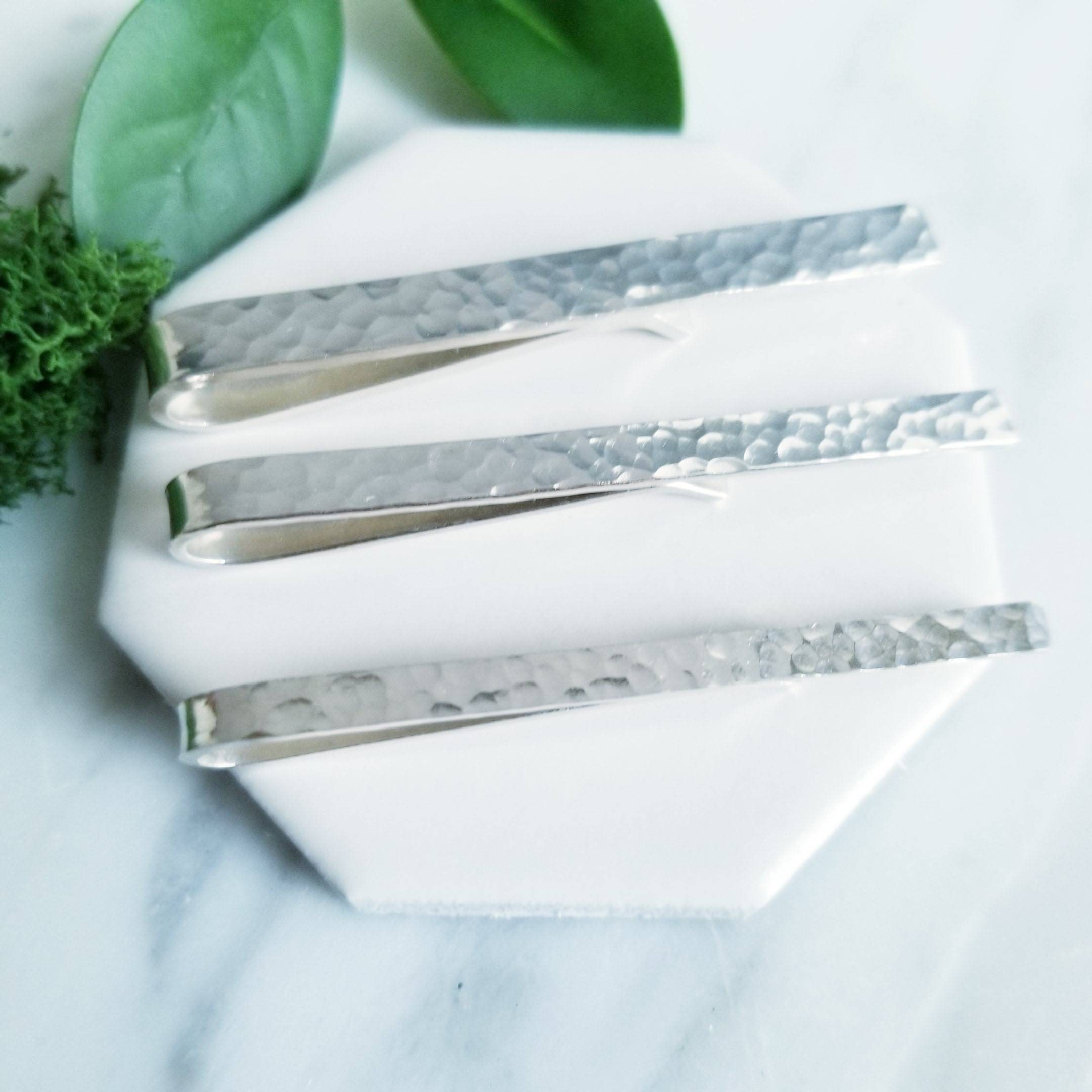 Sterling Silver hammered tie bar, perfect for that guy who rocks his suit. Hammered to a dimpled finish then polished to a nice shine.
