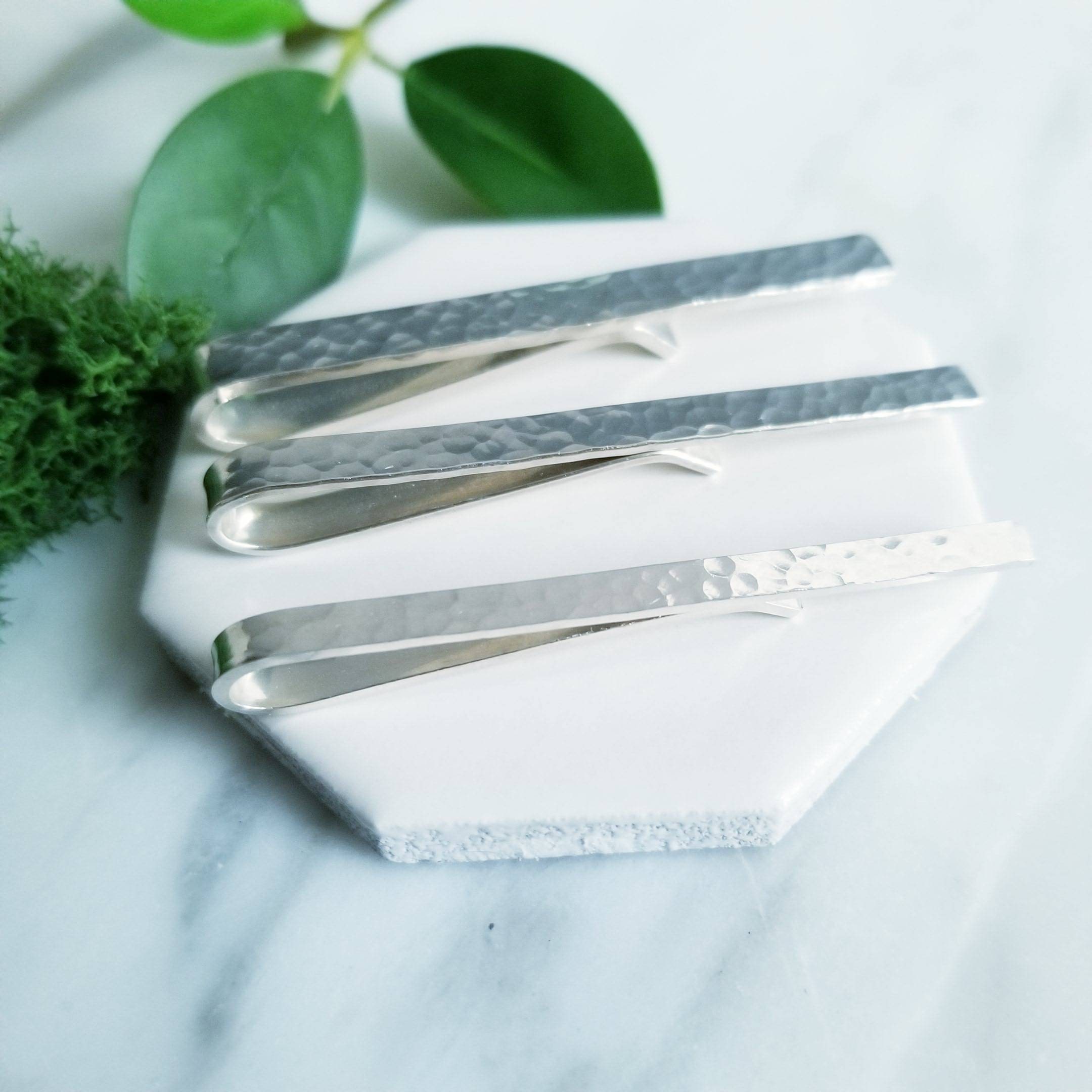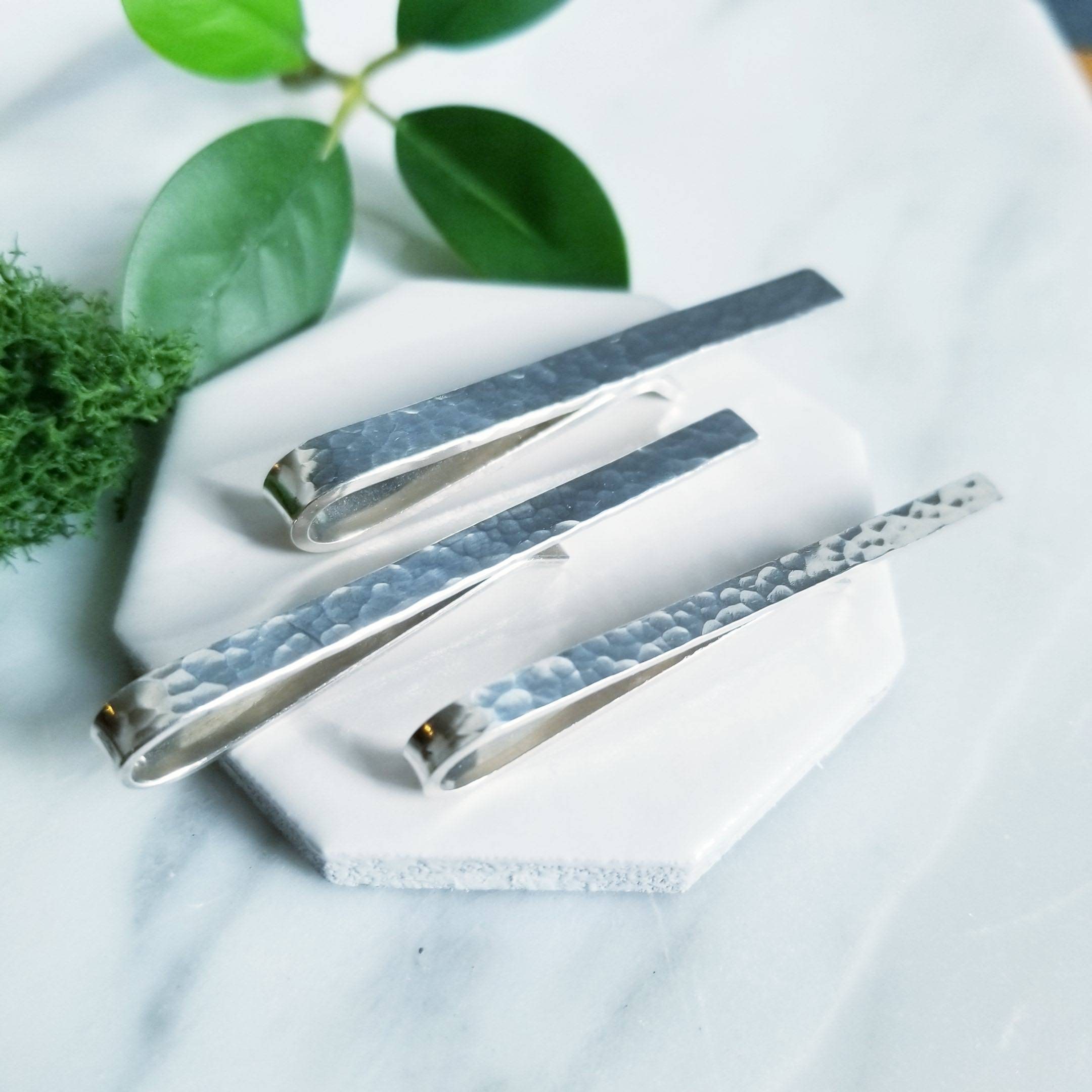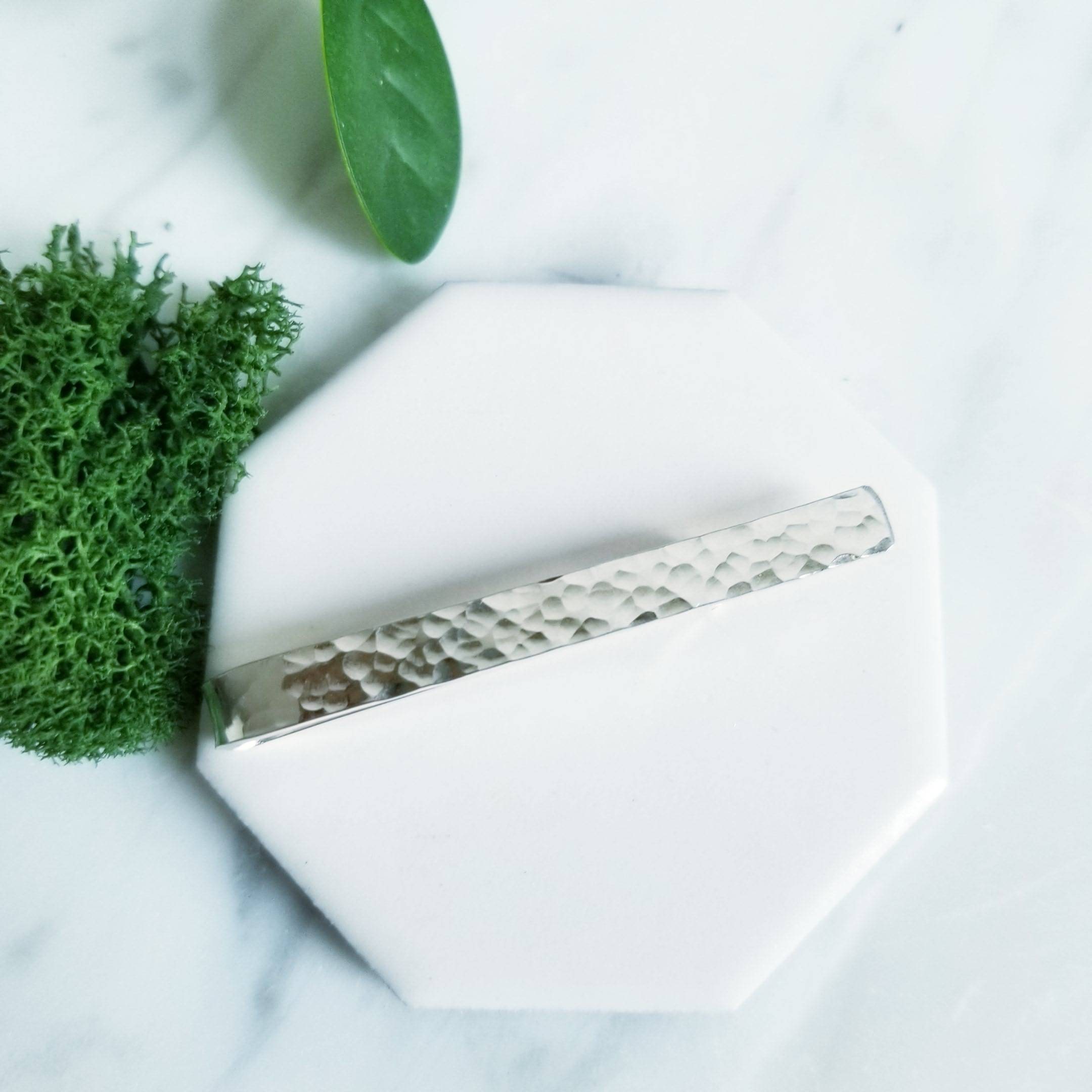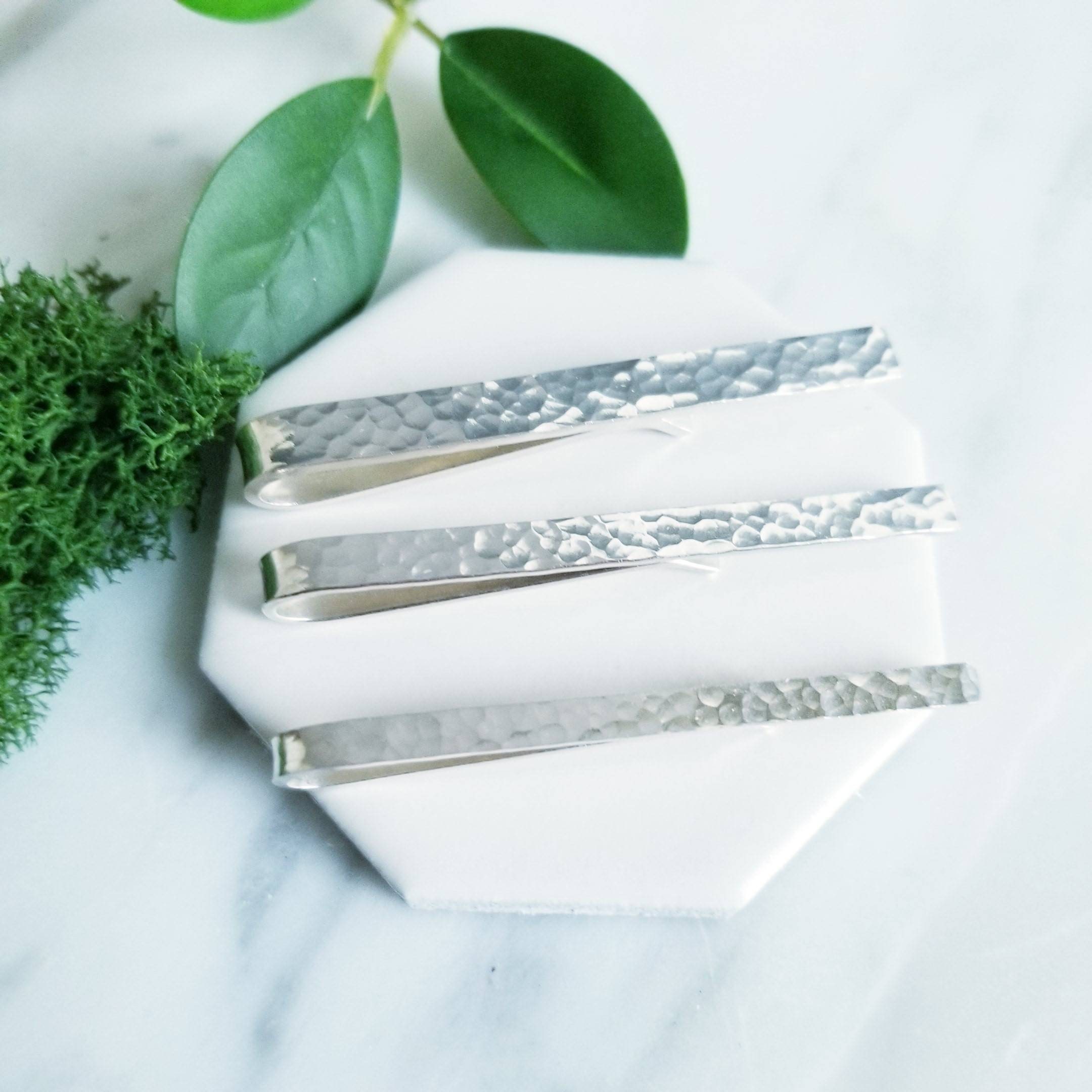 Sterling Silver hammered tie bar, perfect for that guy who rocks his suit. Hammered to a dimpled finish then polished to a nice shine.