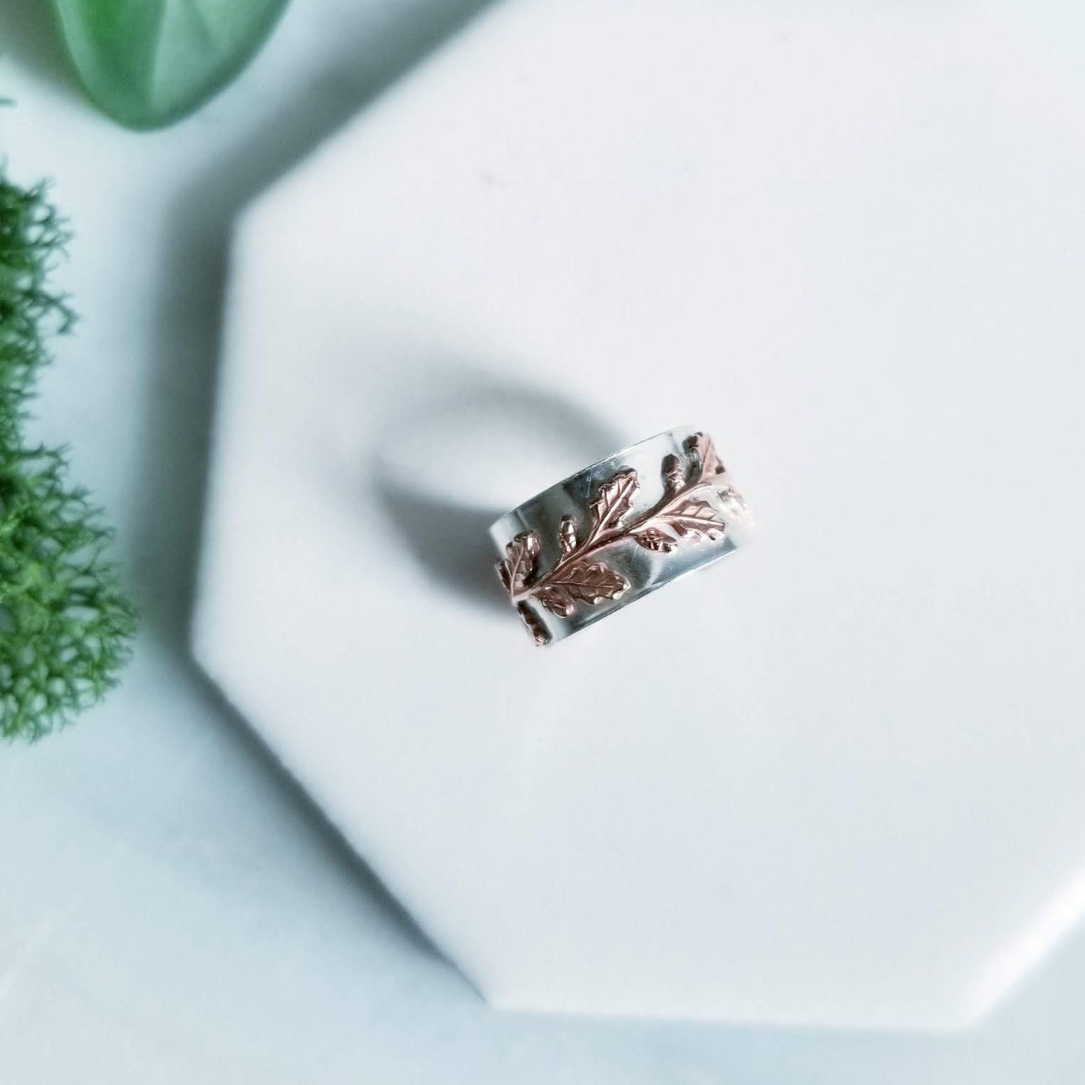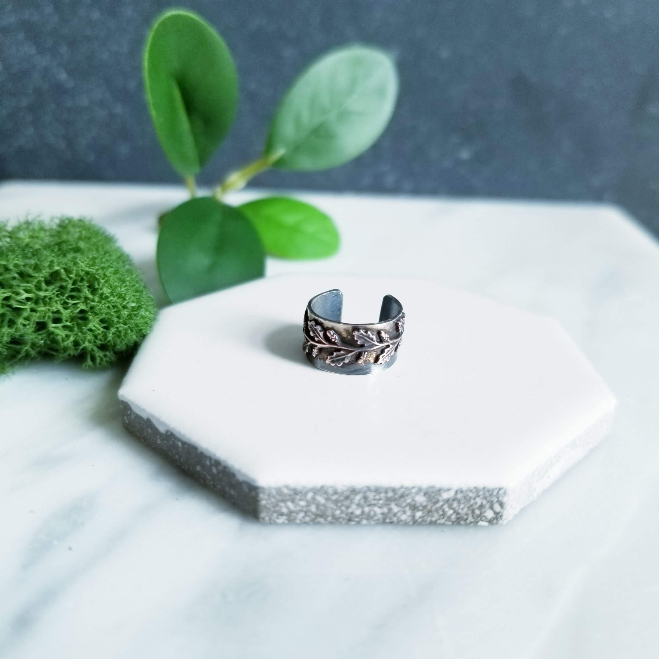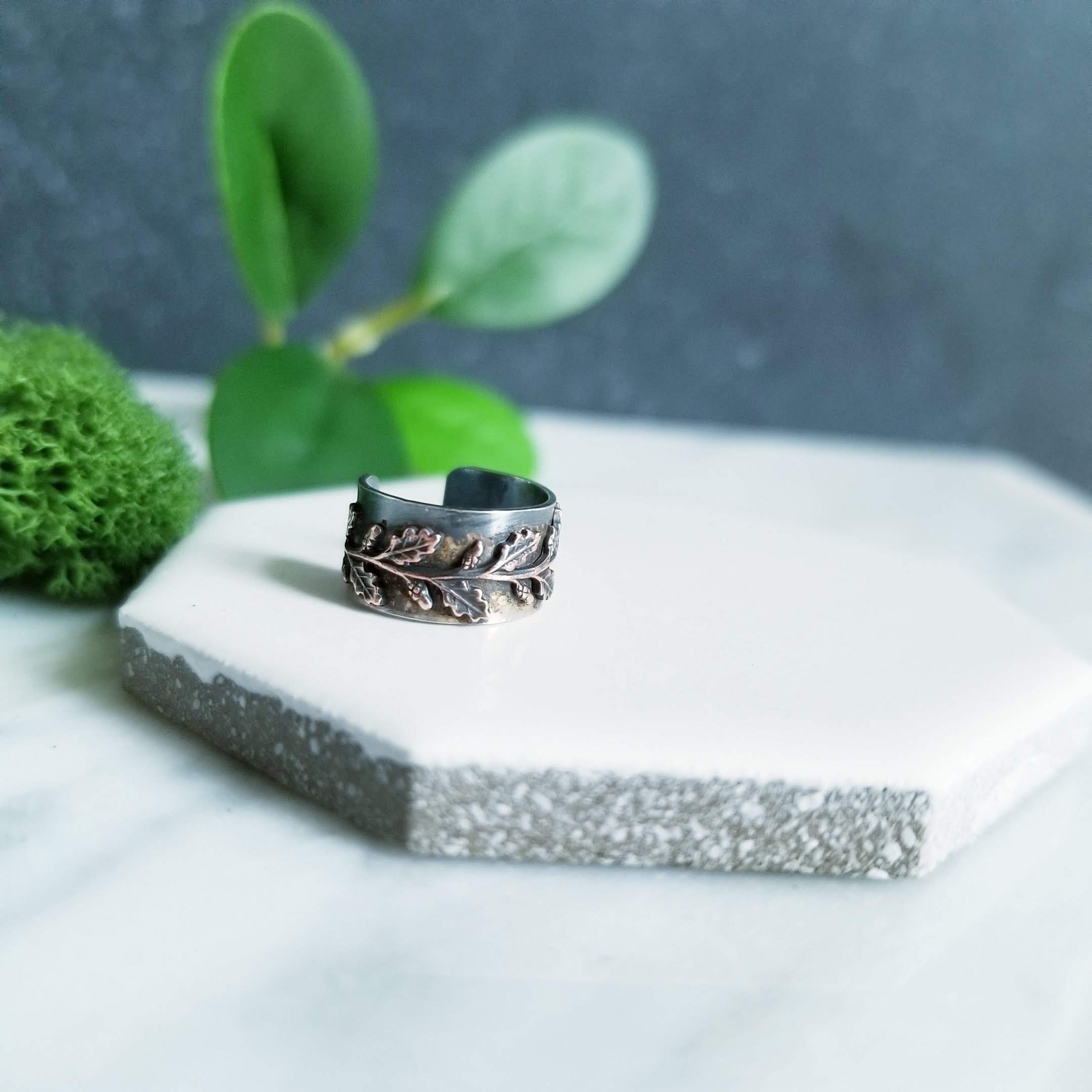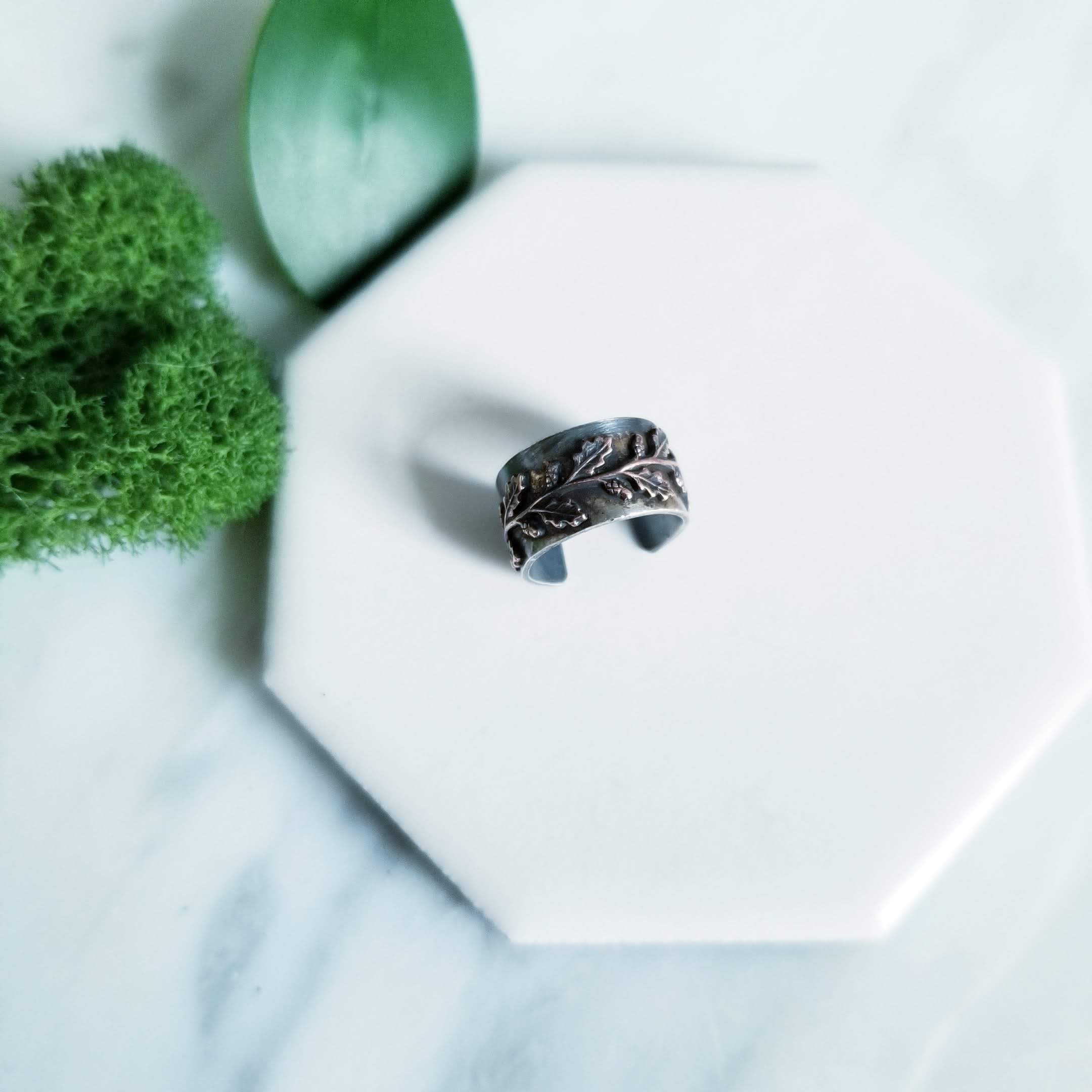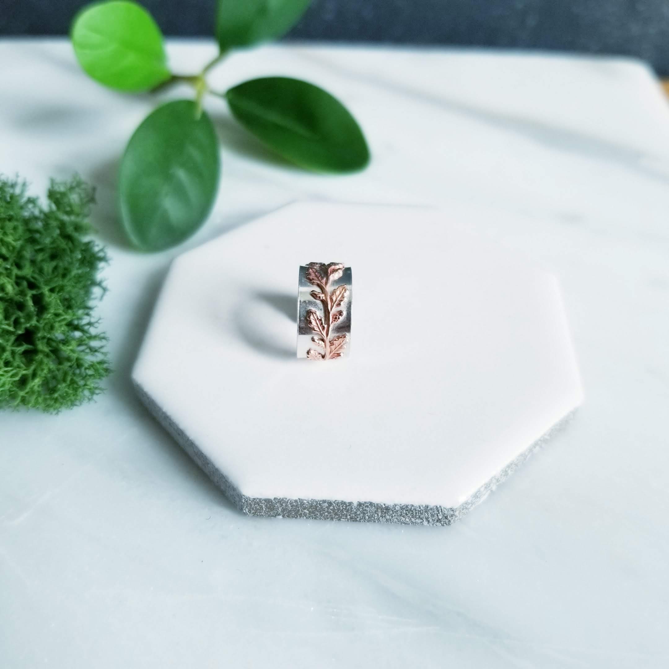 Sterling silver ear cuff base with a soldered on copper leaf branch garland soldered on and formed into a small circle, simply slide onto your upper ear at the top. 6mm wide.
