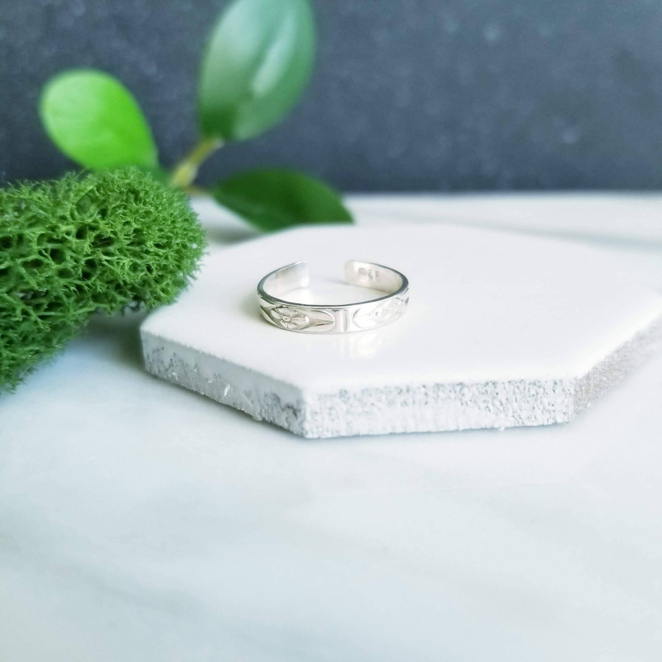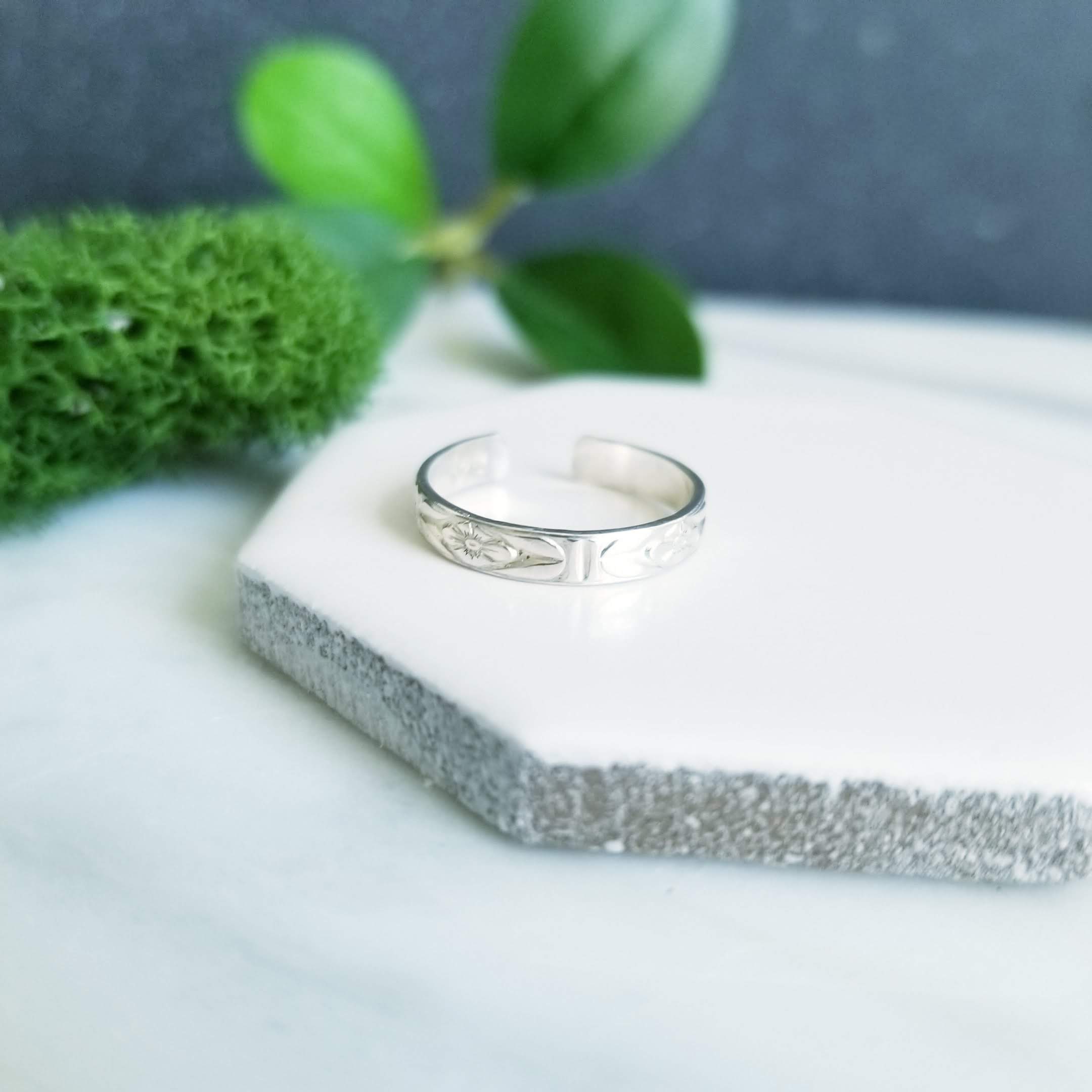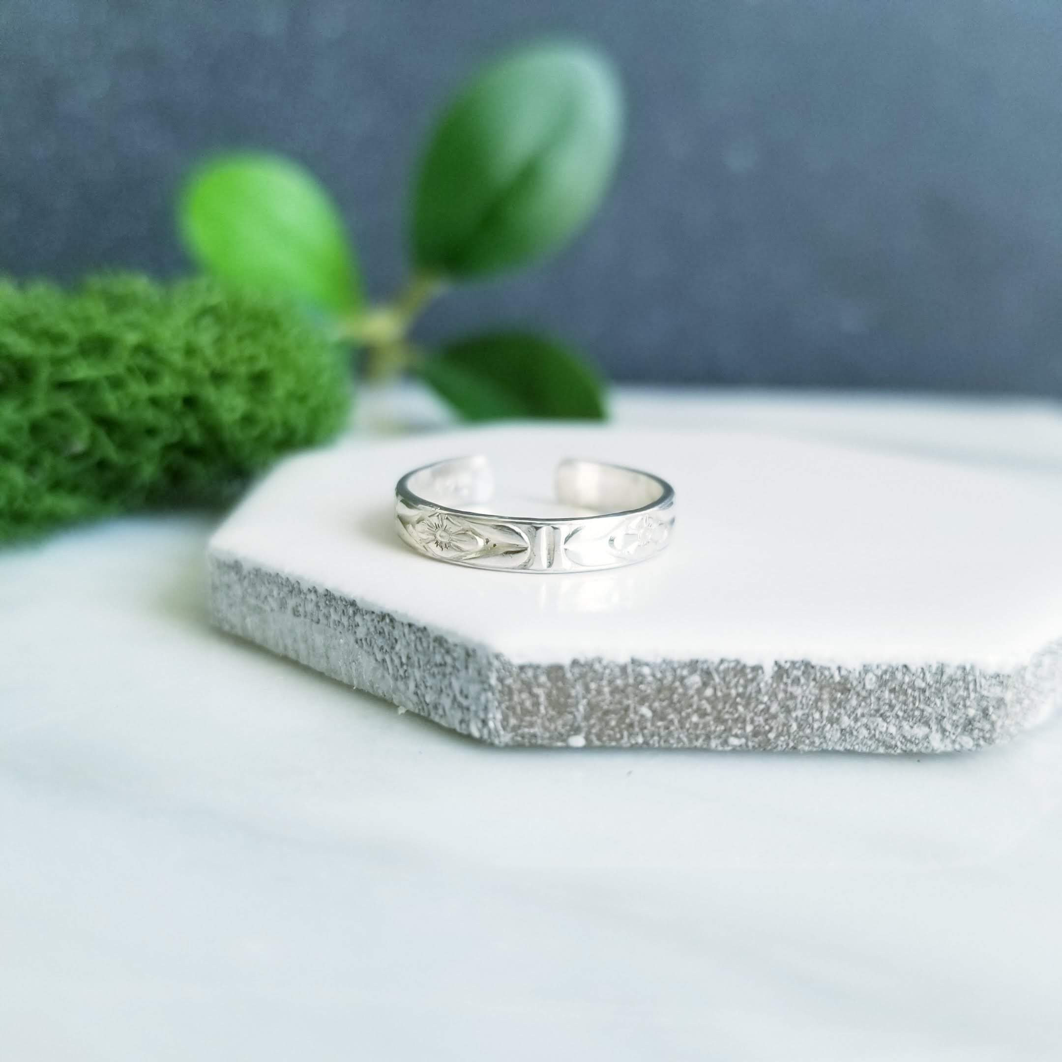 Floral Sterling Silver Toe ring, 2.5mm wide.