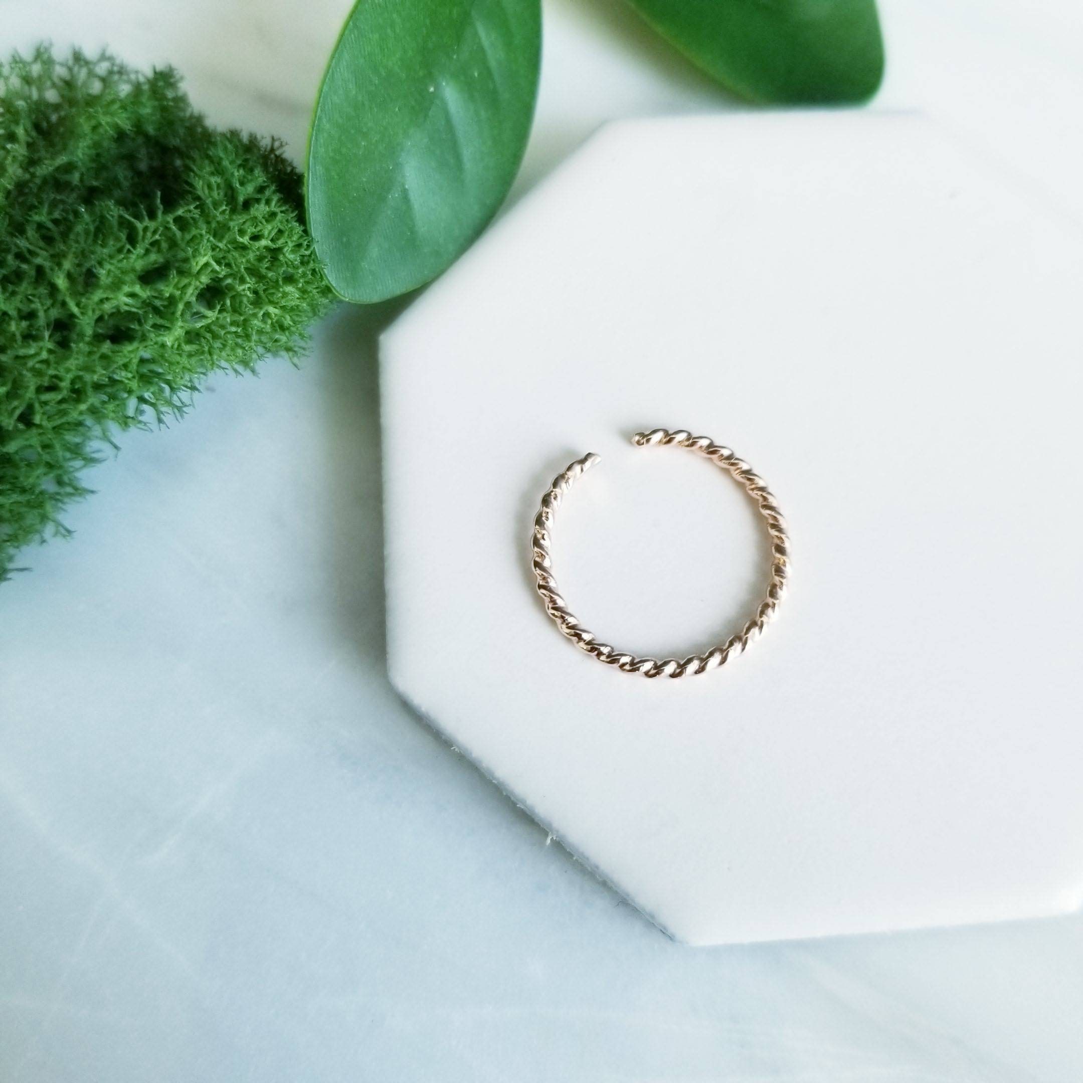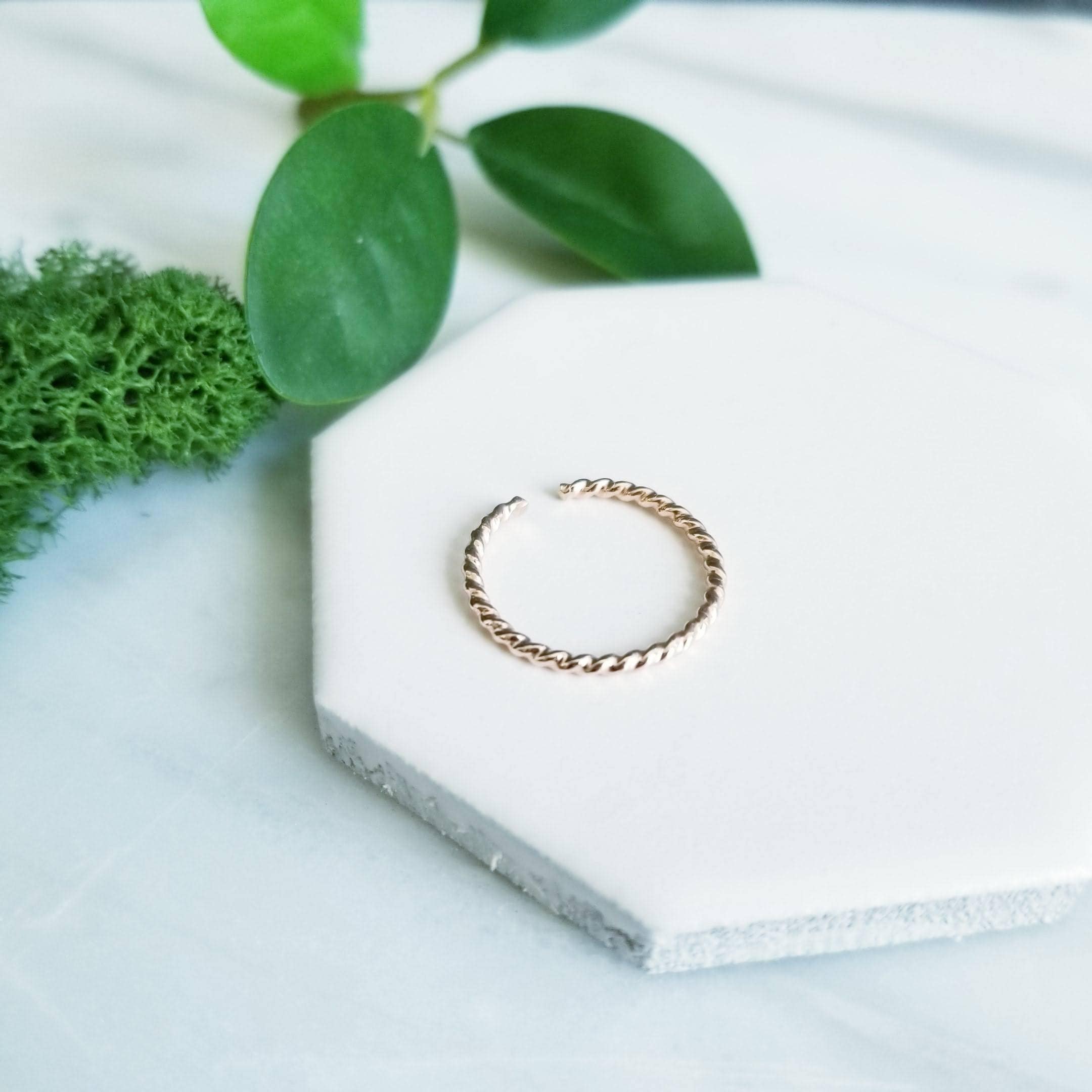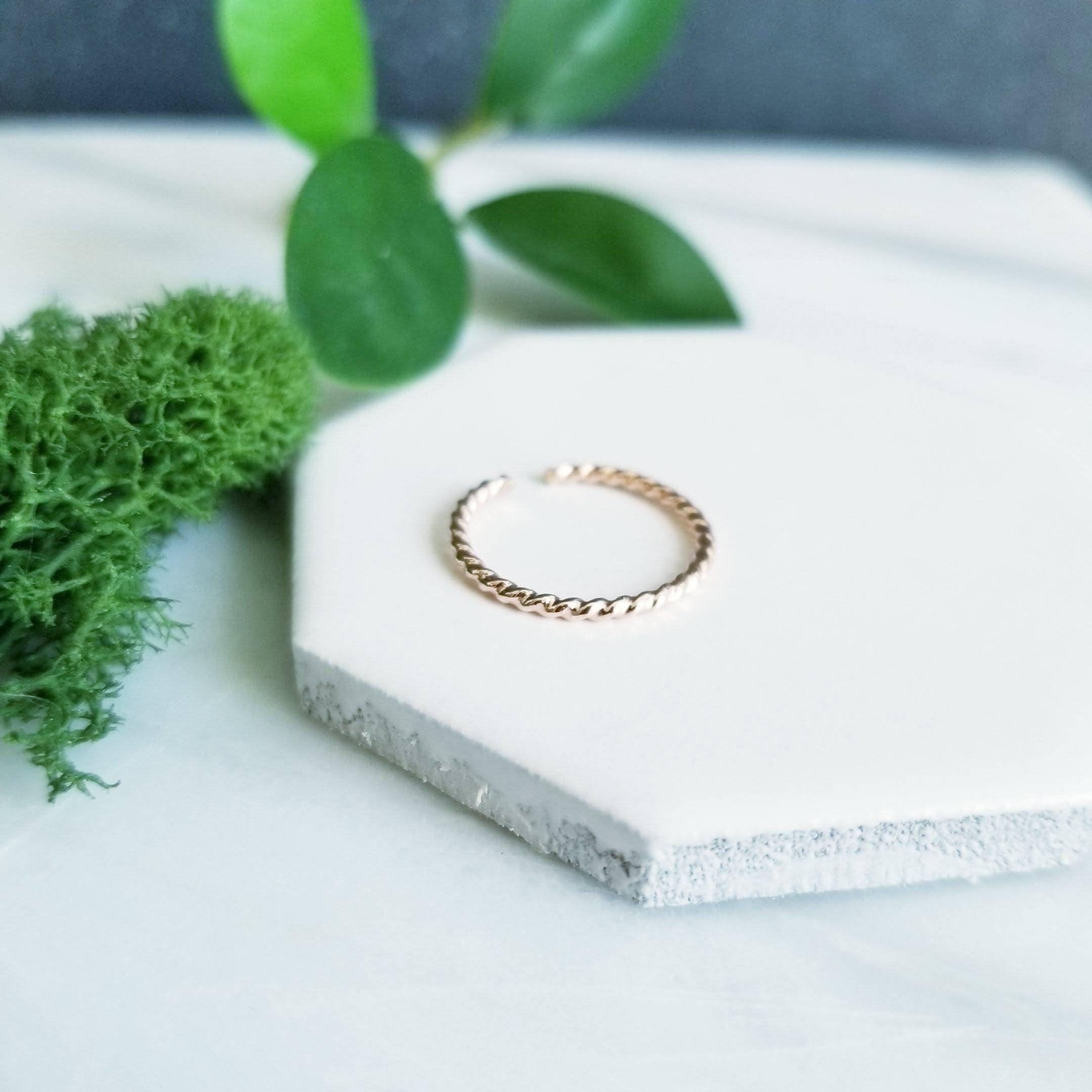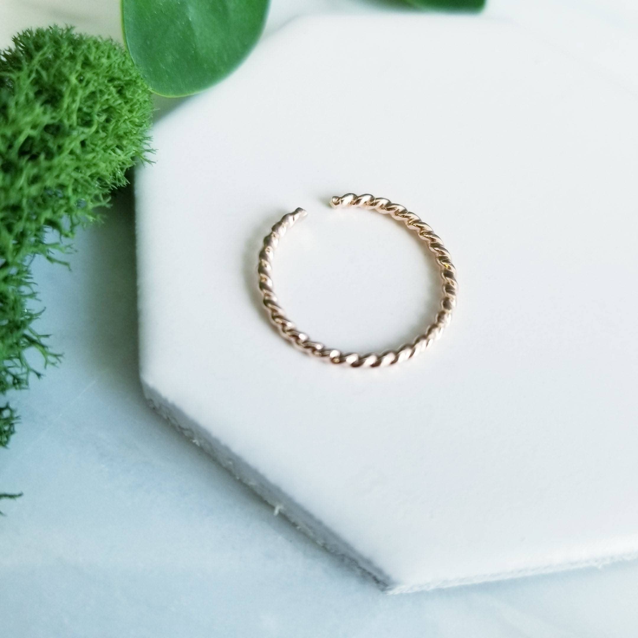 New in 14K Rose Gold Fill wire, slim twisted toe ring, 1mm wide.