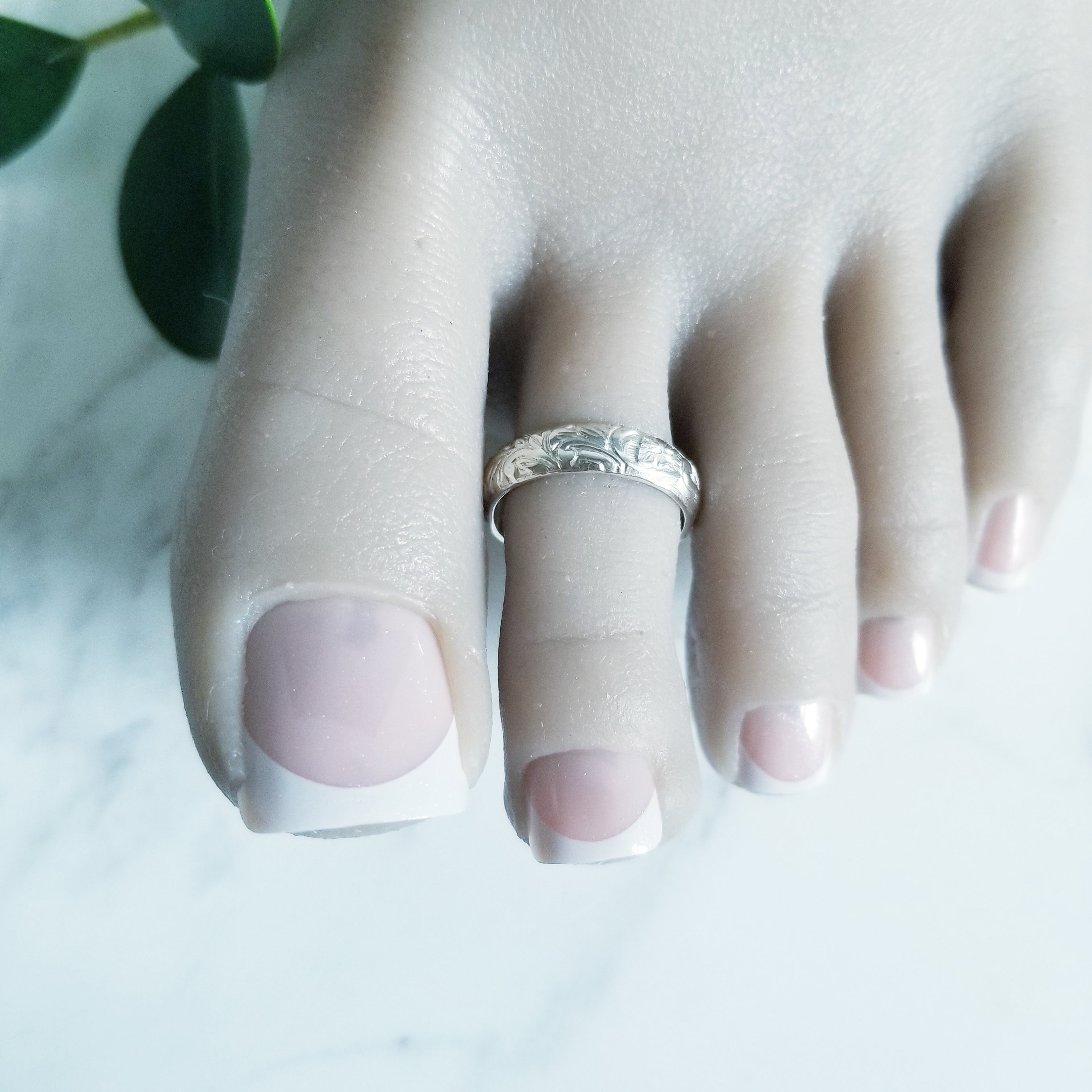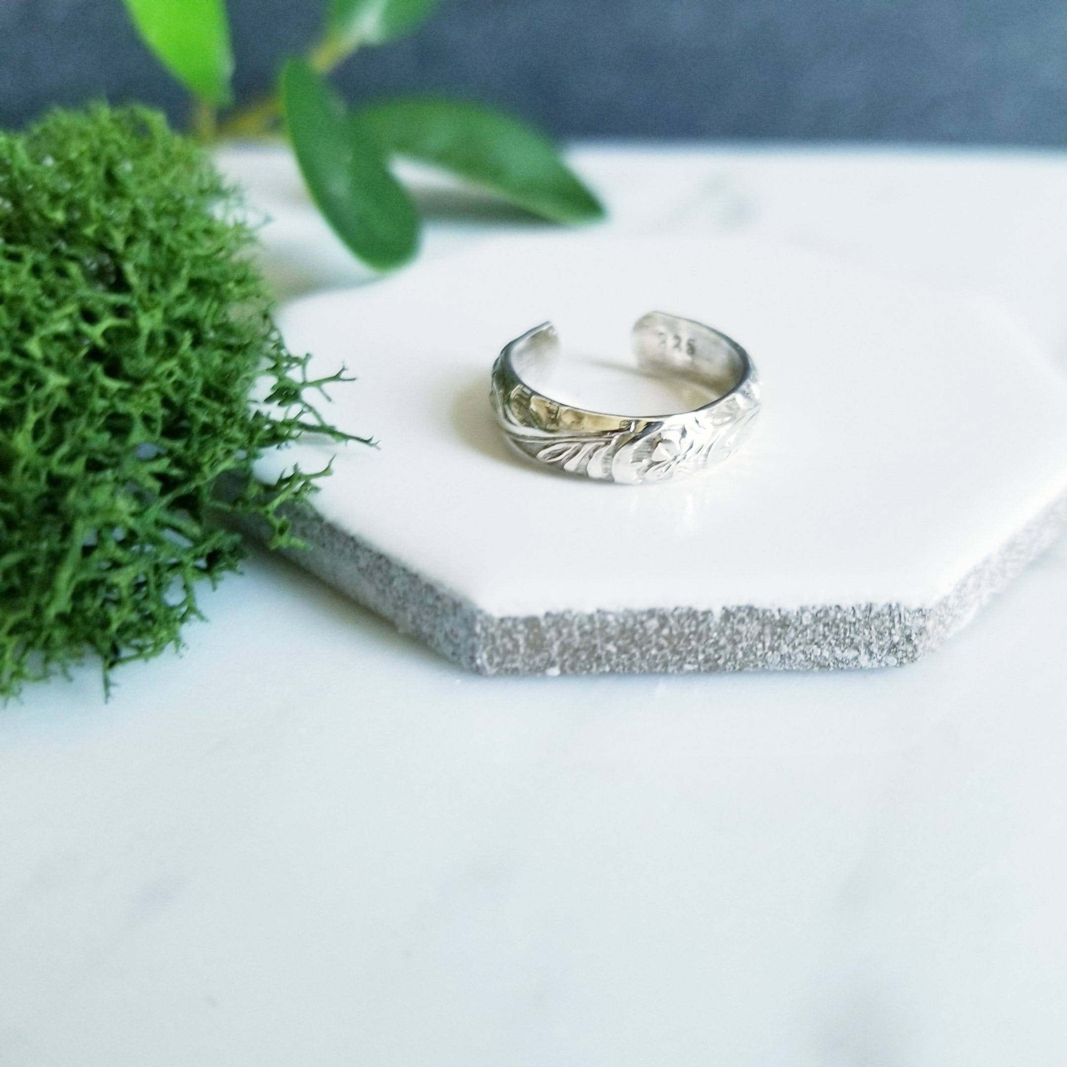 Floral Sterling Silver Toe ring, 4.5mm wide.