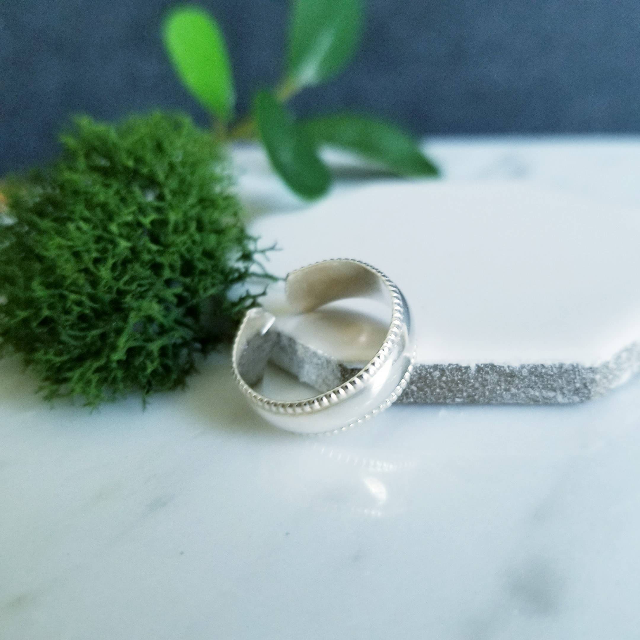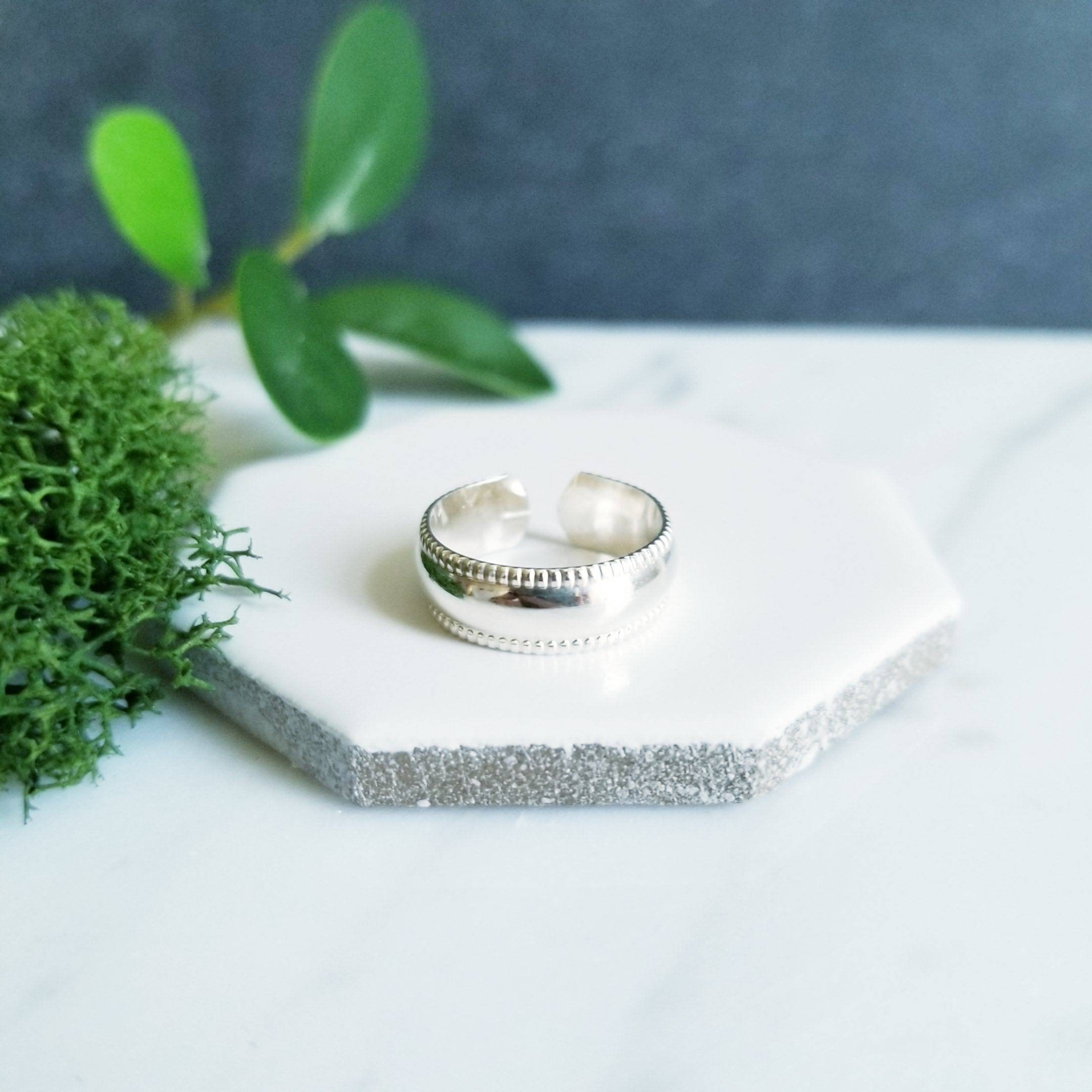 Wide Smooth Half Round Sterling Silver Toe ring with edge detail, 6mm wide. Available in Polished Sterling or Oxidized (black patina) Sterling.