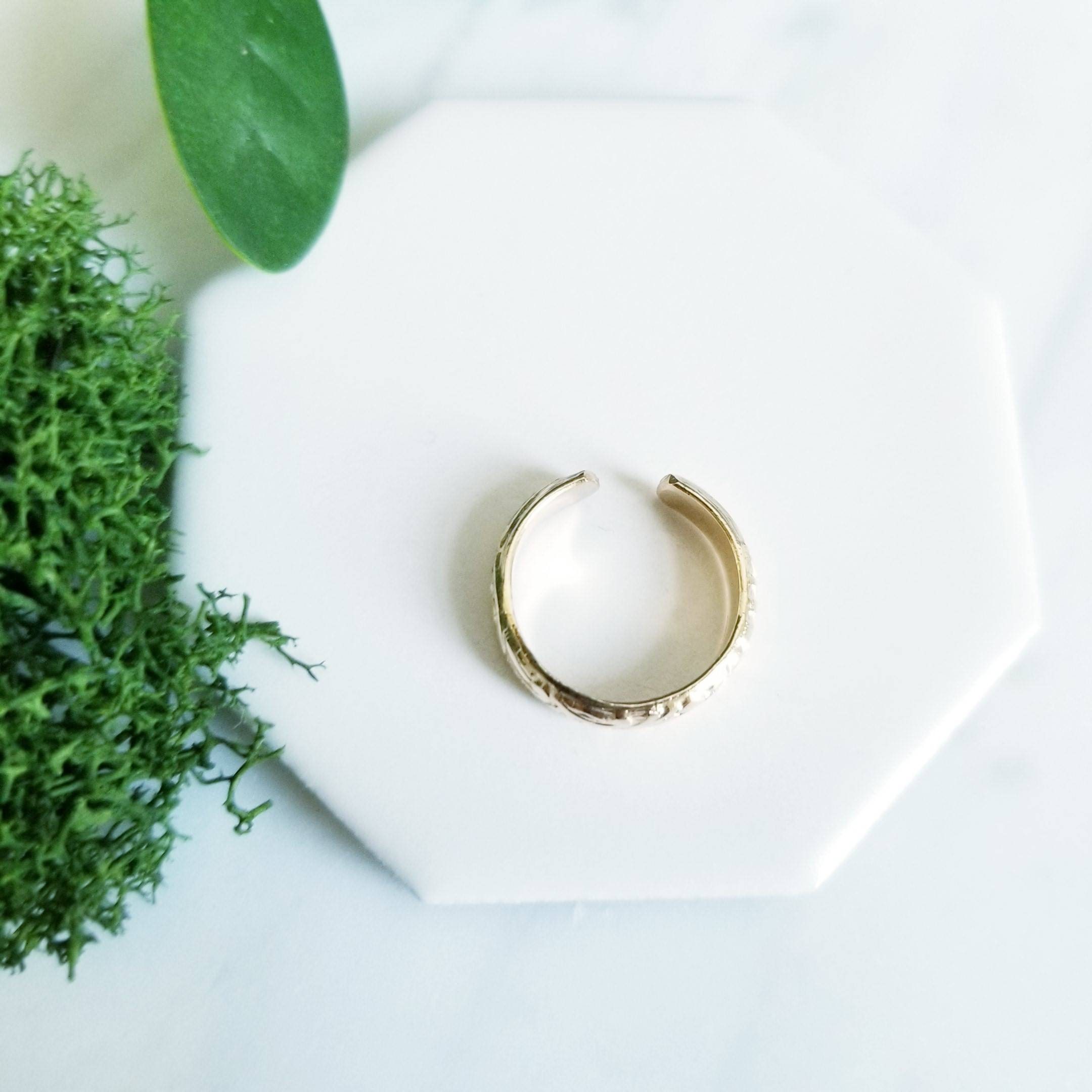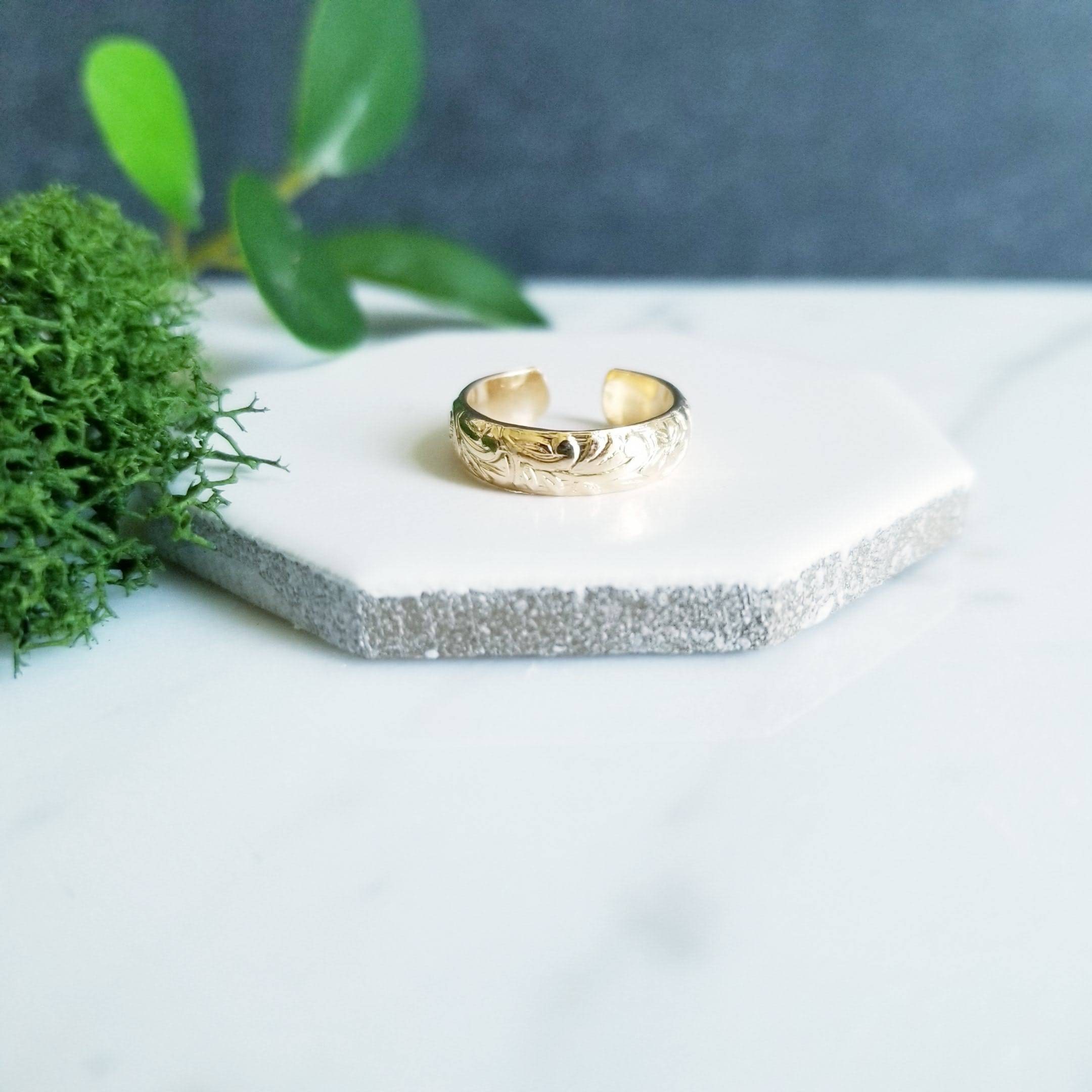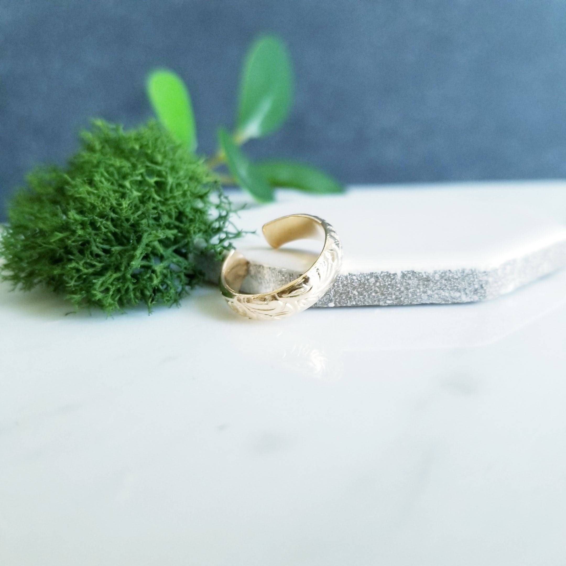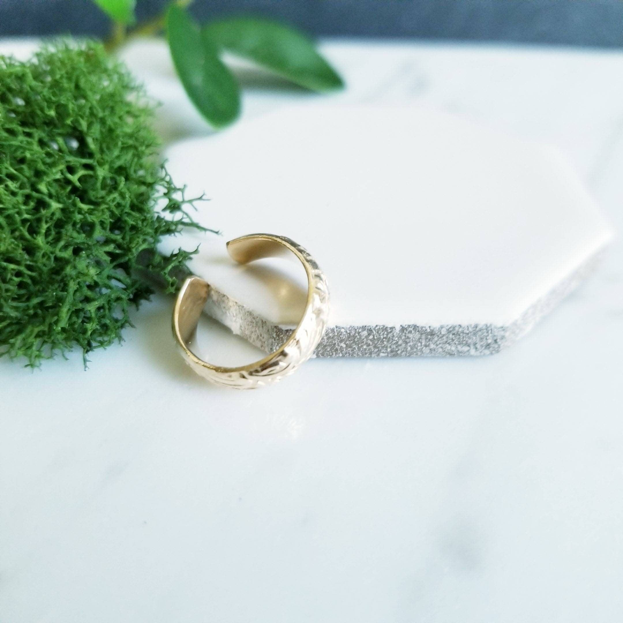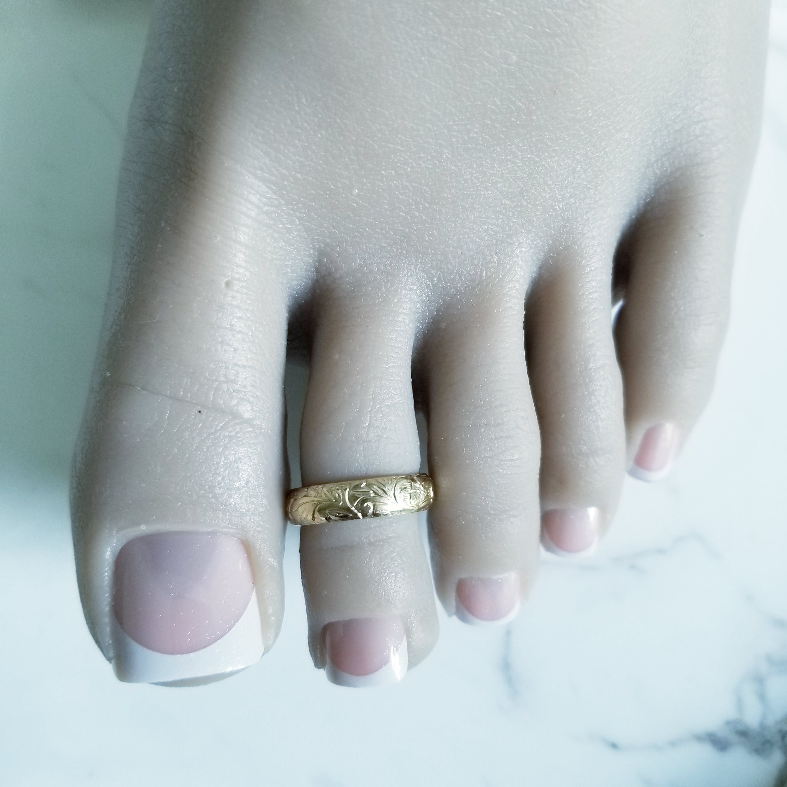 Floral Gold Filled Toe ring, 4.5mm wide. In Yellow Gold Filled, floral embossed foot bling.