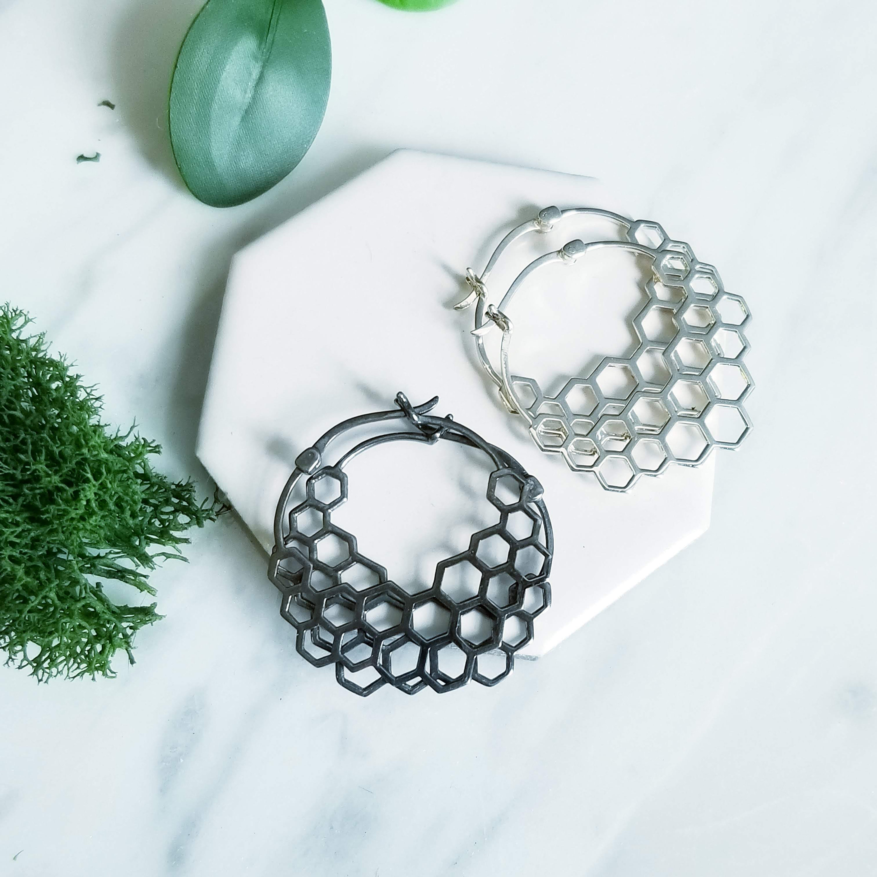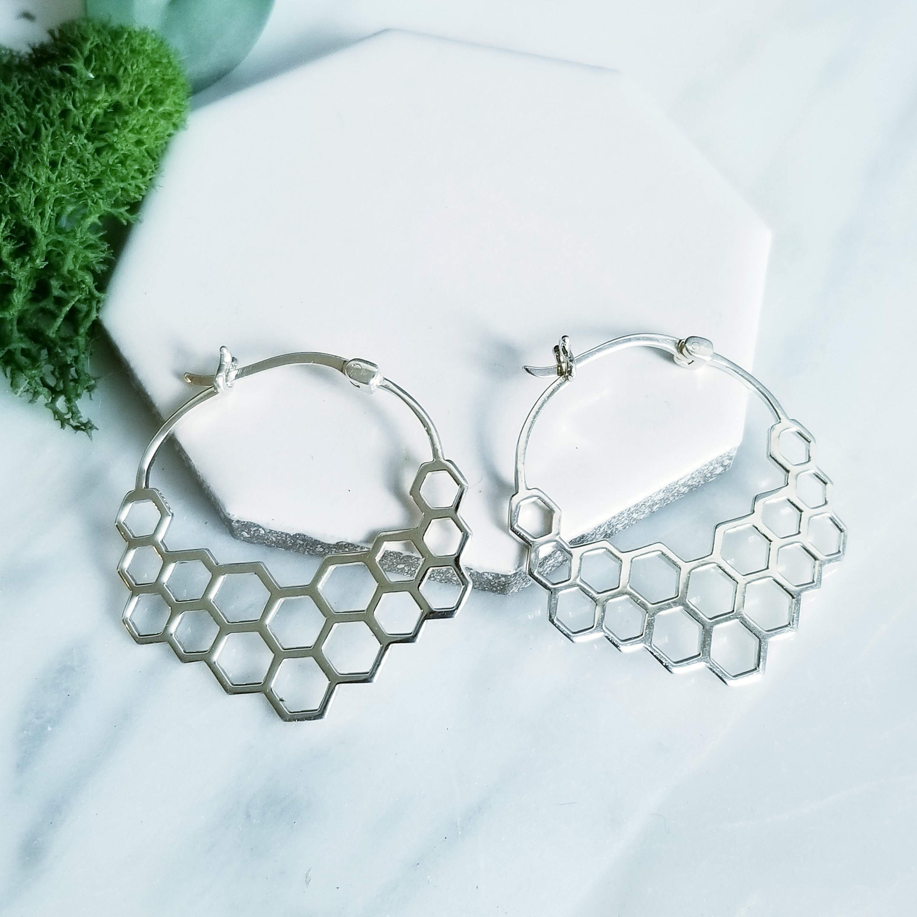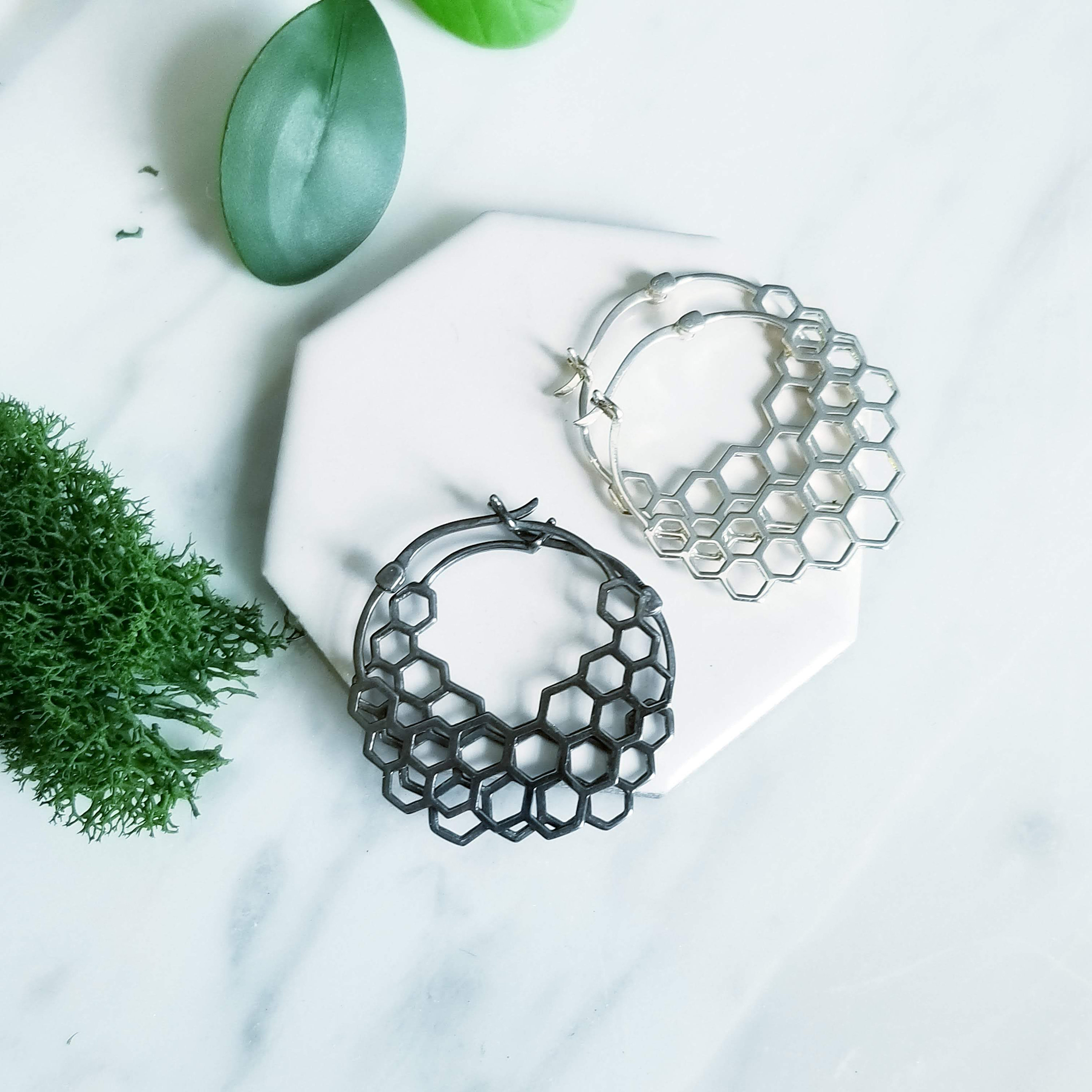 Modern Honeycomb Hoop Earrings.