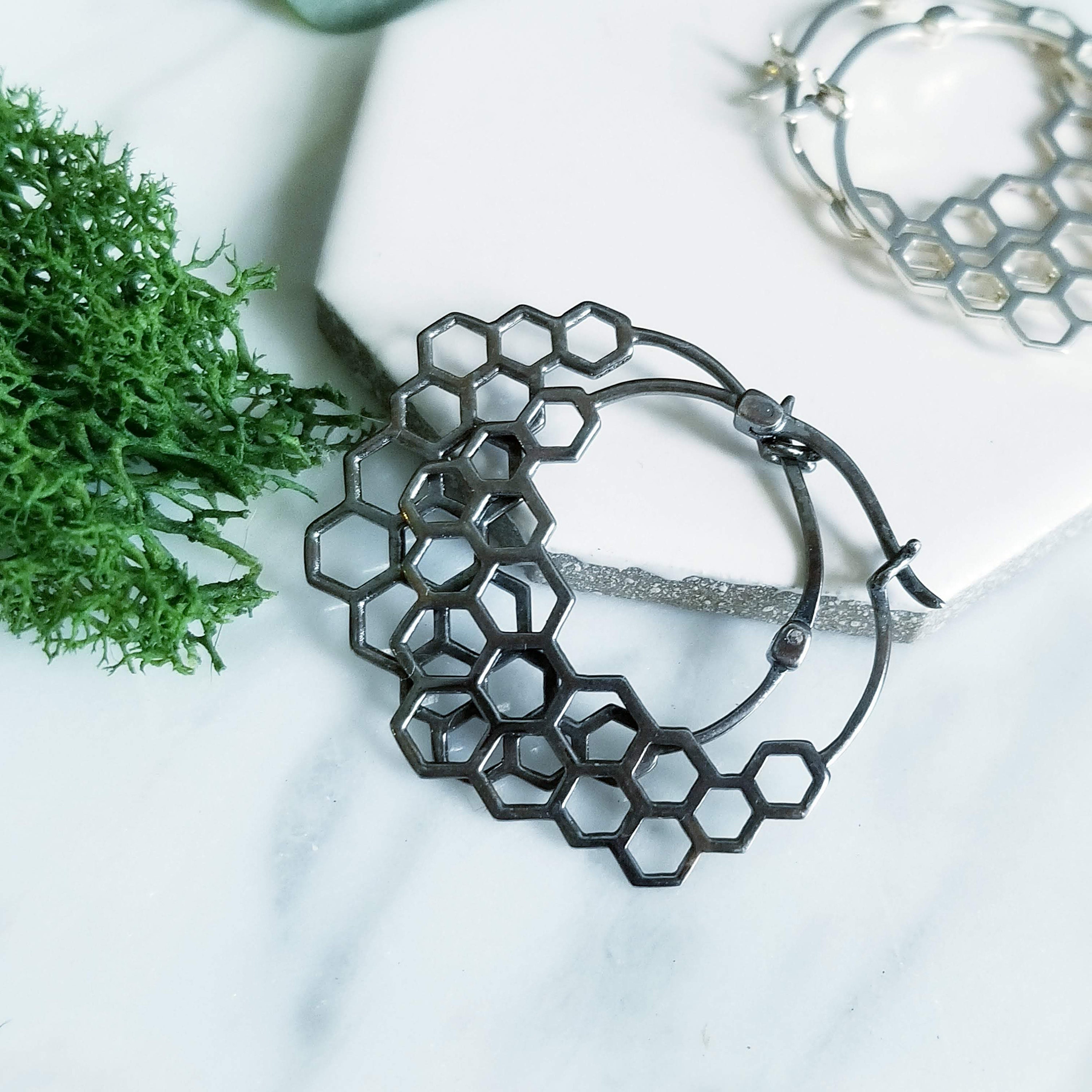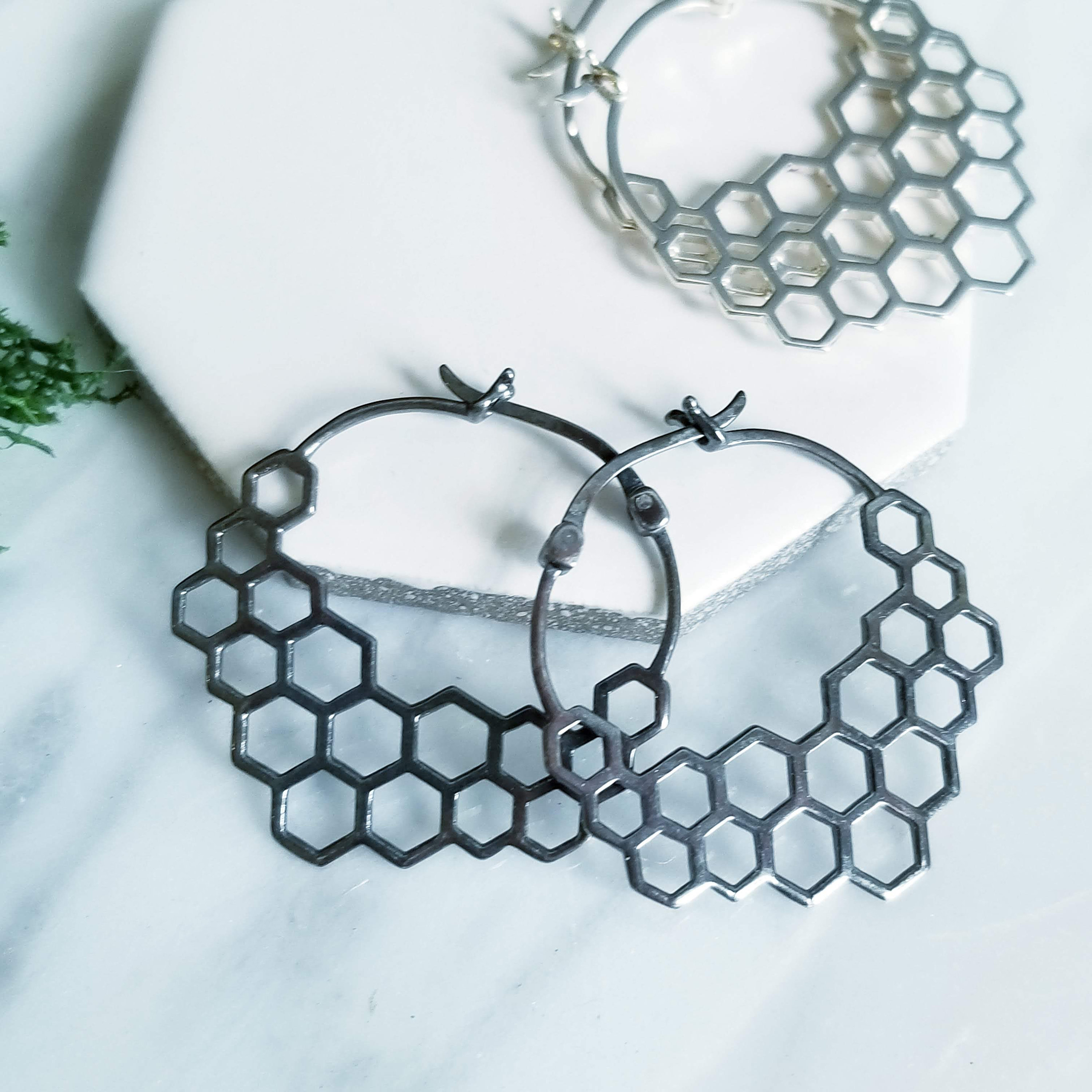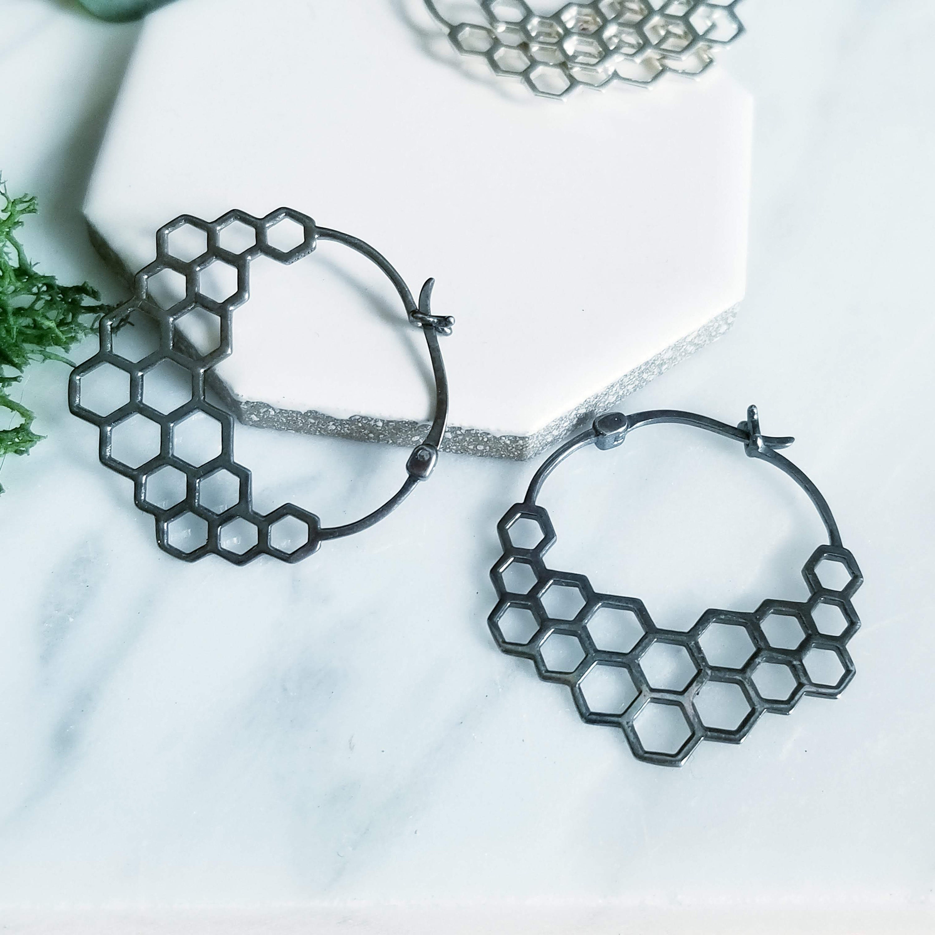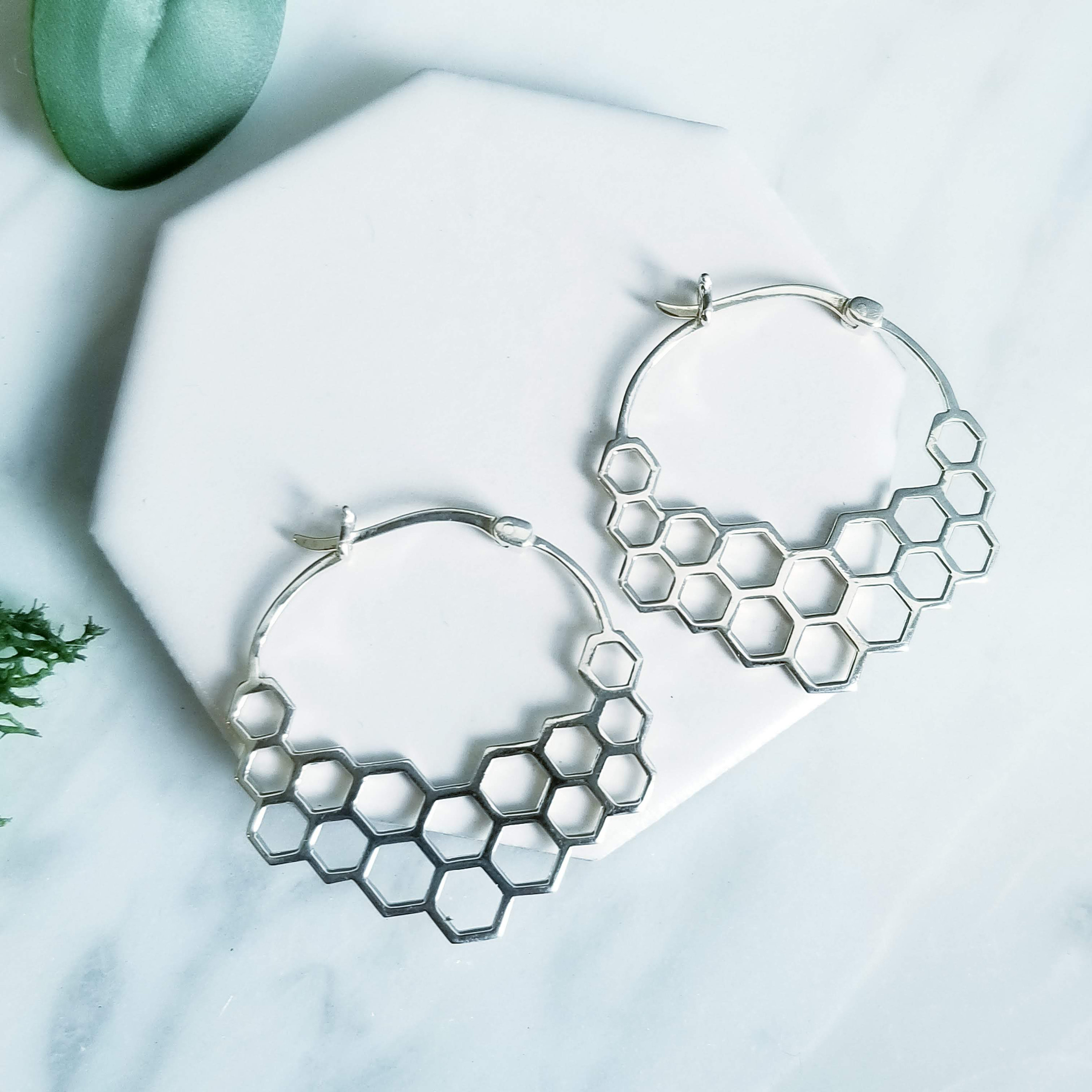 Modern Honeycomb Hoop Earrings.