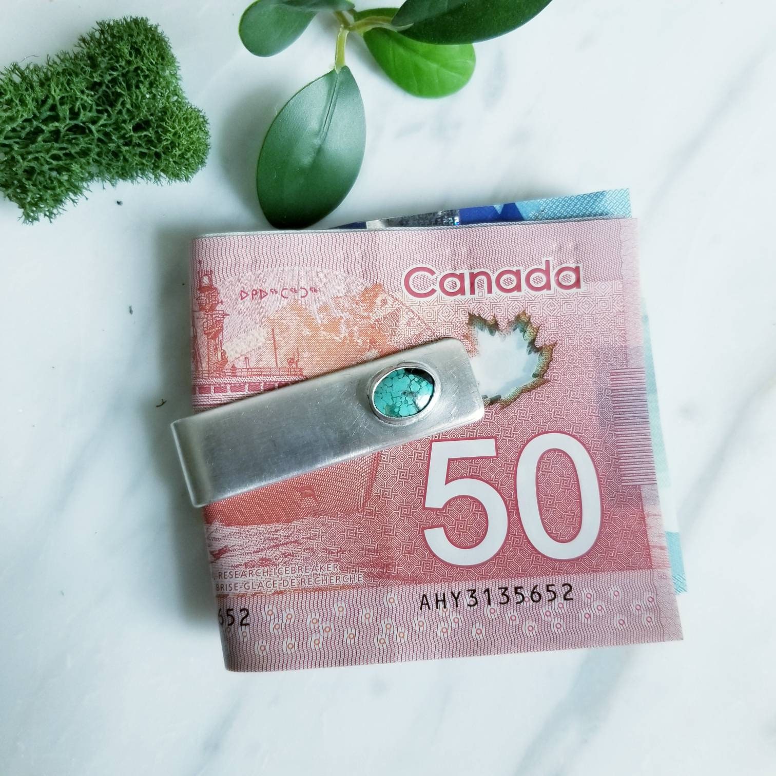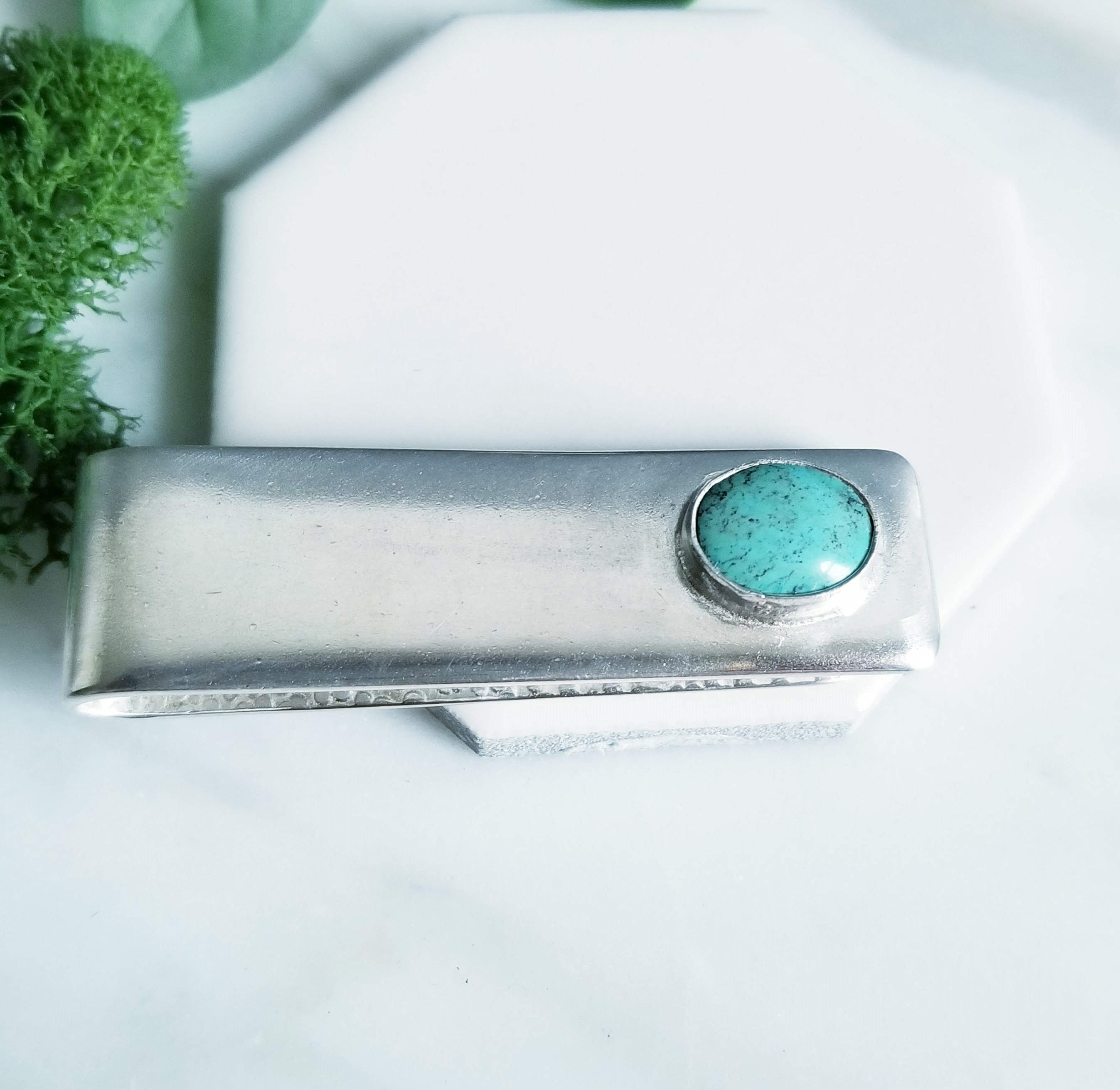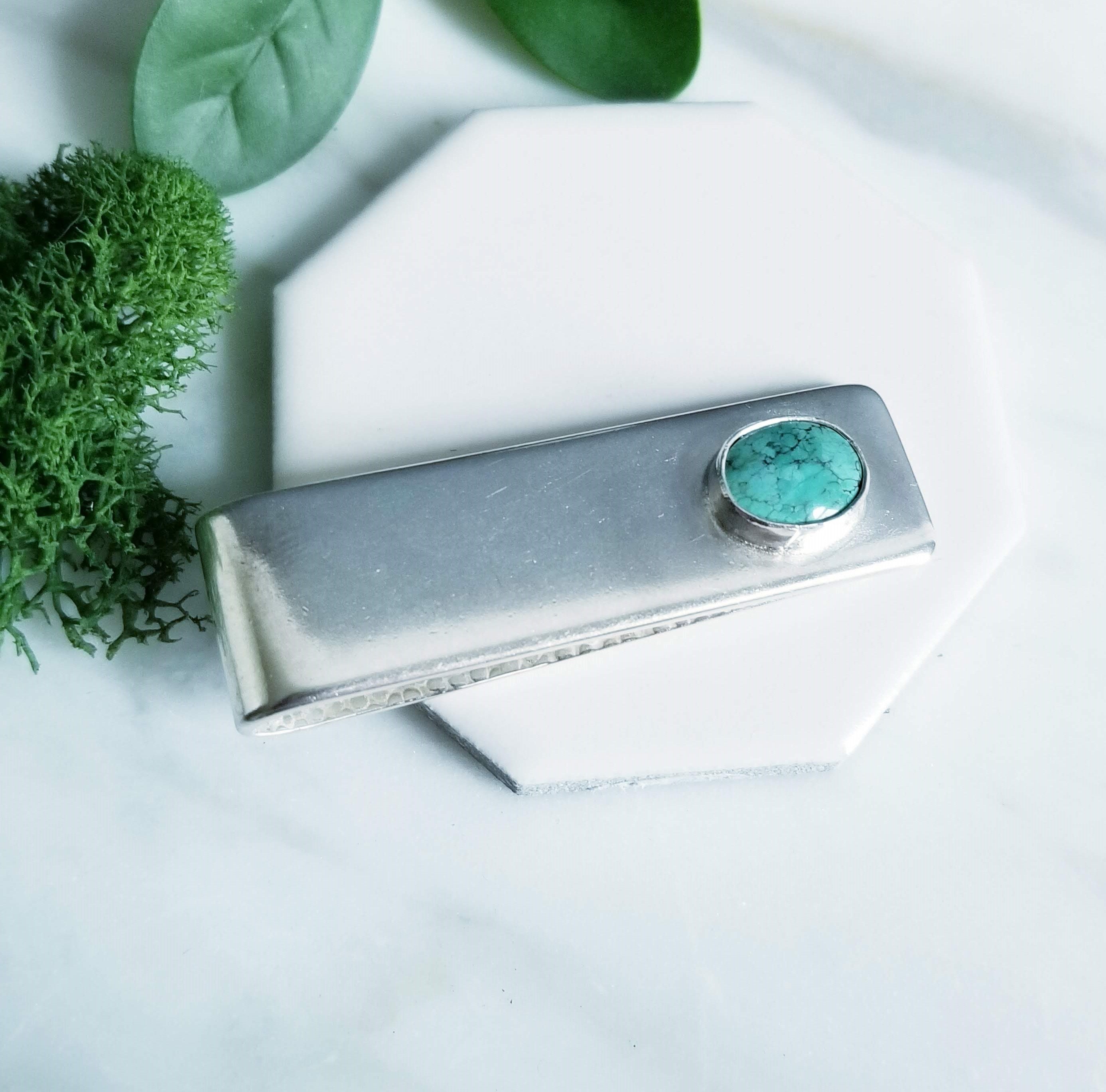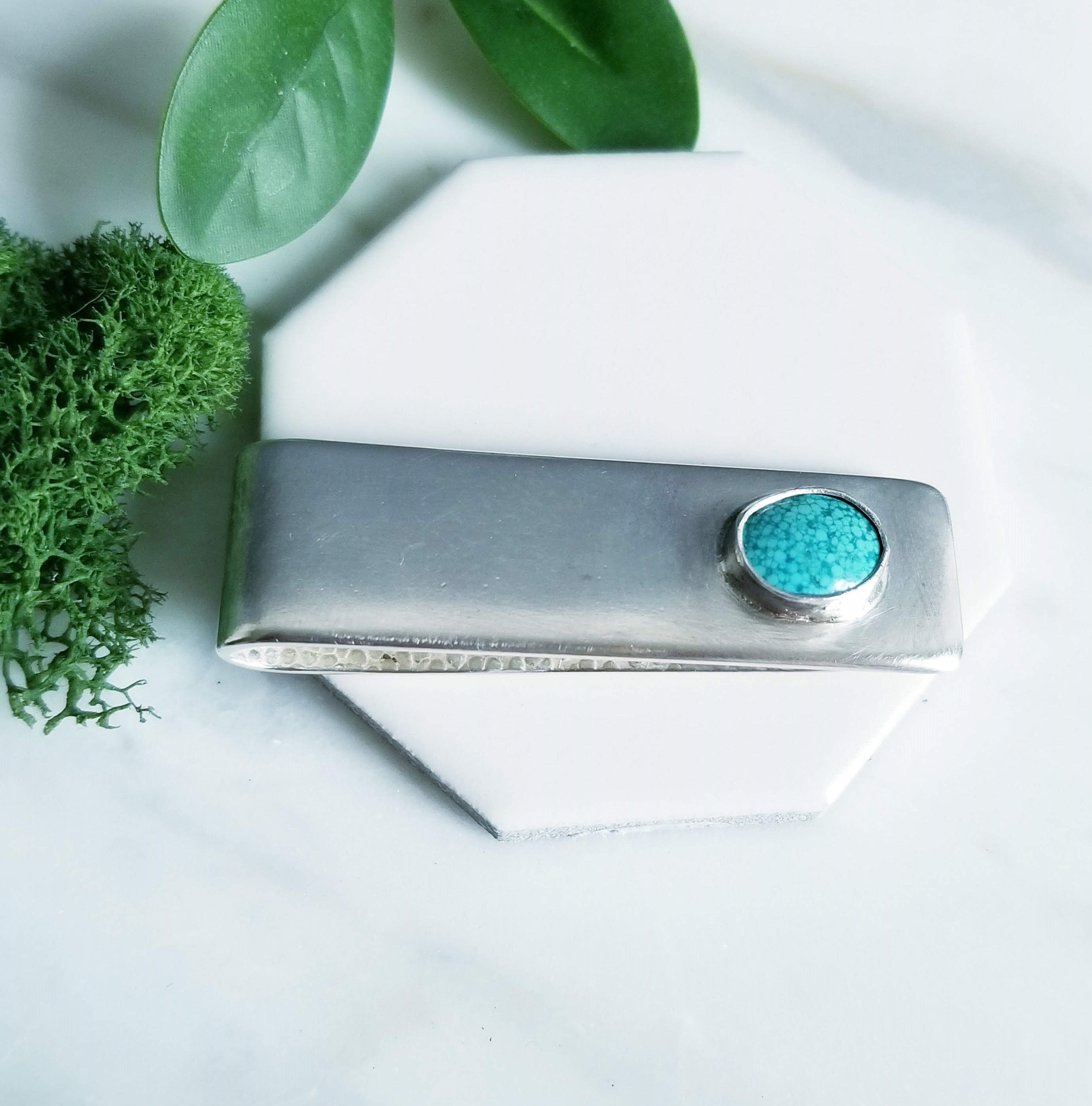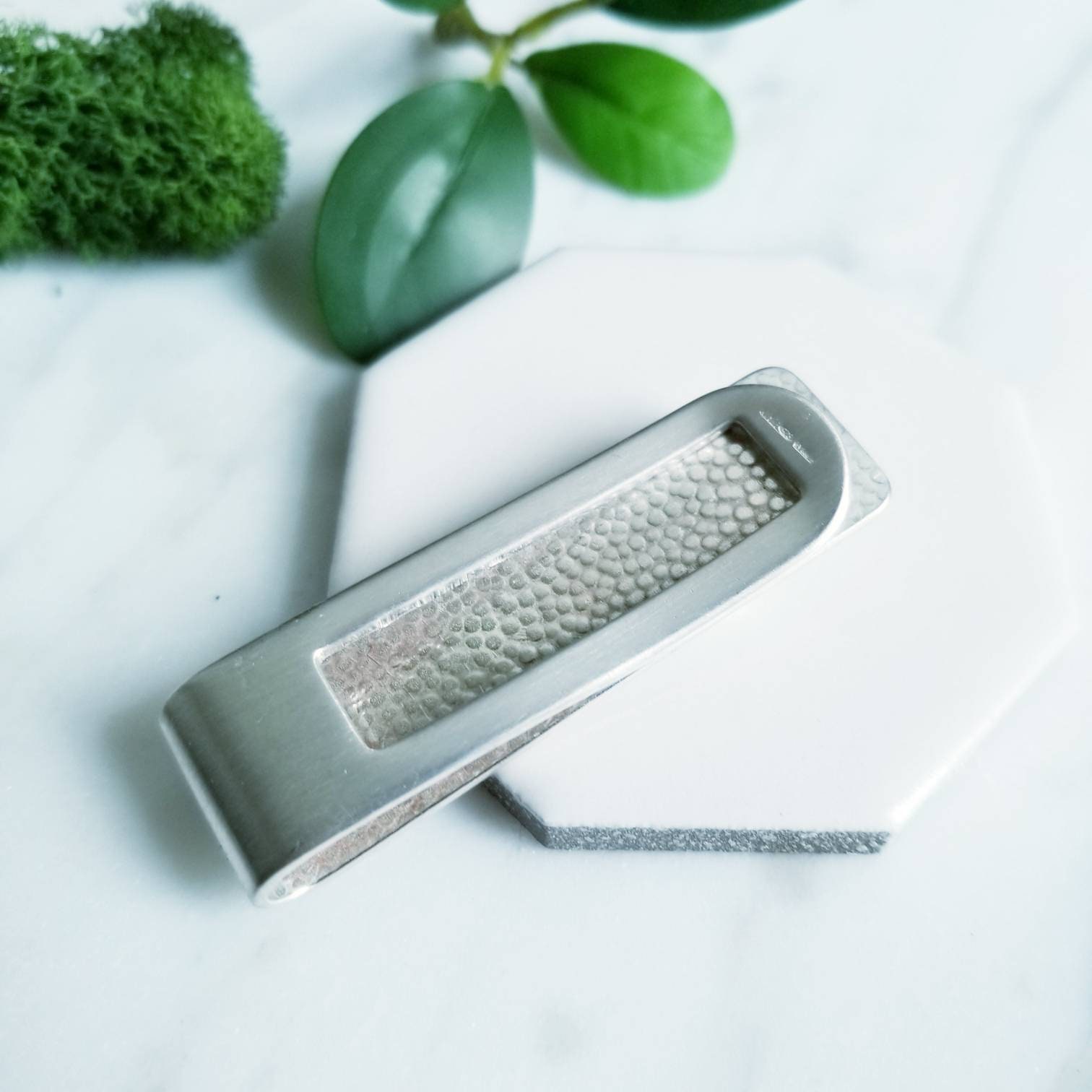 The clip features a textured interior surface and a brushed finish on the front surface.