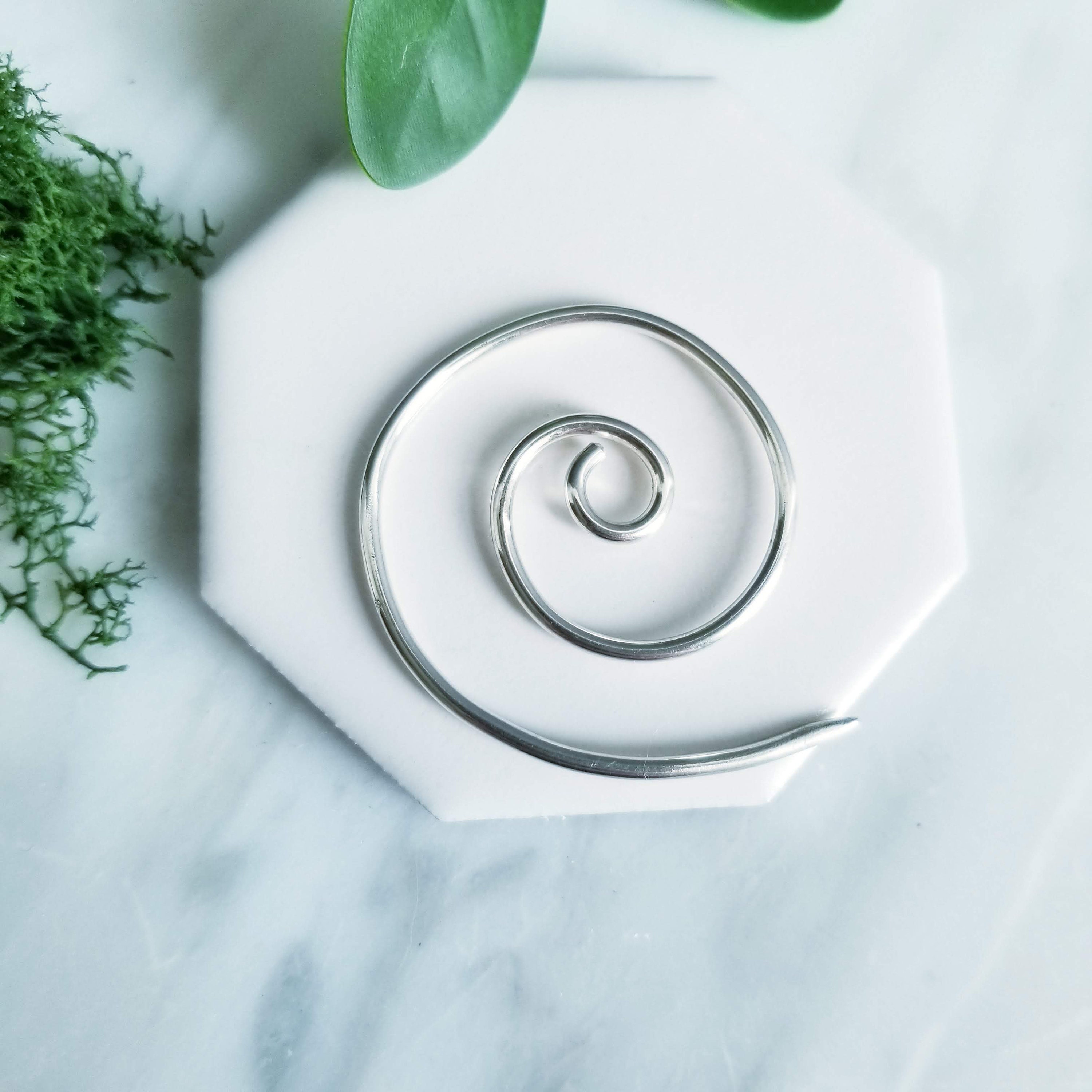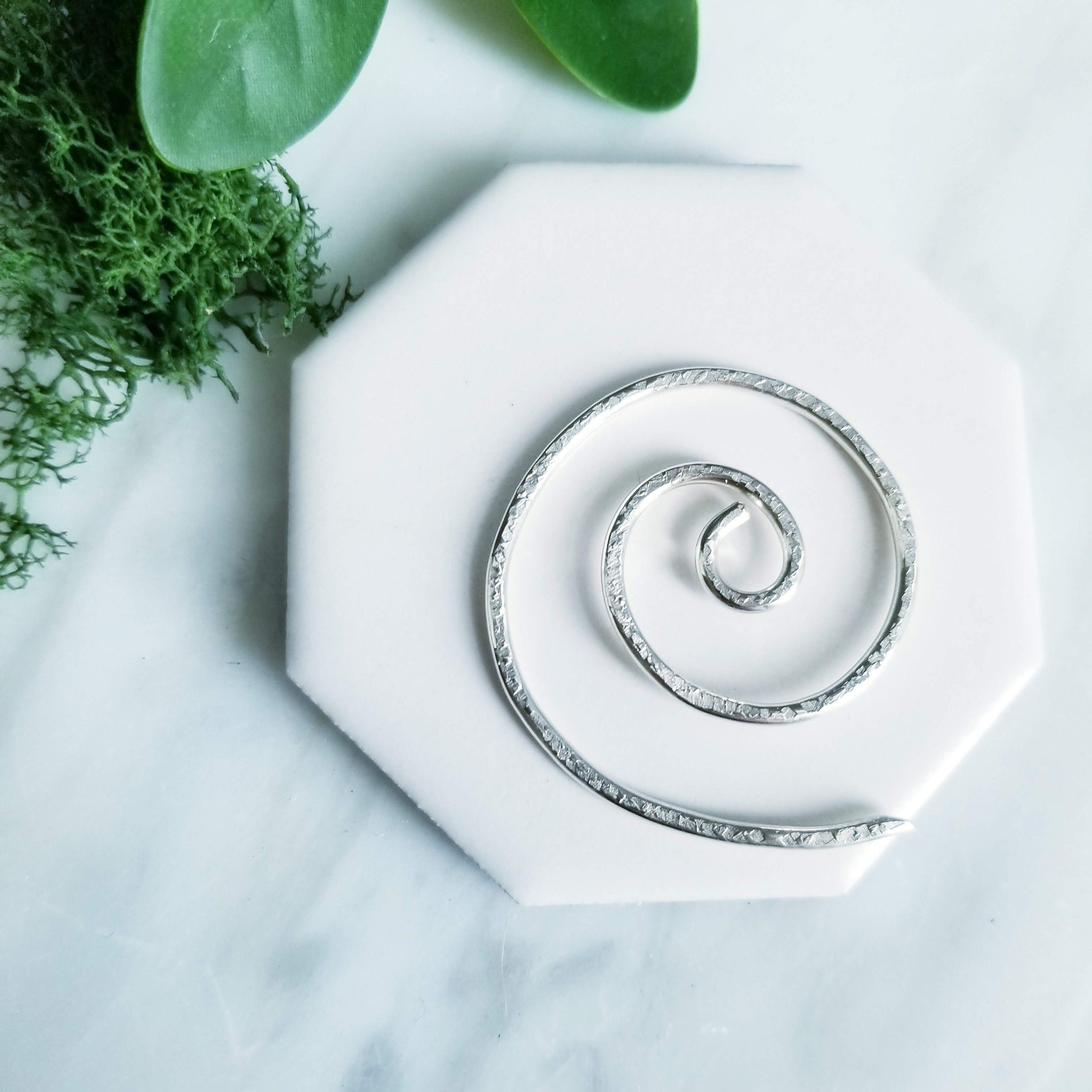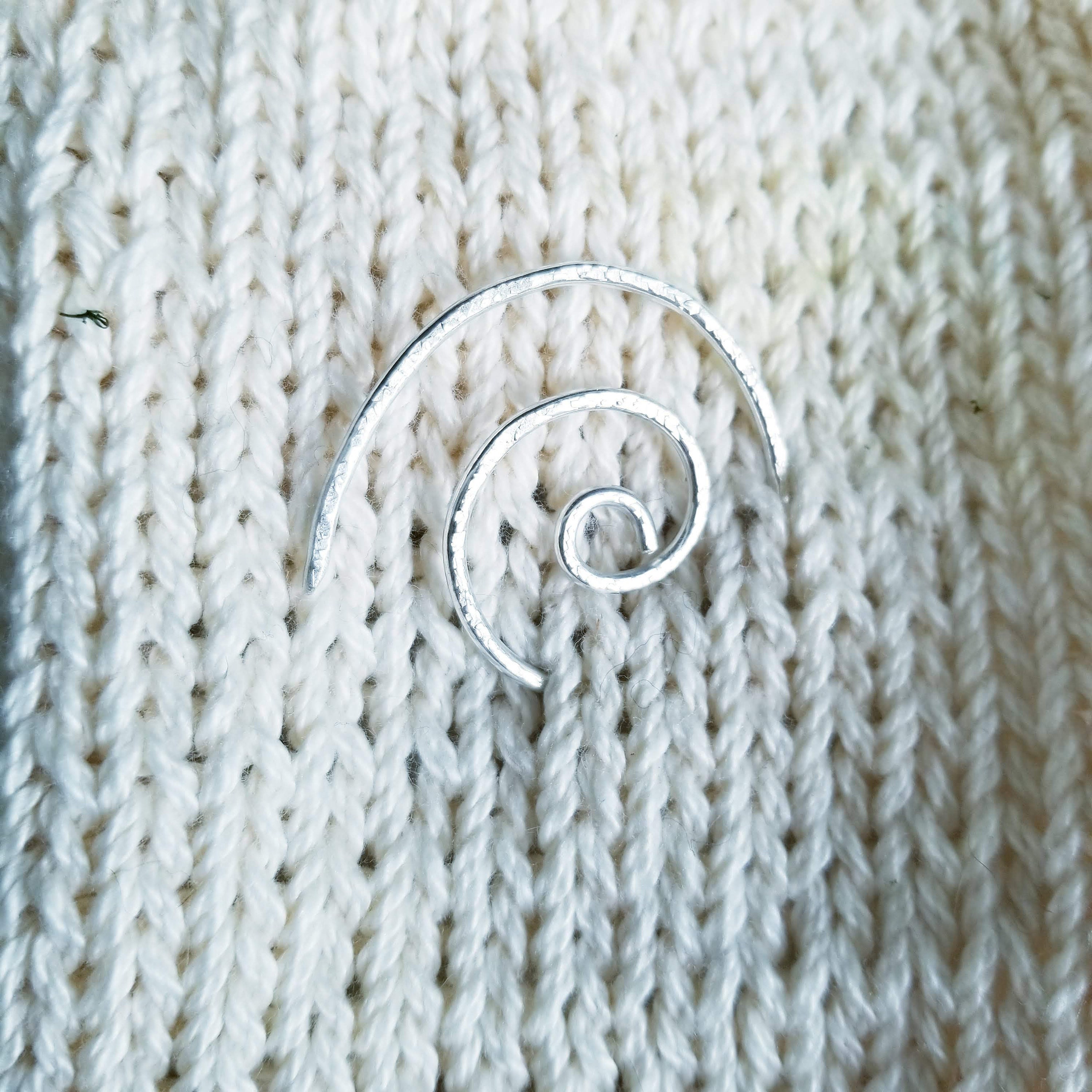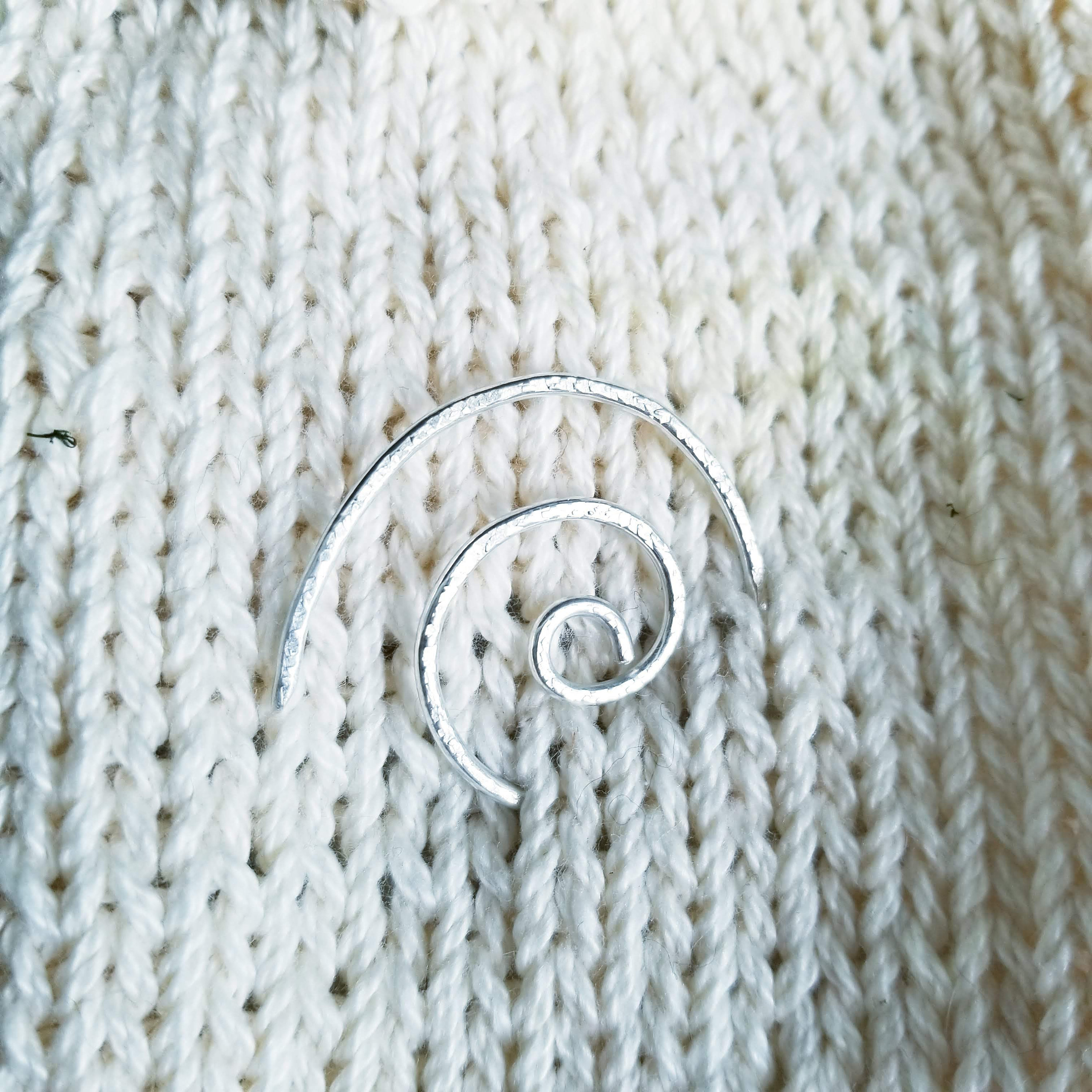 Minimalist sterling silver spiral shawl pin brooch. Strong but simple design, simply layer your scarf or shawl together, spiral the brooch through both layers. To remove, just reverse the spiral out.
