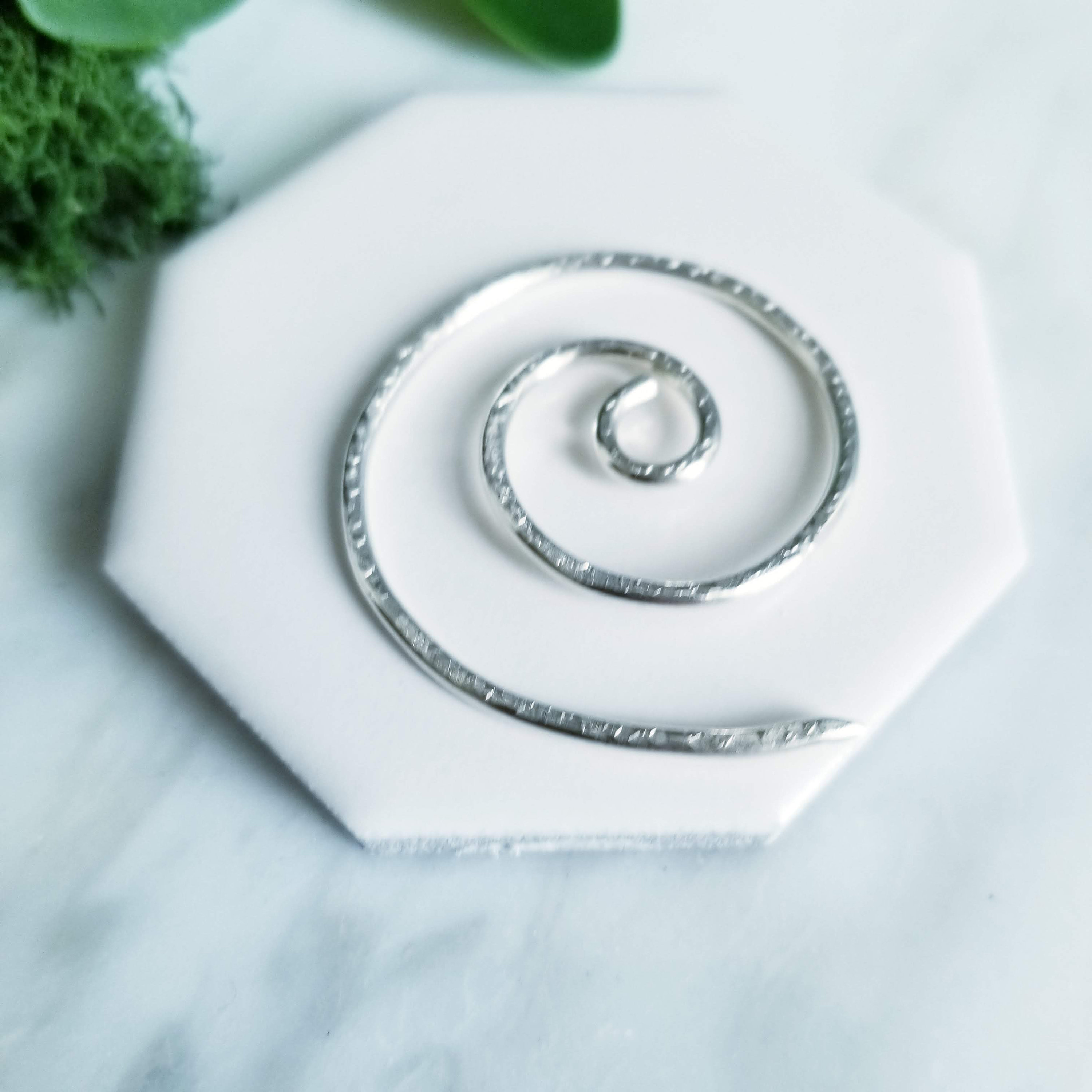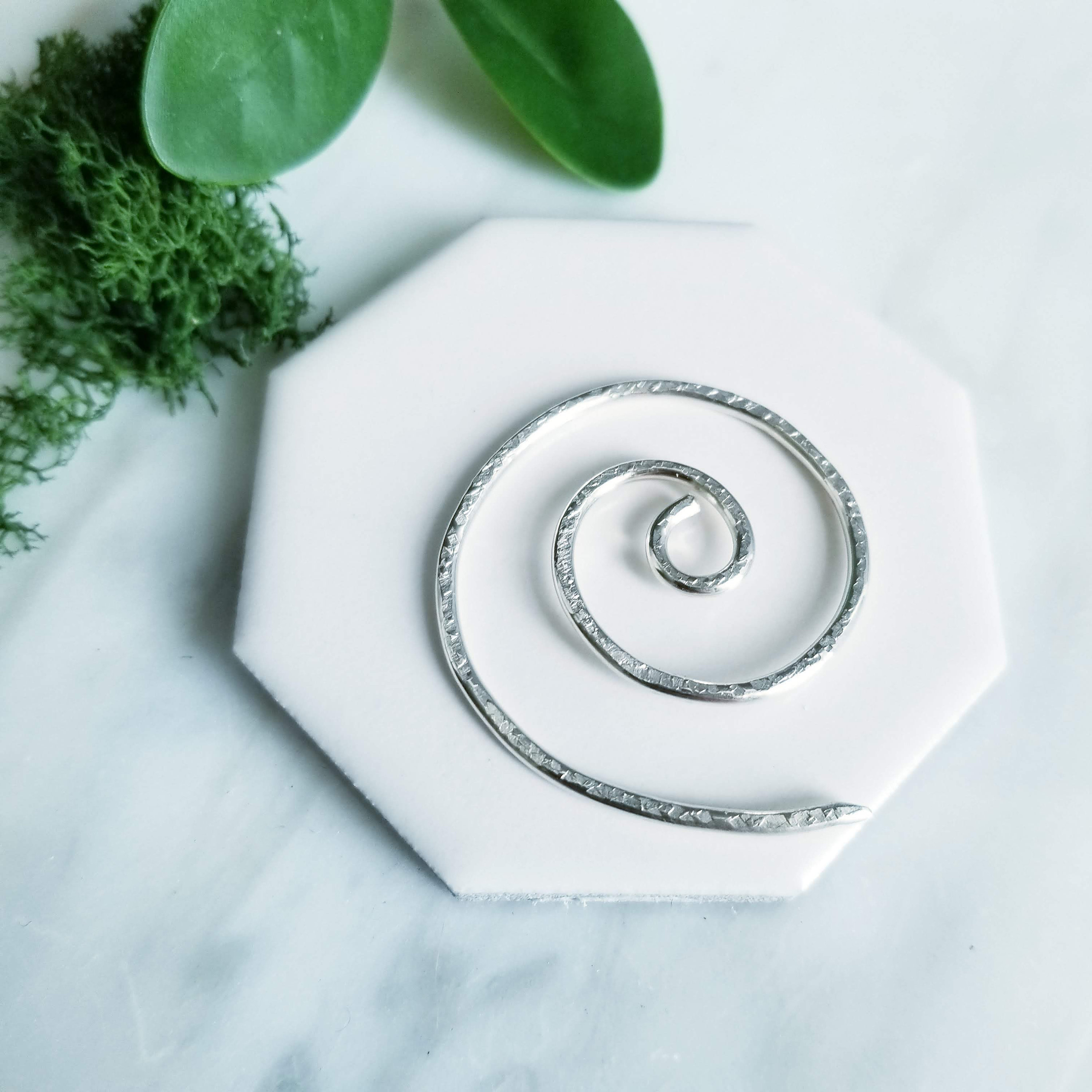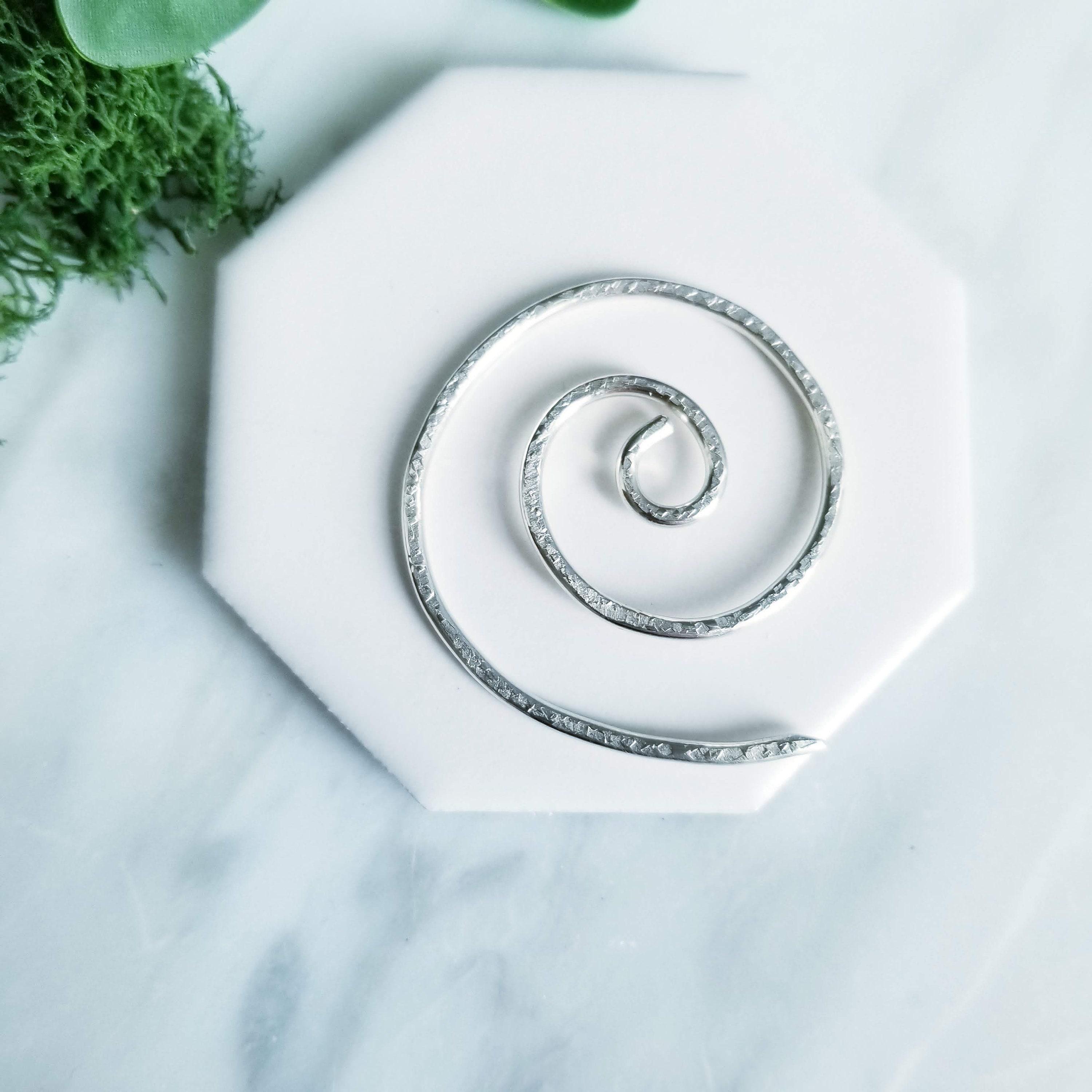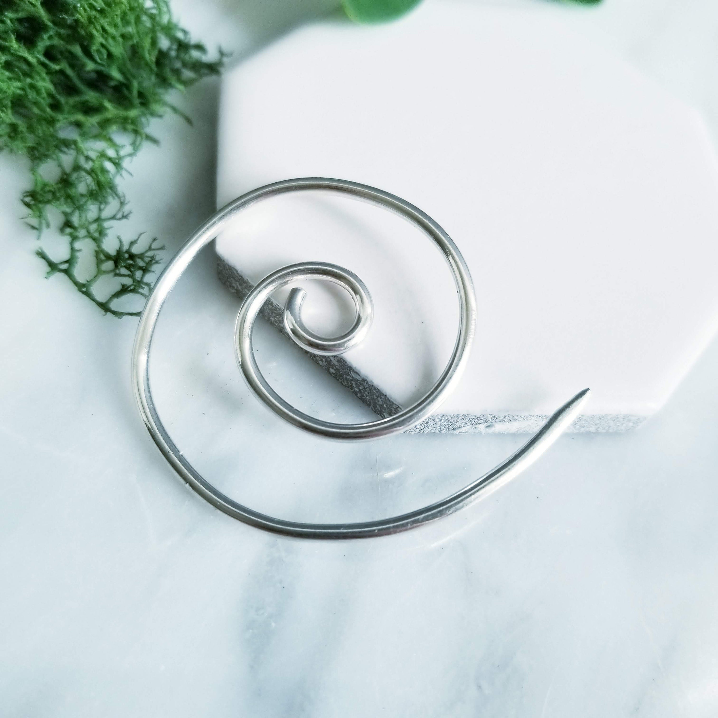 Minimalist sterling silver spiral shawl pin brooch. Strong but simple design, simply layer your scarf or shawl together, spiral the brooch through both layers. To remove, just reverse the spiral out.