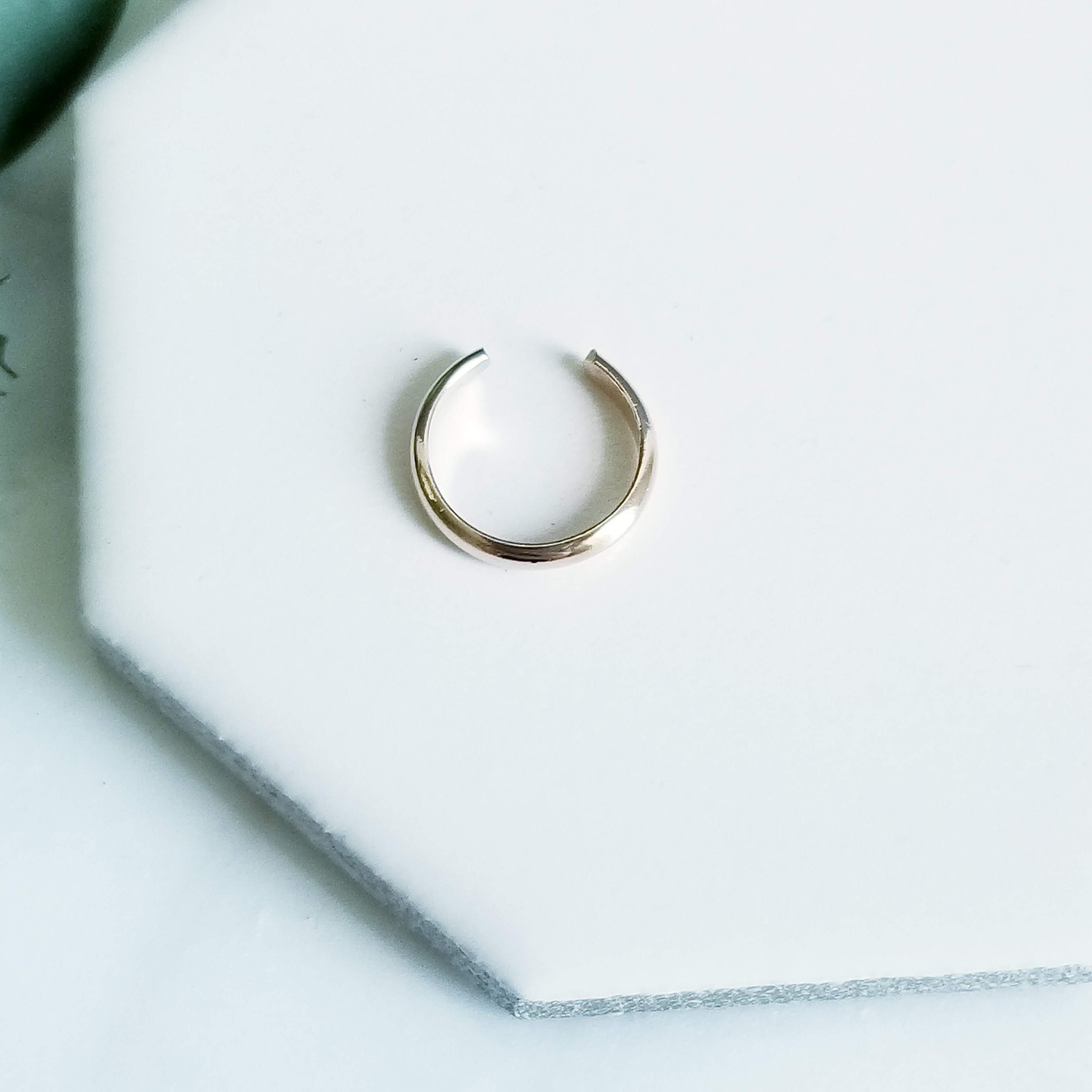 Can also be slid onto the side of your nose as a faux hoop piercing. Squeeze gently to size.