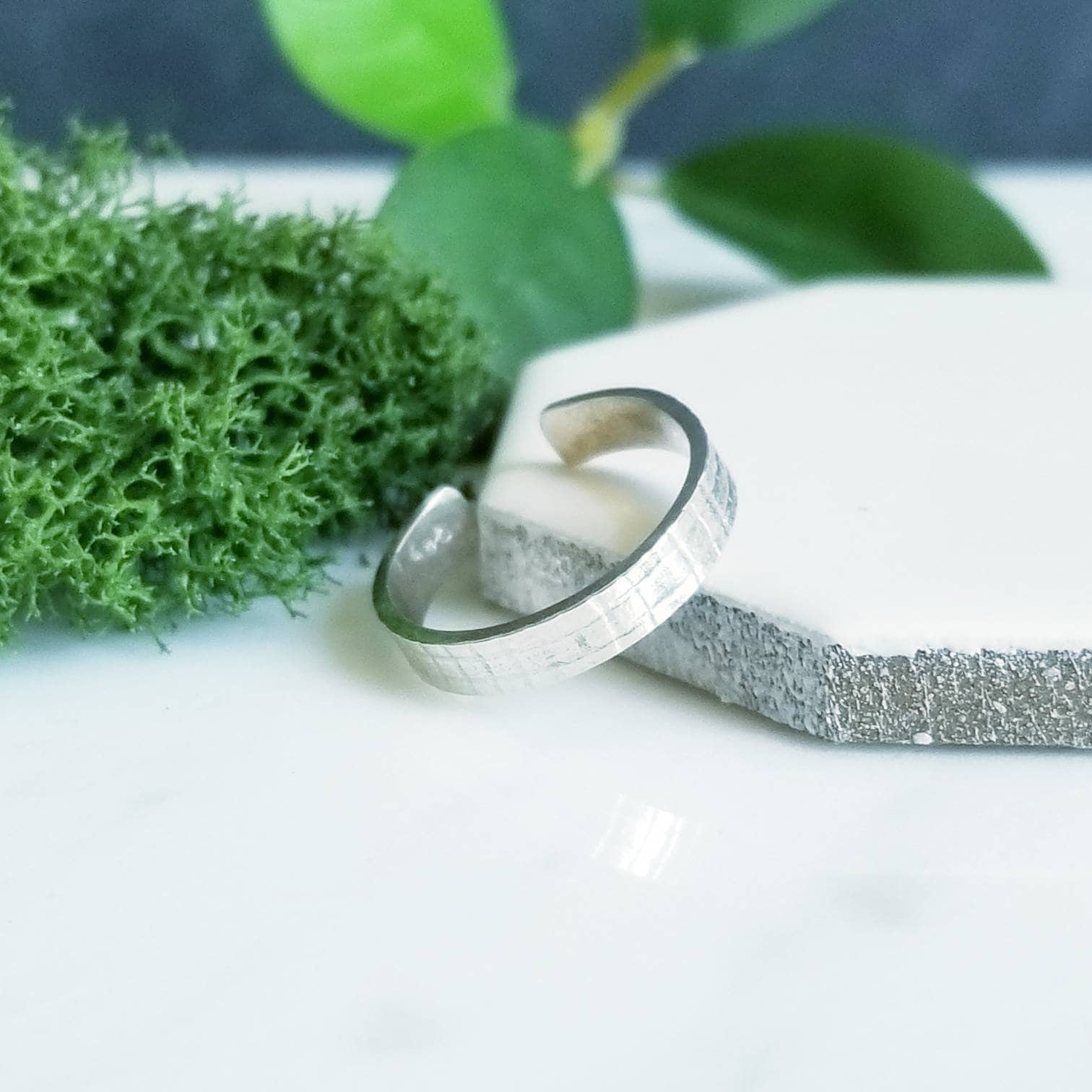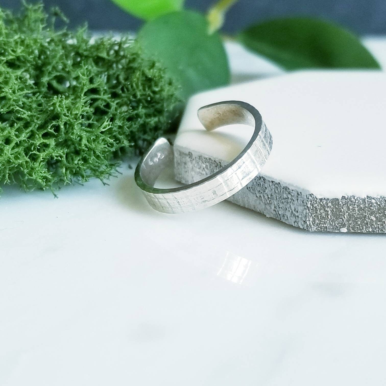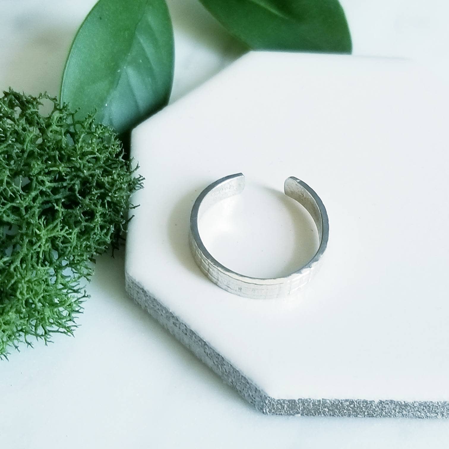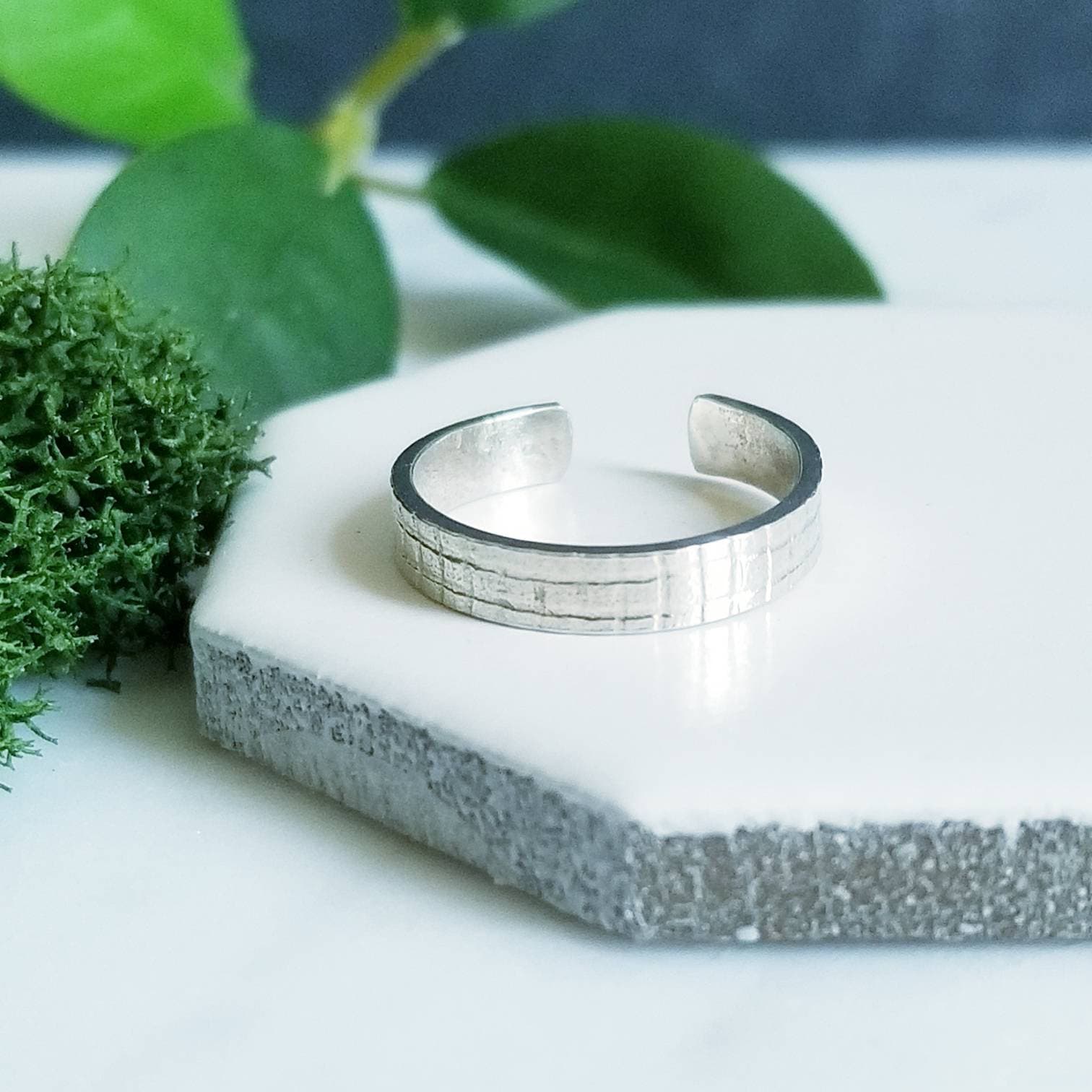 A fresh design in a embossed grid or plaid texture, 3mm wide flat sterling silver toe ring.