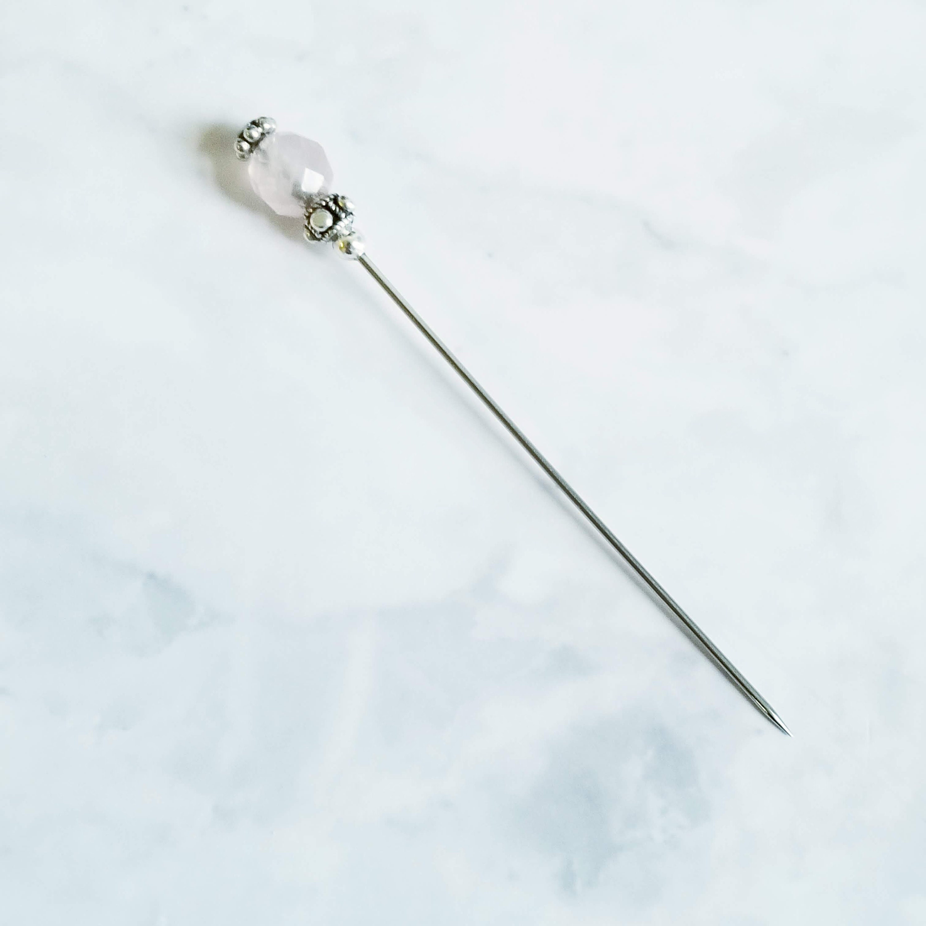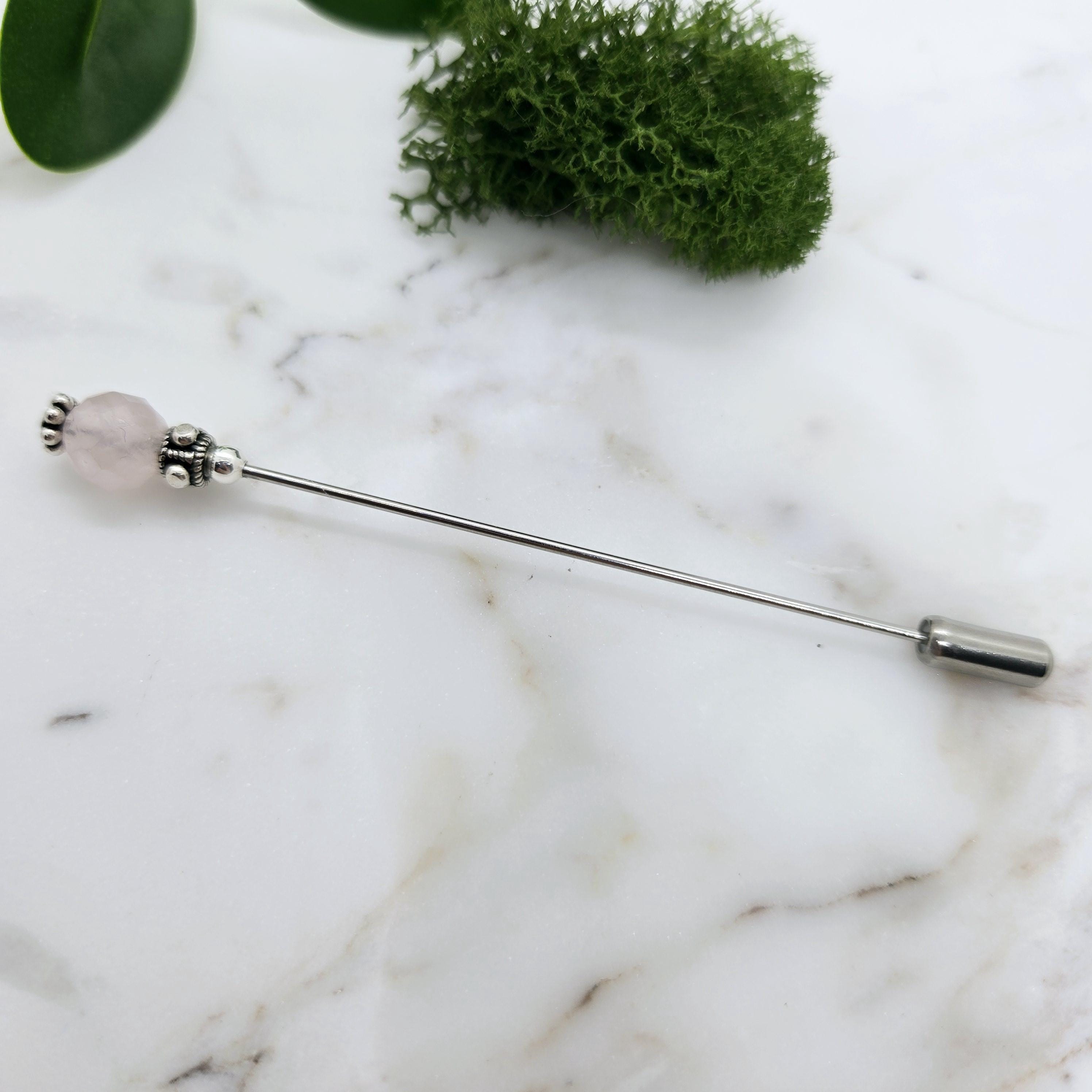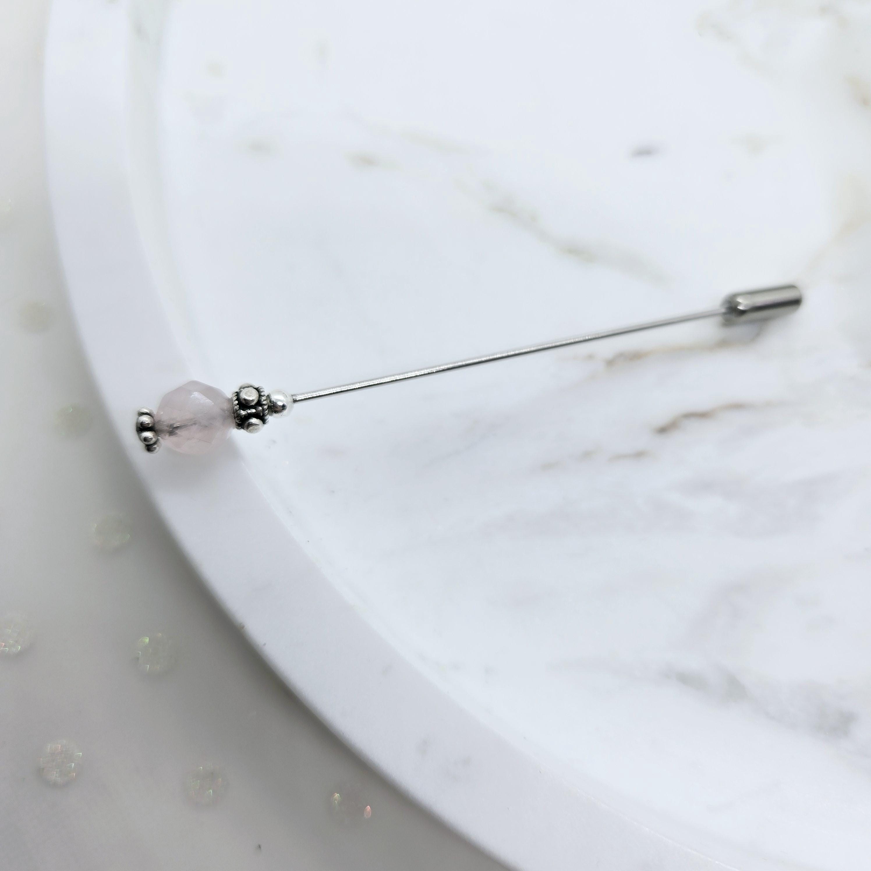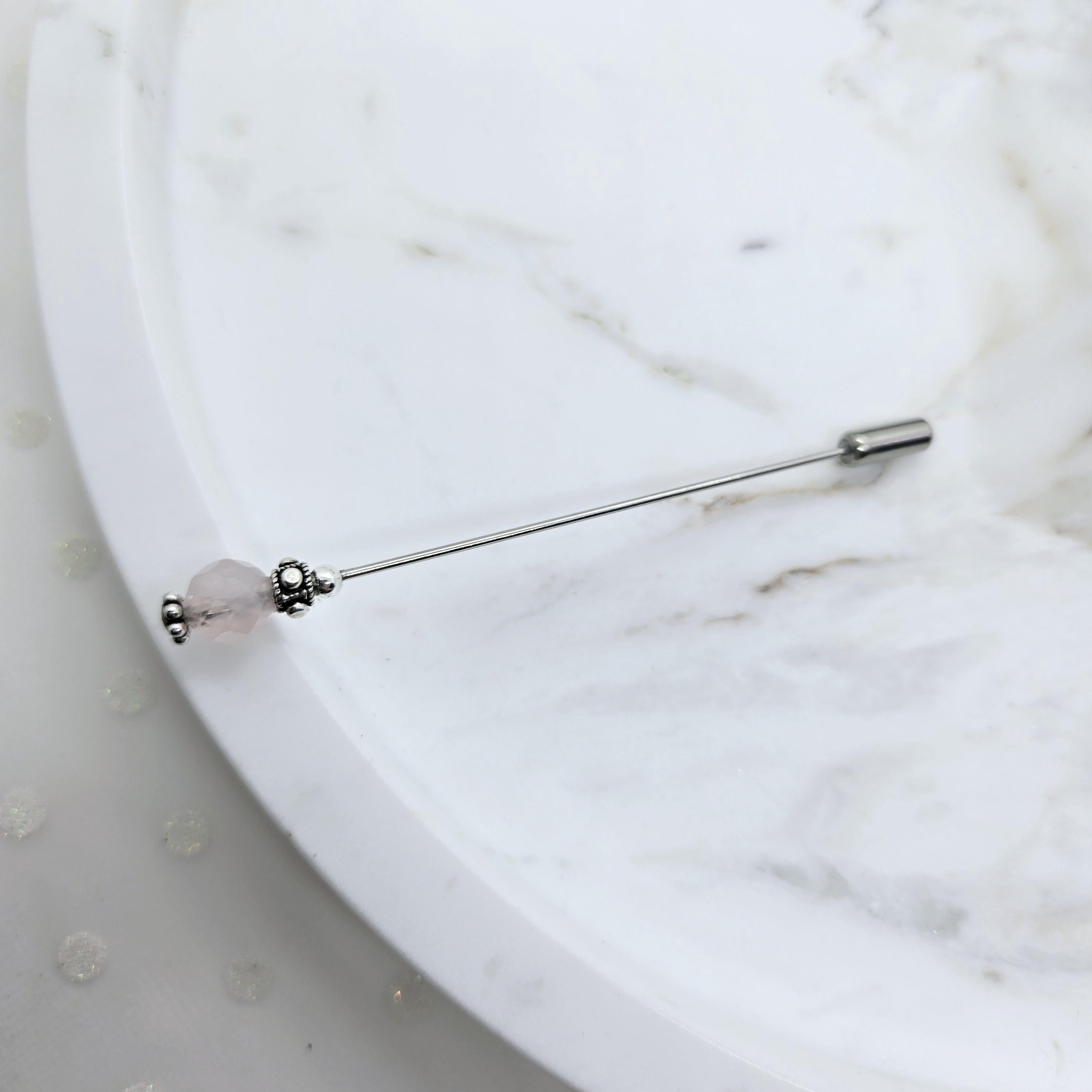 Rose Quartz & Sterling Silver Hat Pin-3 inch pin, hijab pin
