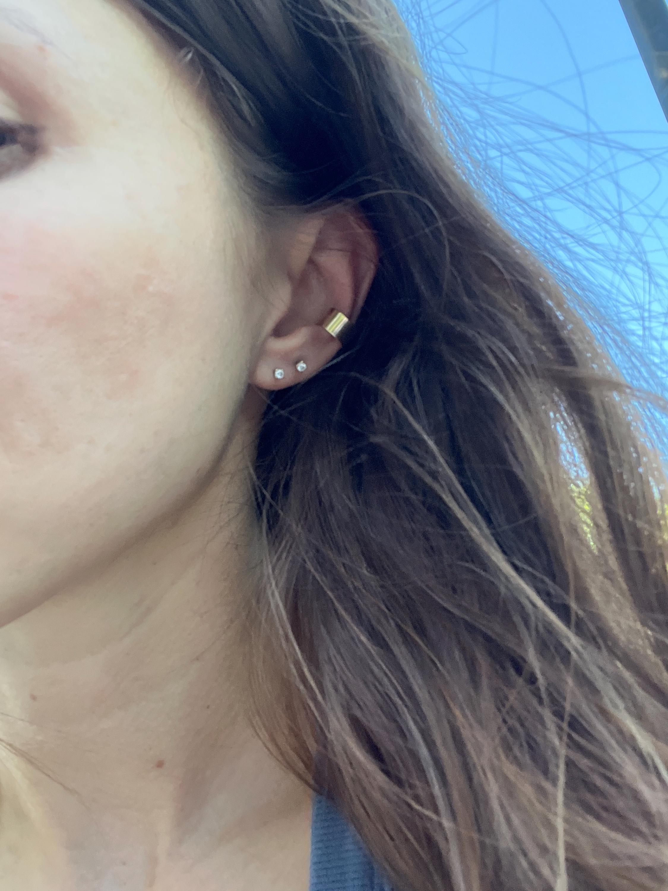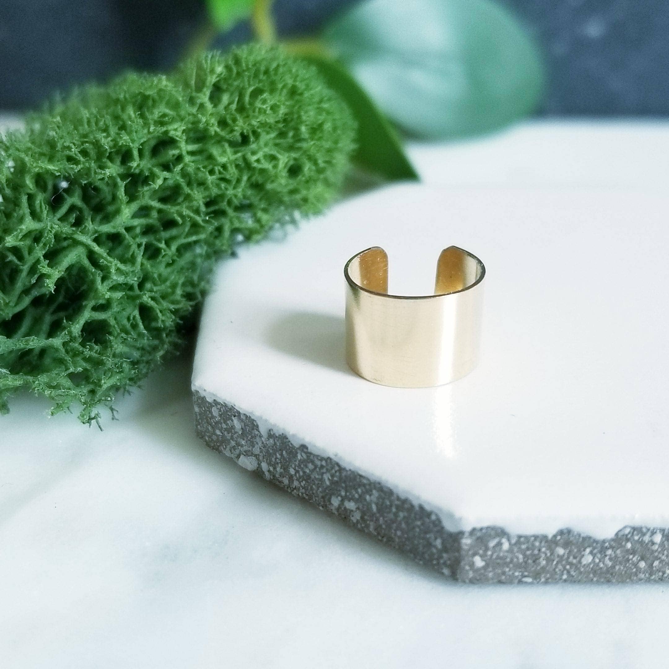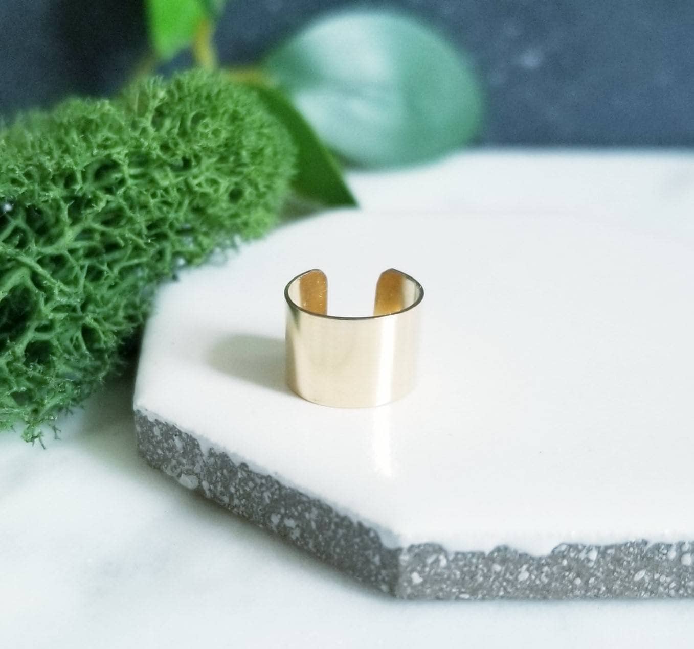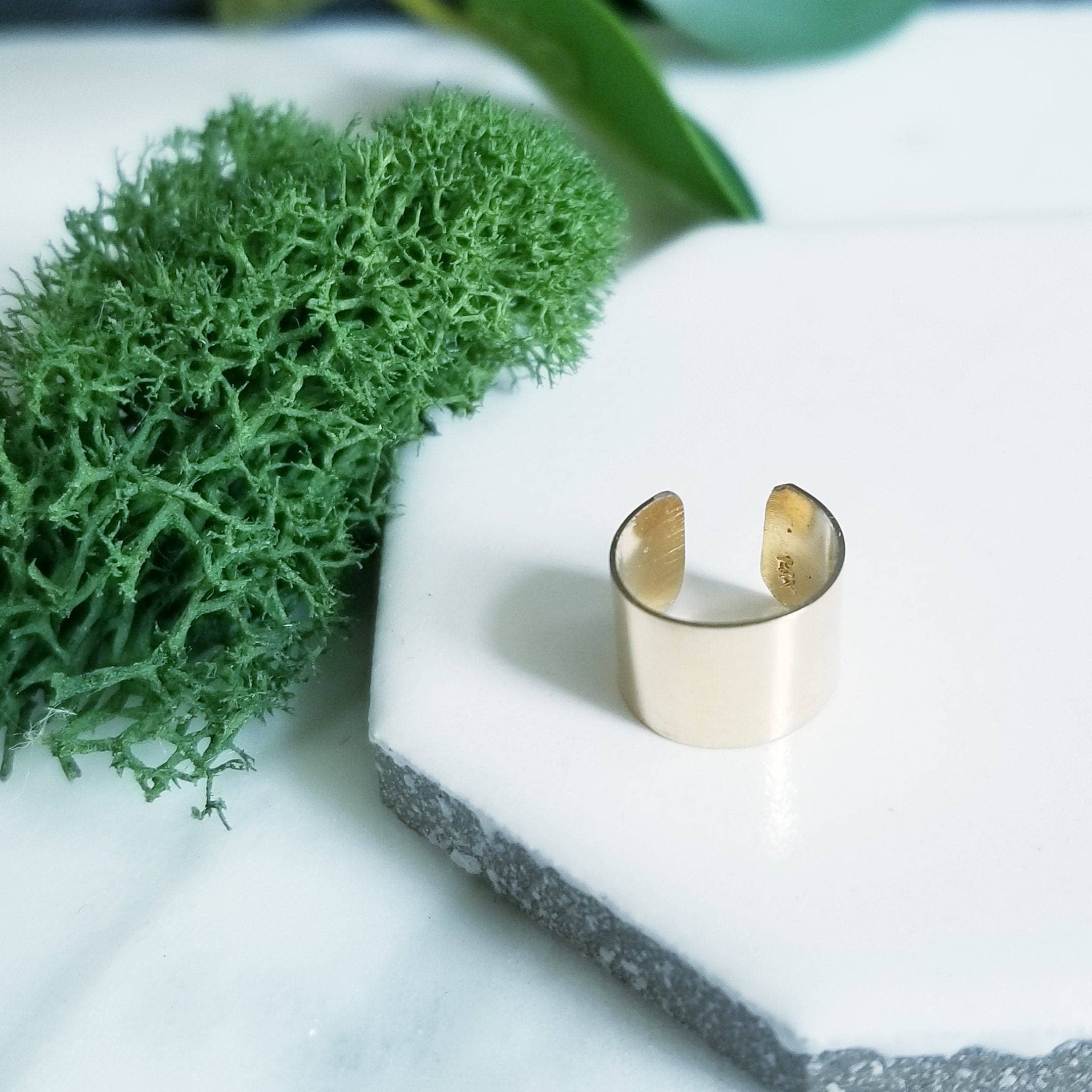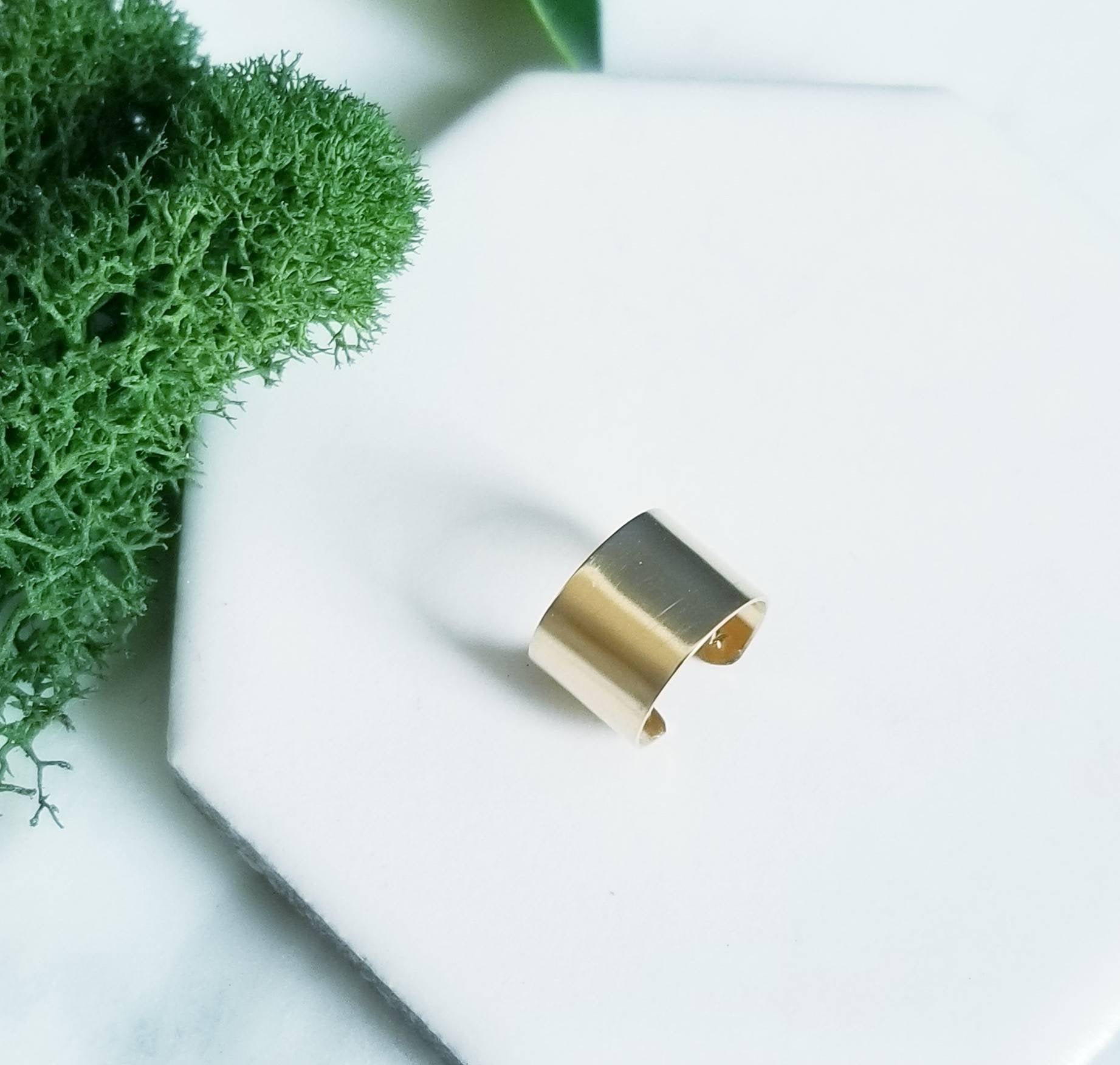 Light & Comfortable , 6 mm wide smooth SOLID 14K Yellow Gold ear cuff, formed into a small circle, simply slide onto your upper ear at the top.