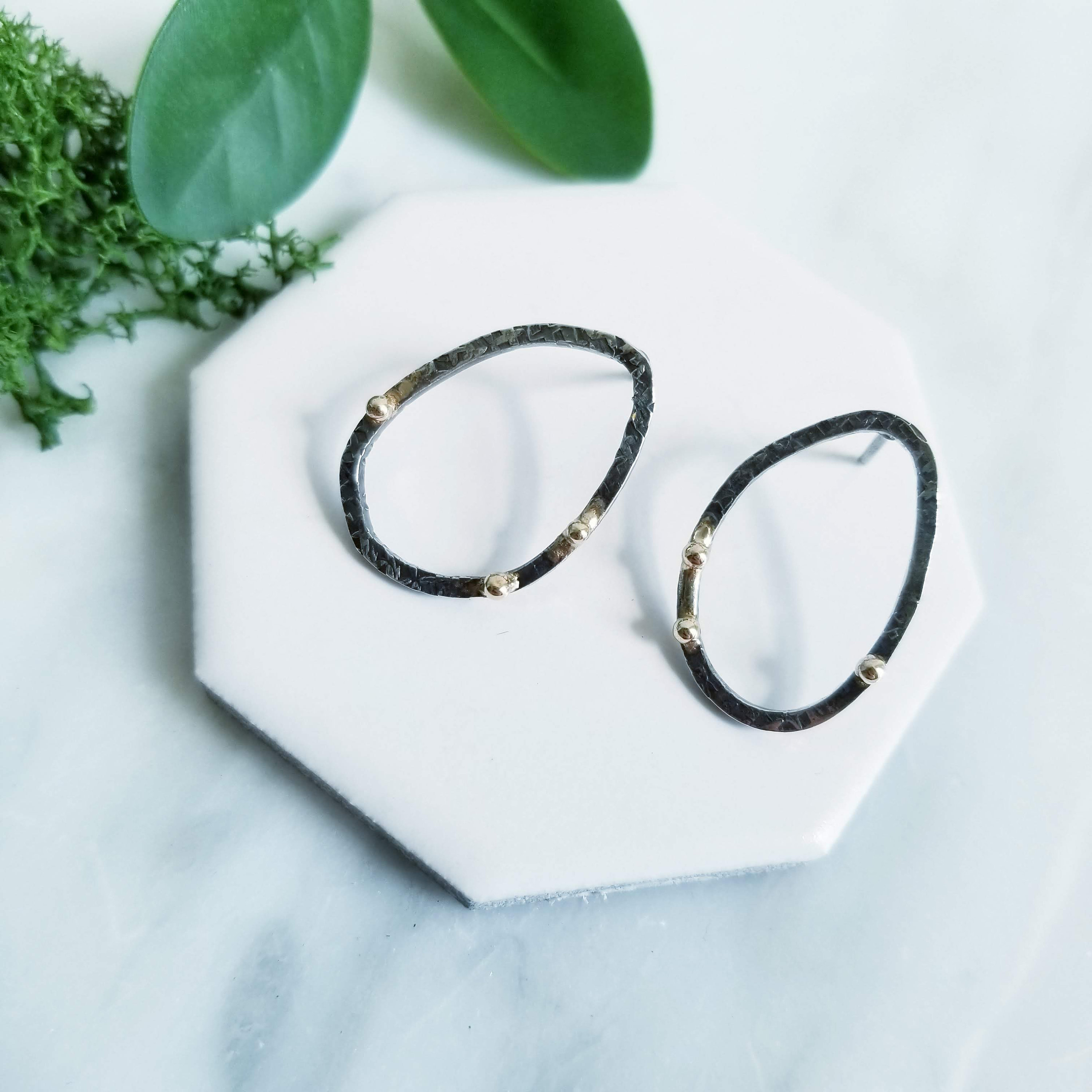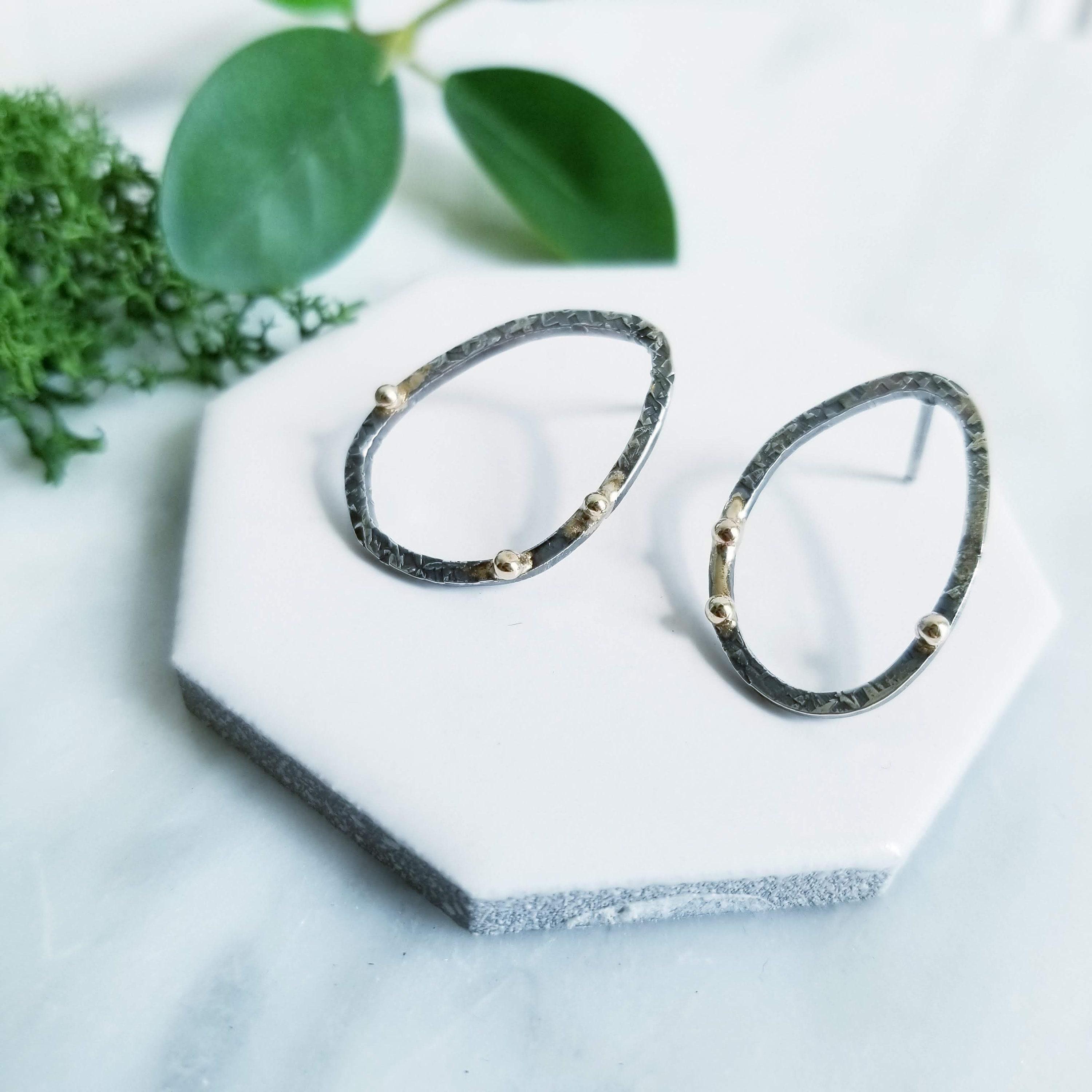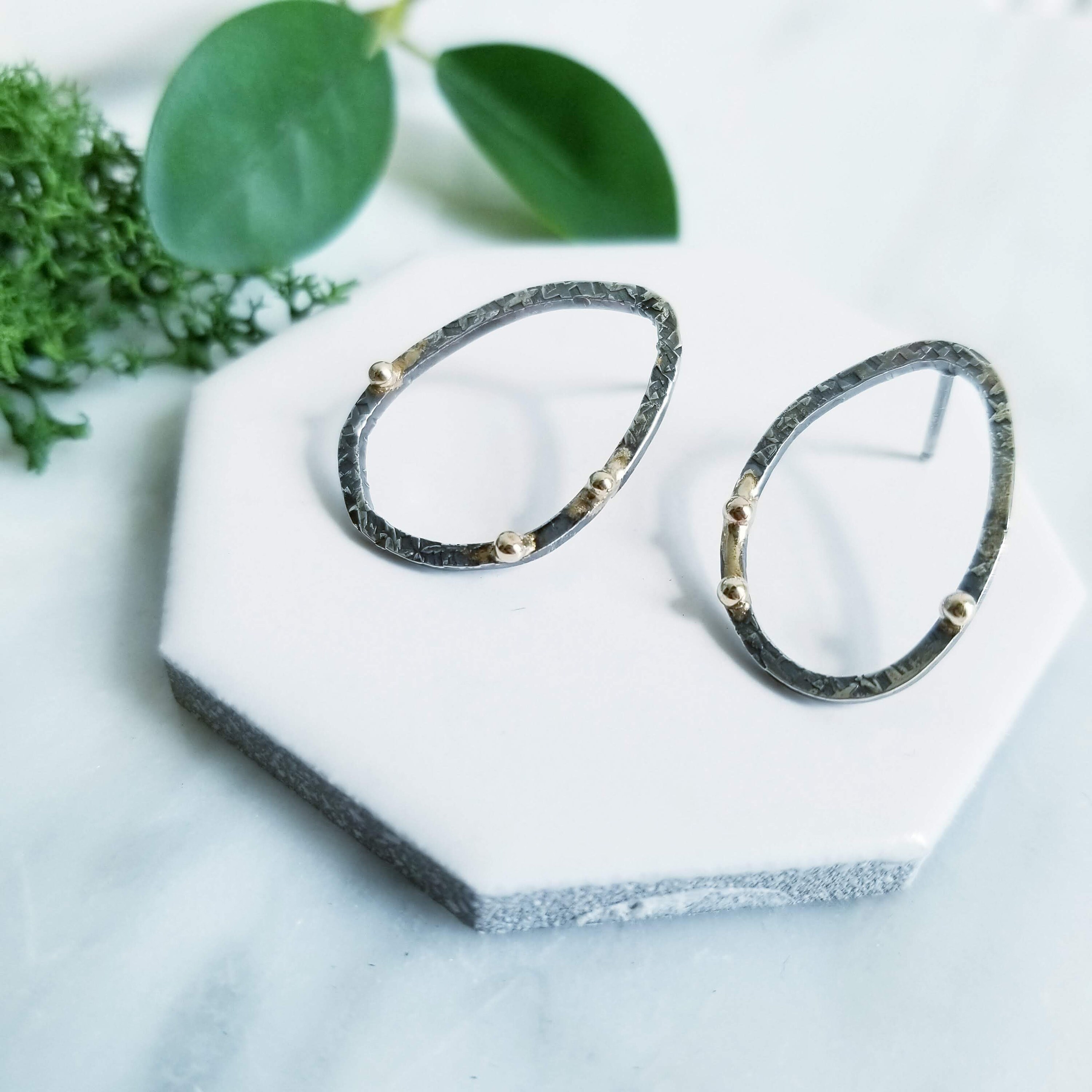 Crafted with sterling silver and delicate solid gold dots, these earrings are the perfect accessory to spice up any outfit.