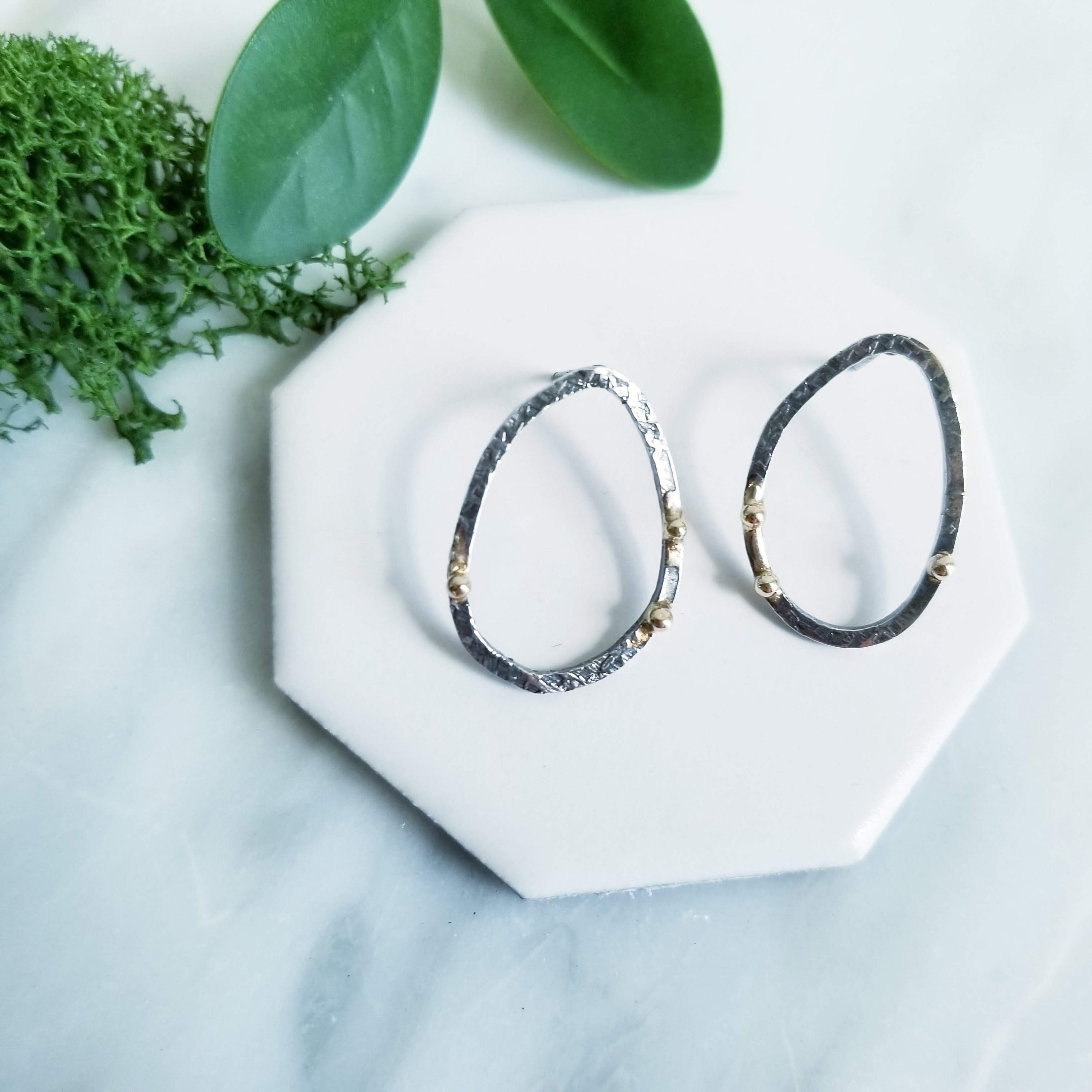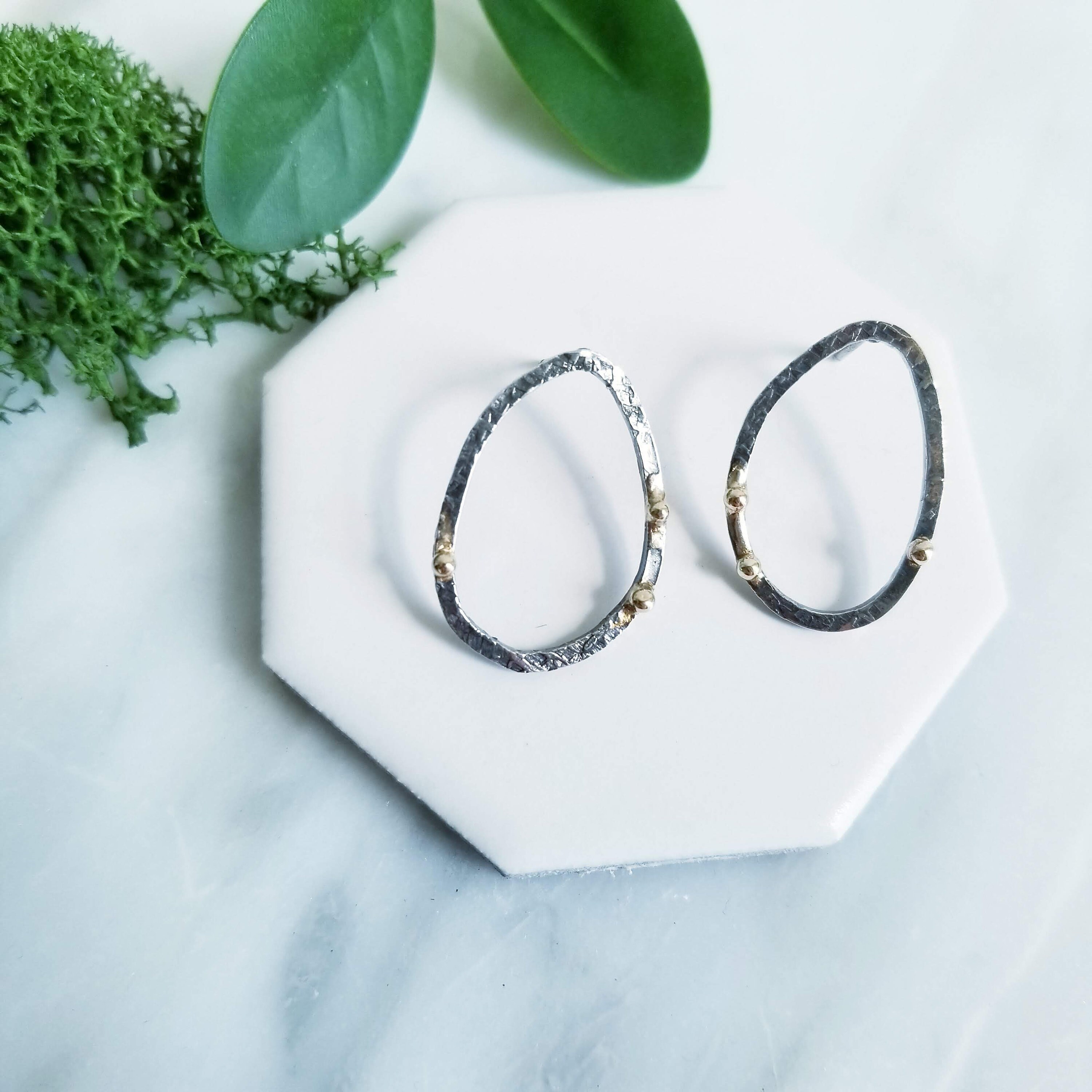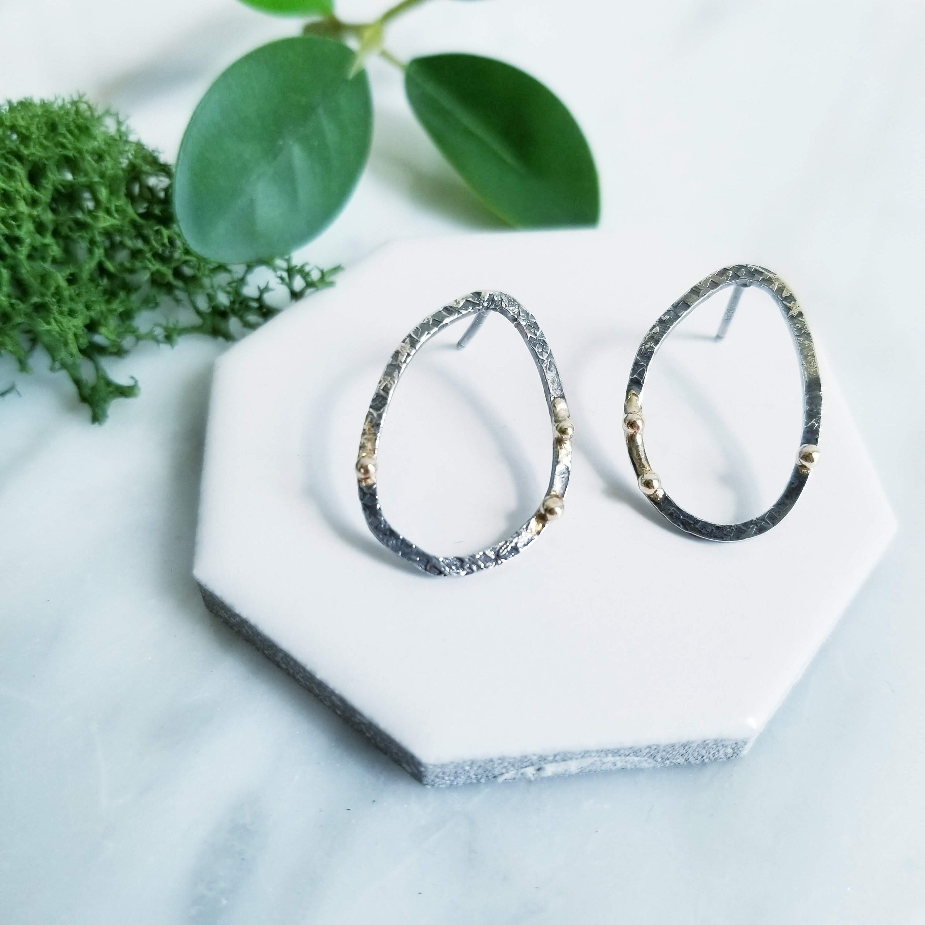 Crafted with sterling silver and delicate solid gold dots, these earrings are the perfect accessory to spice up any outfit.
