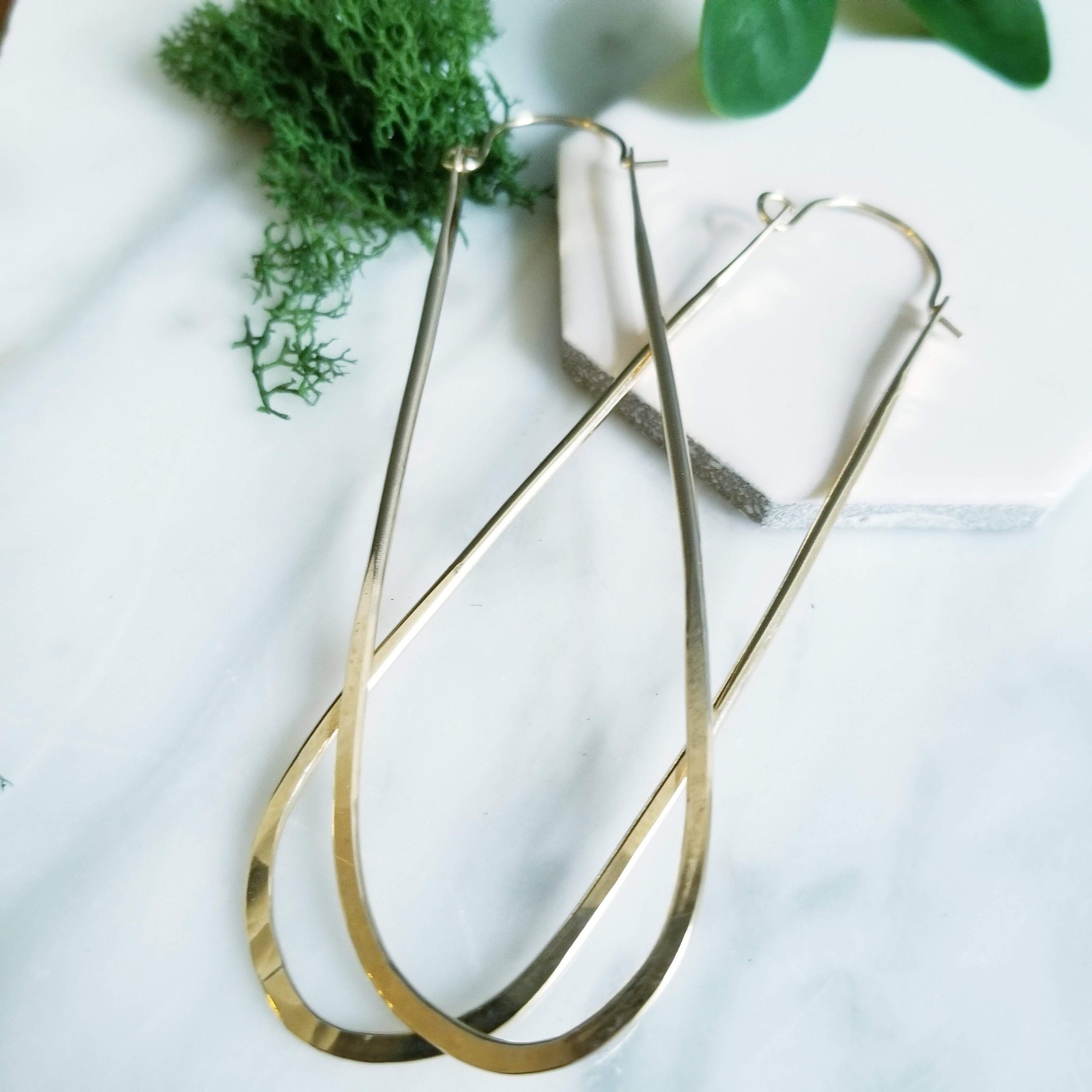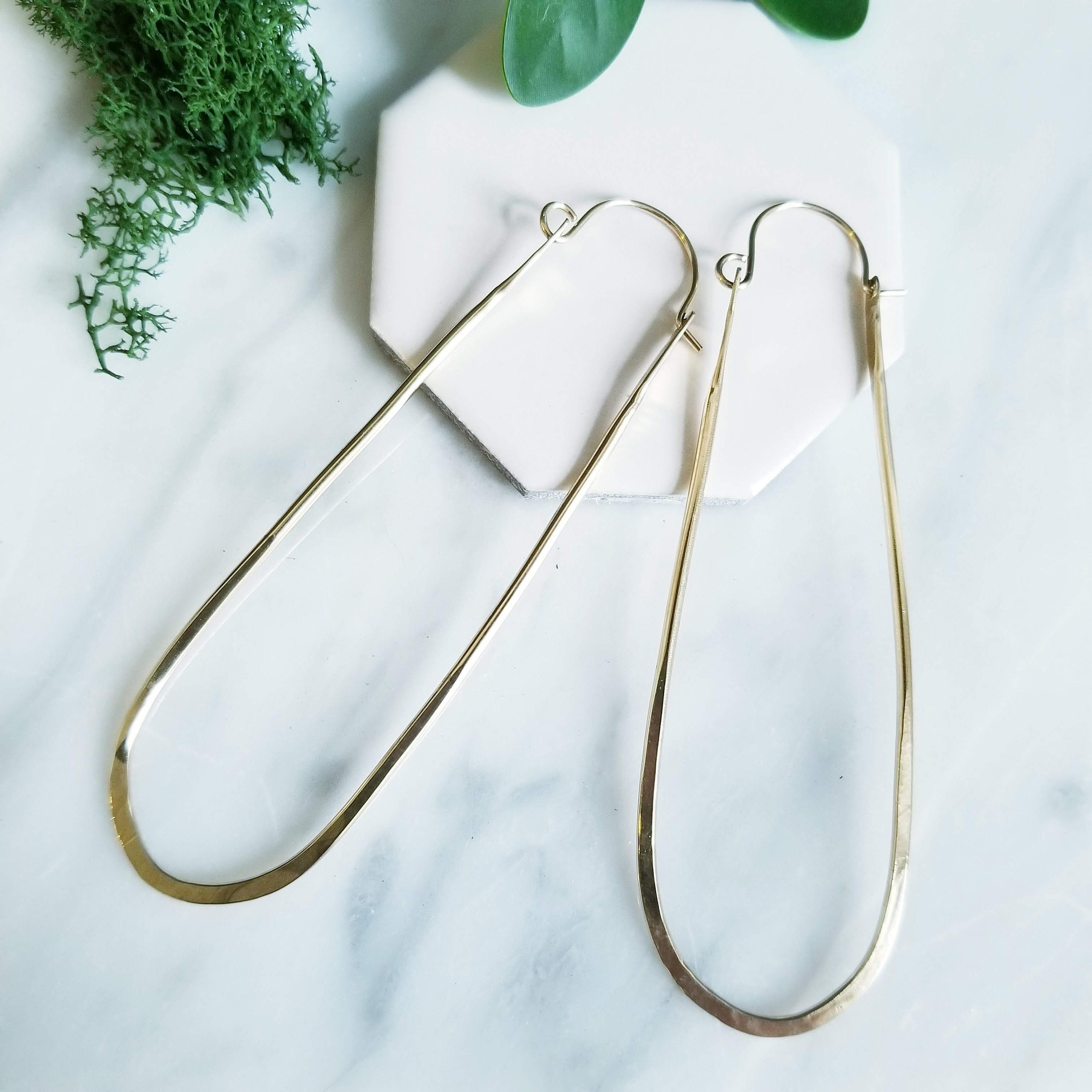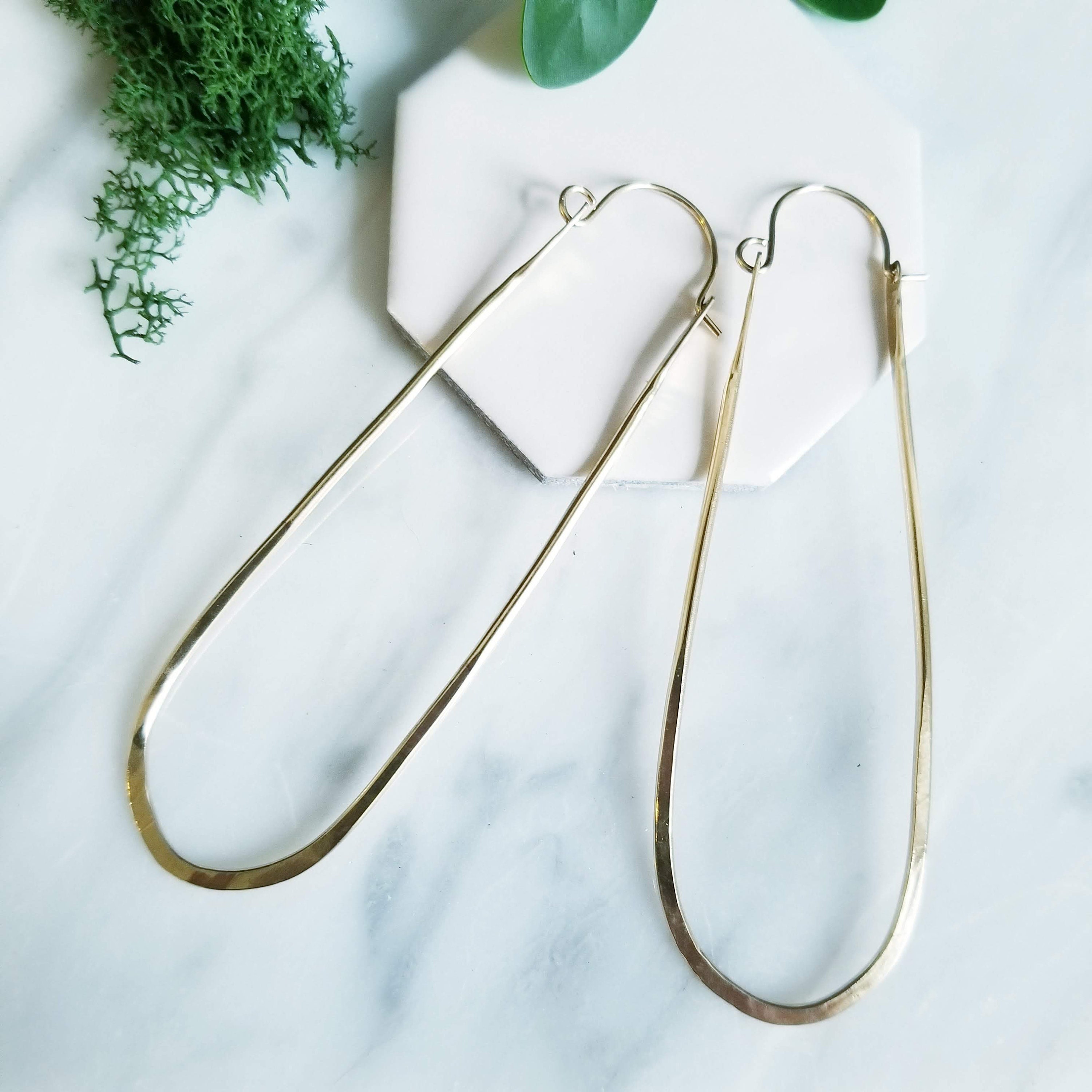 Choose from 14K Gold Filled or Sterling Silver , these earrings offer a luxurious feel. The hammered texture adds a unique and eye-catching detail
