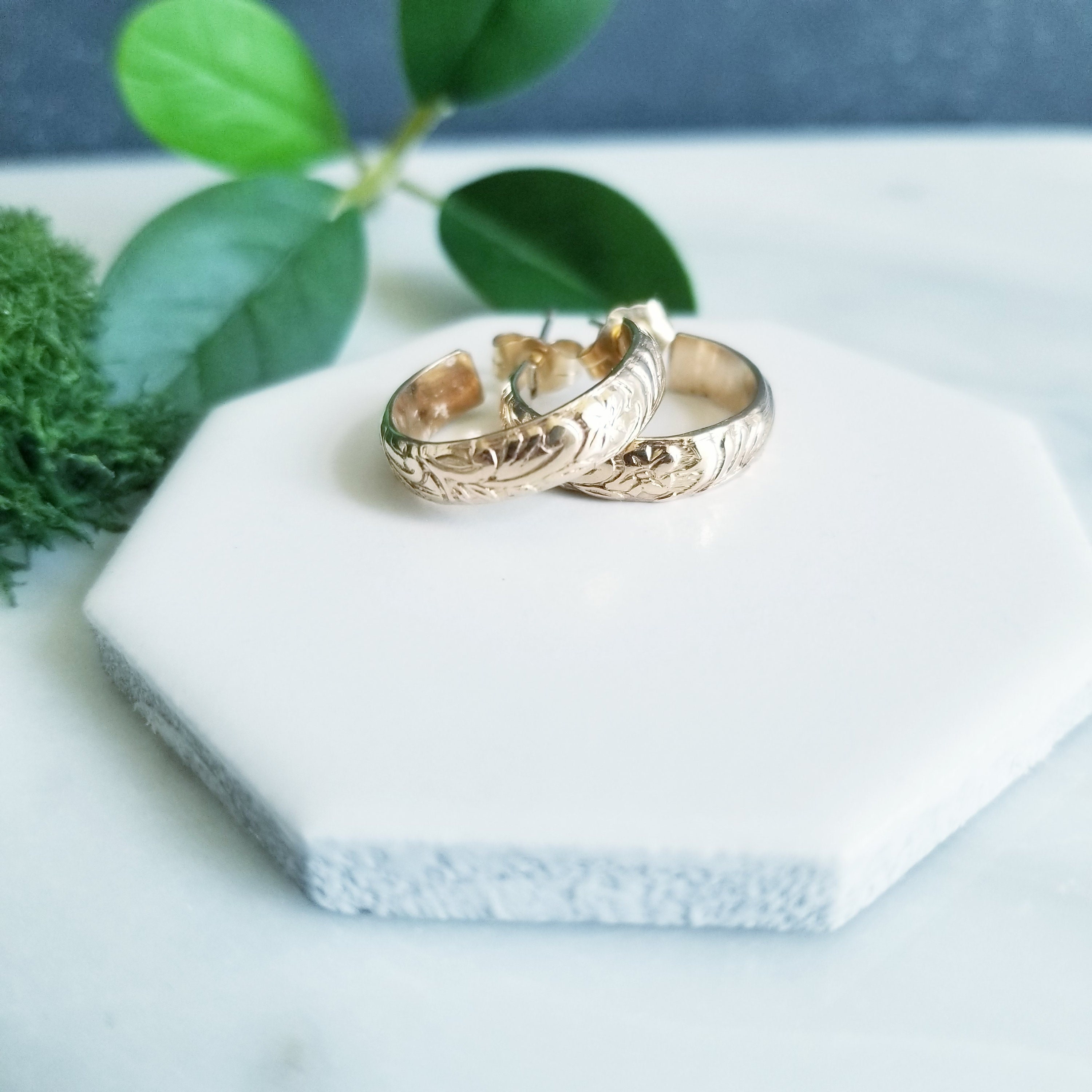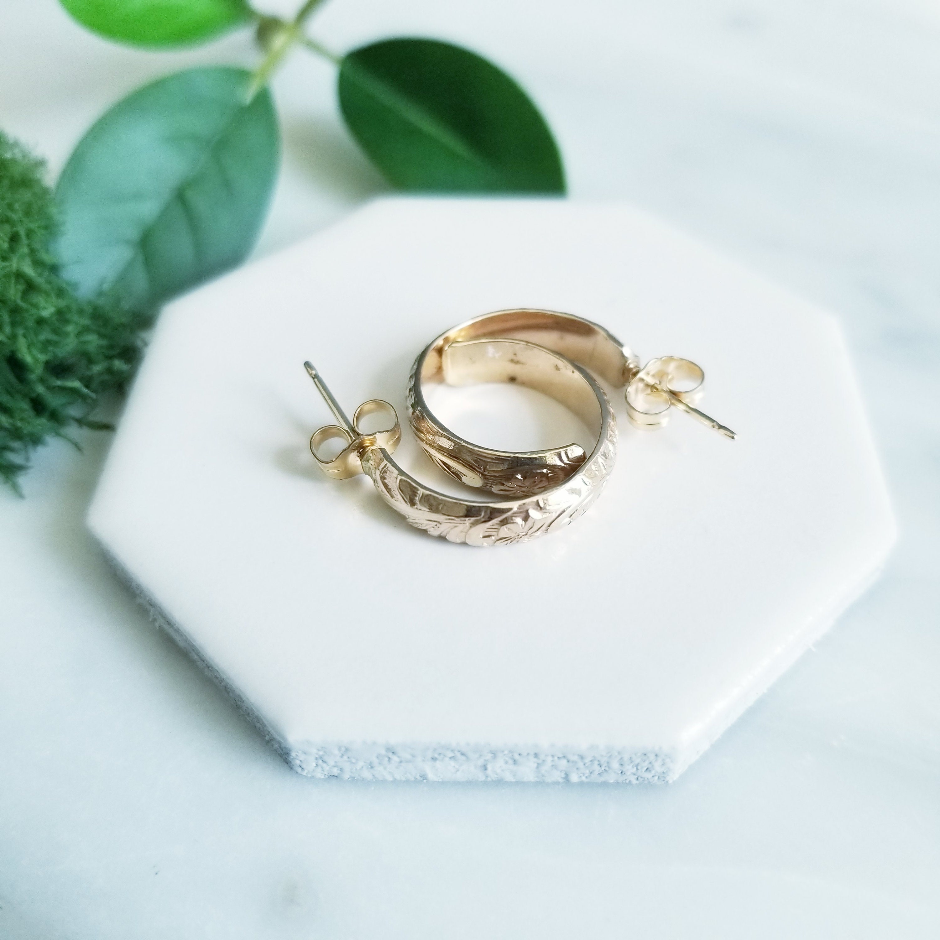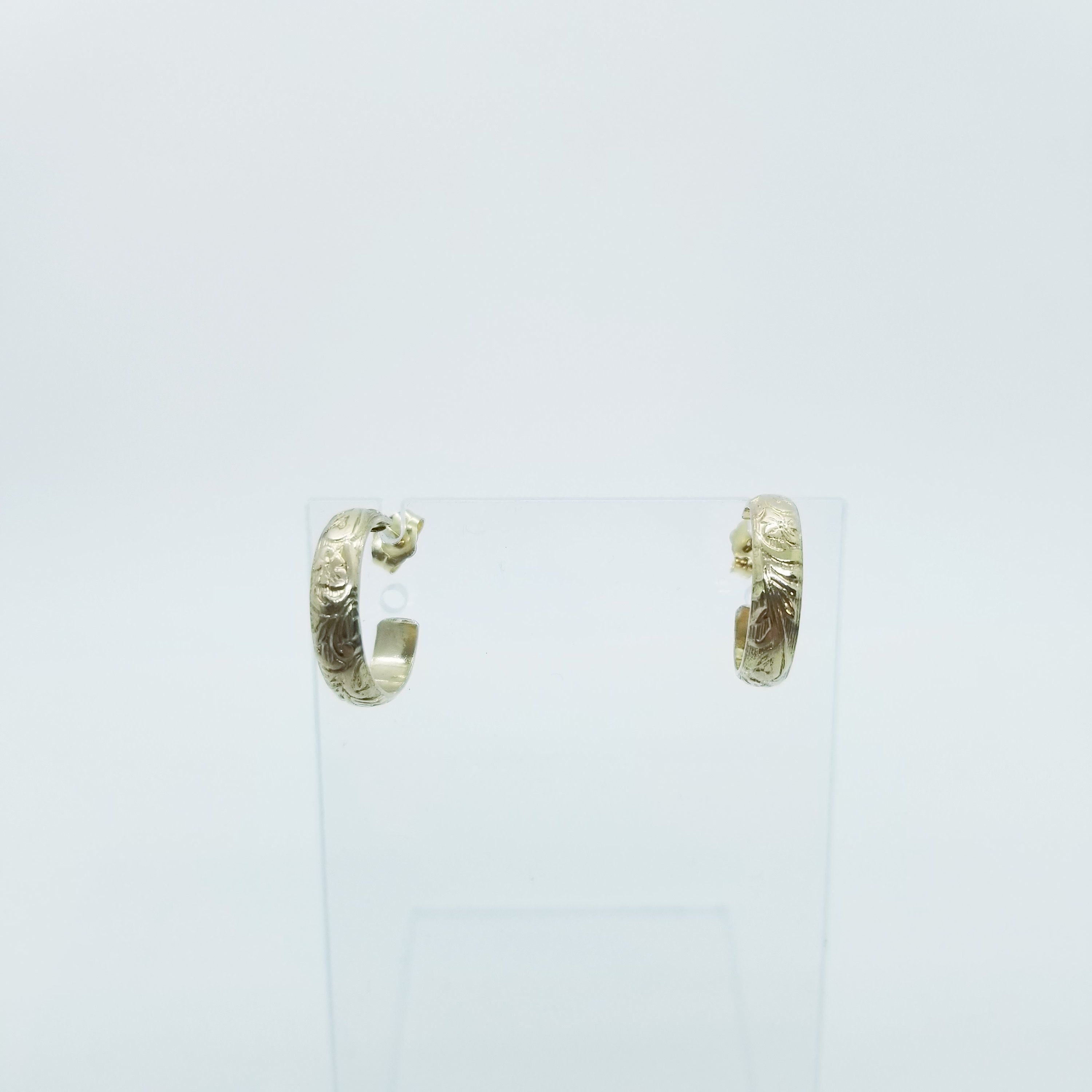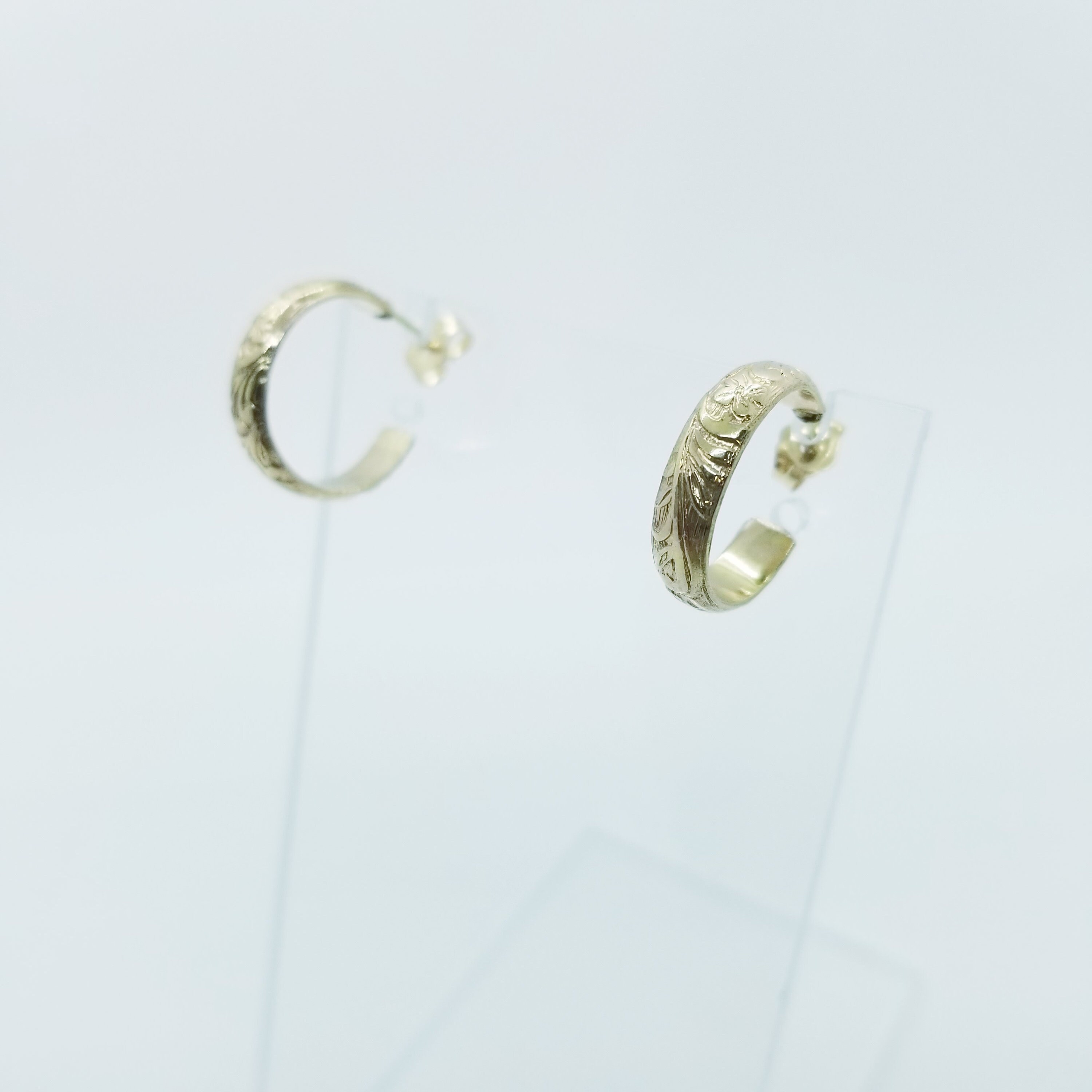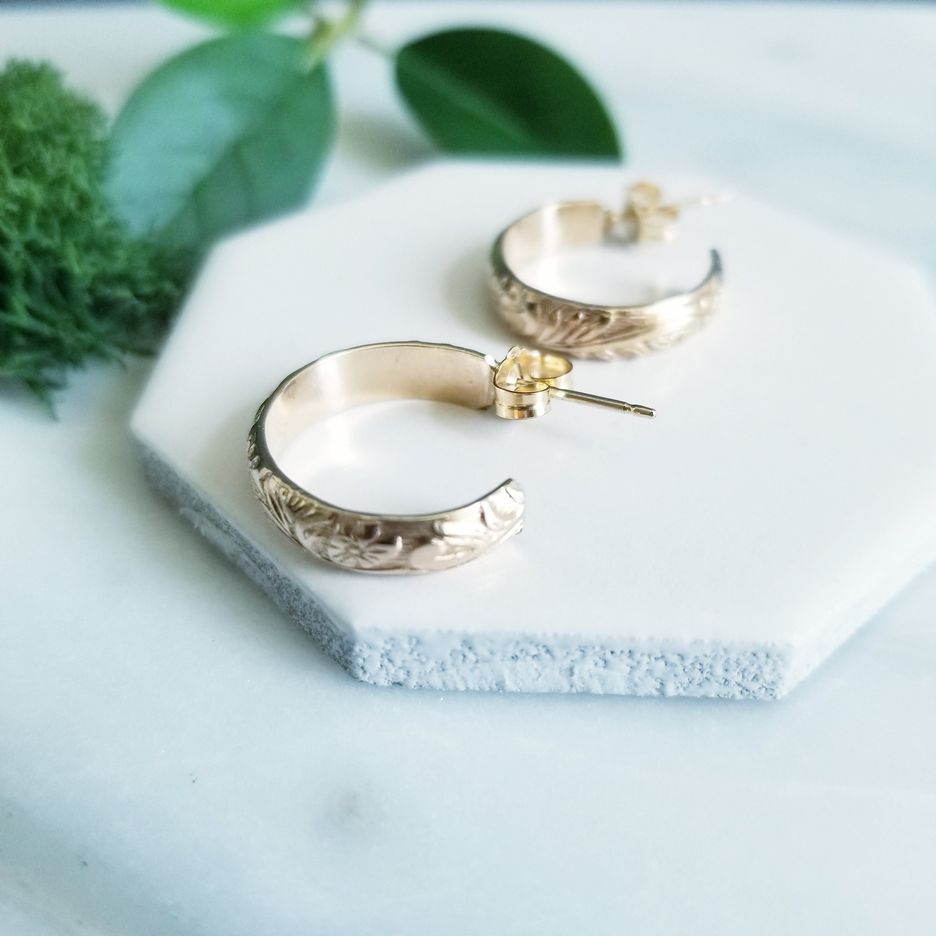 The earrings you'll reach for every day, subtle floral pattern, classic hoop post.