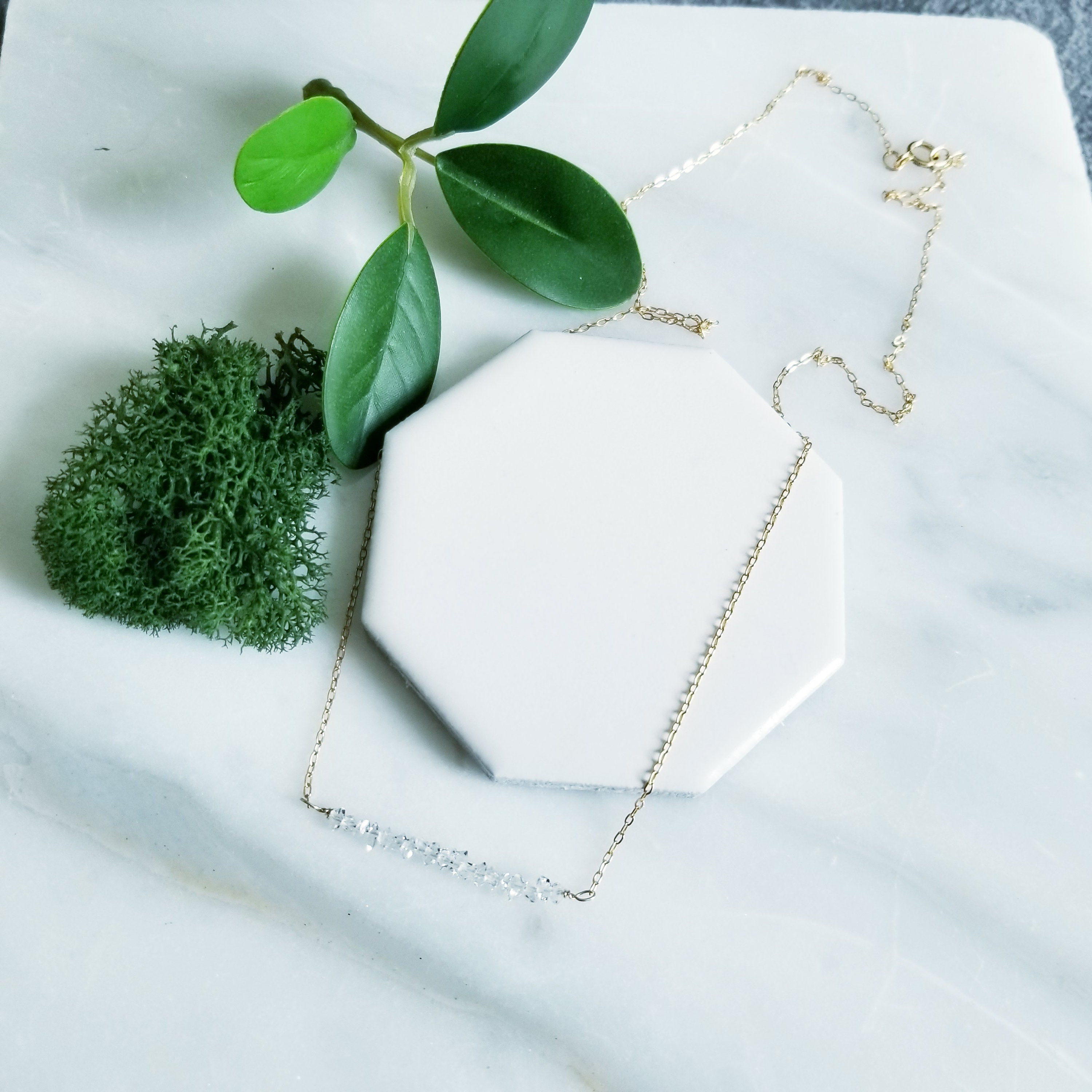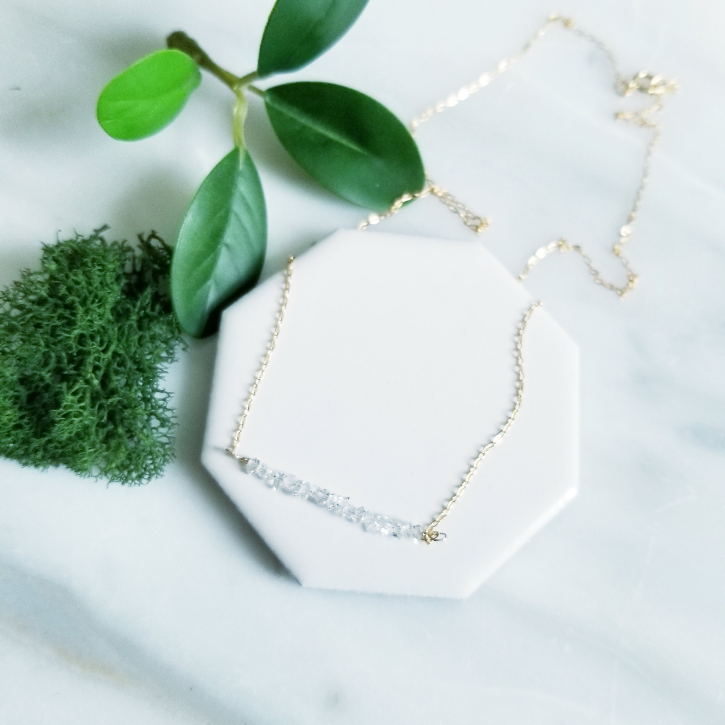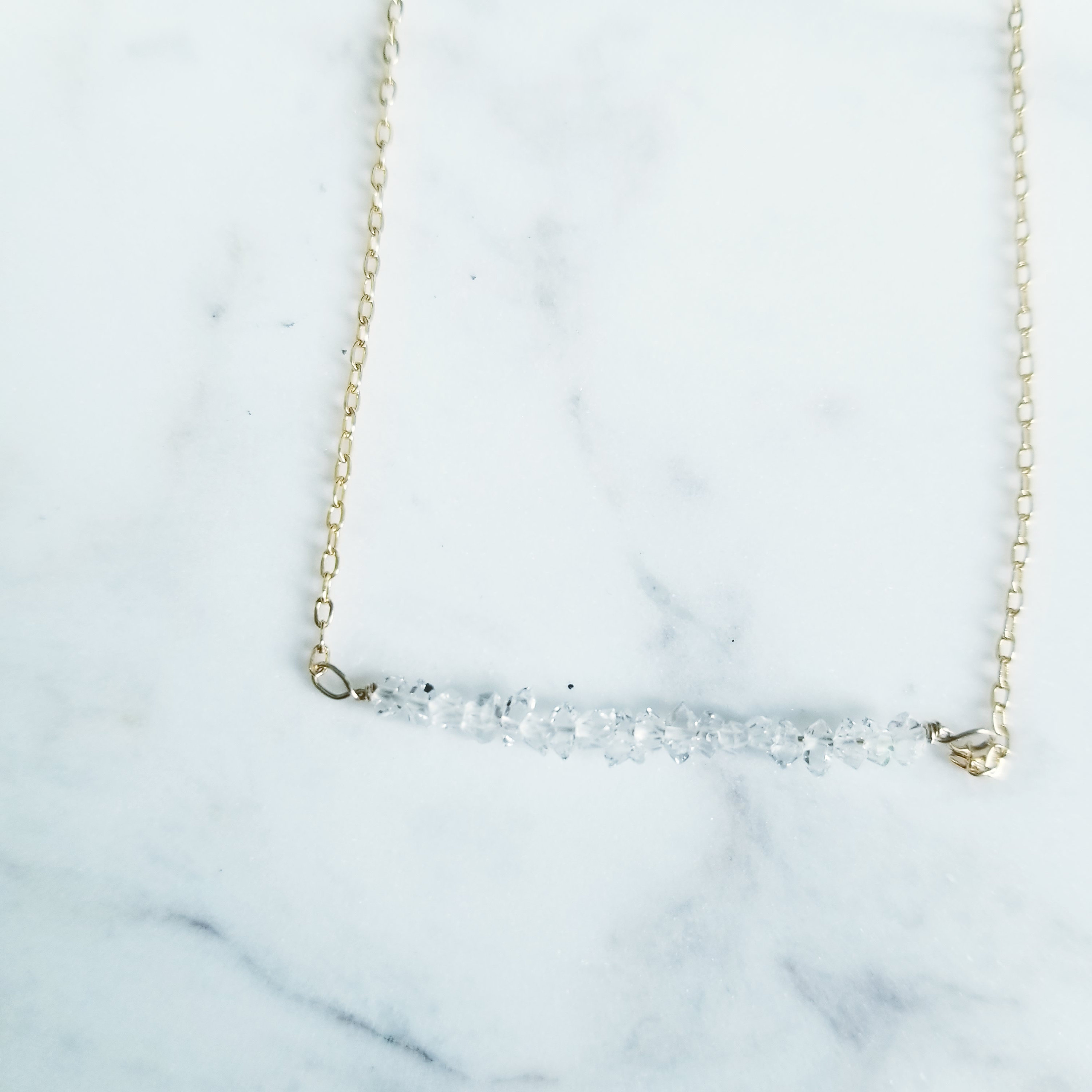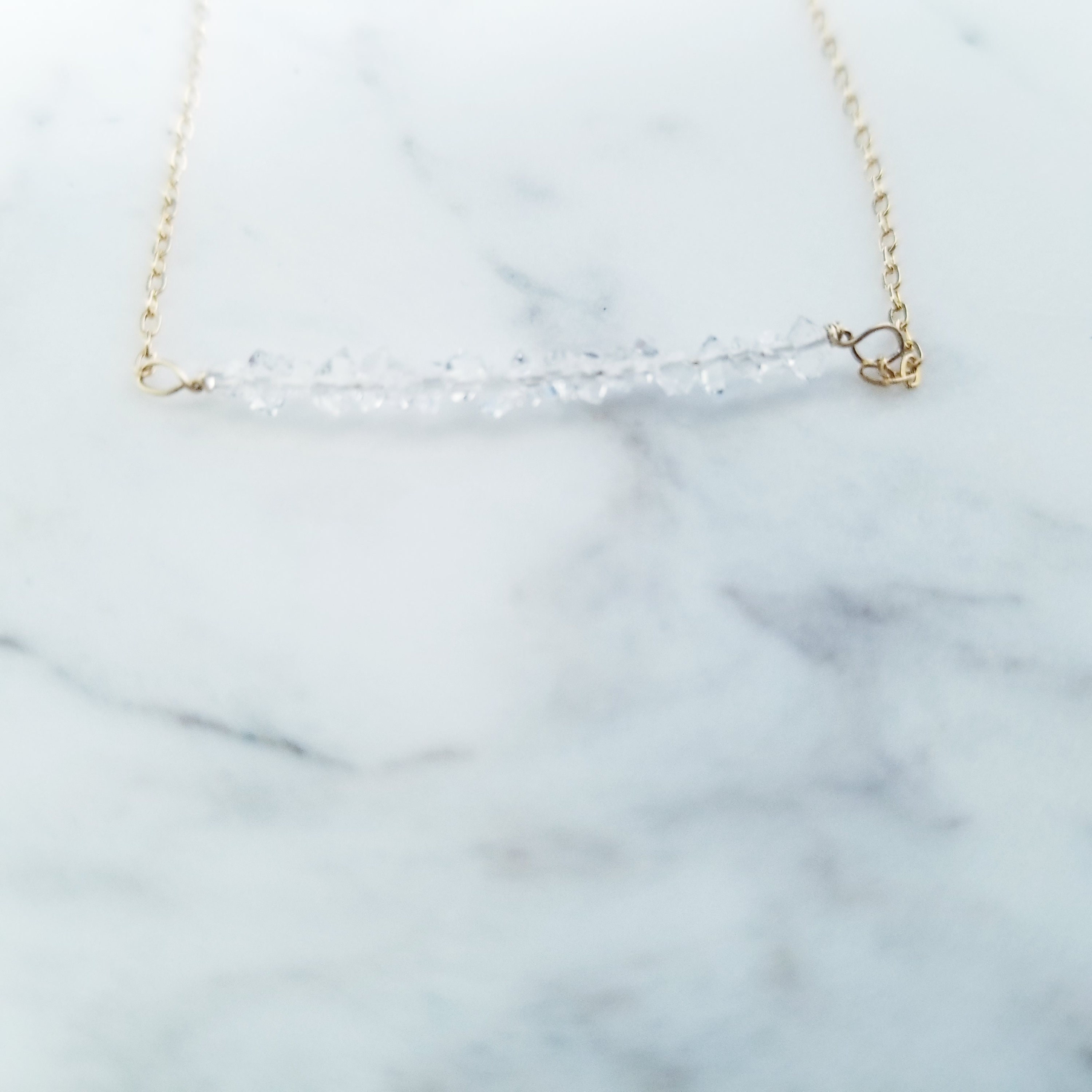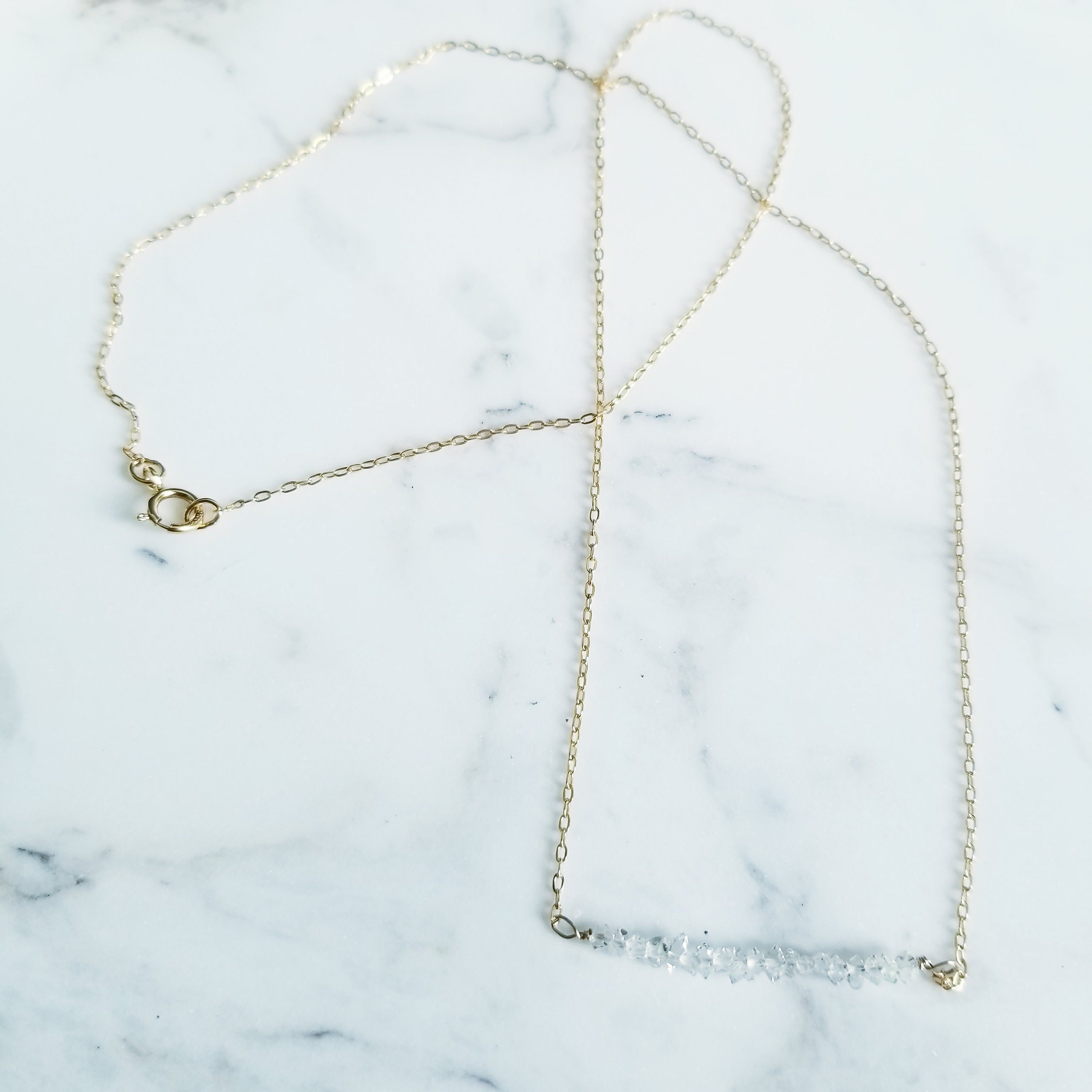 So very sparkly, genuine Herkimer diamond gemstones are wire wrapped to 14k gold fill dainty oval cable chain. Herkimer diamonds are approximately 2-3 mm.