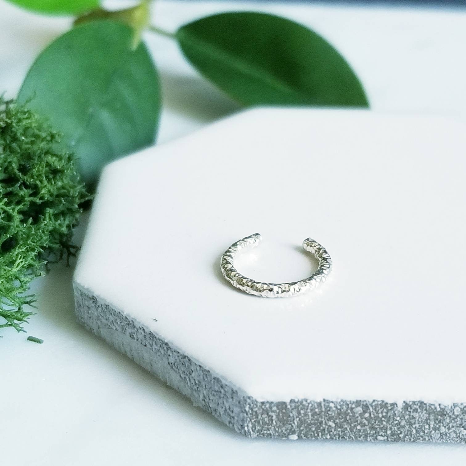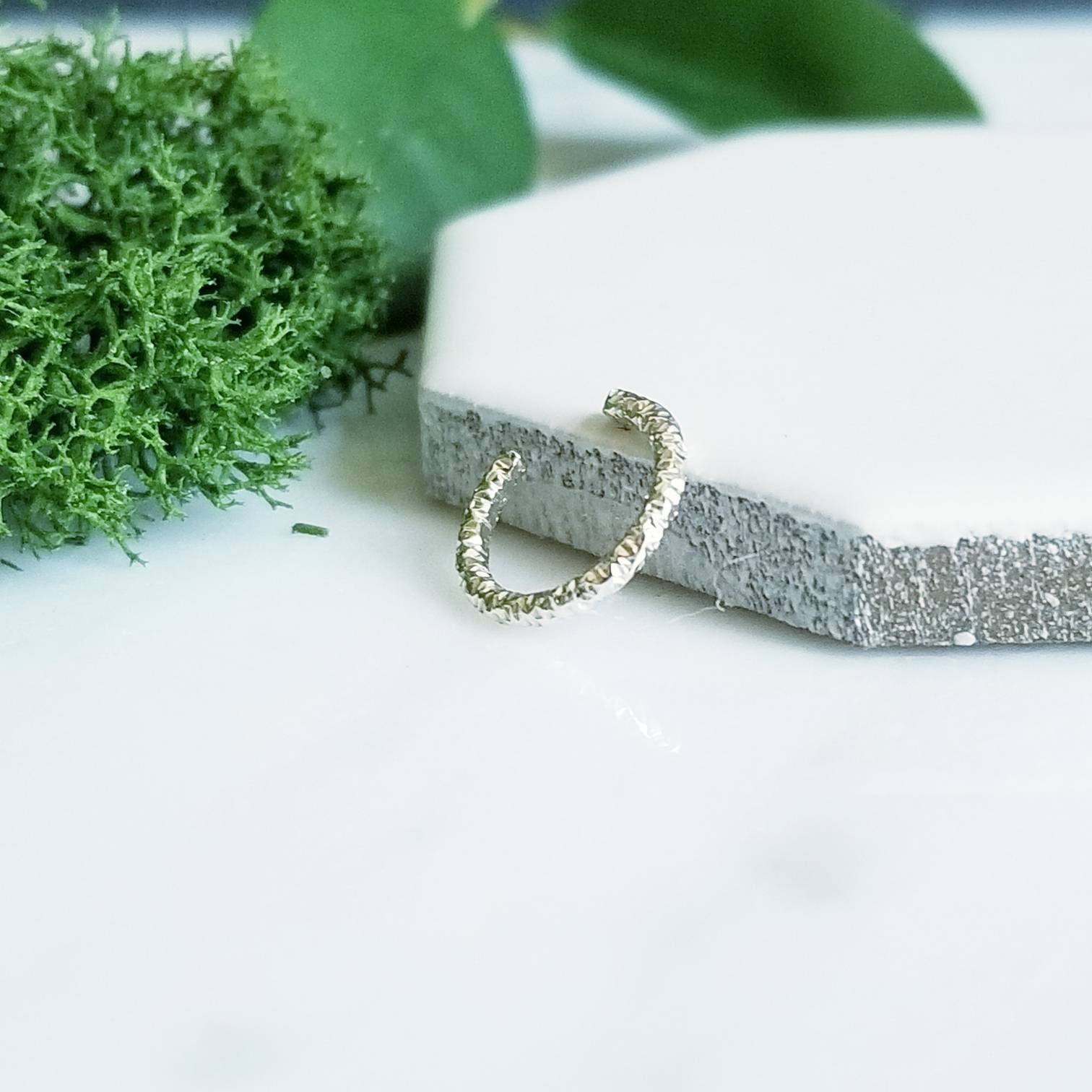 Can also be slid onto the side of your nose as a faux hoop piercing. Squeeze gently to size.