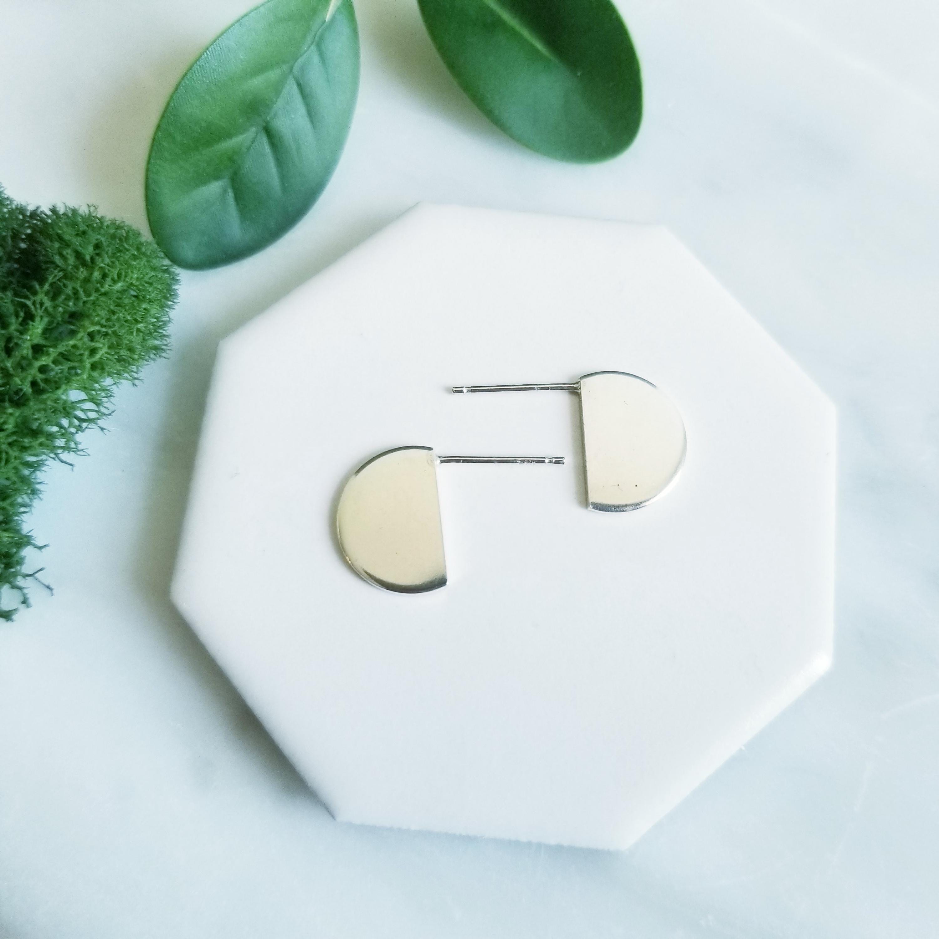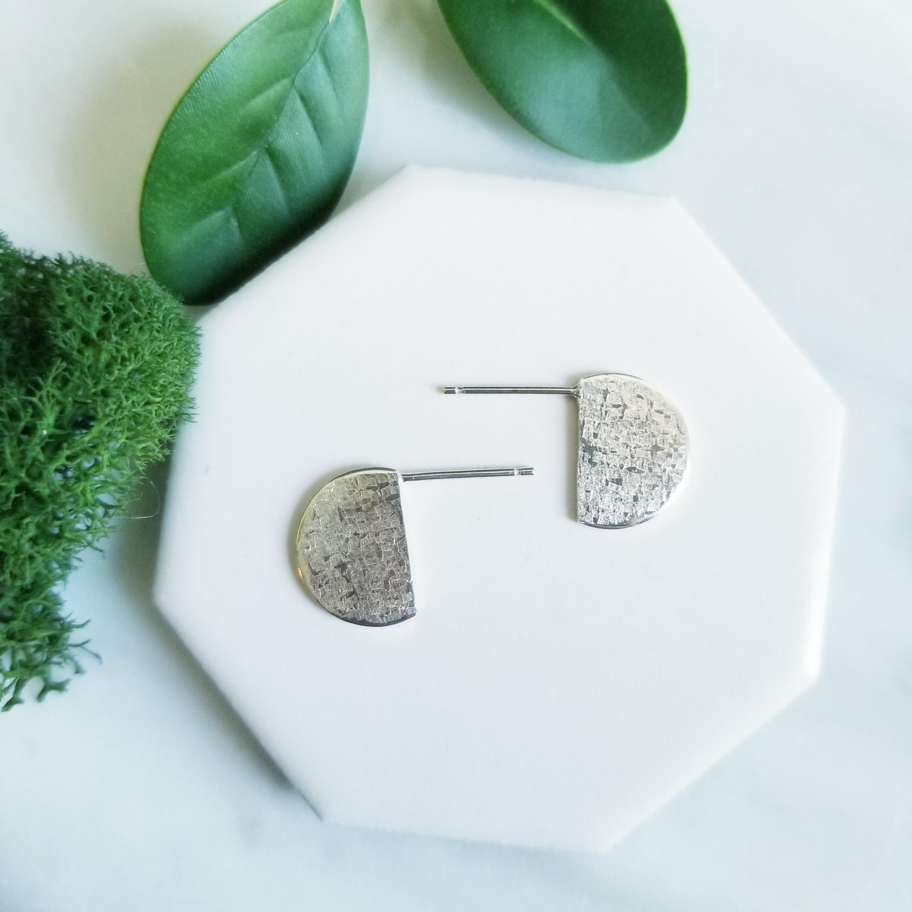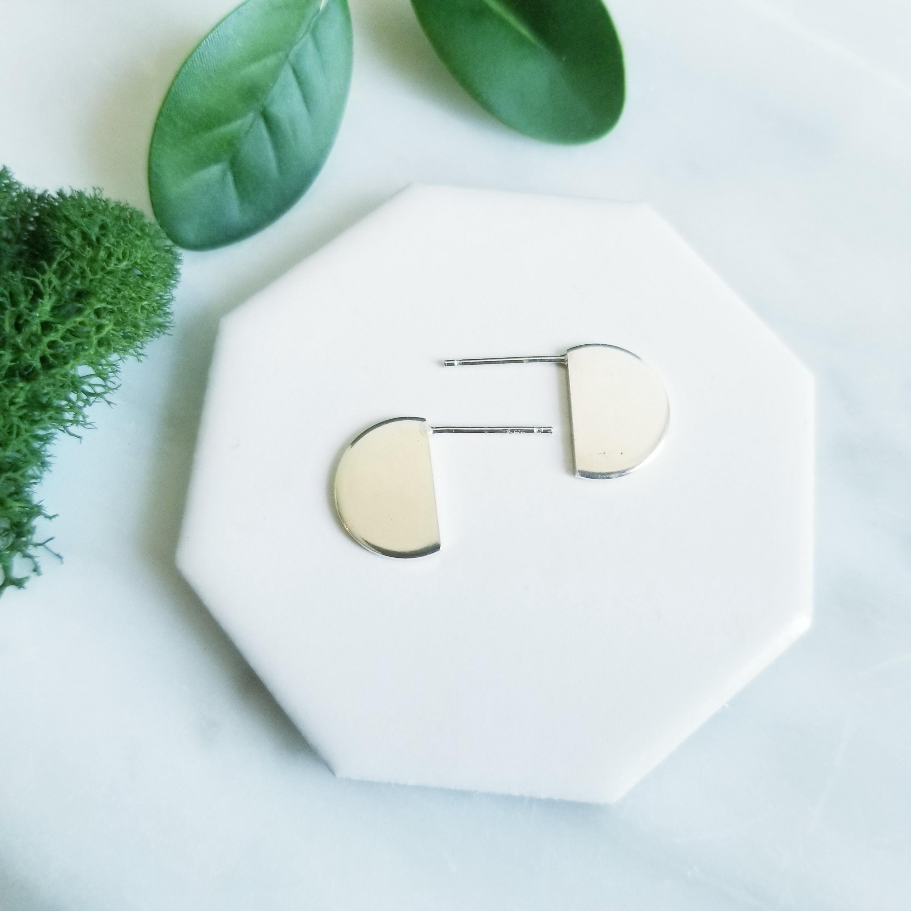 Half Circle Sterling Silver earrings, post style to sit off the earlobe for interest.