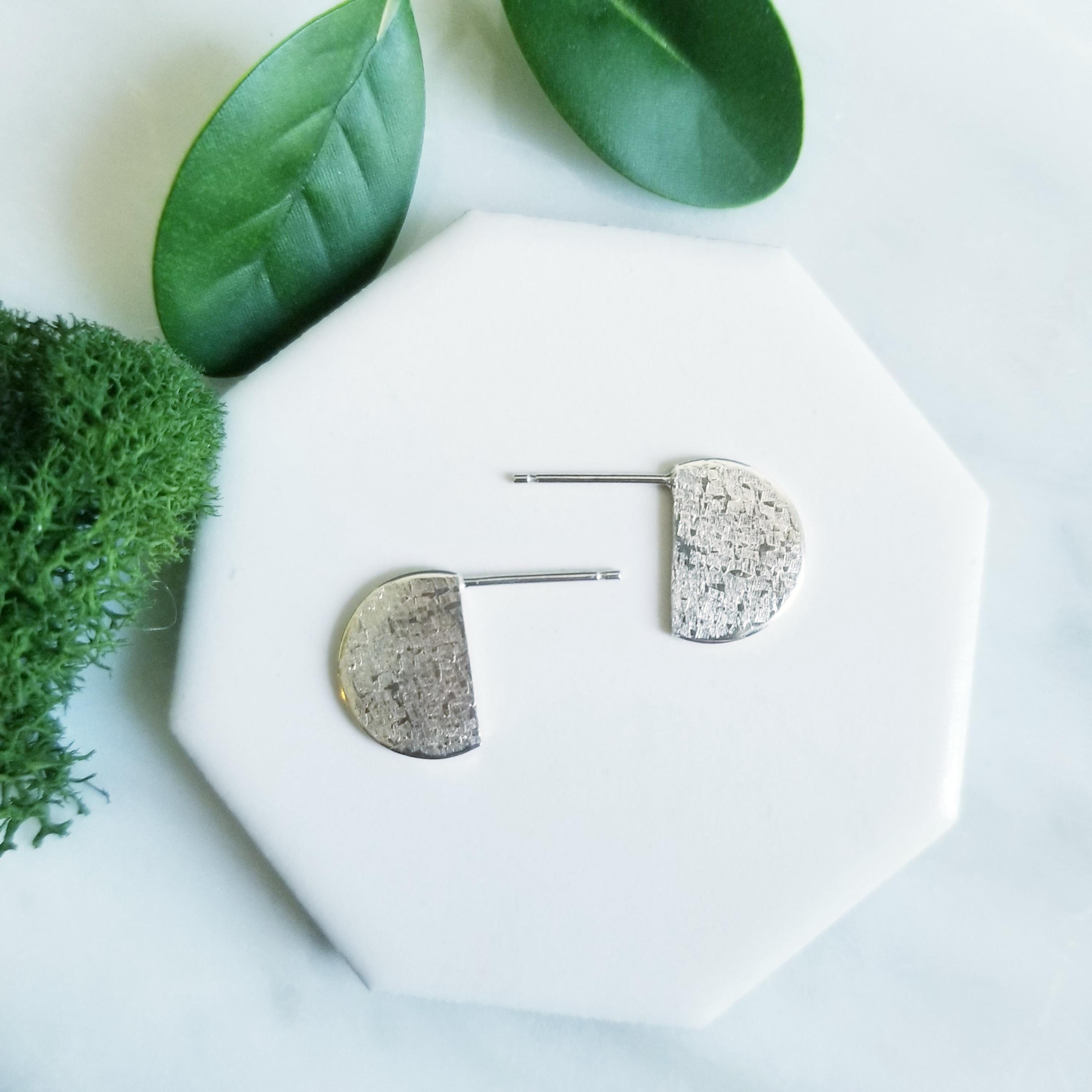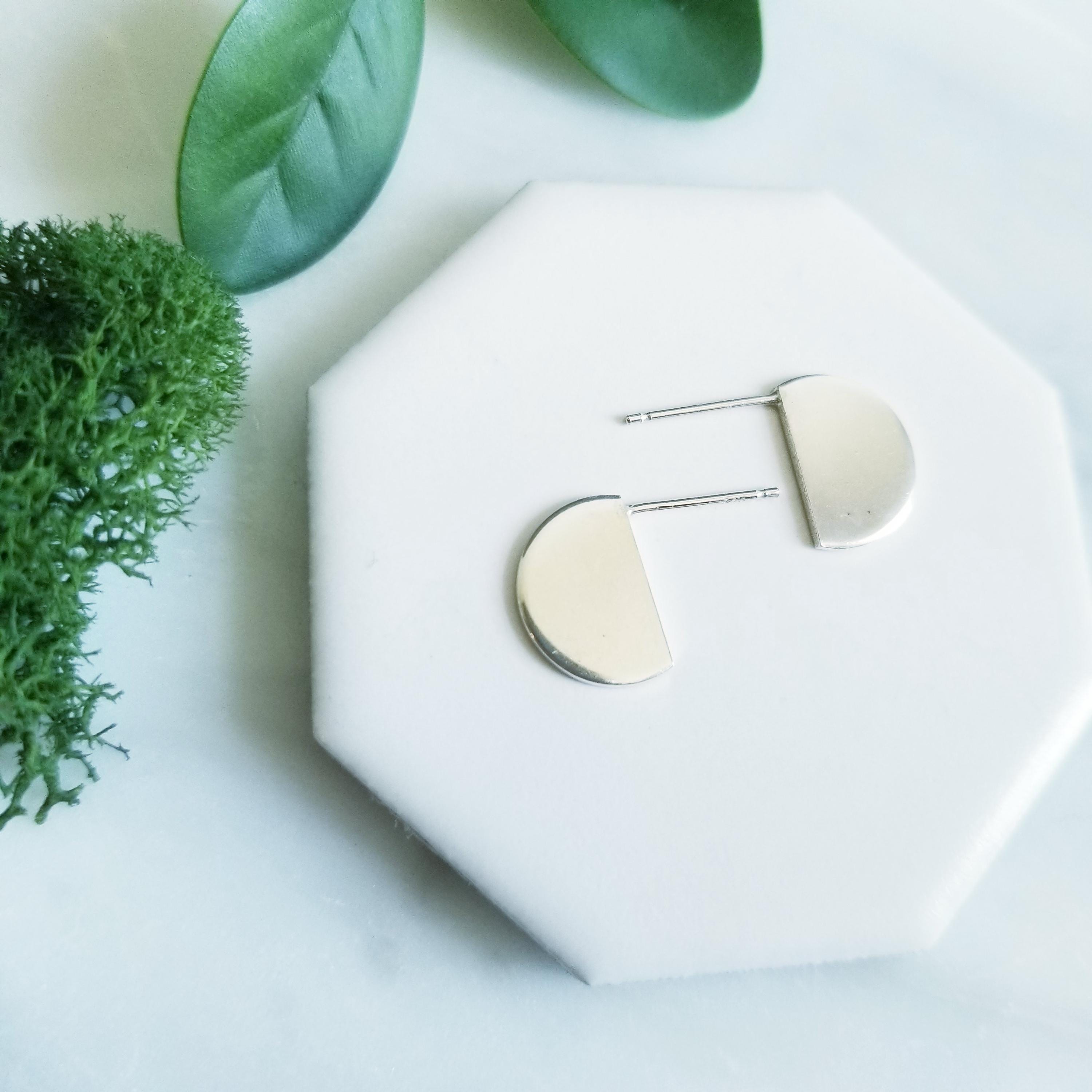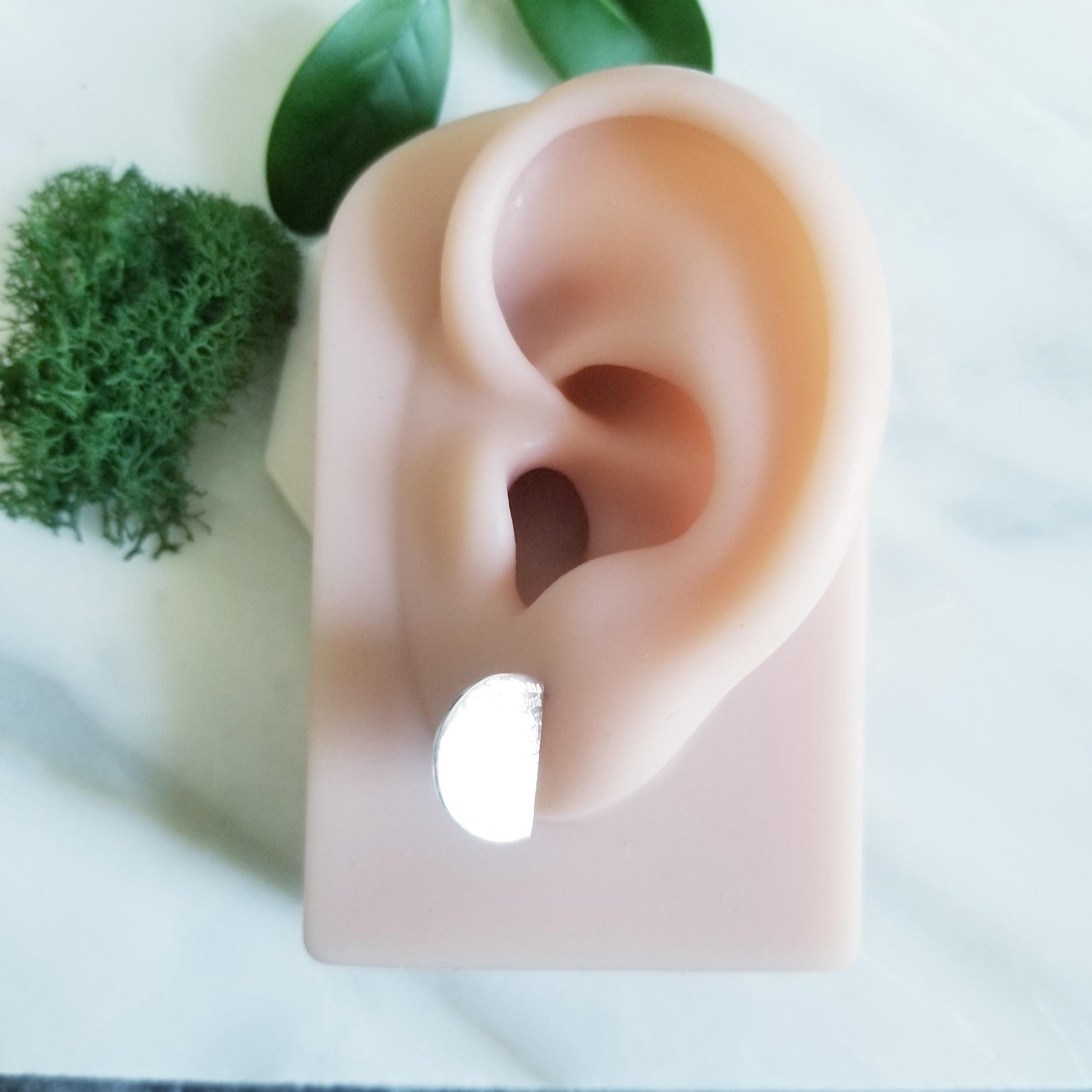 Half Circle Sterling Silver earrings, post style to sit off the earlobe for interest.