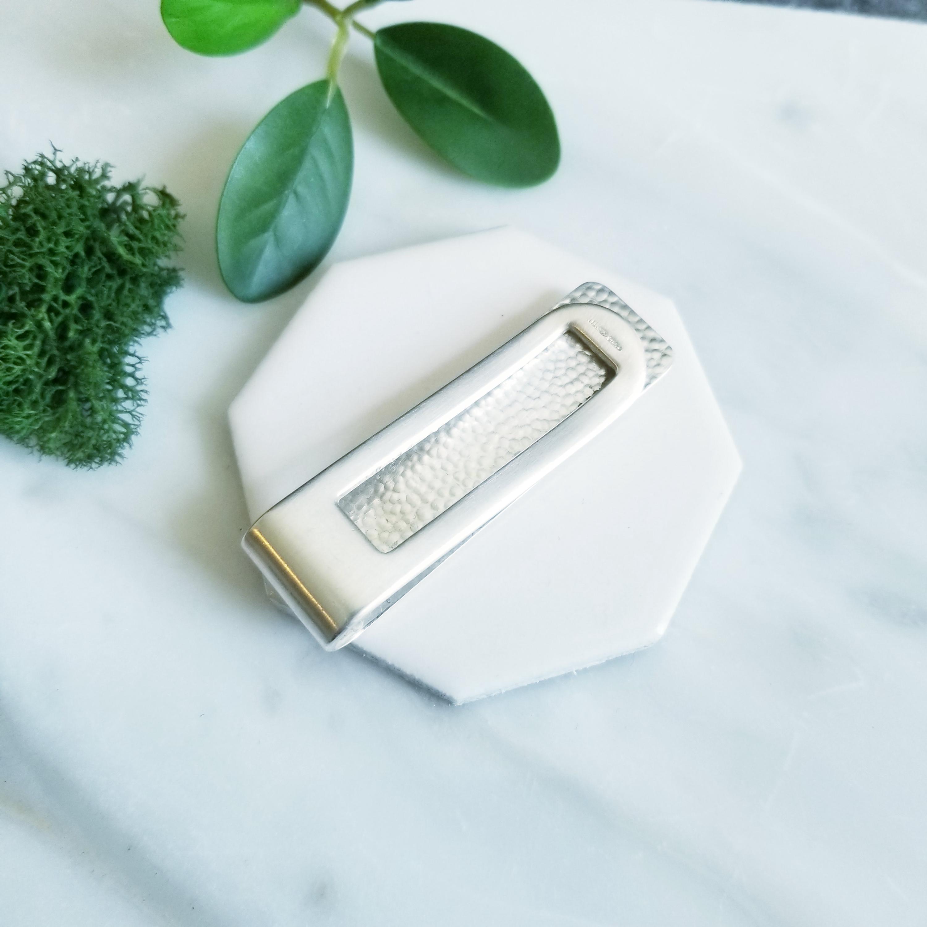 The clip features a textured interior surface and a brushed finish on the front surface.