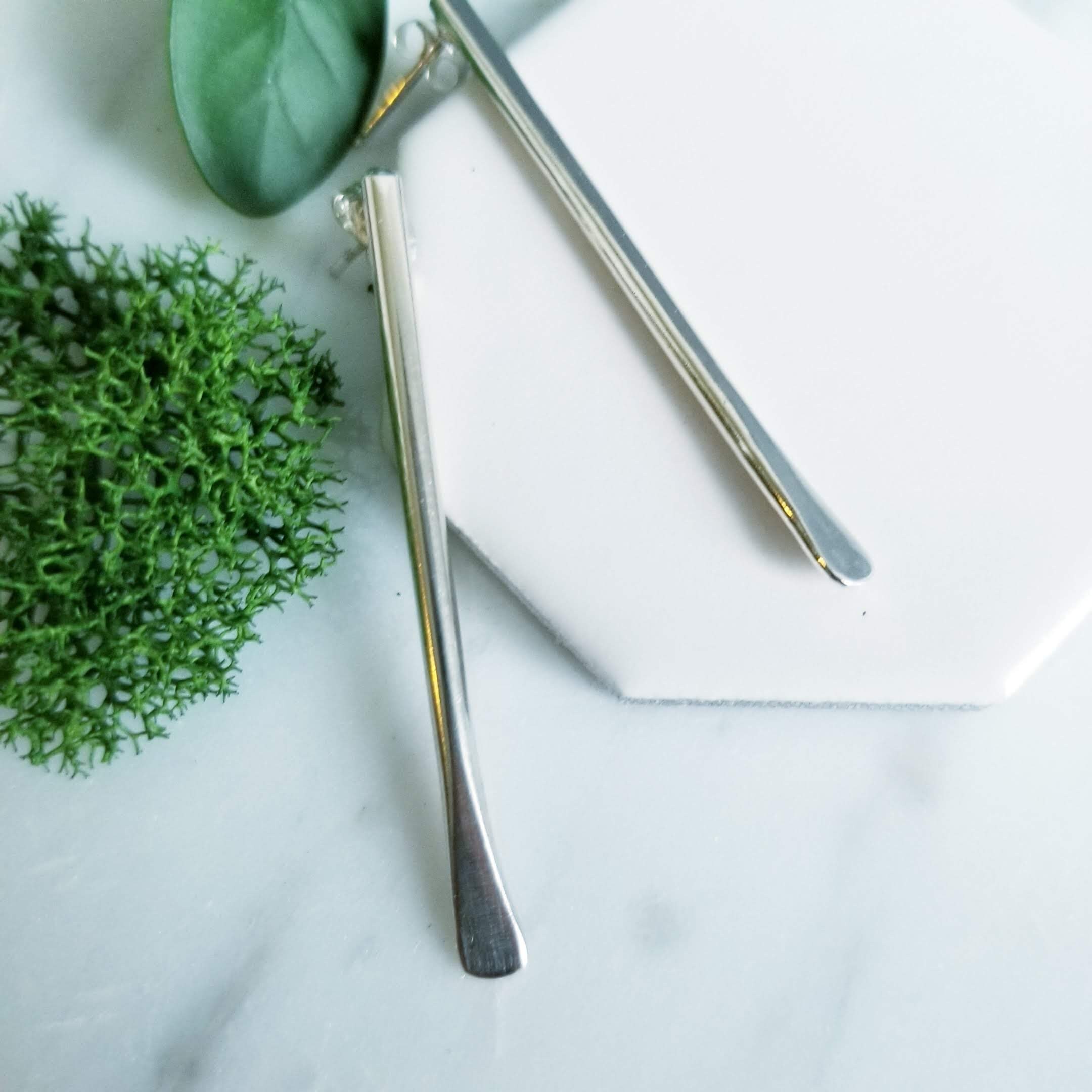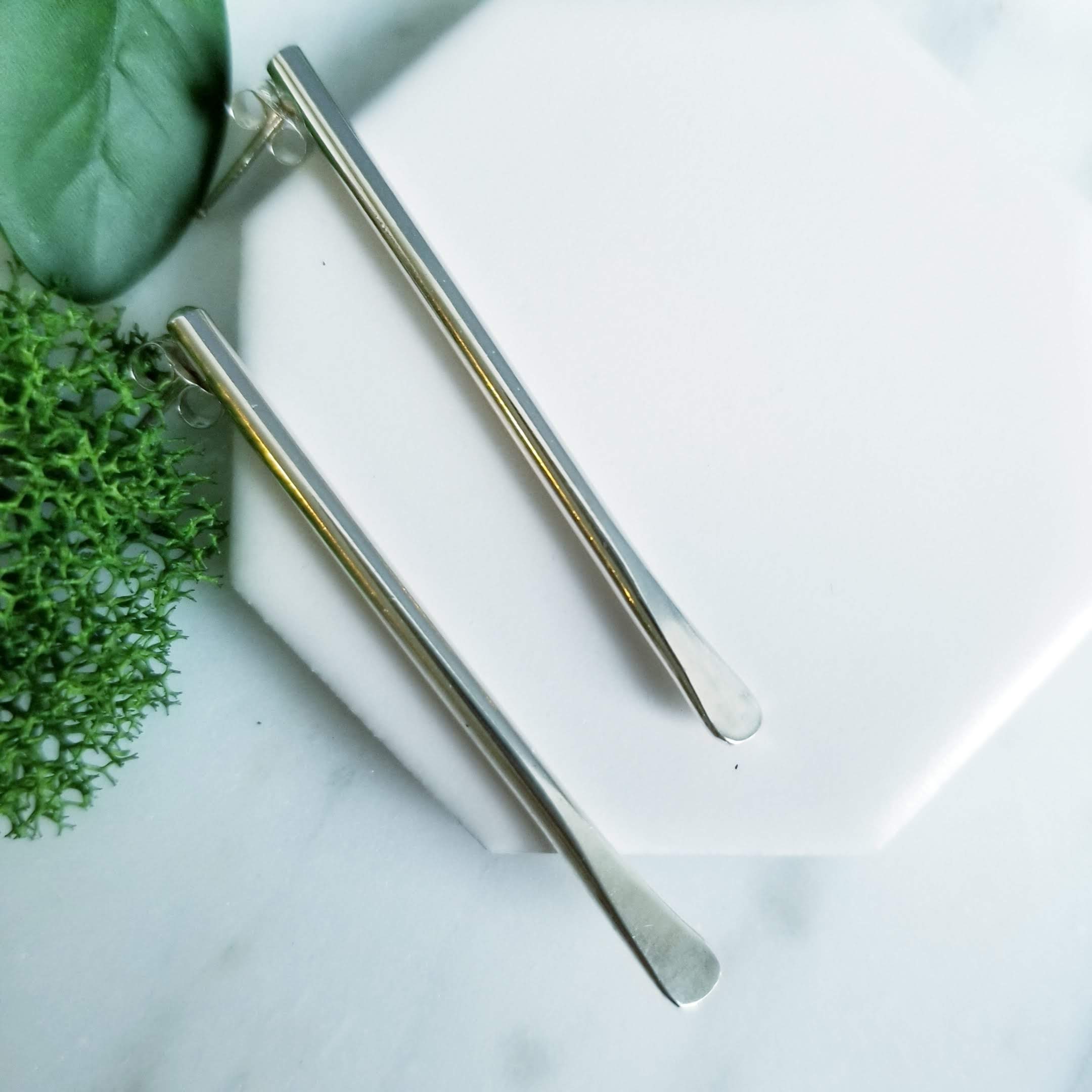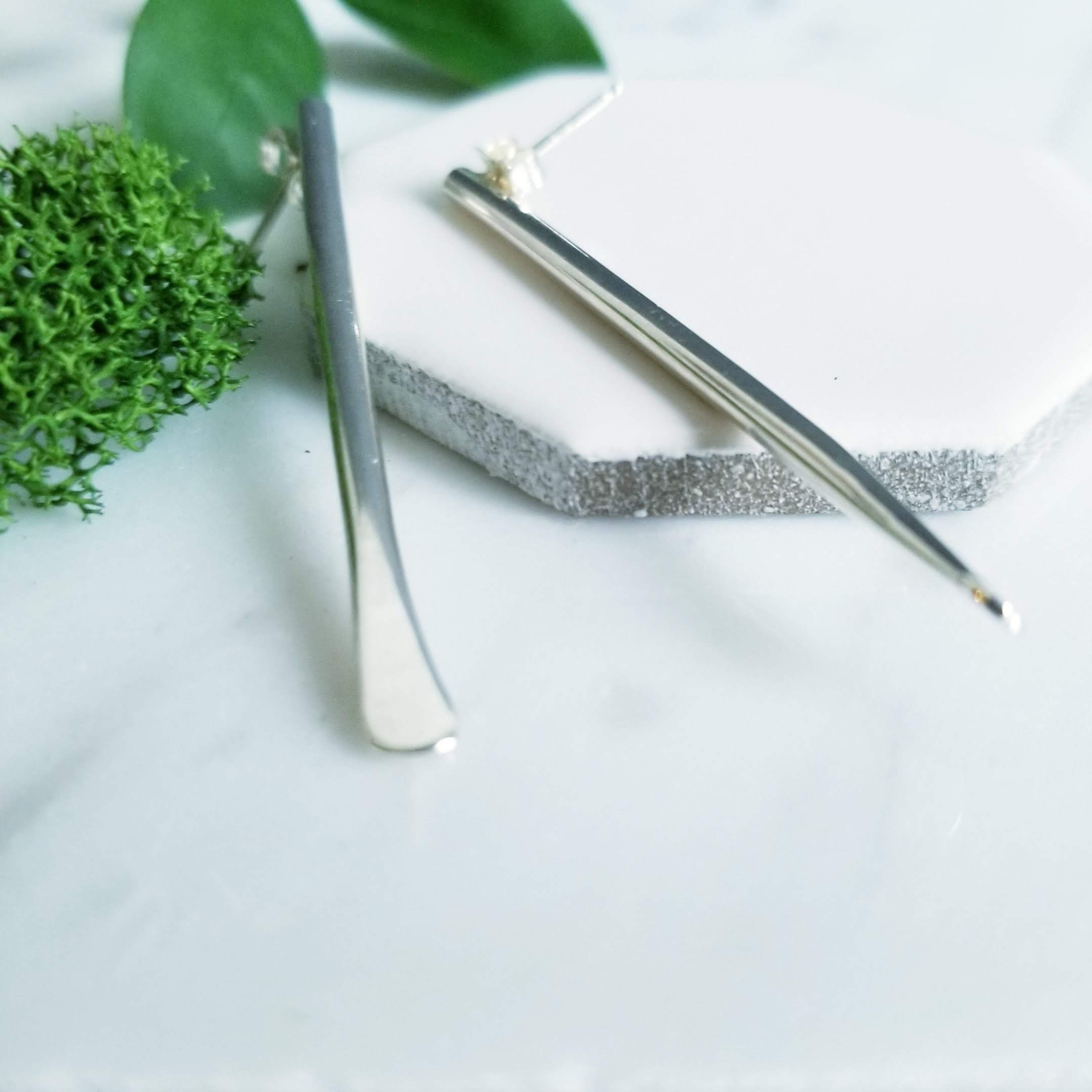 Long, slim post minimalist sterling silver earring, flattened on the ends & polished.