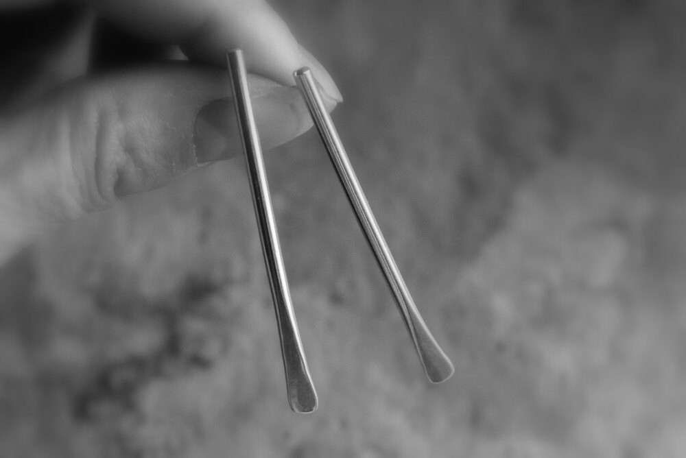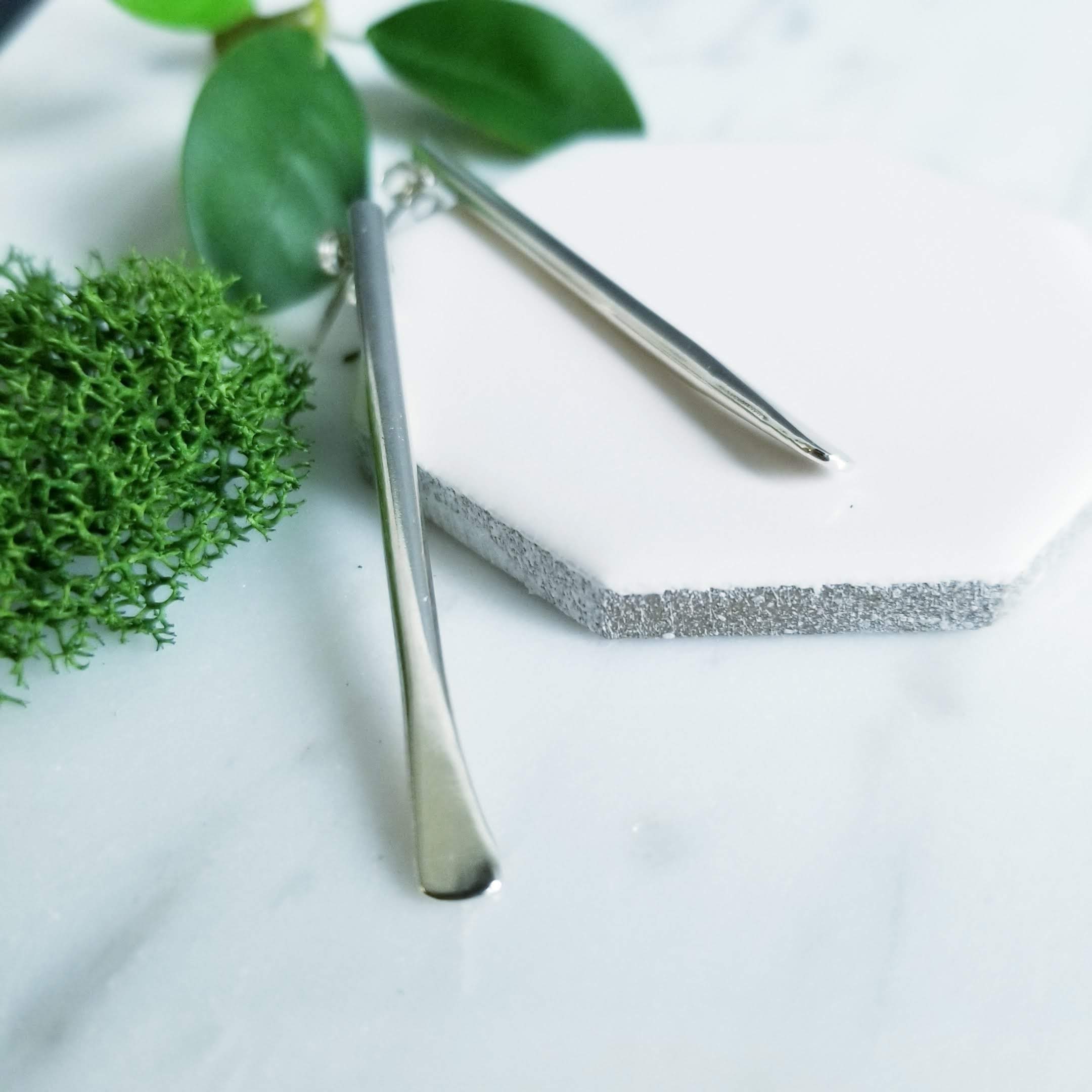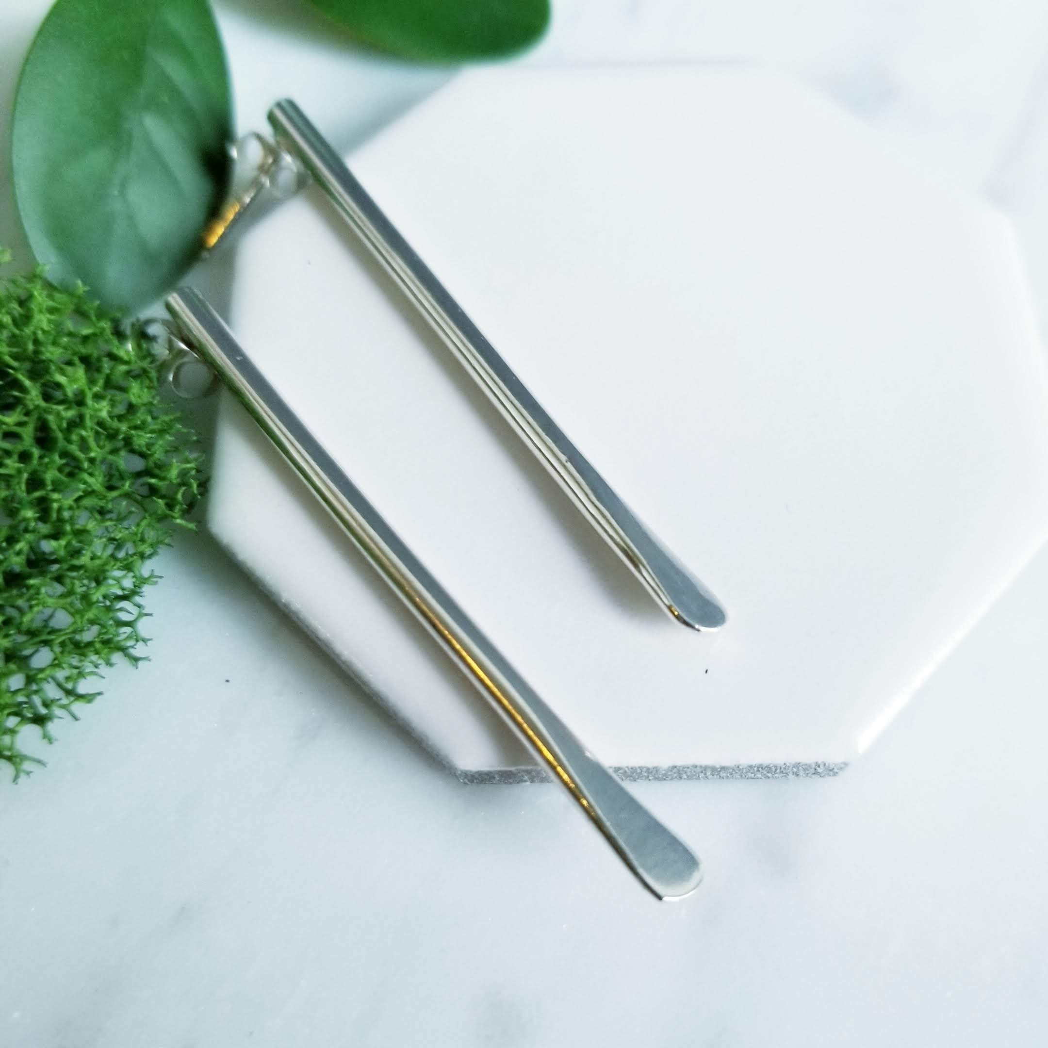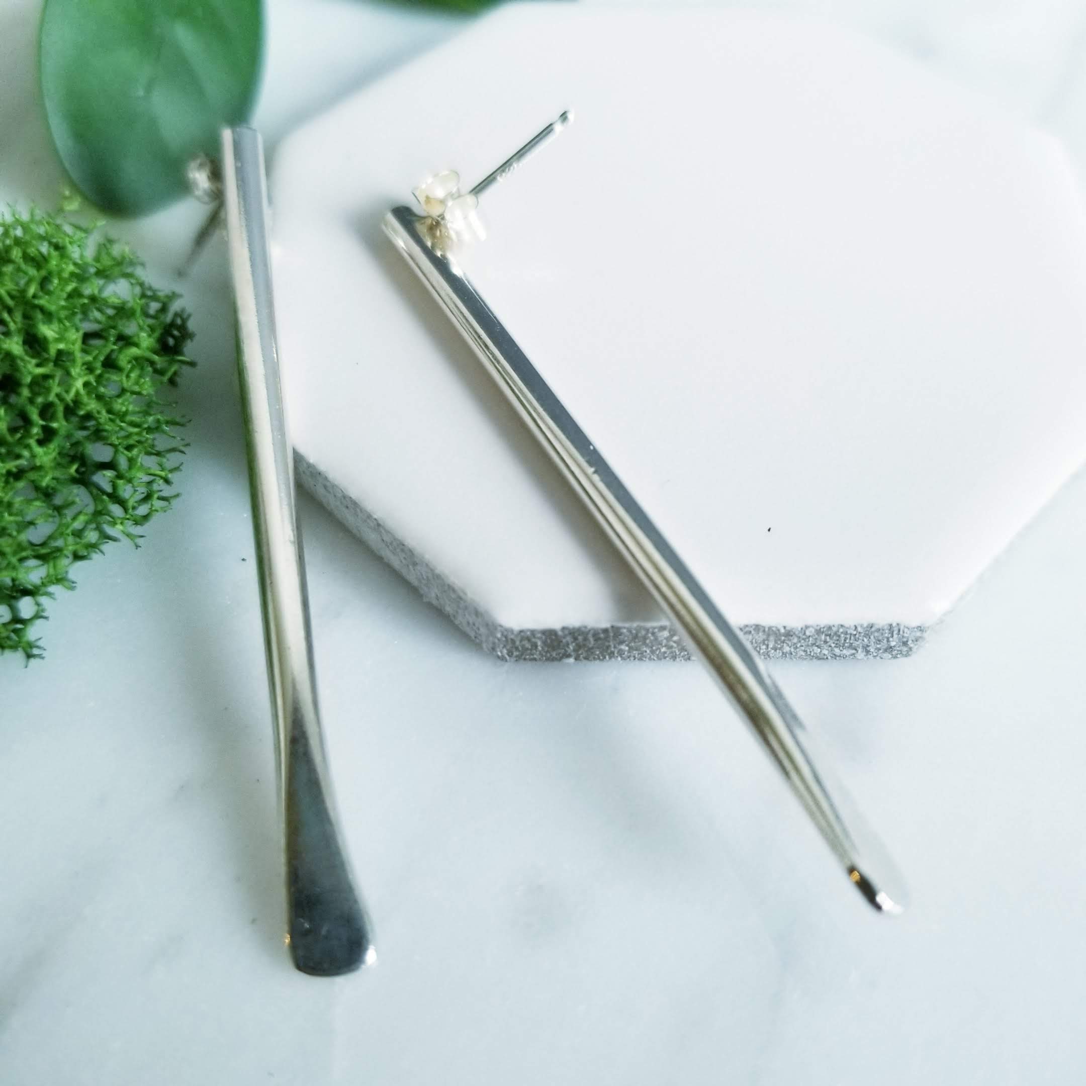 Long, slim post minimalist sterling silver earring, flattened on the ends & polished.