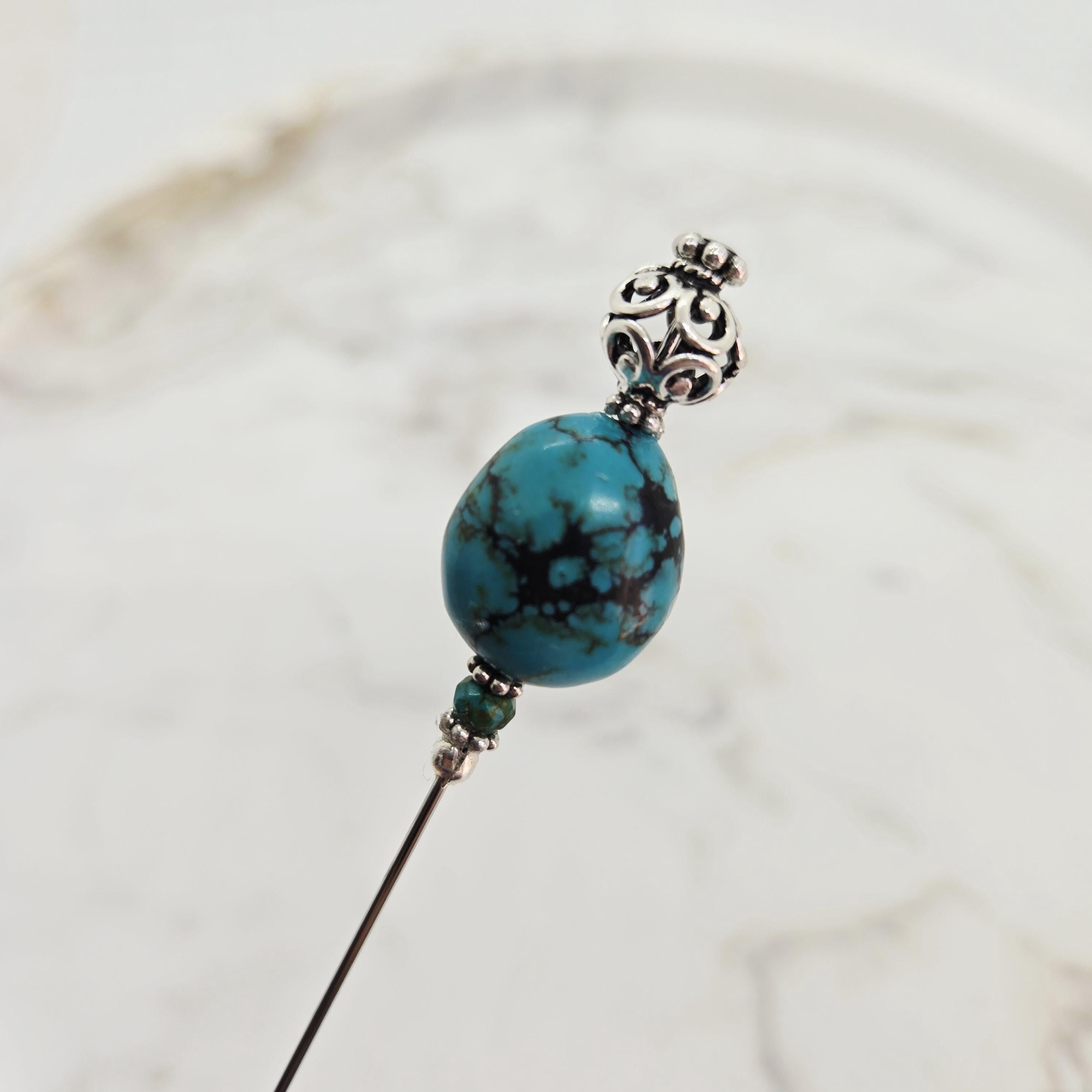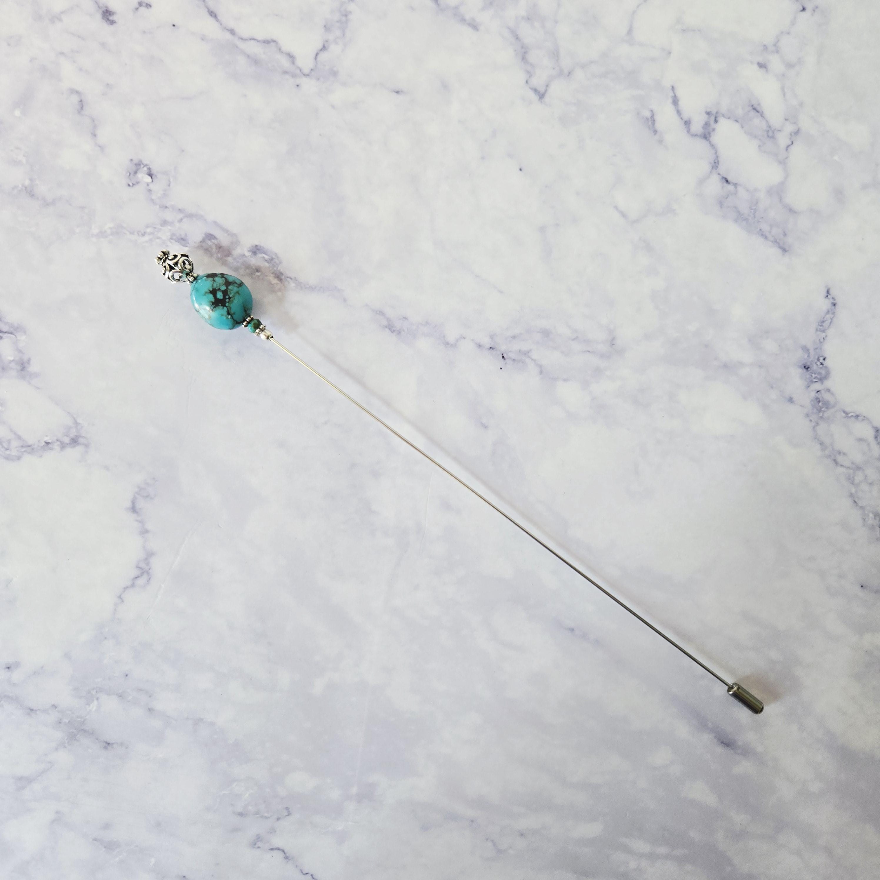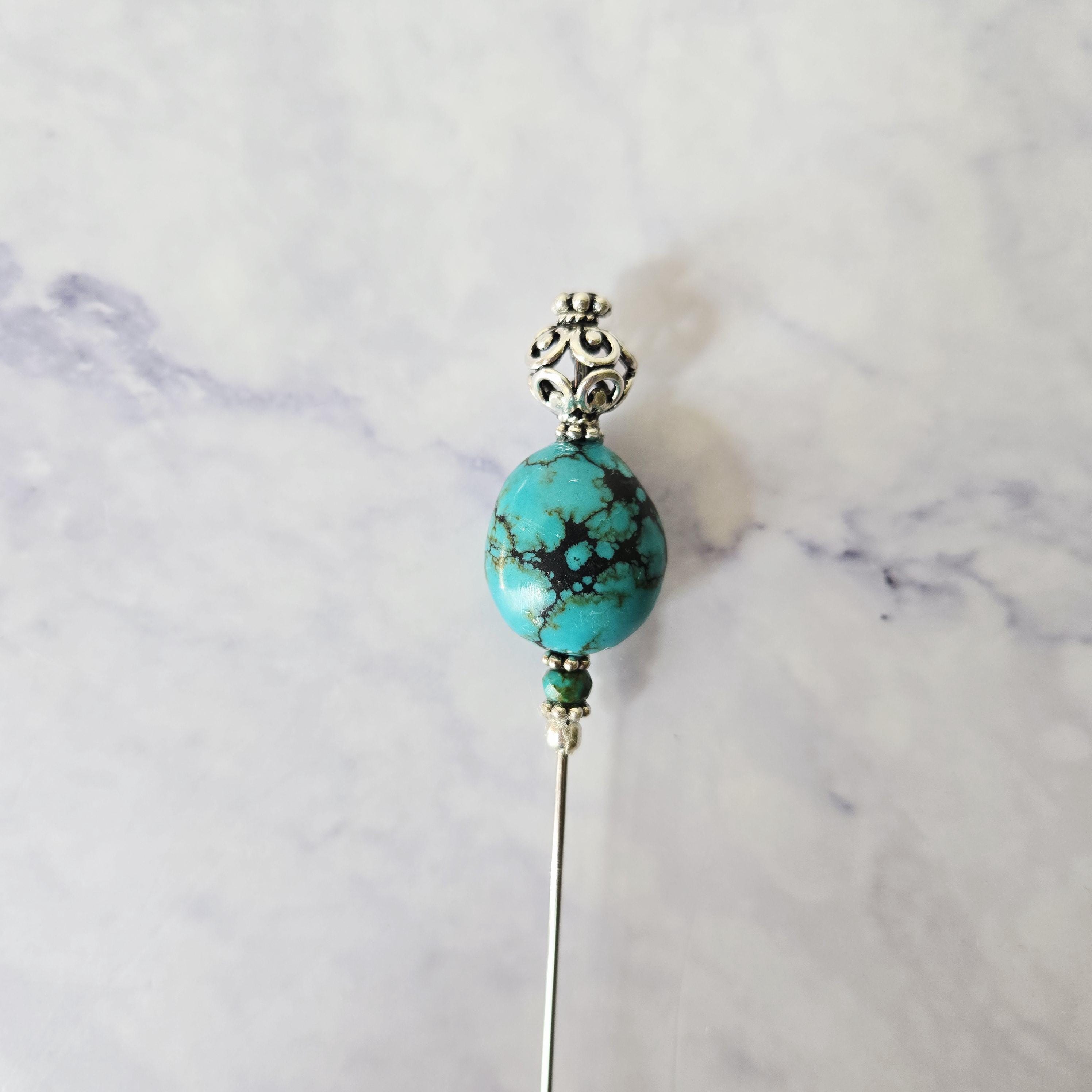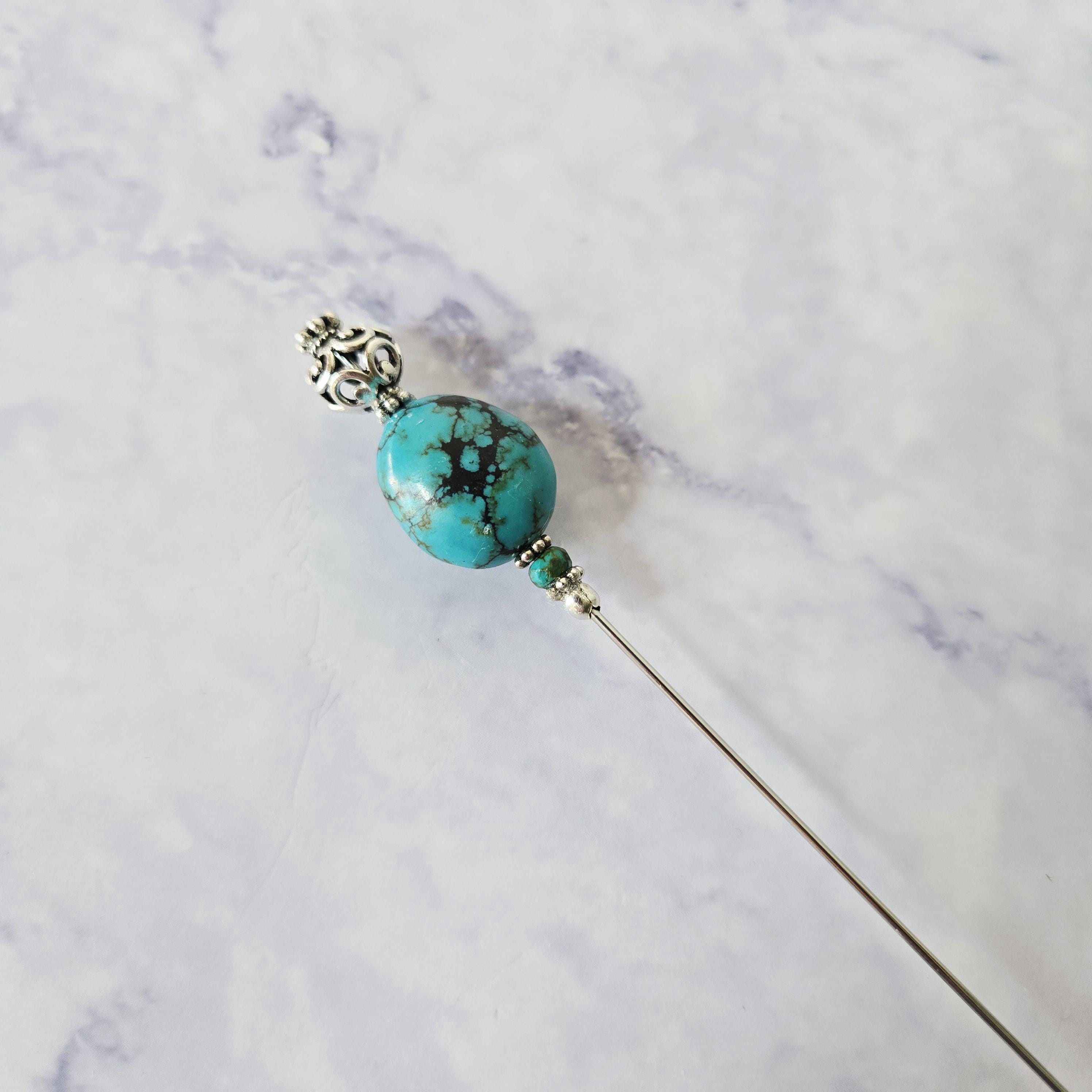 Composite Turquoise & Sterling Silver Hat Pin-8 inch pin, hijab pin