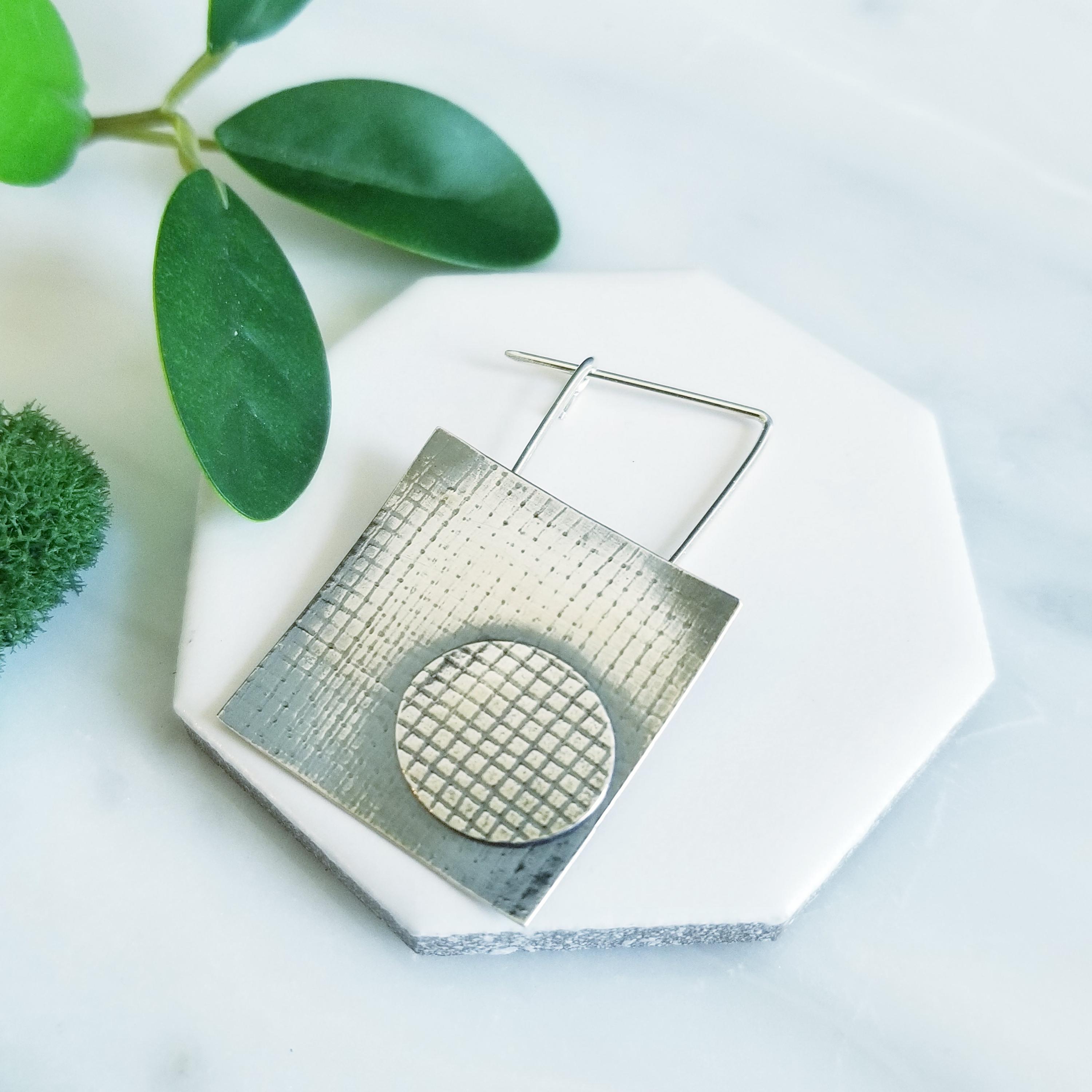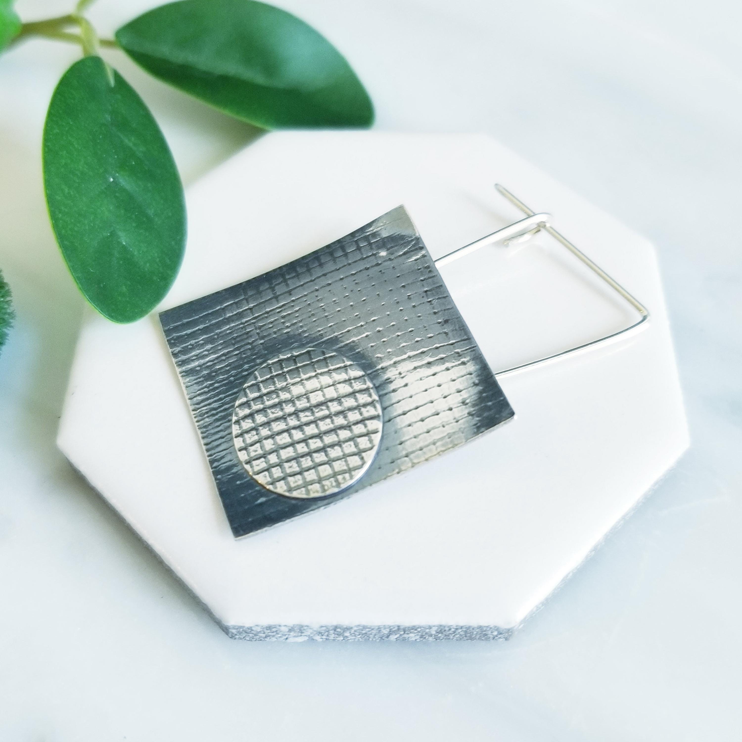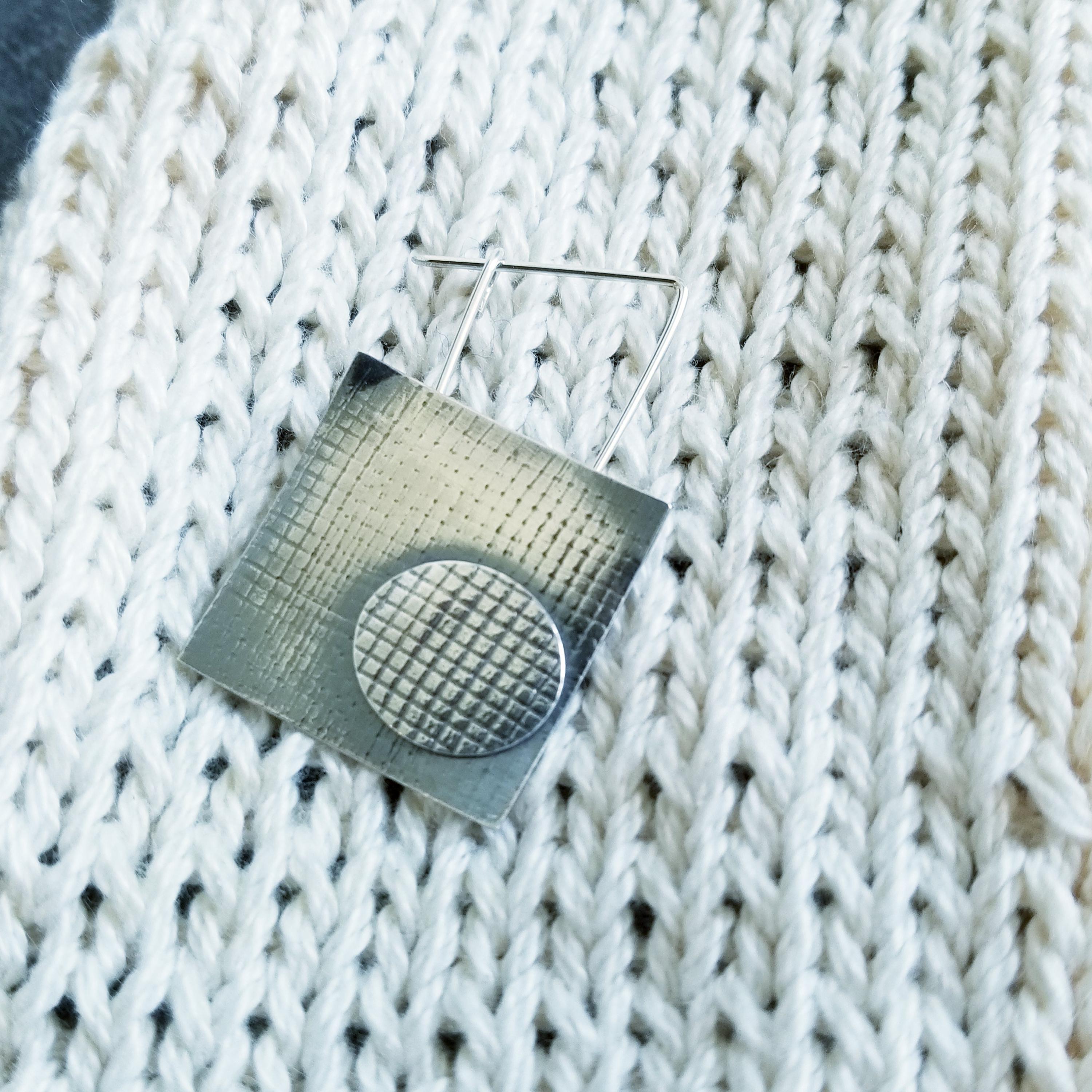 Sterling Silver abstract oval and square shawl pin. Given a lightly oxidized (blackened) finish to highlight the texture.