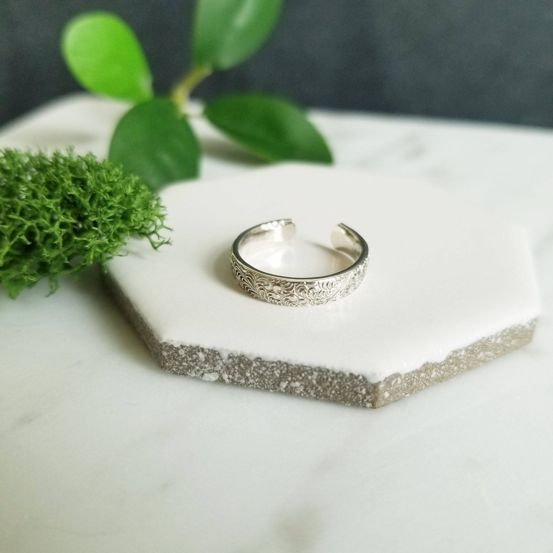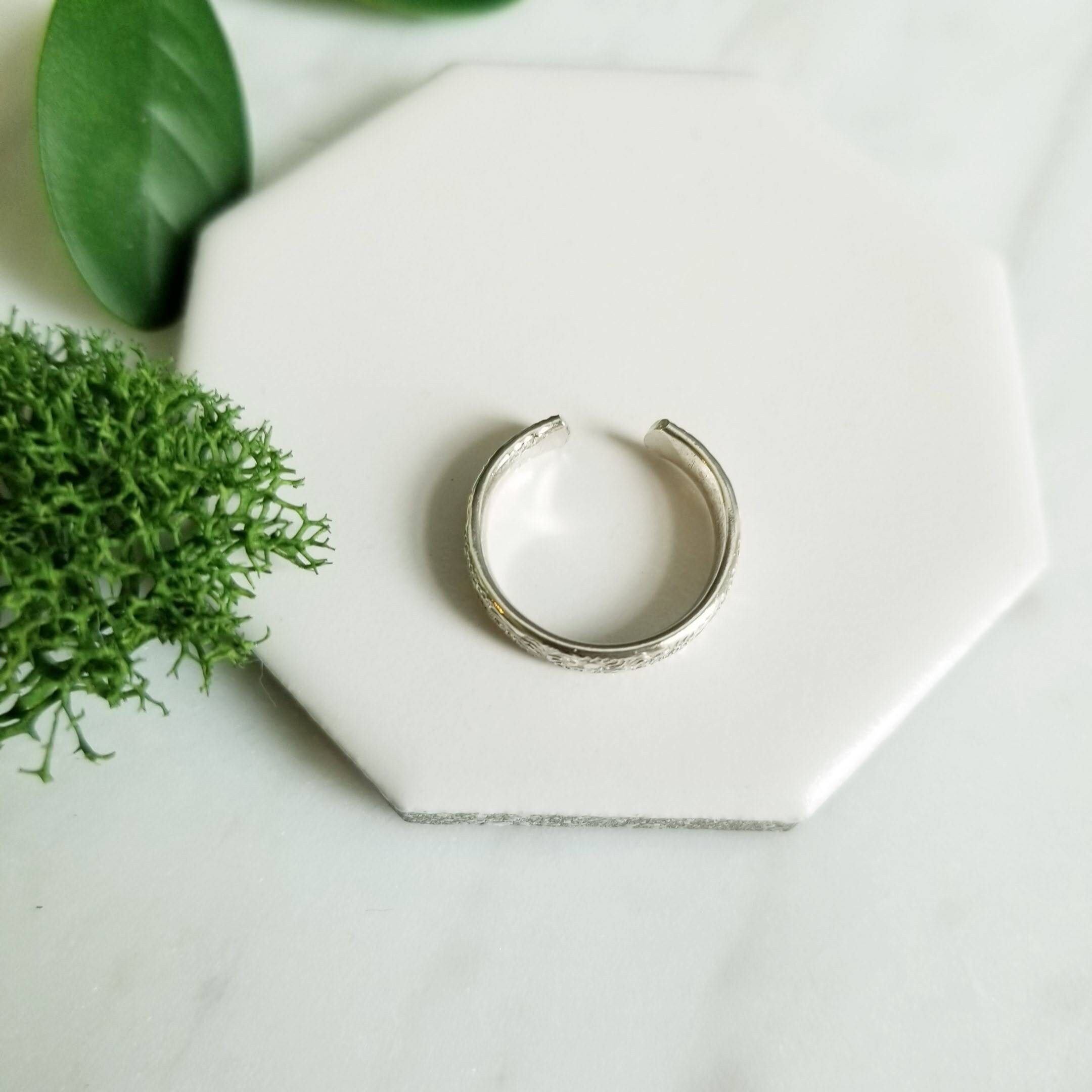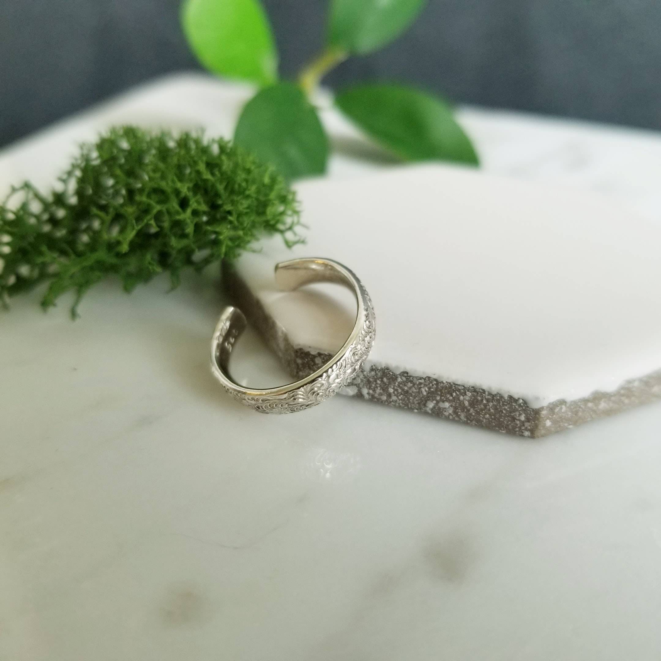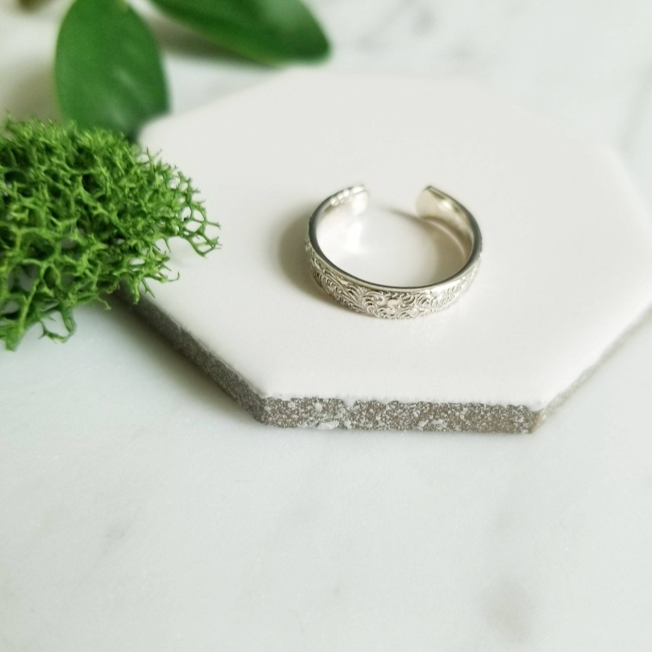 Sterling Silver Toe Ring made from fern patterned sterling silver wire.