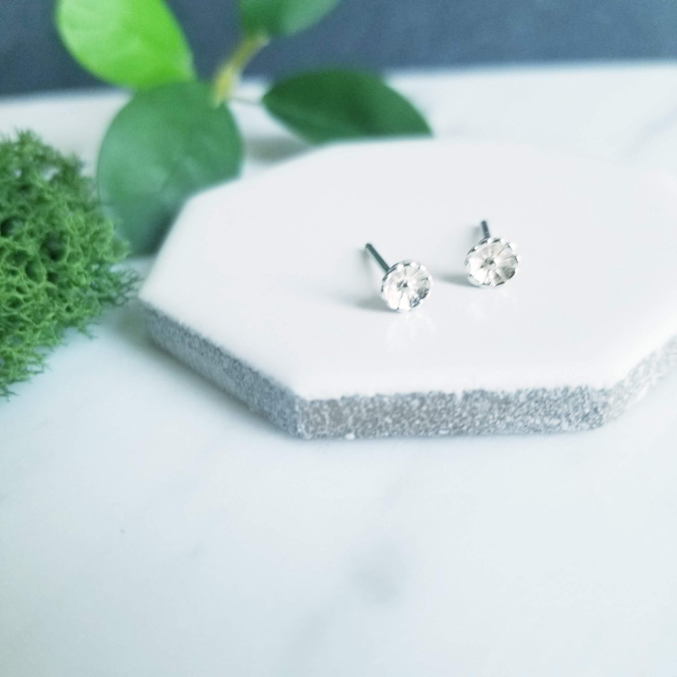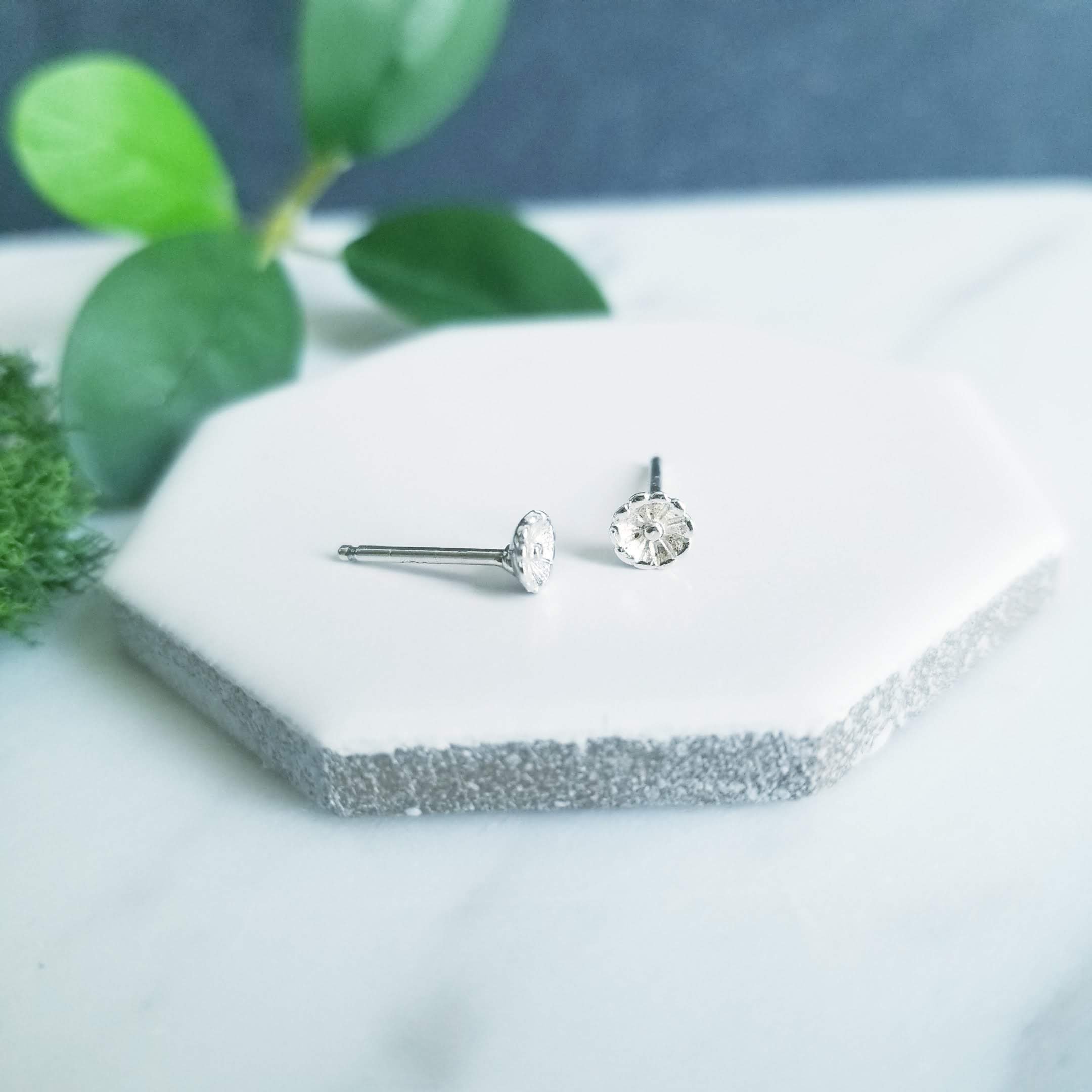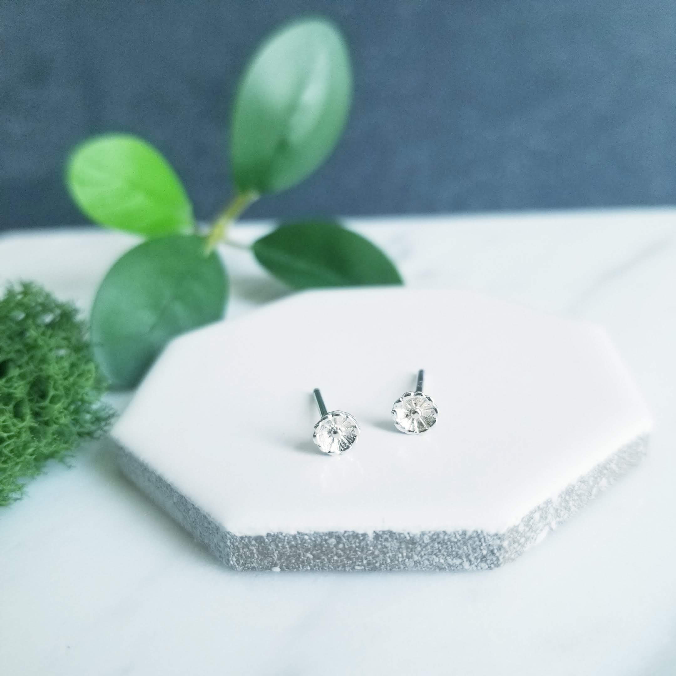 Sterling silver flower stud earrings.