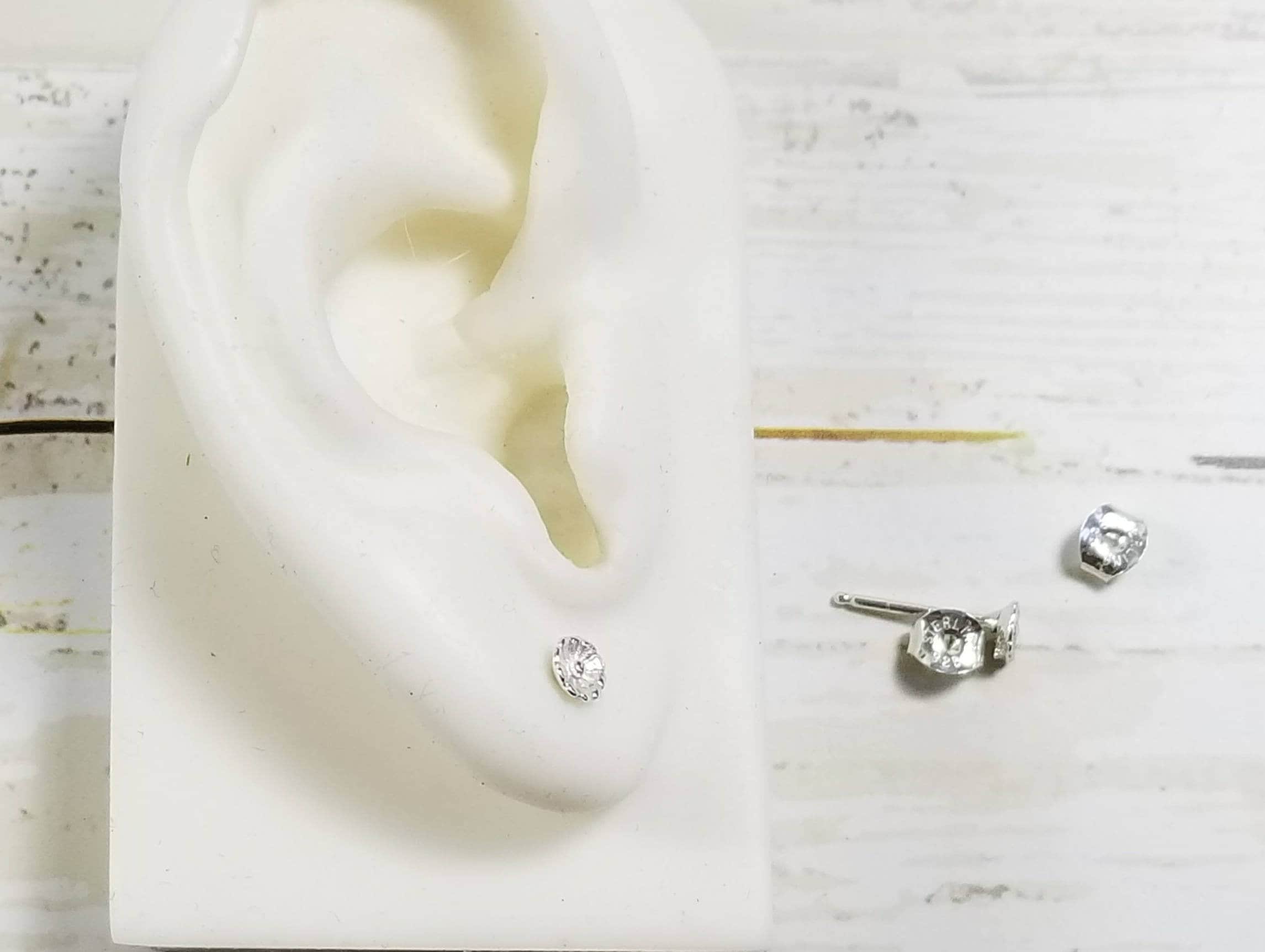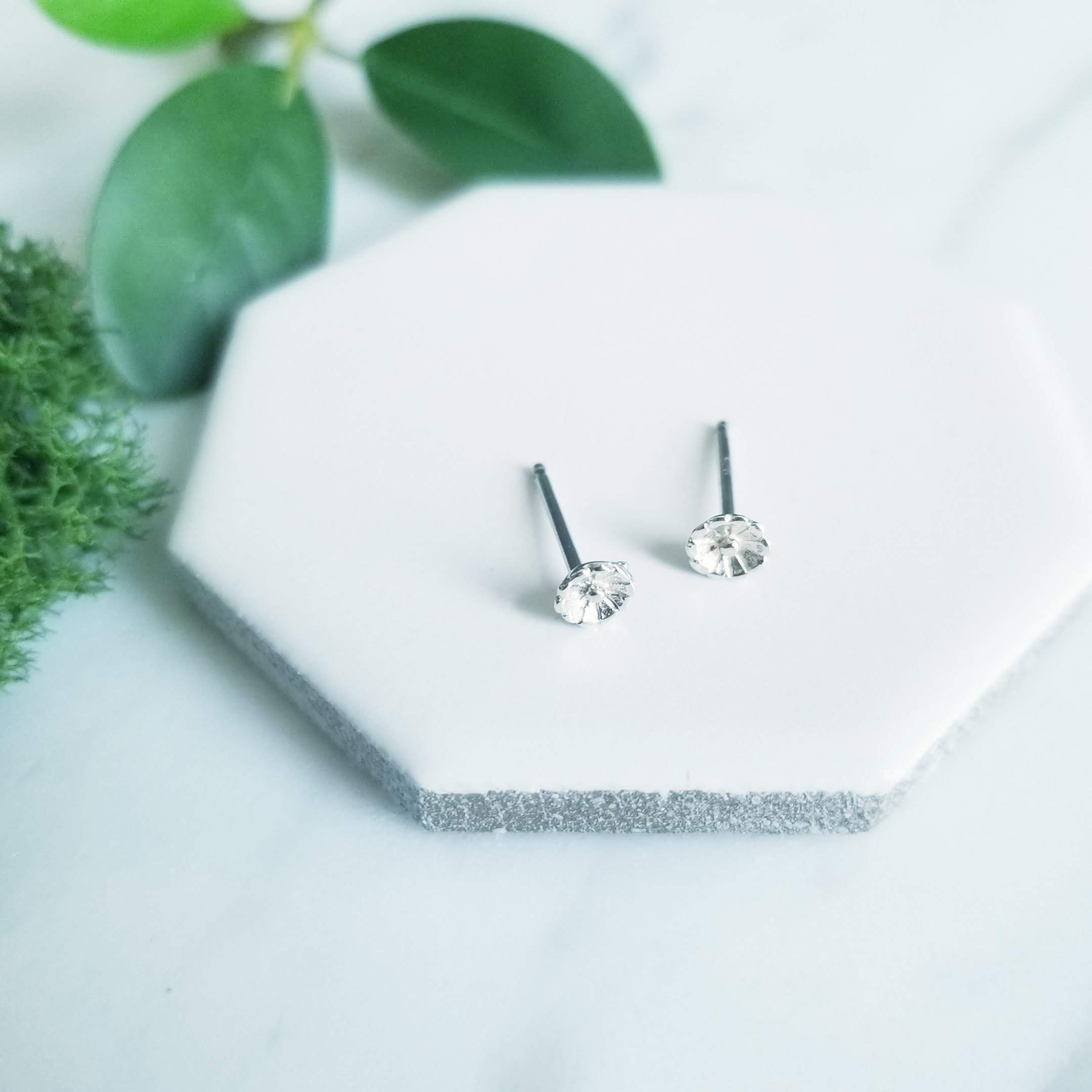 Silver post earrings featuring a small, detailed sterling flower. Come with sterling silver butterfly backings.