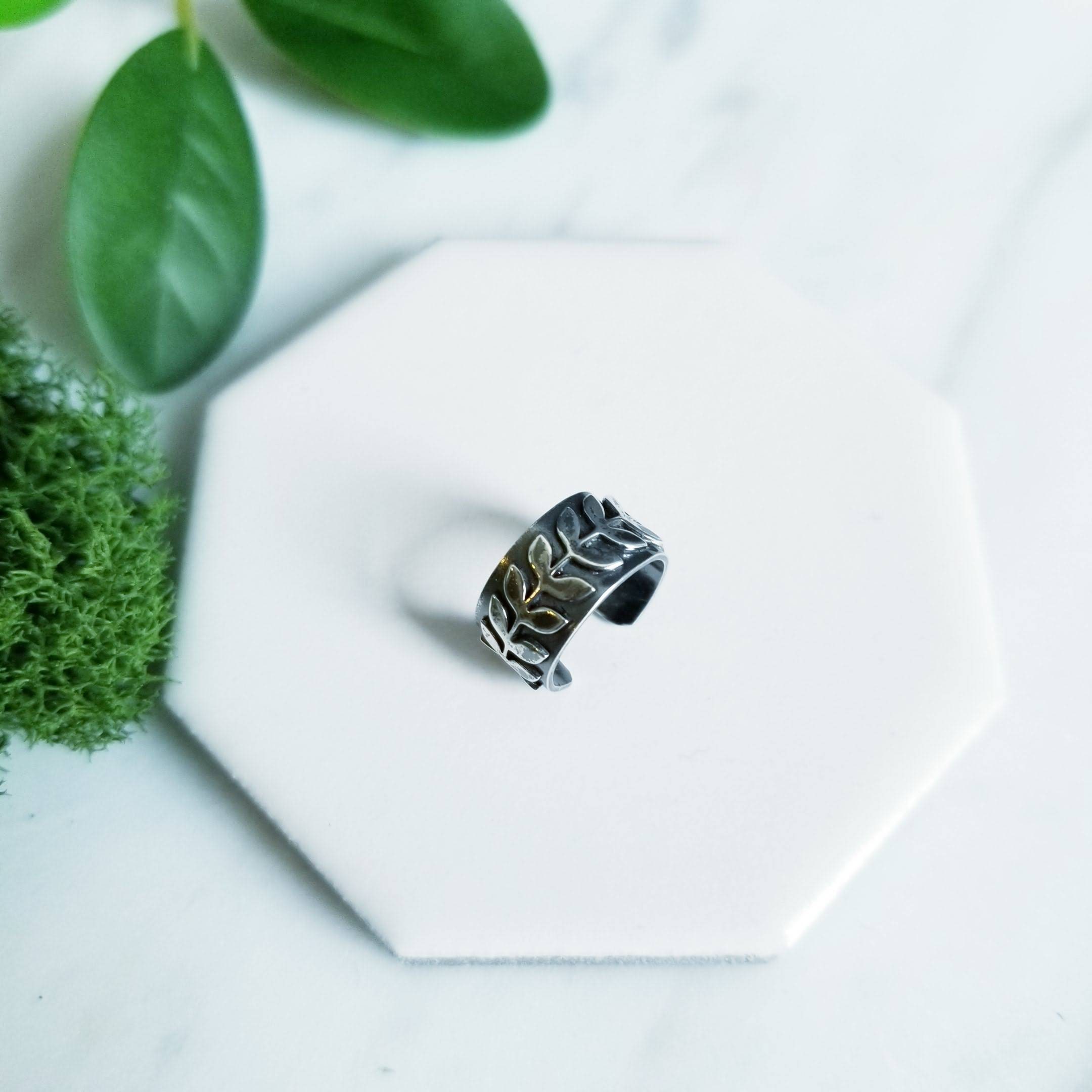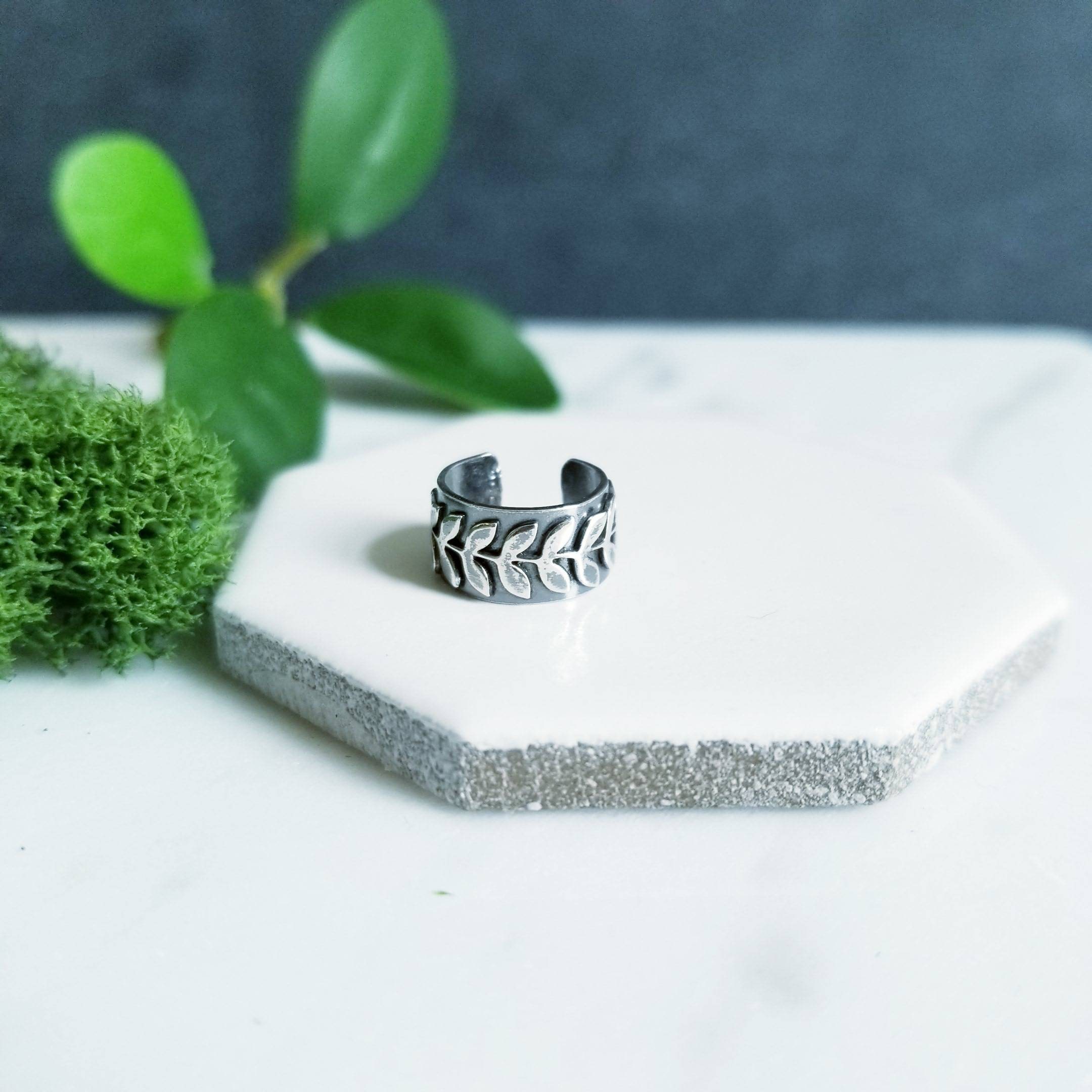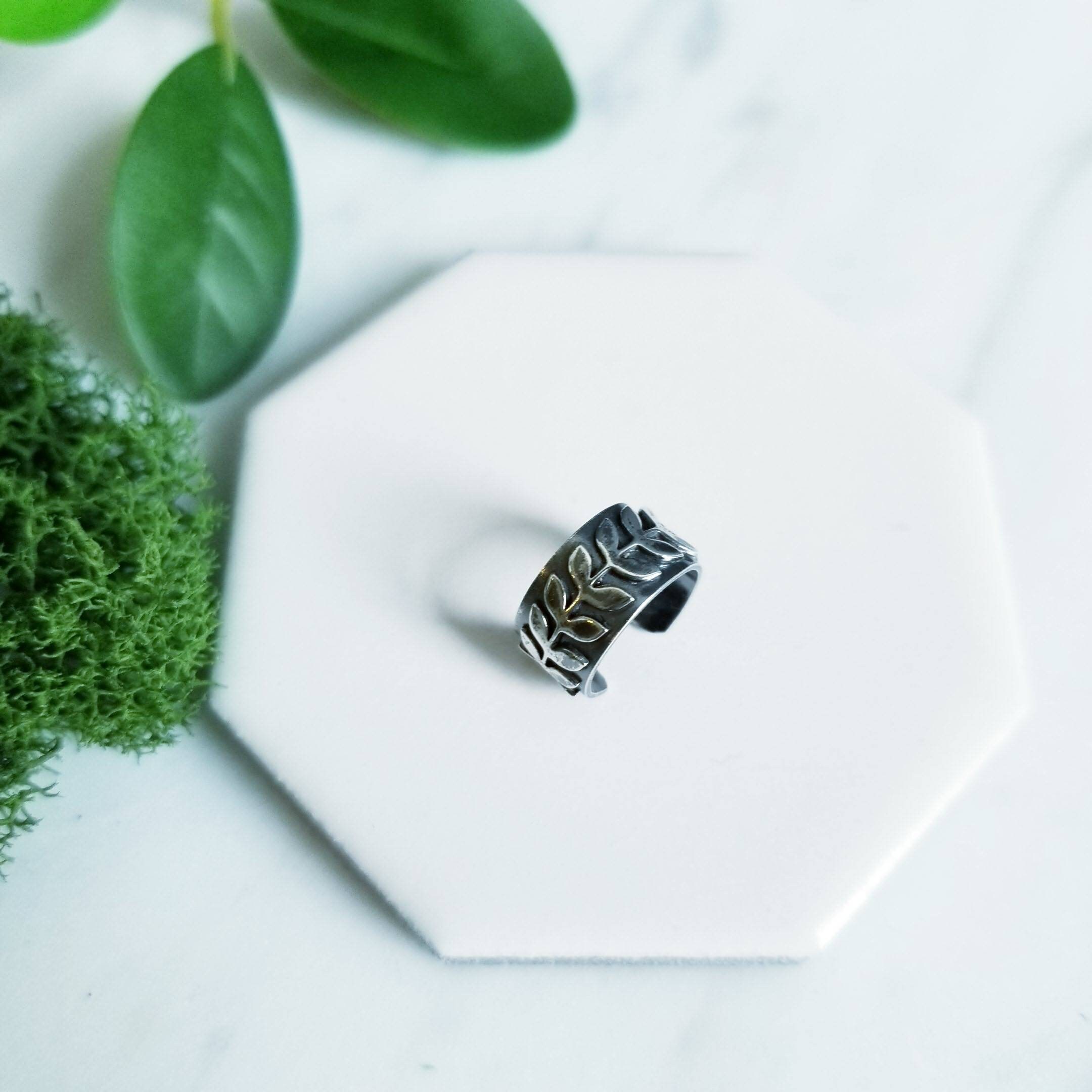 Light & Comfortable , 6 mm wide, sterling silver leaf Garland has been soldered to a strip of sterling and formed into a small circle, simply slide onto your upper ear at the top.