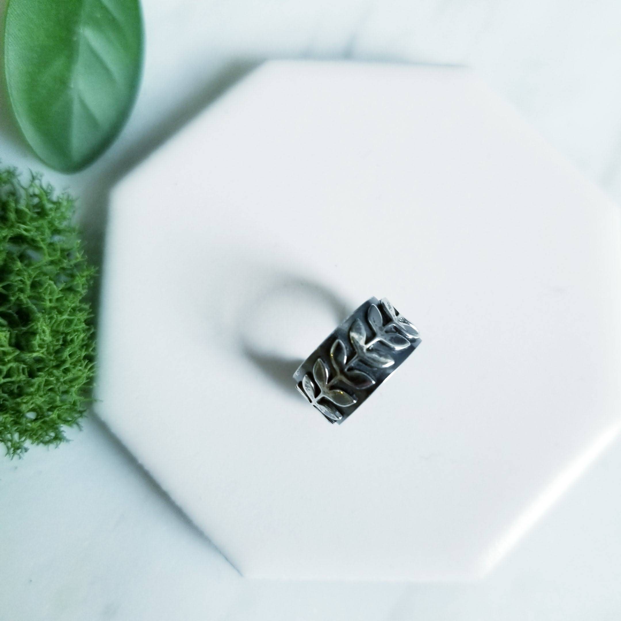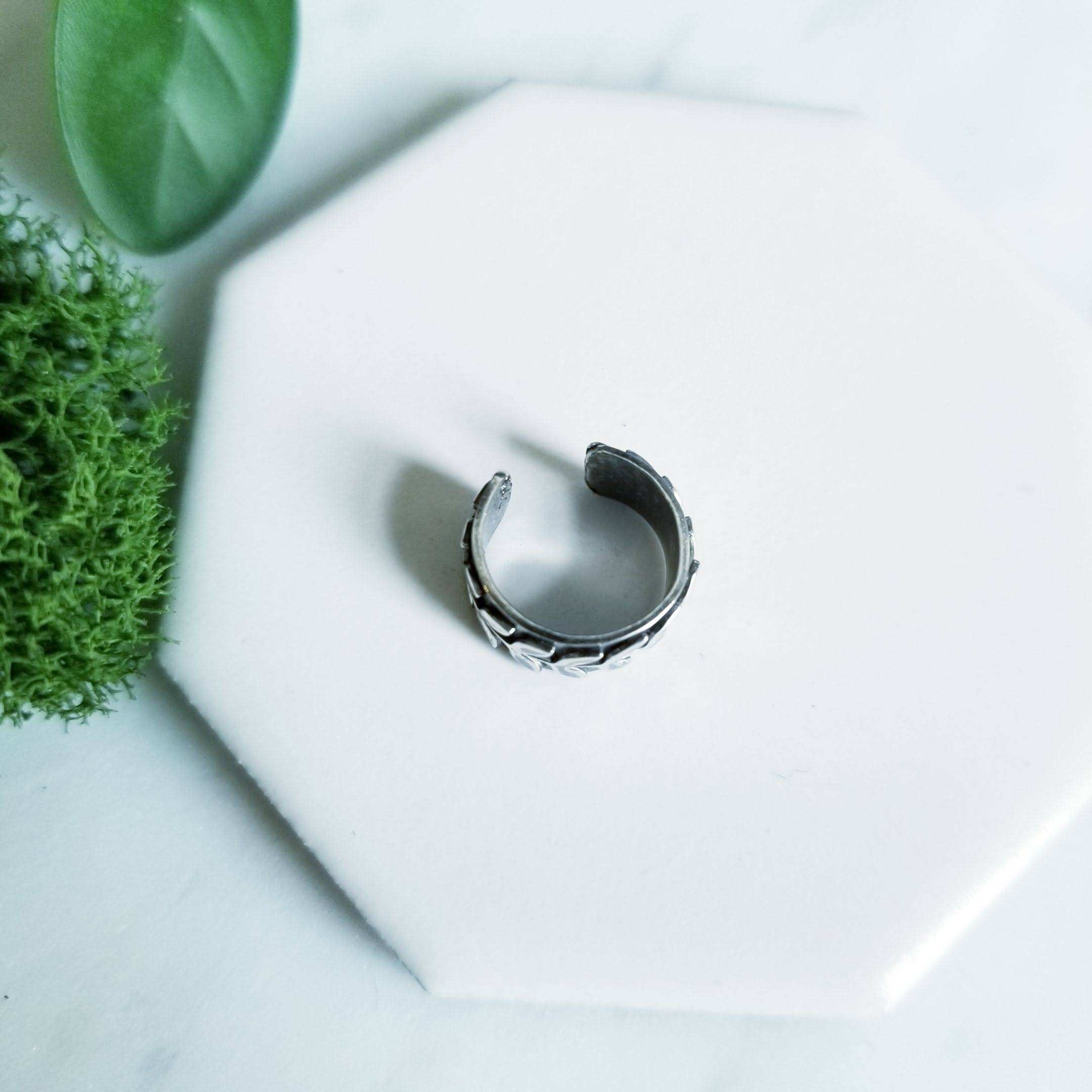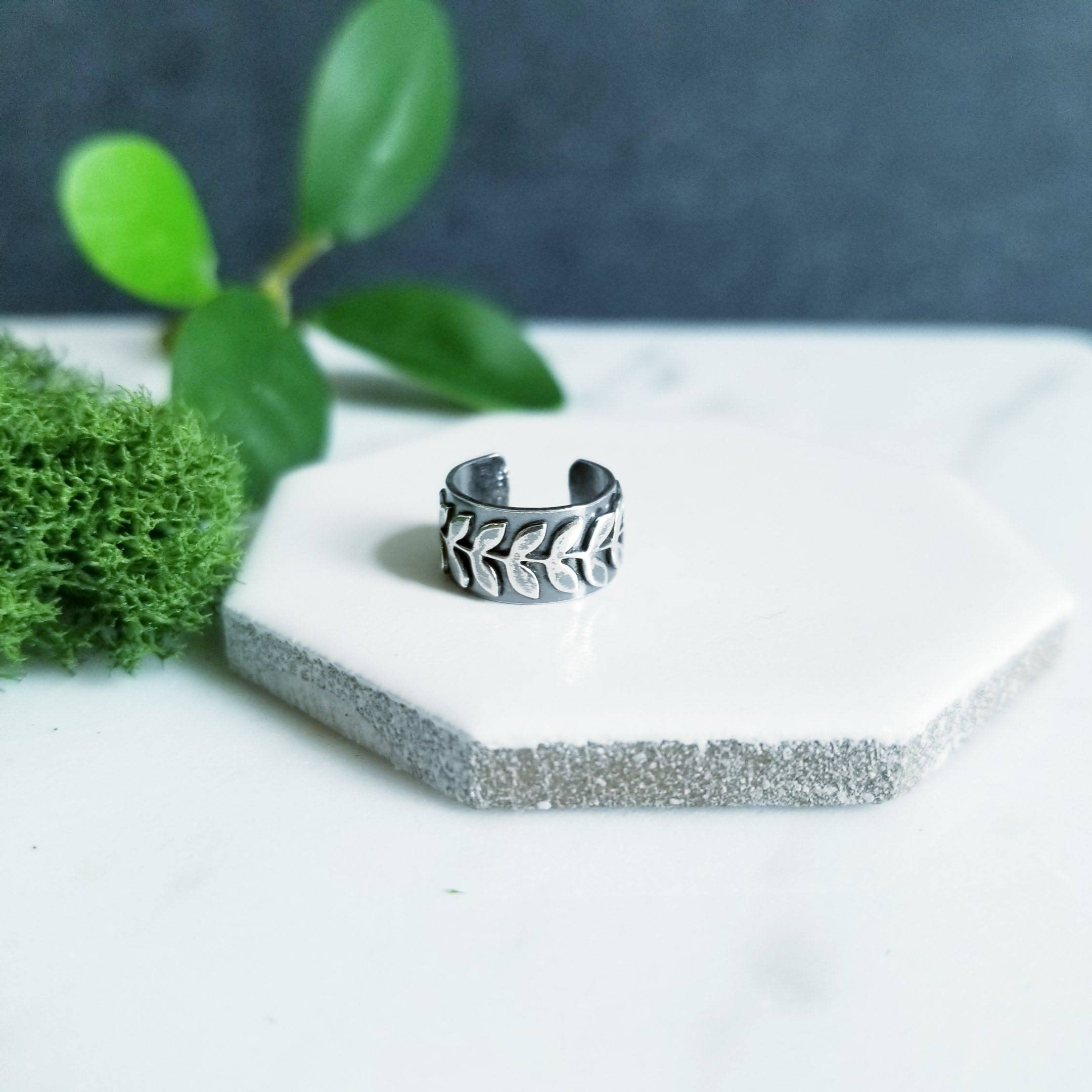 Light & Comfortable , 6 mm wide, sterling silver leaf Garland has been soldered to a strip of sterling and formed into a small circle, simply slide onto your upper ear at the top.