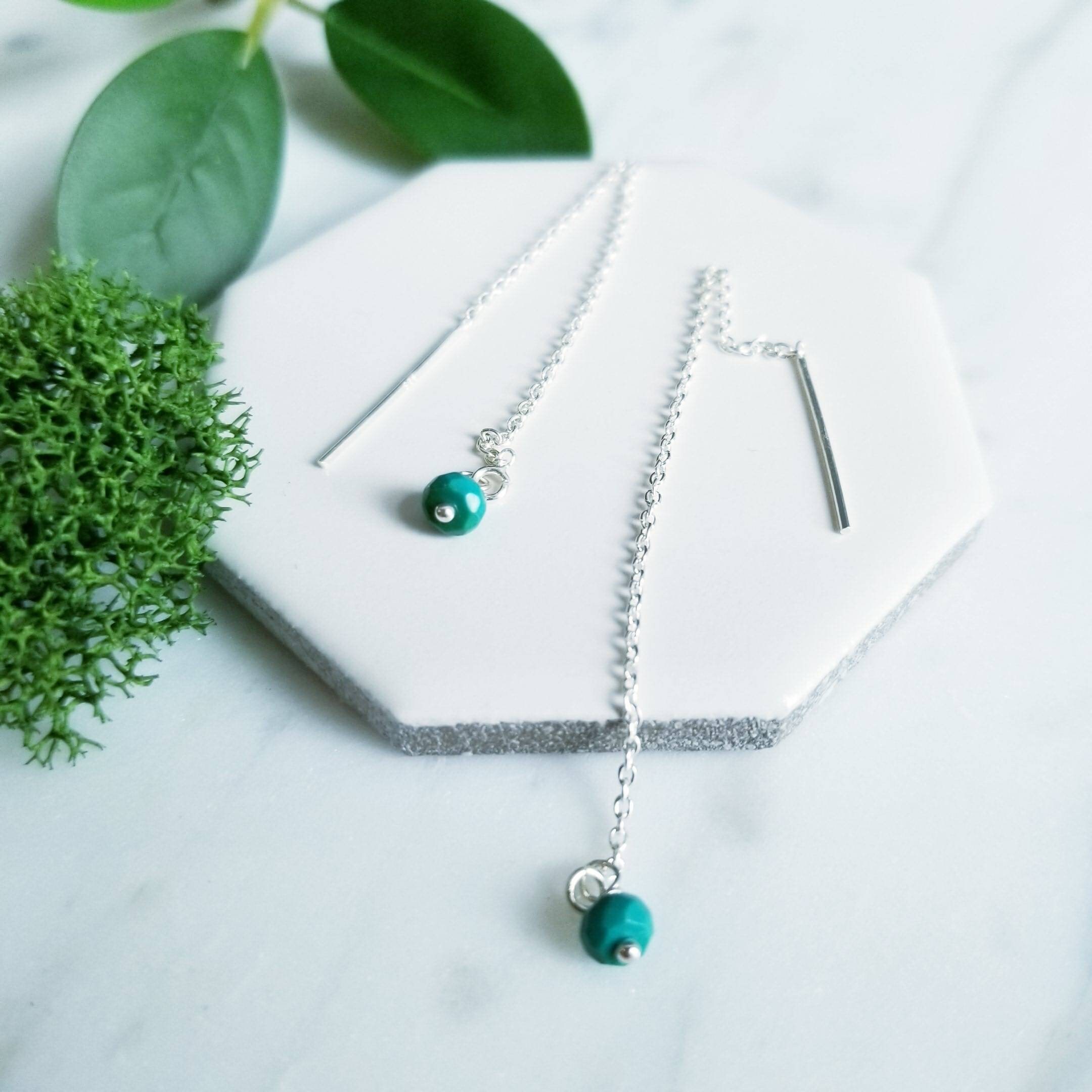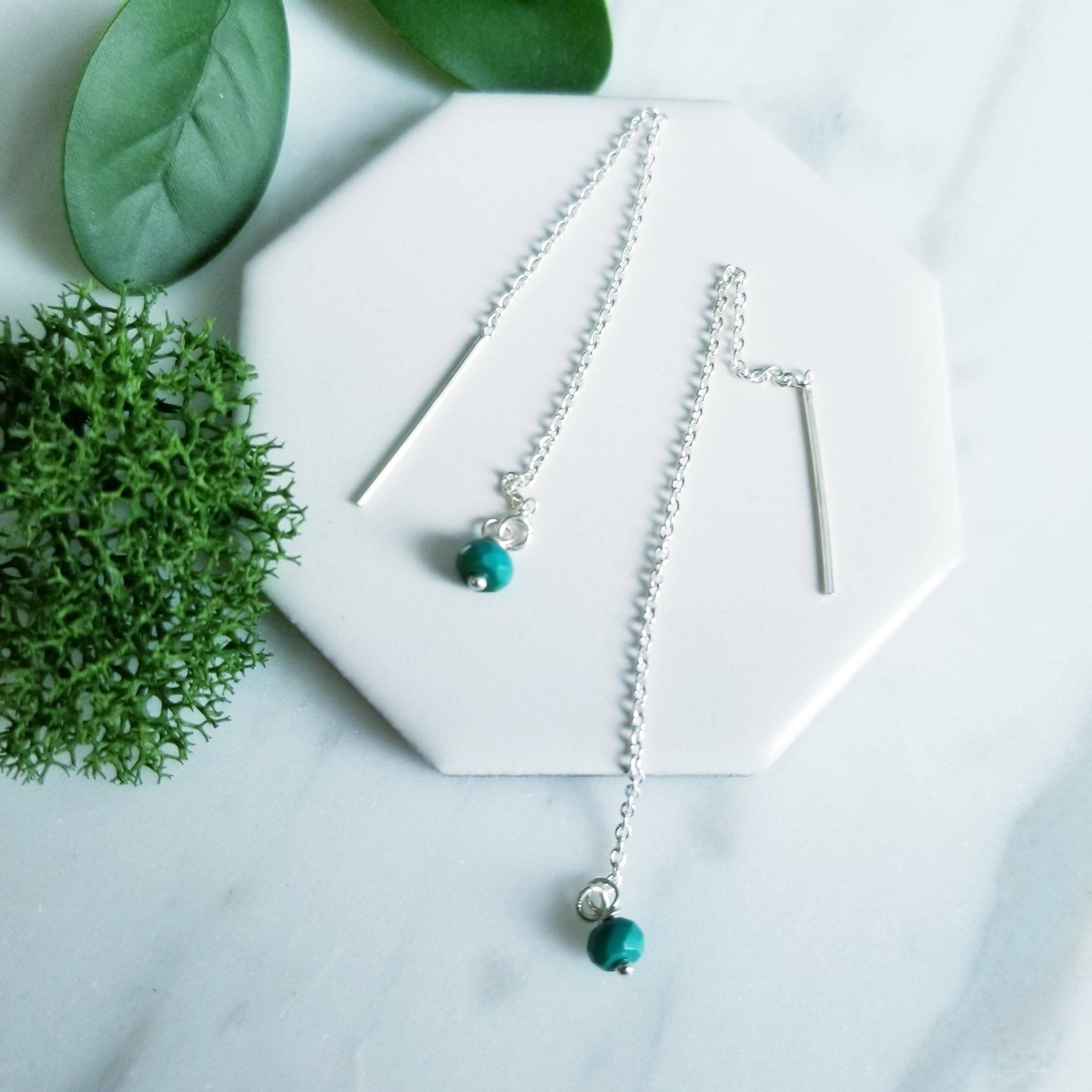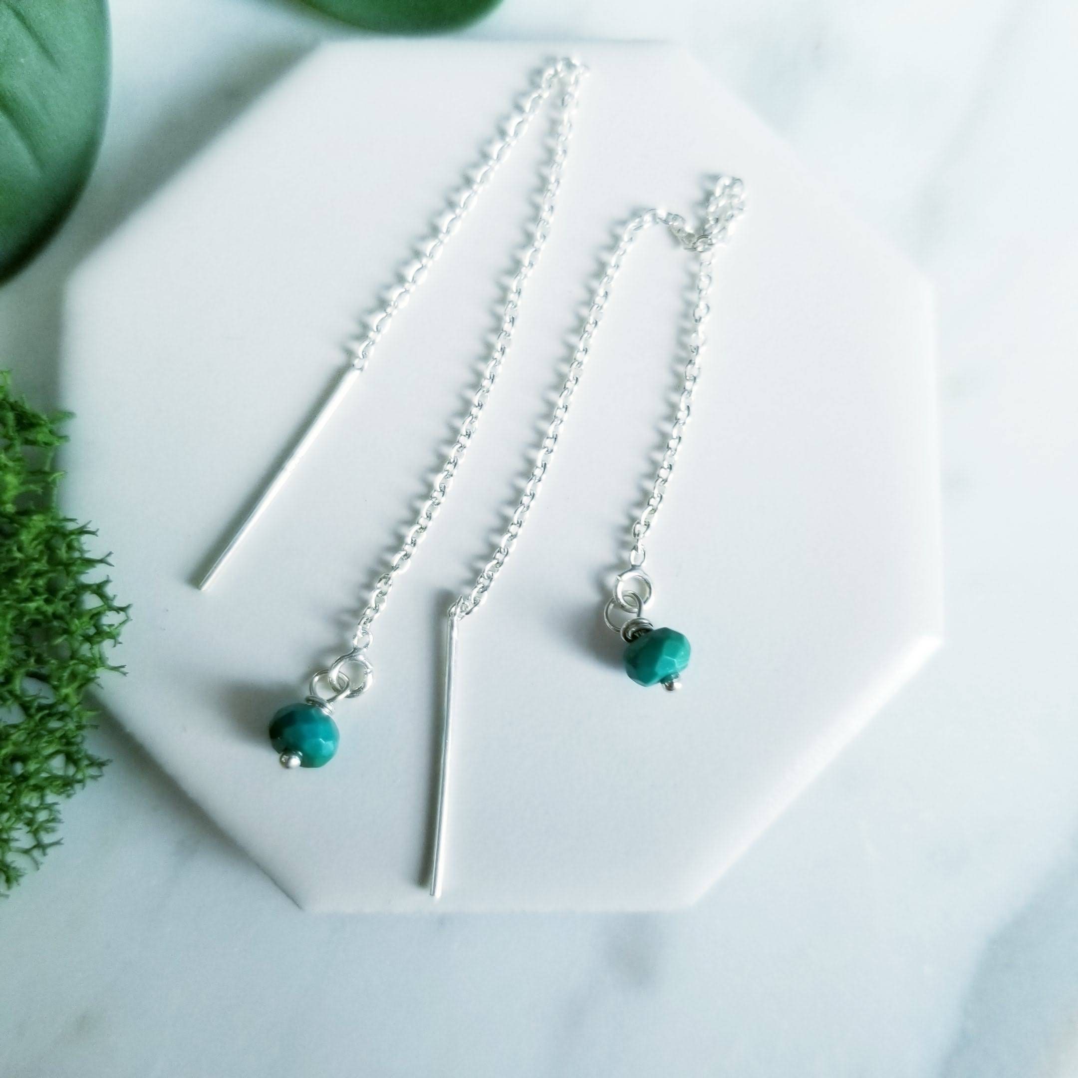 Sterling Silver chain threader paired with small faceted turquoise stones.