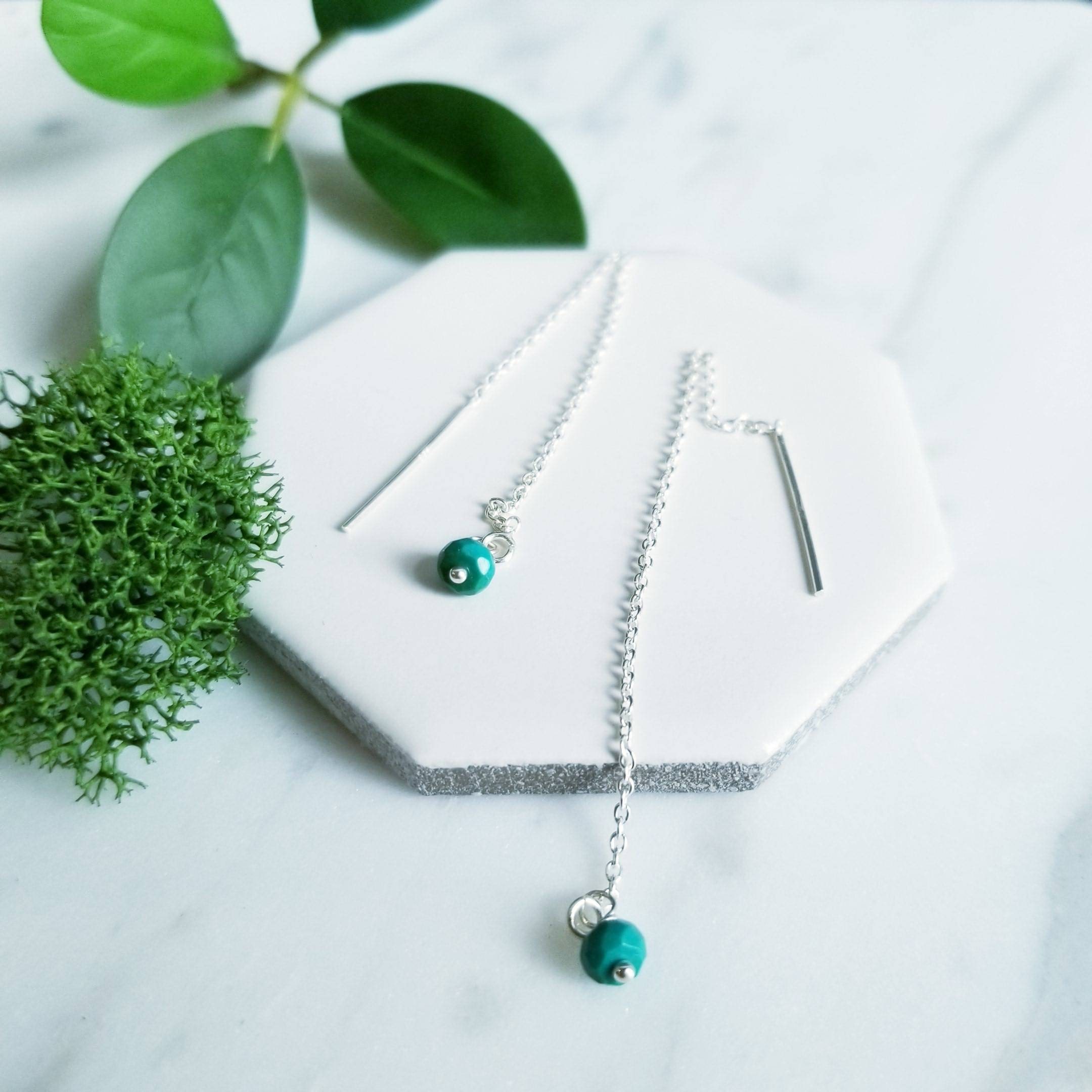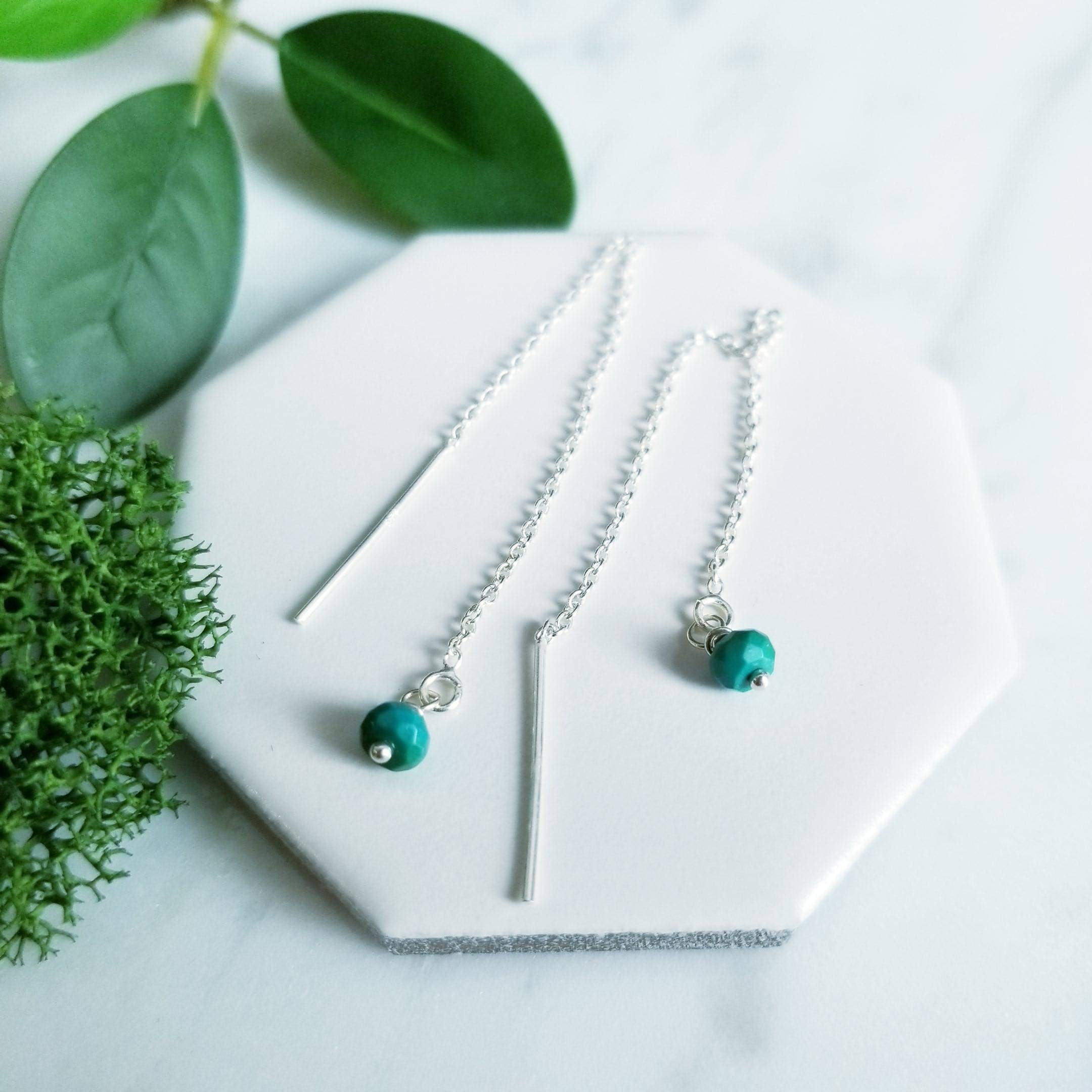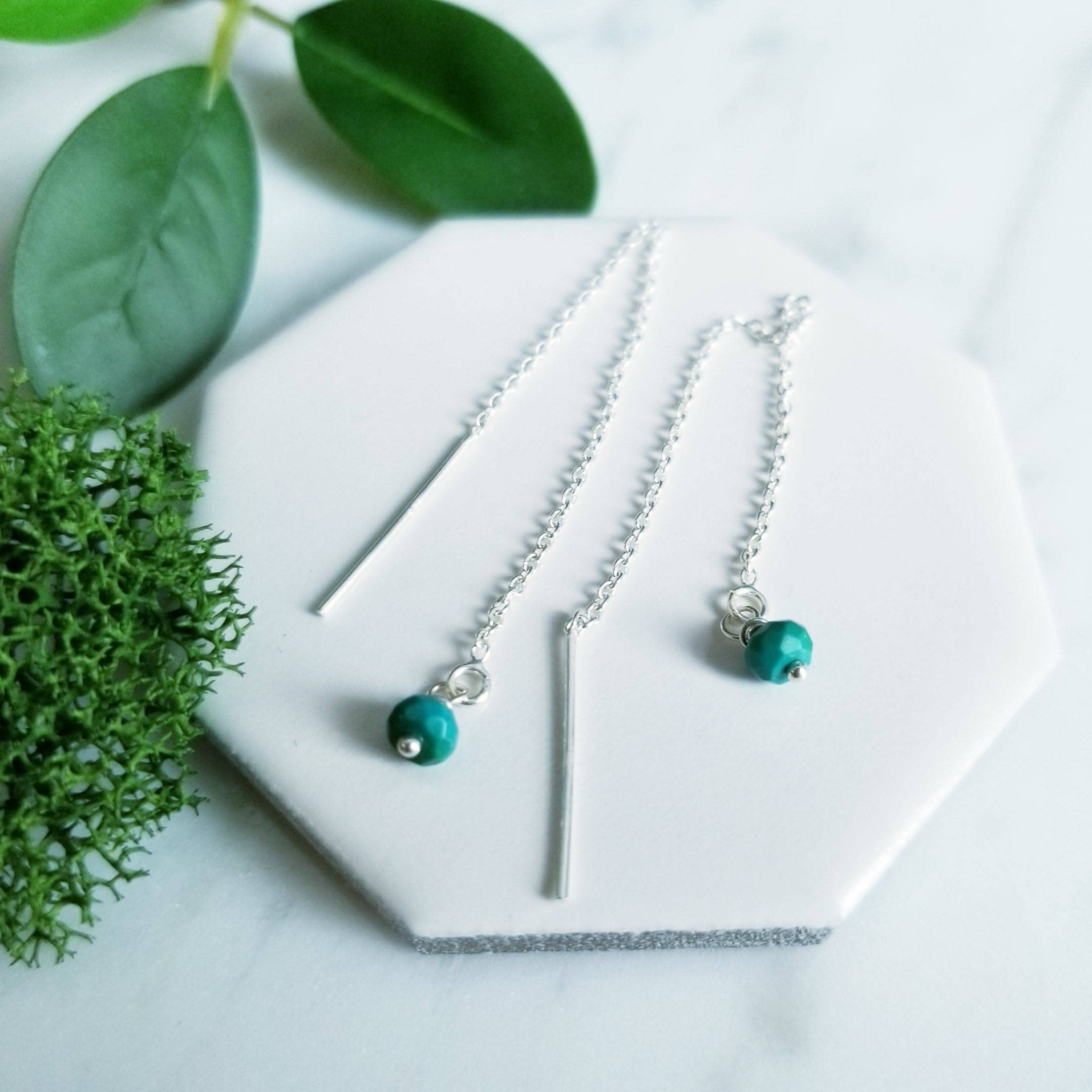 Sterling Silver chain threader paired with small faceted turquoise stones.