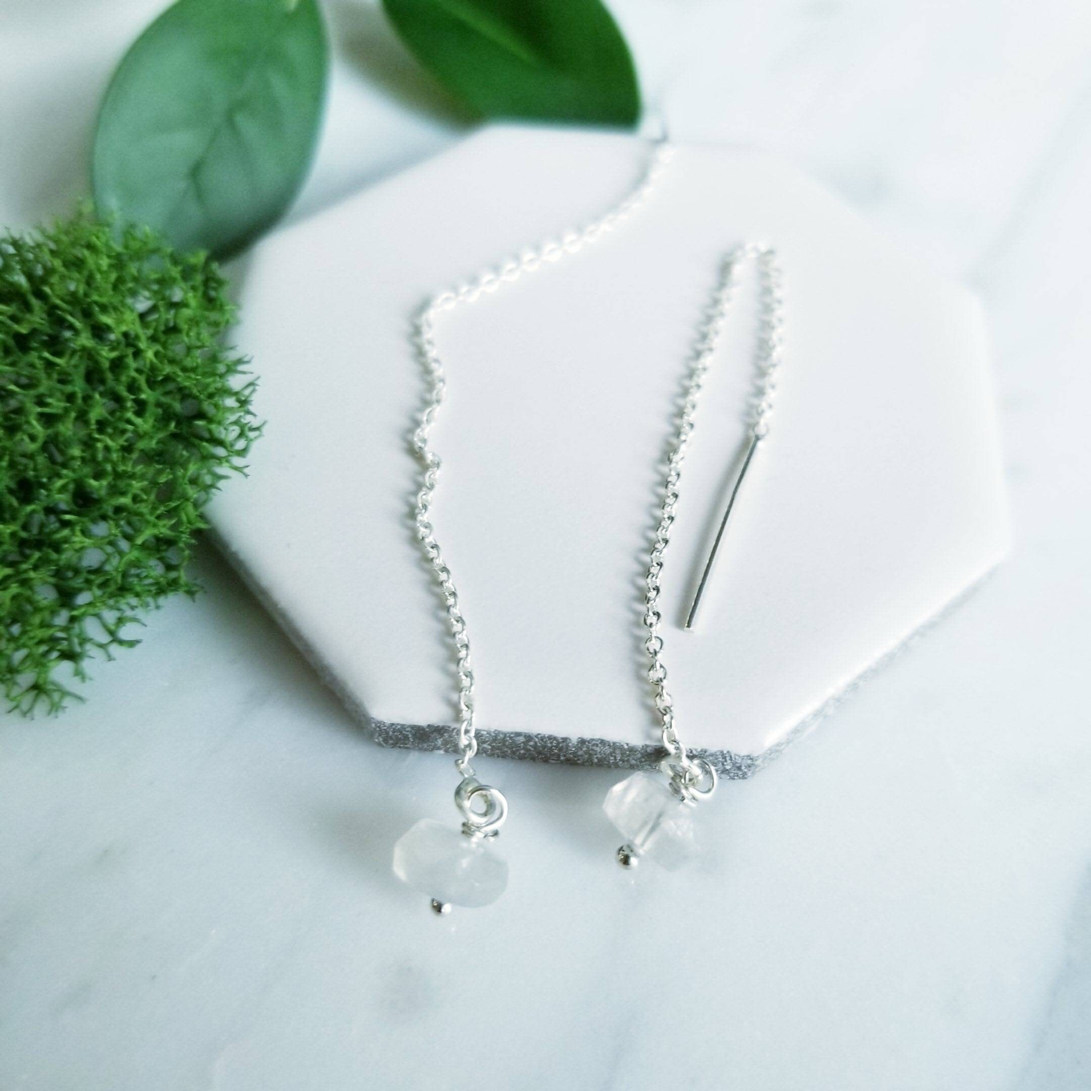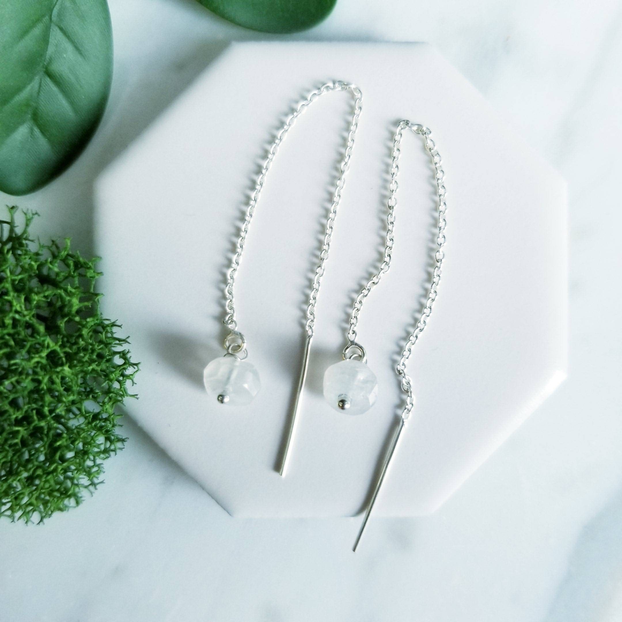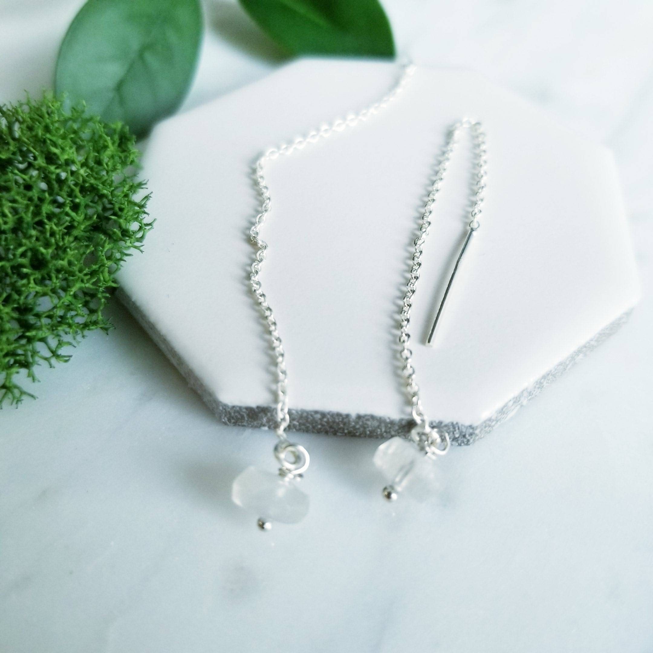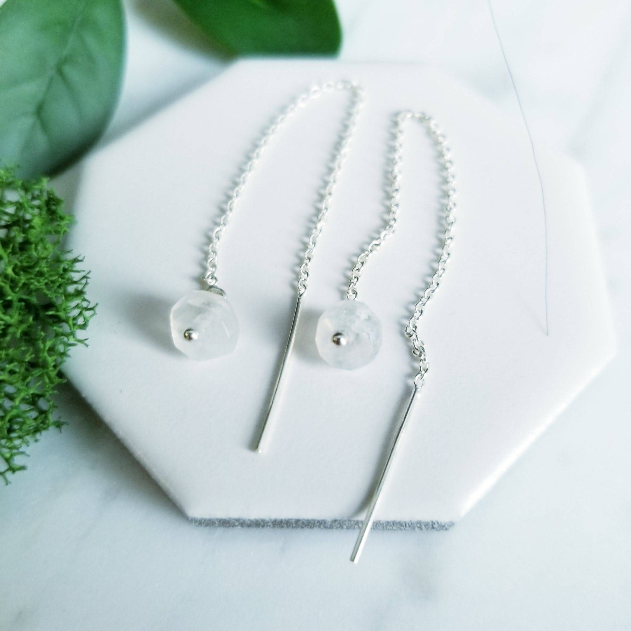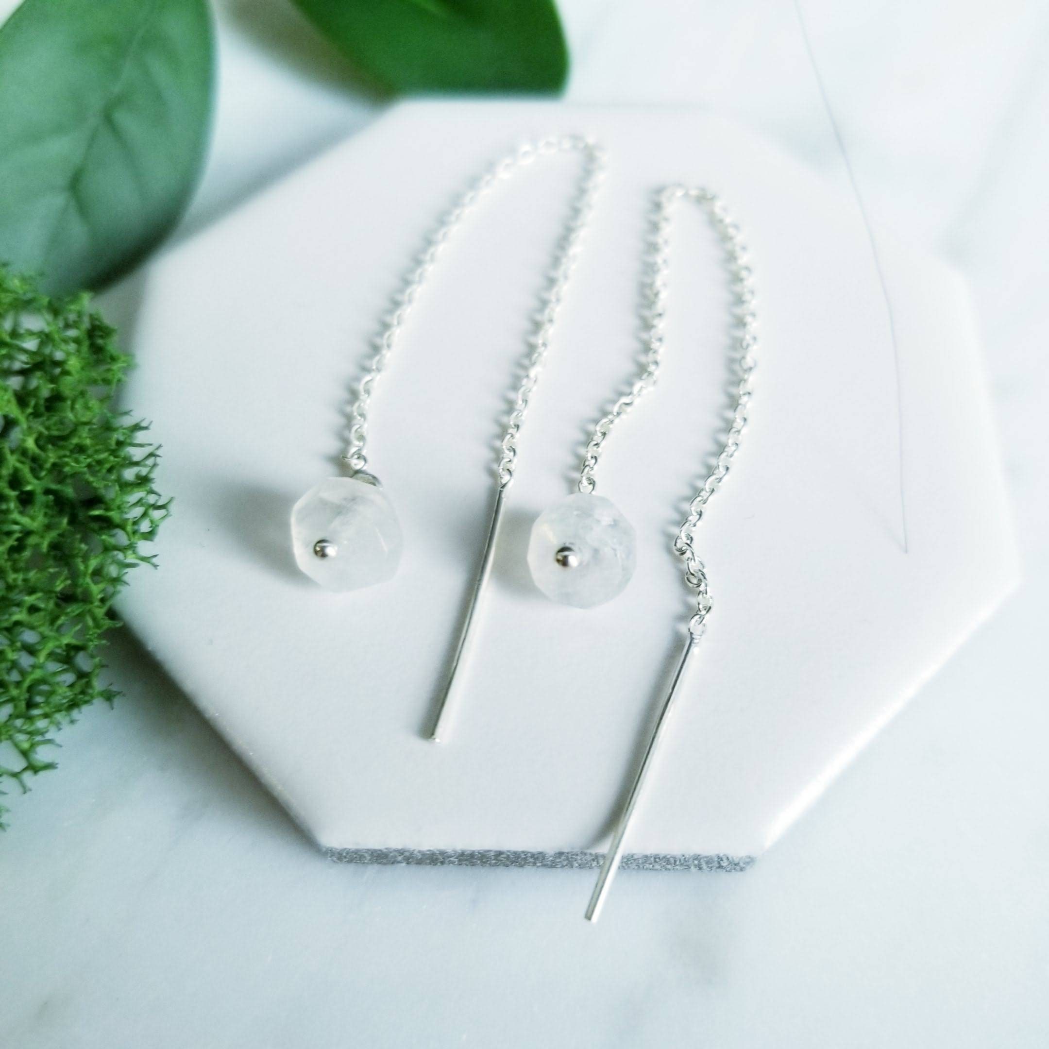 Sterling Silver chain threader paired with small faceted Moonstone stones.