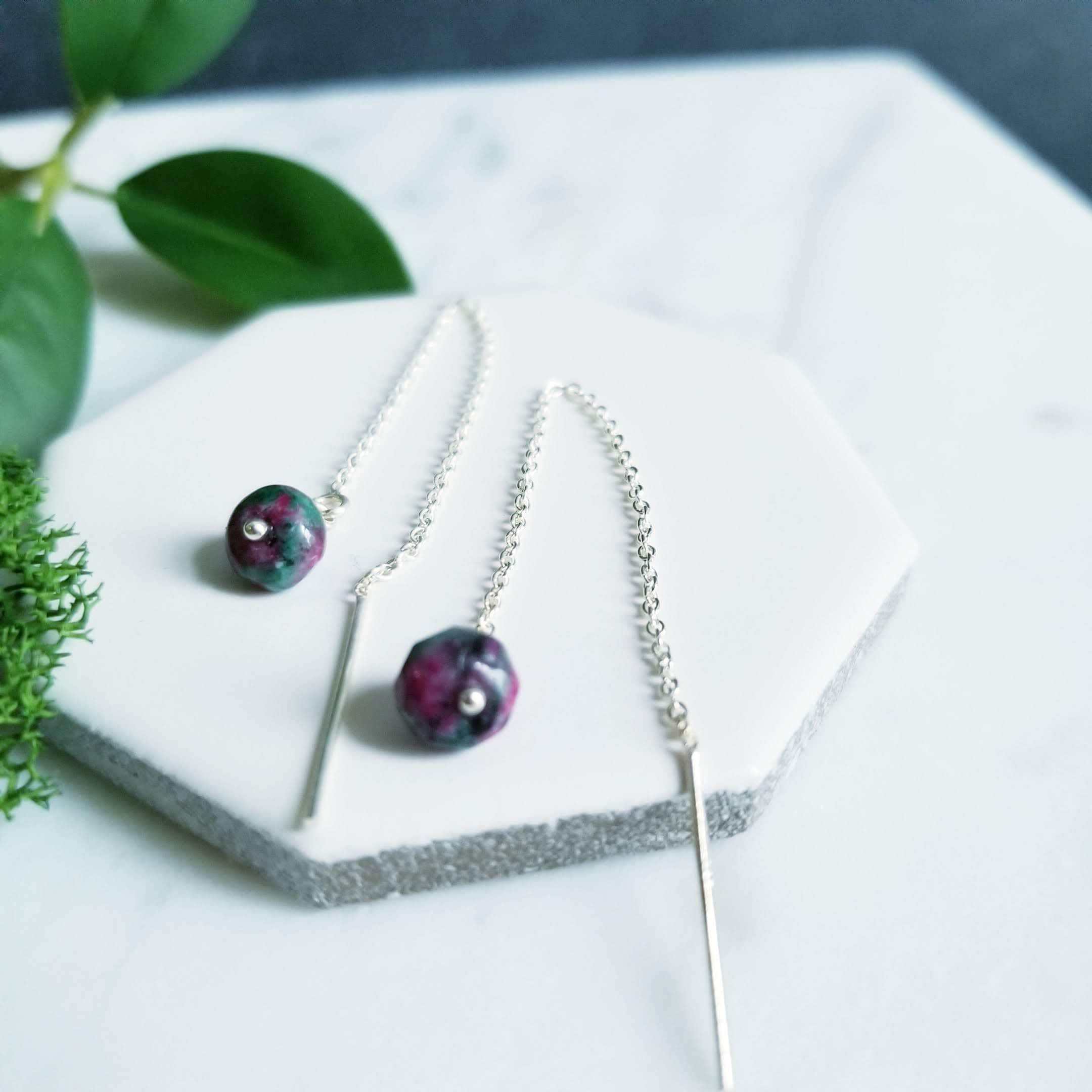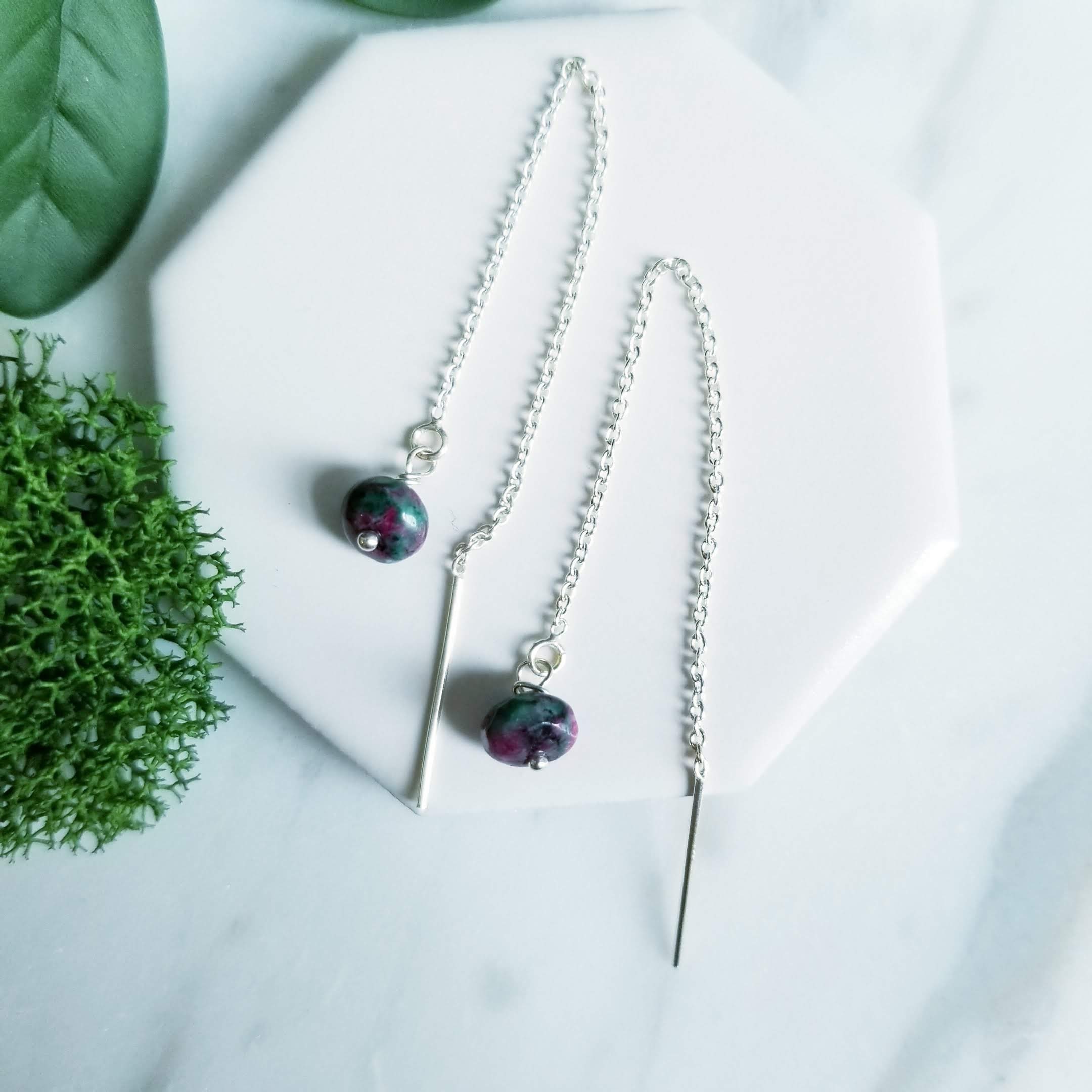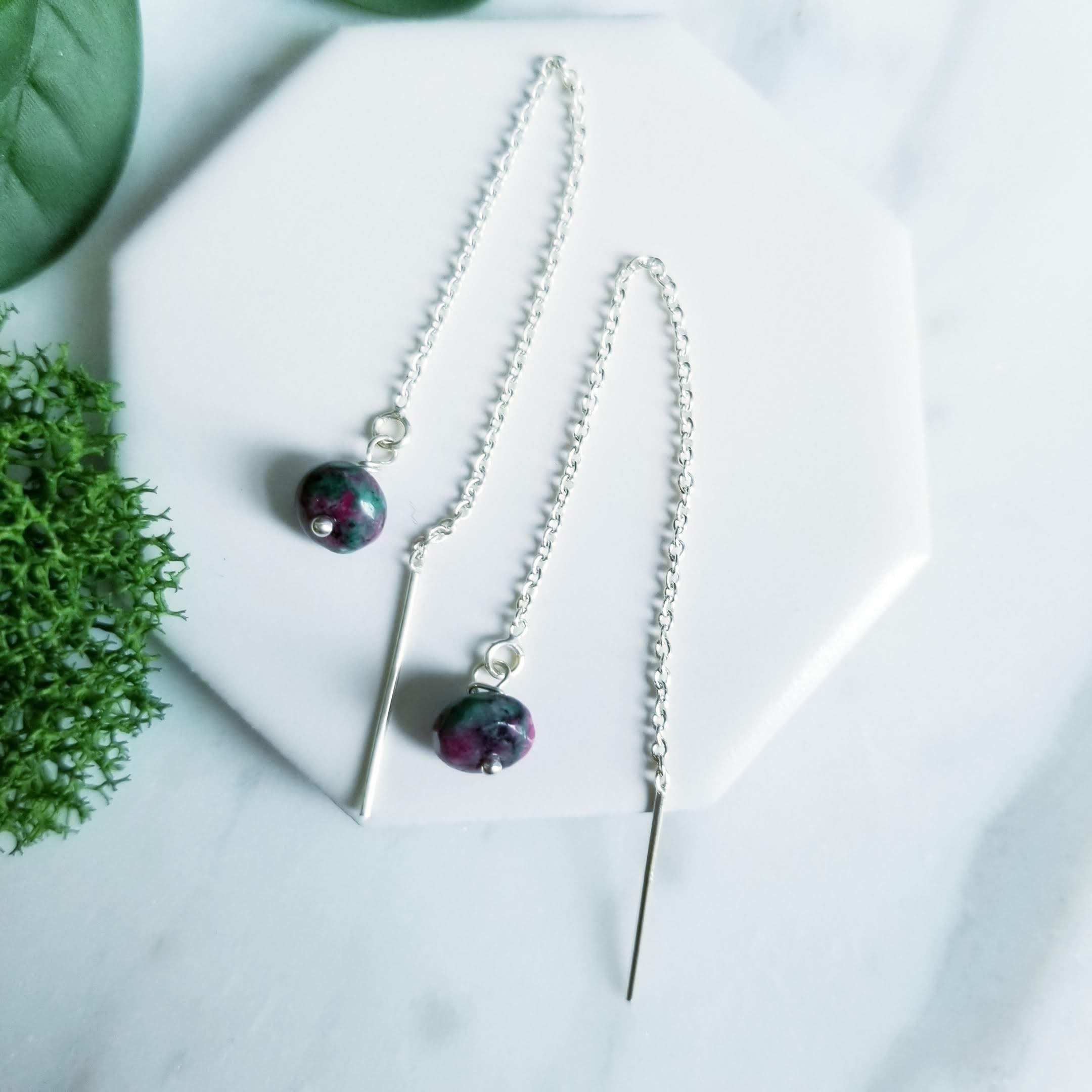 Sterling Silver chain threader paired with faceted ruby in zoisite stones.