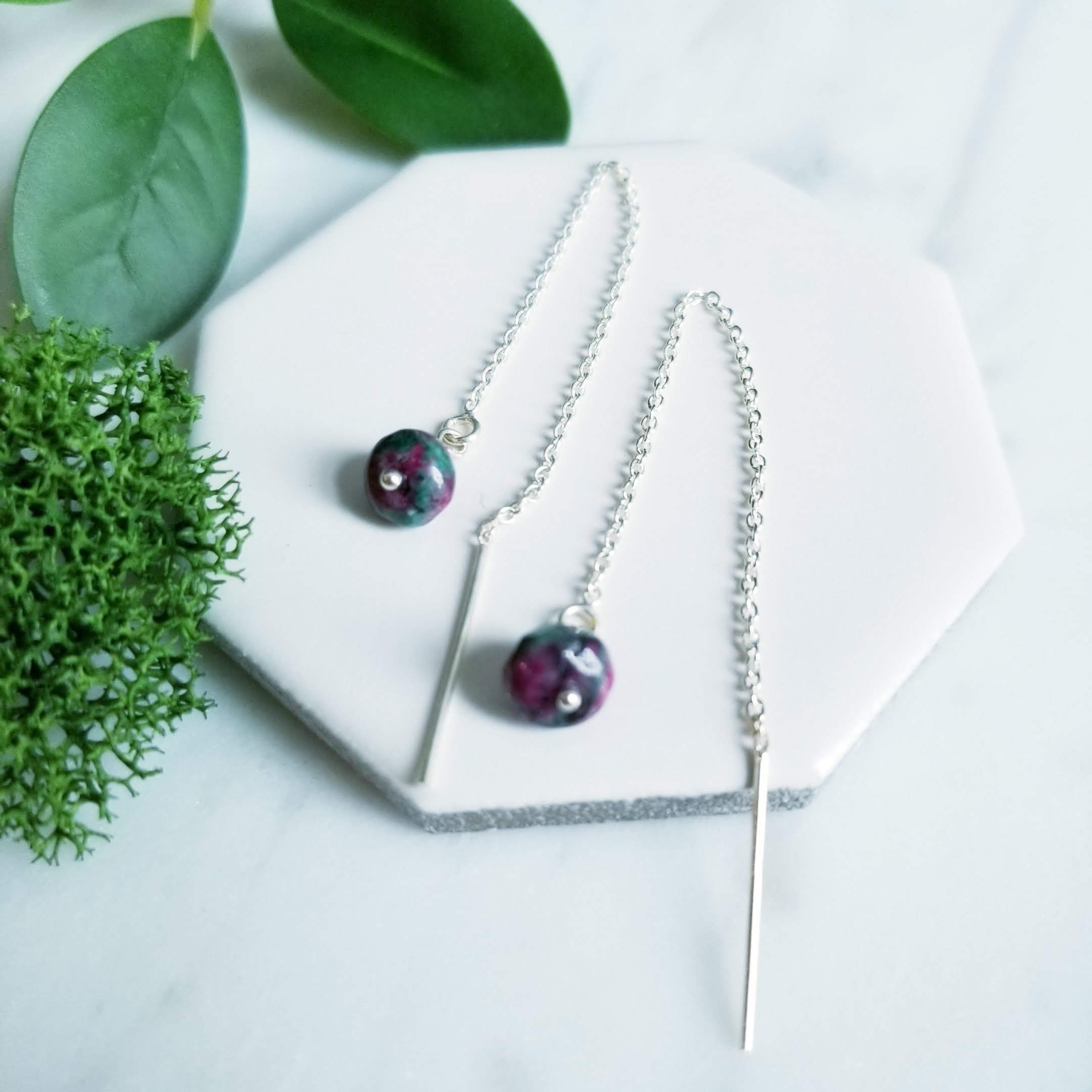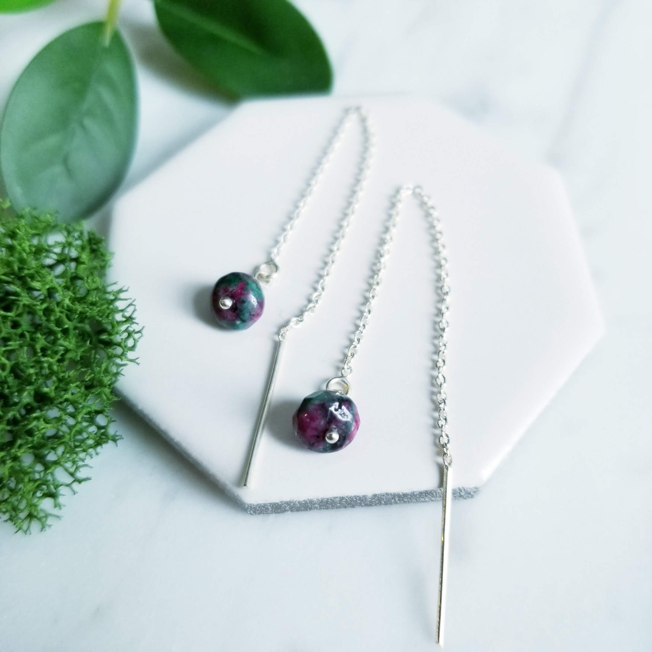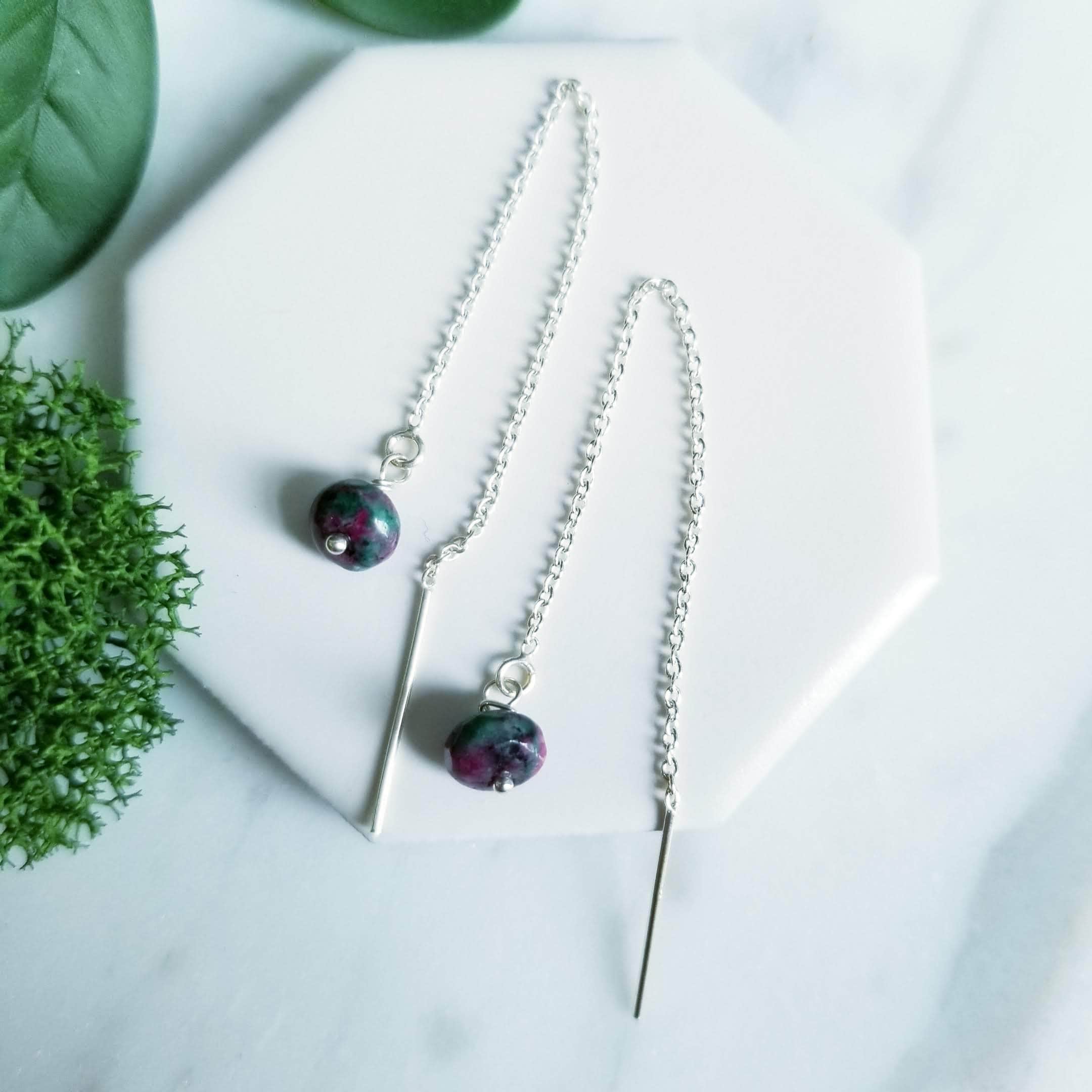 Sterling Silver chain threader paired with faceted ruby in zoisite stones.